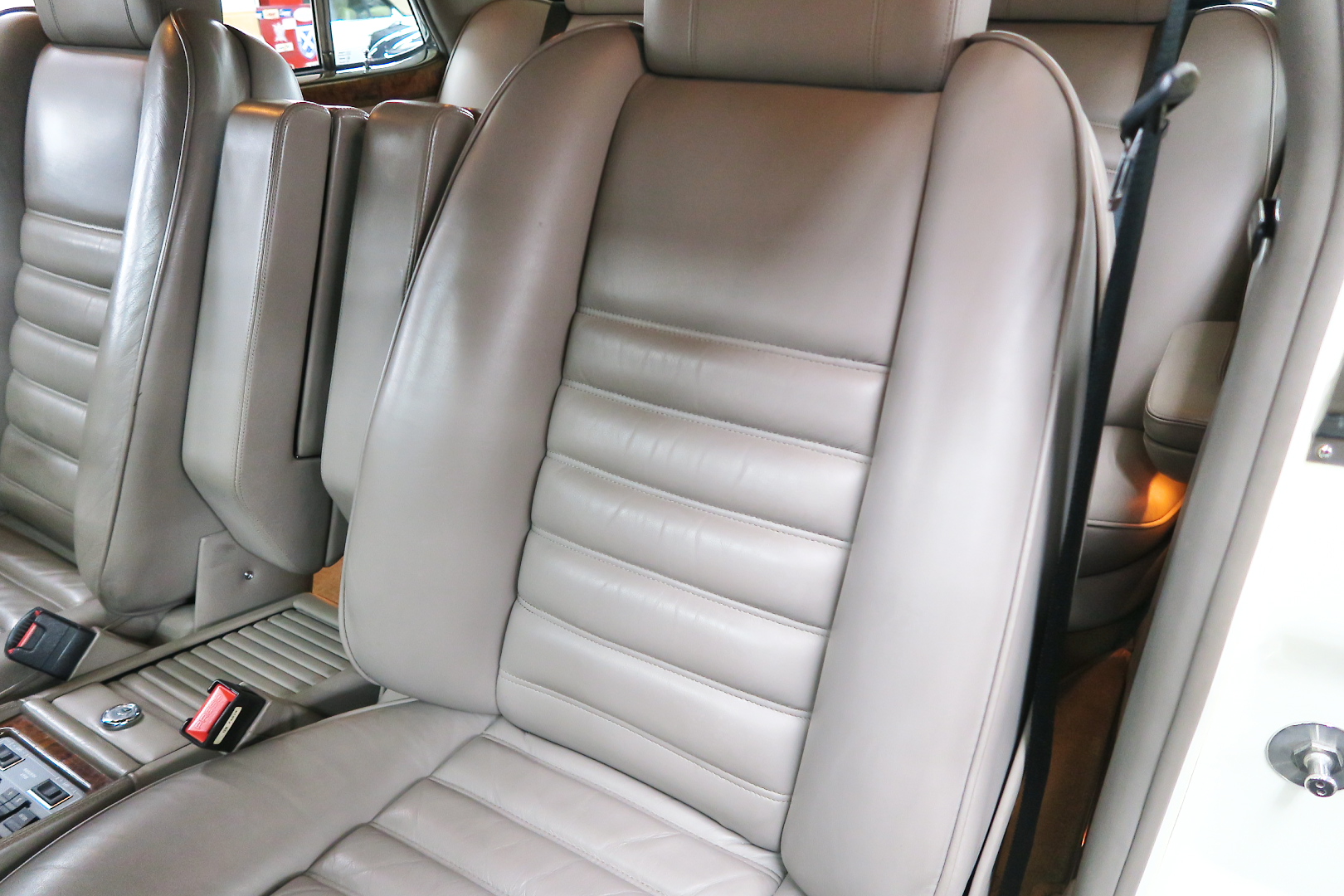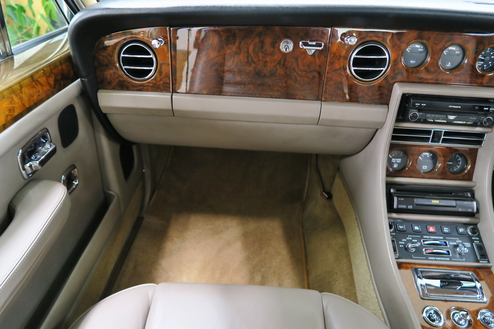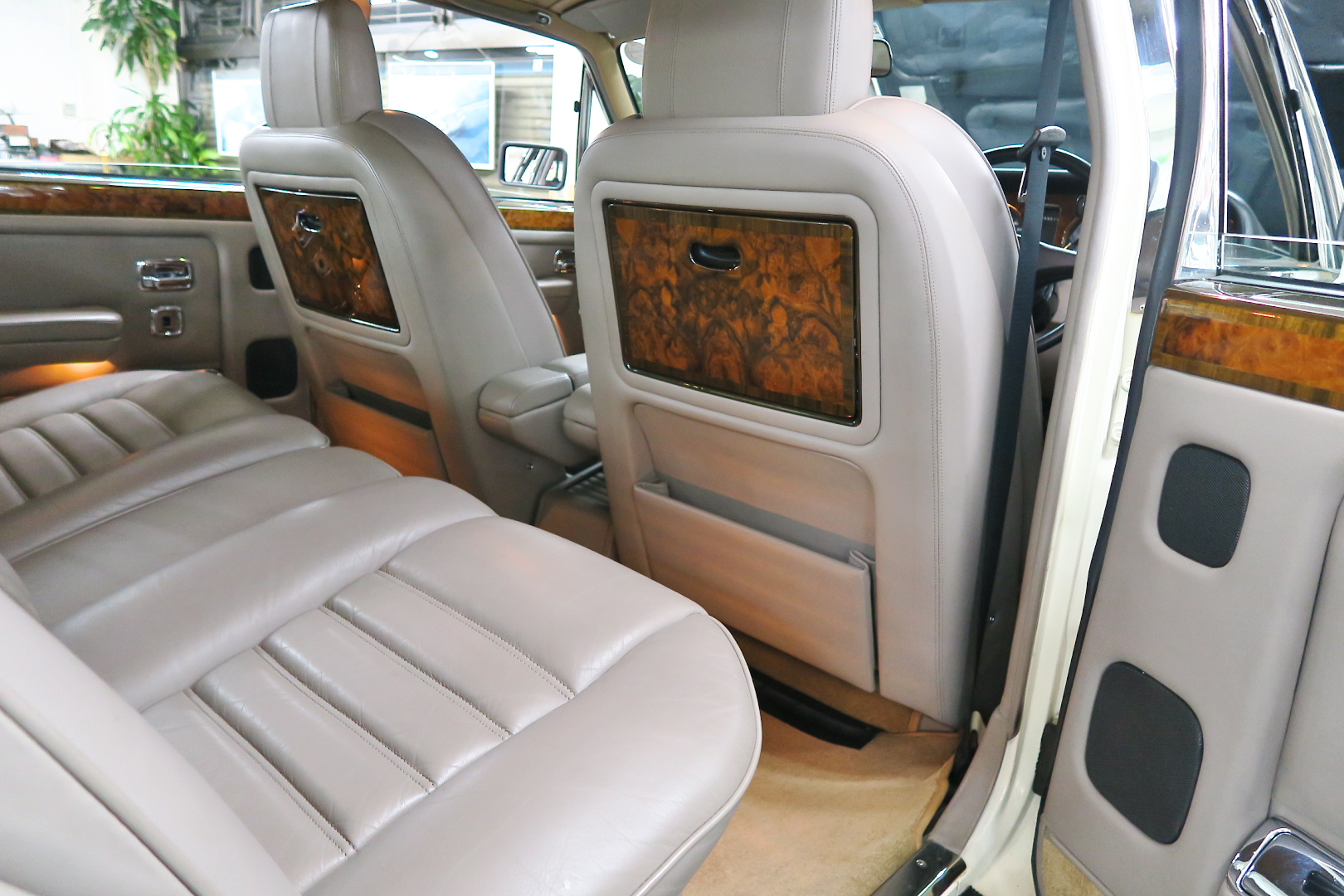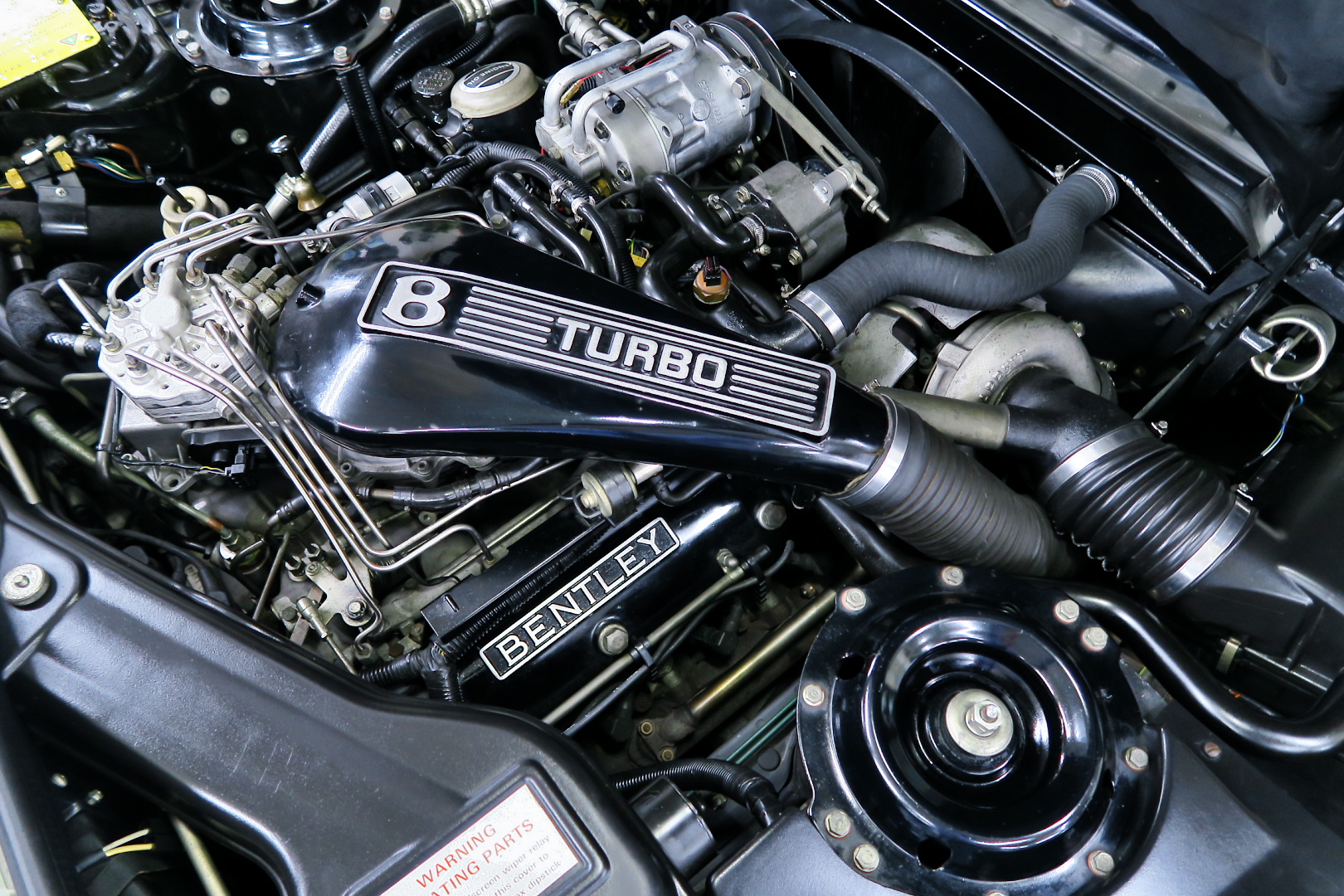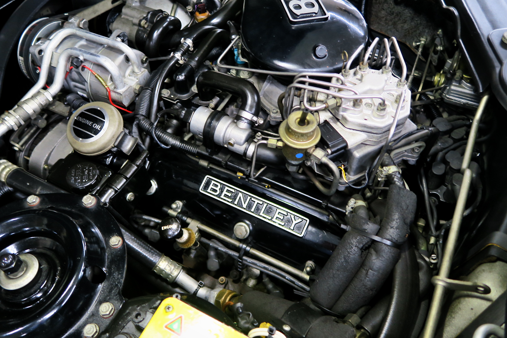 「ベントレー・ターボR」物語 「ロールス・ロイス」と「ベントレー」の生産比率(オーダー数)を逆転させた伝説の ホームラン王「ターボR」。 1965年から1980年の間に生産された「ロールス・ロイス」の4ドア・サルーン 「シャドウ」の生産台数は、「30.057台」、これに対し、ベントレーの4ドア・サルー ン、「T」は、その10分の1にも満たない、僅かに「2.289台」であった。 もはや、誰もが、ベントレーブランド自体を忘れそうになっていた。 おそらく、日本でも「ターボR」発売以前に「ベントレー」というブランドをよく知っ ていたのは、一部のエンスーな方だけであったろう。 この生産比率を逆転させる奇跡の原動力となったのが「ターボR」。 只者ではない。 ターボRの原点は、1982年に発表された「ミルザンヌ・ターボ」から始まる。 82年から85年の間に生産された、このモデルは、キャブ車のターボで、正直、 よろしくない。 トータル 516台生産されたらしいが、今となっては、当社も扱わない。 85年からは、名称を「ベントレー・ターボ」とし、インジェクション式のターボ付き となるが、本当の快進撃が始まるのは、1989年式モデルから、、 この年、エンブレムが「TURBO」から「TURBO R」に、、 外装を大型エアロパーツで武装、ヘッドライトが丸め四灯となる。 シートはバケットシート、タイヤは、ロールスの235サイズに対し、255サイズ、サス、 ショック共に「硬め」、最高速度は軽く200kmを超える、、明らかに、ロールスとは 違う、スポーツサルーン、、オーナードライバーズカーであることを強調。 しかも、時は、正にバブル絶頂期! これが 大ホームラン、名門「ベントレー」ブランドを復活してみせた。 1989年、ロールス社は年間生産台数が3000台を超えた(3254台)。 ハンドメイドの超高額モデルとしては大変な台数である。 1990年には、更に大掛かりな改良が行われ、シリーズ2へ進化、これが当車両、、 実際にベントレーがロールスの生産比率を超えたのは、この1990年のことである。 これは、「ベントレーS1」以来、実に45年ぶりの快挙であった。 この年のロールス社の年間生産台数(3274台)は、89年をも上回り、ベントレー 全盛期を迎えることになる。 90年当時のディーラー新車価格は、 ・ベントレーターボR 3100万円(税別) ・ベントレーラーボRL 3400万円(税別) ・R・RスパーU 3050万円(税別) ・R・RスピリットU 2750万円(税別) この価格設定からも、ロールスよりベントレーの方が高級、のイメージができあがる。 89年から91年にかけては、日本もバブル景気の全盛期、多くのベントレーが、正規 ディーラーのみならず、民間業者により並行車として輸入された。 当時は弊社とて、新車の「ターボR」を輸入したものだ。 が、流石に時間が経ってしまった、、近年では、この年式の極上個体のR・R、ベント レーは、ほとんど、見なくなった。 車自体は頑丈なのだが、中古車の流通価格が安くなりすぎて大切に扱われなくなったこ とと、仮に売り物がでても、その多くが、この円安で海外の業者に買われてしまってい ることが最大の原因であろう。 それが証拠に、先ほど、日本最大の掲載台数を誇る「カーセンサー」ネットで、 「ベントレー ターボR」と検索したところ、掲載車は、僅かに「4台」、それも、 内、2台は弊社の在庫車、、日本から消えた?? じゃなくても、今や当社の仕入基準を満たす個体は、ほぼない と言ってもよいほど、 さて、当車両のお話: ディーラー車 右ハンドル(90年モデル・90年8月登録) 当時は、「右H」は、完全にオーダー制で、注文される方も、10人にお一人くらい。 まだまだ「外車は左ハンドル」の時代であった。 当個体、複数オーナーであるが、弊社が、「2009年」に仕入れ、販売させて頂いた 元「シーザー認定号」、オーナー様は、2025年まで、16年間ご所有されていた。 今回は 終活の一環として、久しぶりの再入庫。 走行:「49.900km」 もちろん「実走」。 しかも、保管環境はバツグンで、販売させていただいた時と ほぼ変わりなし。 91年までに「ラッカー塗料」にありがちな「塗装クラック」箇所は、すでにリペア 対策済みで、クラックもなし。 ベース・コンディションは、極めて素晴らしい。 外装は、「アクリル・ホワイト」」 ソリッドのホワイト、真っ白ではなく、少し象牙色っぽい。 のちに「コーニッシュ・ホワイト」として復活した 良き時代のホワイト・カラー。 全長:「528cm」 ショートボディ、本来「RL」だけに付く「CピラーにBバッジ」、 純正フライングBマスコット 純正コーナーポール 当時の外装オプション全部付け 内装は、 「マッシュルーム」コノリーレザー。 オリジナル「コノリー」、ノンリペアで、ここまでキレイに残す。 マッシュルームというカラーを選択された方も極めて稀で、まず みない。 このカラー、汚れも目立たず、好きかな。 ウッドもノンリペアで 艶々っ オプションの「両面ウッド張りピクニック・テーブル」 この右テーブルを開いた箇所(ウッド面)