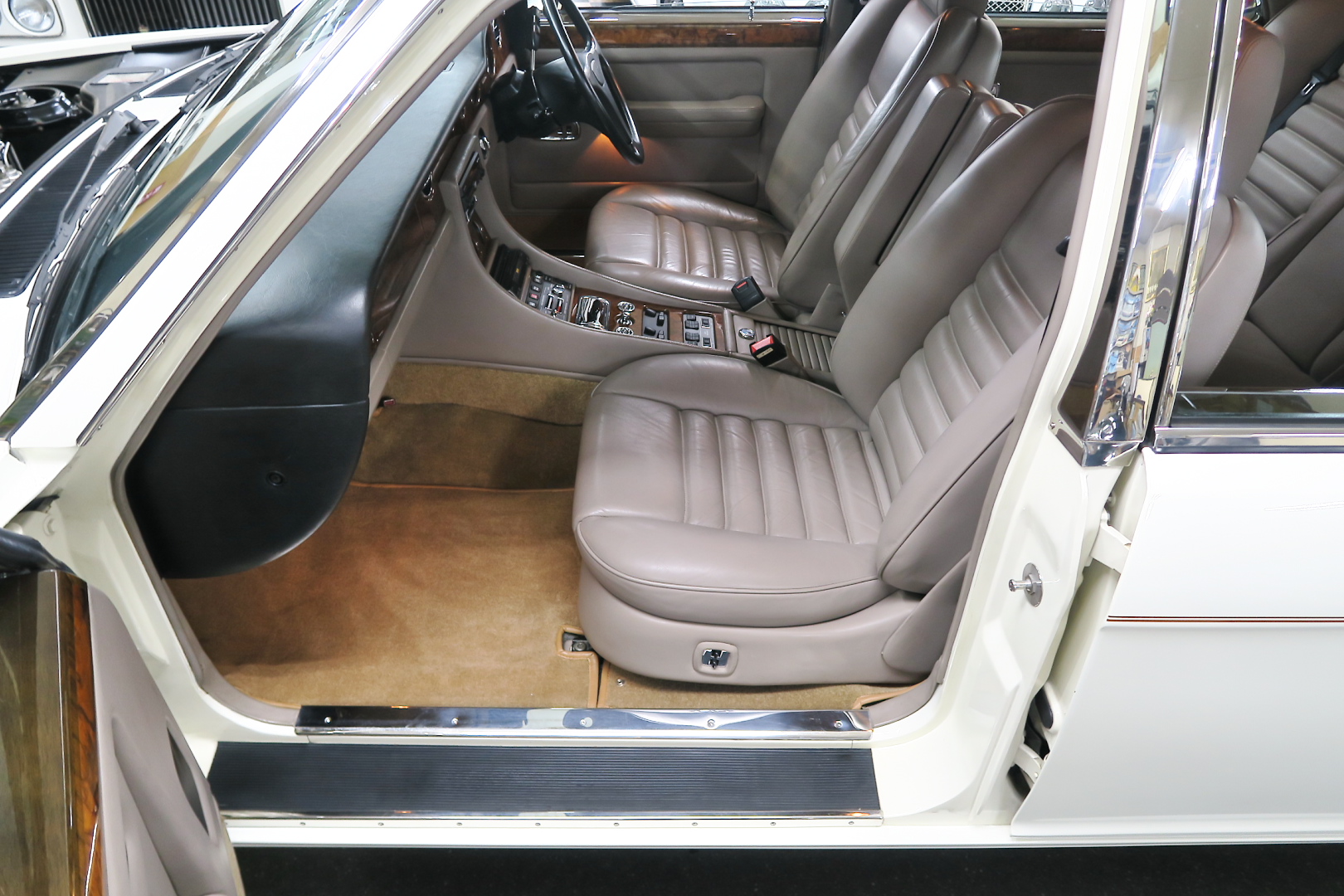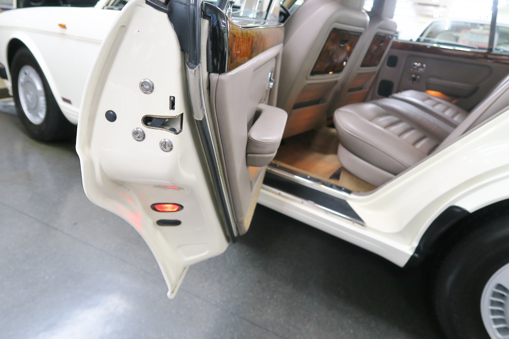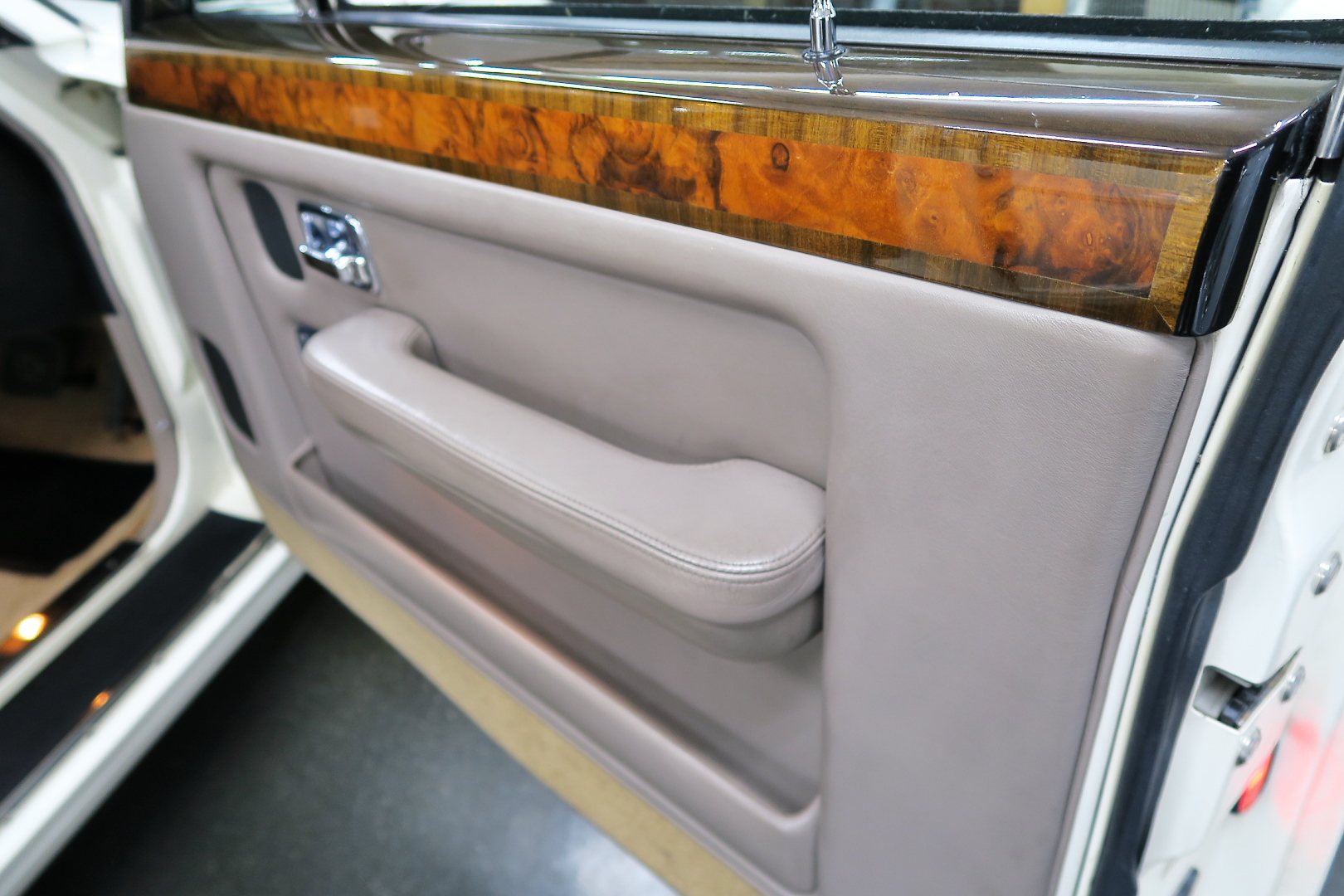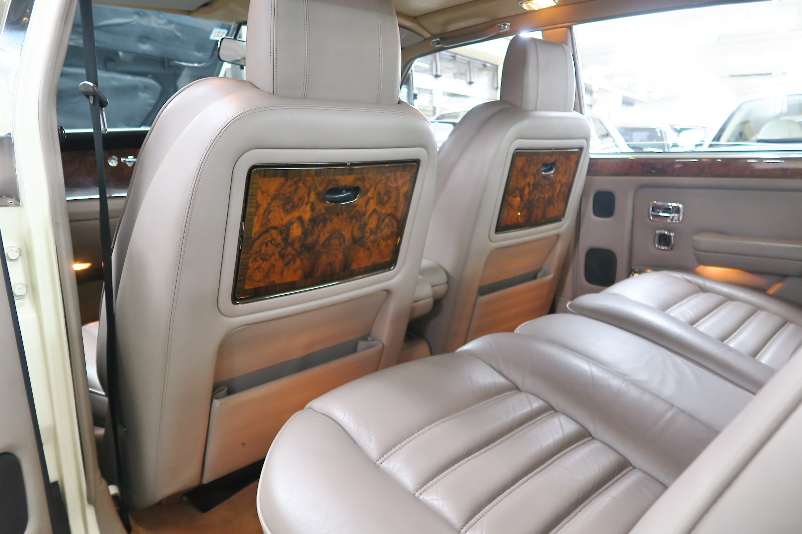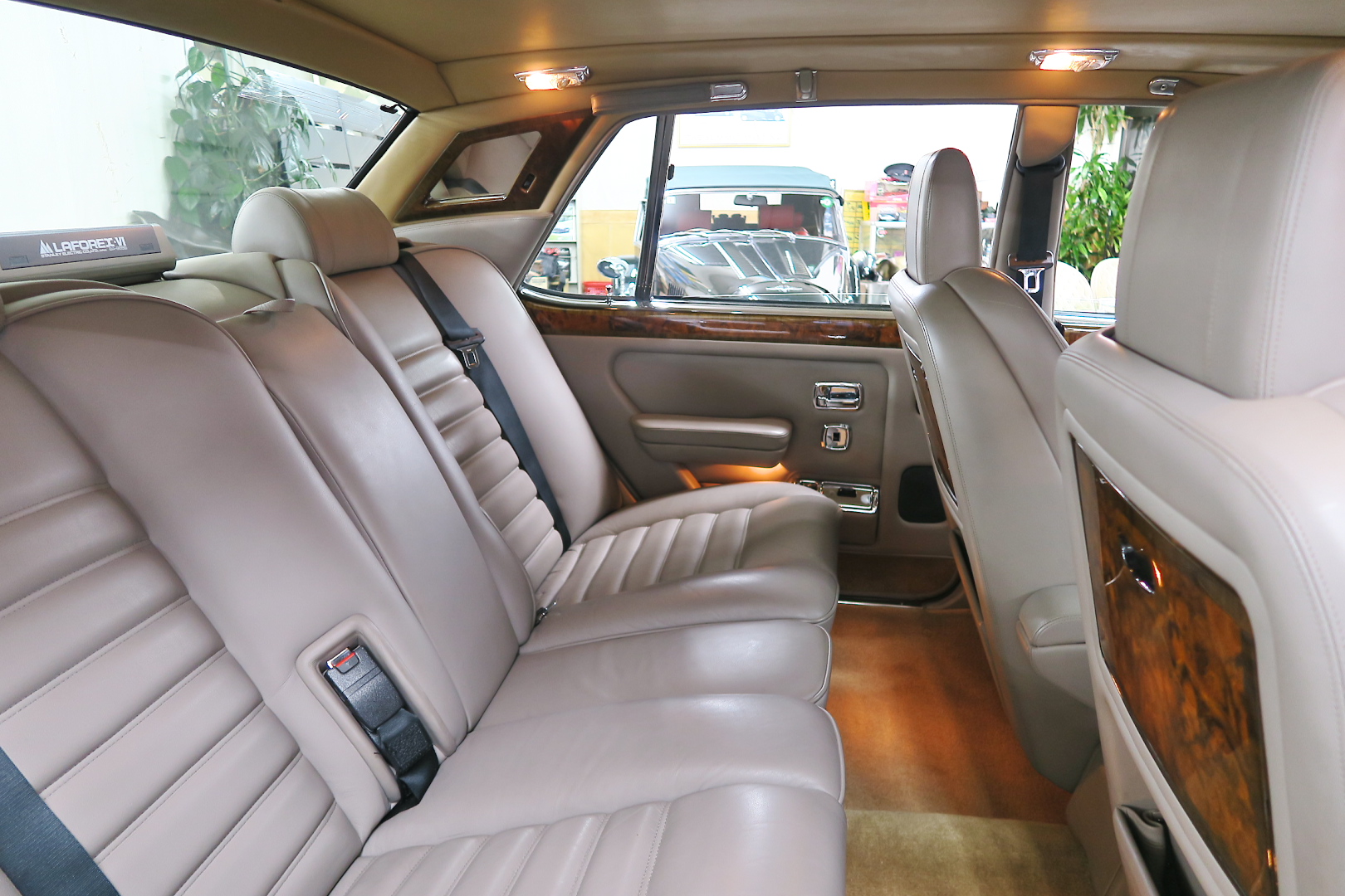 「ベントレー・ターボR」物語 「ロールス・ロイス」と「ベントレー」の生産比率(オーダー数)を逆転させた伝説の ホームラン王「ターボR」。 1965年から1980年の間に生産された「ロールス・ロイス」の4ドア・サルーン 「シャドウ」の生産台数は、「30.057台」、これに対し、ベントレーの4ドア・サルー ン、「T」は、その10分の1にも満たない、僅かに「2.289台」であった。 もはや、誰もが、ベントレーブランド自体を忘れそうになっていた。 おそらく、日本でも「ターボR」発売以前に「ベントレー」というブランドをよく知っ ていたのは、一部のエンスーな方だけであったろう。 この生産比率を逆転させる奇跡の原動力となったのが「ターボR」。 只者ではない。 ターボRの原点は、1982年に発表された「ミルザンヌ・ターボ」から始まる。 82年から85年の間に生産された、このモデルは、キャブ車のターボで、正直、 よろしくない。 トータル 516台生産されたらしいが、今となっては、当社も扱わない。 85年からは、名称を「ベントレー・ターボ」とし、インジェクション式のターボ付き となるが、本当の快進撃が始まるのは、1989年式モデルから、、 この年、エンブレムが「TURBO」から「TURBO R」に、、 外装を大型エアロパーツで武装、ヘッドライトが丸め四灯となる。 シートはバケットシート、タイヤは、ロールスの235サイズに対し、255サイズ、サス、 ショック共に「硬め」、最高速度は軽く200kmを超える、、明らかに、ロールスとは 違う、スポーツサルーン、、オーナードライバーズカーであることを強調。 しかも、時は、正にバブル絶頂期! これが 大ホームラン、名門「ベントレー」ブランドを復活してみせた。 1989年、ロールス社は年間生産台数が3000台を超えた(3254台)。 ハンドメイドの超高額モデルとしては大変な台数である。 1990年には、更に大掛かりな改良が行われ、シリーズ2へ進化、これが当車両、、 実際にベントレーがロールスの生産比率を超えたのは、この1990年のことである。 これは、「ベントレーS1」以来、実に45年ぶりの快挙であった。 この年のロールス社の年間生産台数(3274台)は、89年をも上回り、ベントレー 全盛期を迎えることになる。 90年当時のディーラー新車価格は、 ・ベントレーターボR 3100万円(税別) ・ベントレーラーボRL 3400万円(税別) ・R・RスパーU 3050万円(税別) ・R・RスピリットU 2750万円(税別) この価格設定からも、ロールスよりベントレーの方が高級、のイメージができあがる。 89年から91年にかけては、日本もバブル景気の全盛期、多くのベントレーが、正規 ディーラーのみならず、民間業者により並行車として輸入された。 当時は弊社とて、新車の「ターボR」を輸入したものだ。 が、流石に時間が経ってしまった、、近年では、この年式の極上個体のR・R、ベント レーは、ほとんど、見なくなった。 車自体は頑丈なのだが、中古車の流通価格が安くなりすぎて大切に扱われなくなったこ とと、仮に売り物がでても、その多くが、この円安で海外の業者に買われてしまってい ることが最大の原因であろう。 それが証拠に、先ほど、日本最大の掲載台数を誇る「カーセンサー」ネットで、 「ベントレー ターボR」と検索したところ、掲載車は、僅かに「4台」、それも、 内、2台は弊社の在庫車、、日本から消えた?? じゃなくても、今や当社の仕入基準を満たす個体は、ほぼない と言ってもよいほど、 さて、当車両のお話: ディーラー車 右ハンドル(90年モデル・90年8月登録) 当時は、「右H」は、完全にオーダー制で、注文される方も、10人にお一人くらい。 まだまだ「外車は左ハンドル」の時代であった。 当個体、複数オーナーであるが、弊社が、「2009年」に仕入れ、販売させて頂いた 元「シーザー認定号」、オーナー様は、2025年まで、16年間ご所有されていた。 今回は 終活の一環として、久しぶりの再入庫。 走行:「49.900km」 もちろん「実走」。 しかも、保管環境はバツグンで、販売させていただいた時と ほぼ変わりなし。 91年までに「ラッカー塗料」にありがちな「塗装クラック」箇所は、すでにリペア 対策済みで、クラックもなし。 ベース・コンディションは、極めて素晴らしい。 外装は、「アクリル・ホワイト」」 ソリッドのホワイト、真っ白ではなく、少し象牙色っぽい。 のちに「コーニッシュ・ホワイト」として復活した 良き時代のホワイト・カラー。 全長:「528cm」 ショートボディ、本来「RL」だけに付く「CピラーにBバッジ」、 純正フライングBマスコット 純正コーナーポール 当時の外装オプション全部付け 内装は、 「マッシュルーム」コノリーレザー。 オリジナル「コノリー」、ノンリペアで、ここまでキレイに残す。 マッシュルームというカラーを選択された方も極めて稀で、まず みない。 このカラー、汚れも目立たず、好きかな。 ウッドもノンリペアで 艶々っ オプションの「両面ウッド張りピクニック・テーブル」 この右テーブルを開いた箇所(ウッド面)