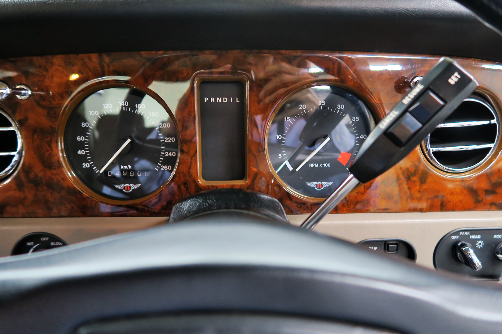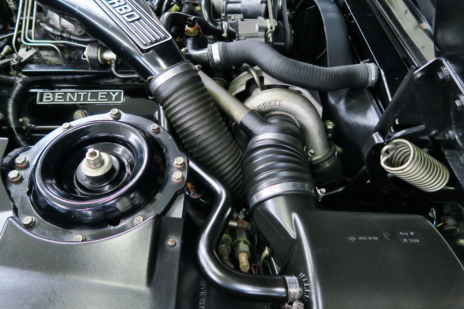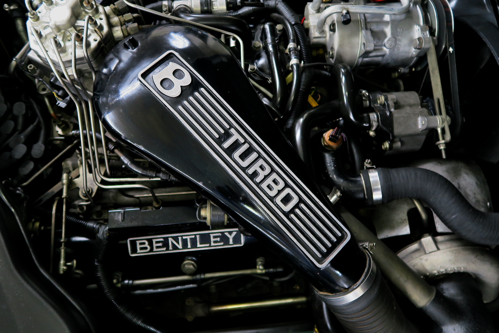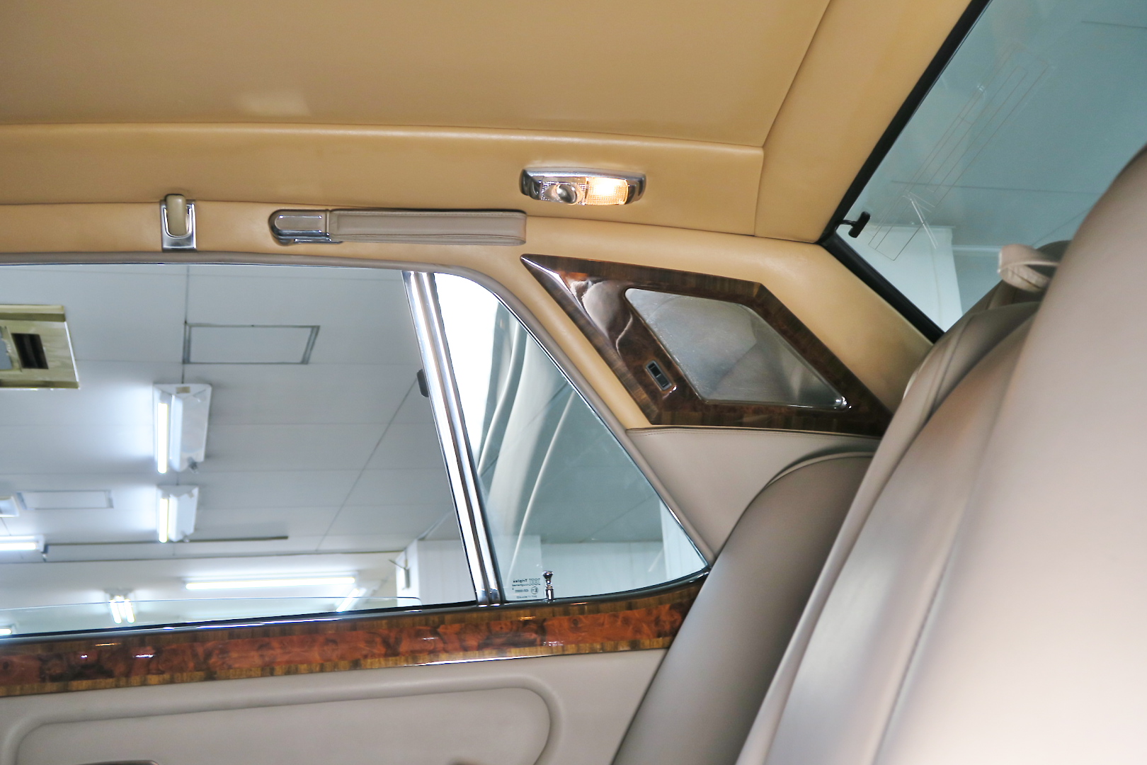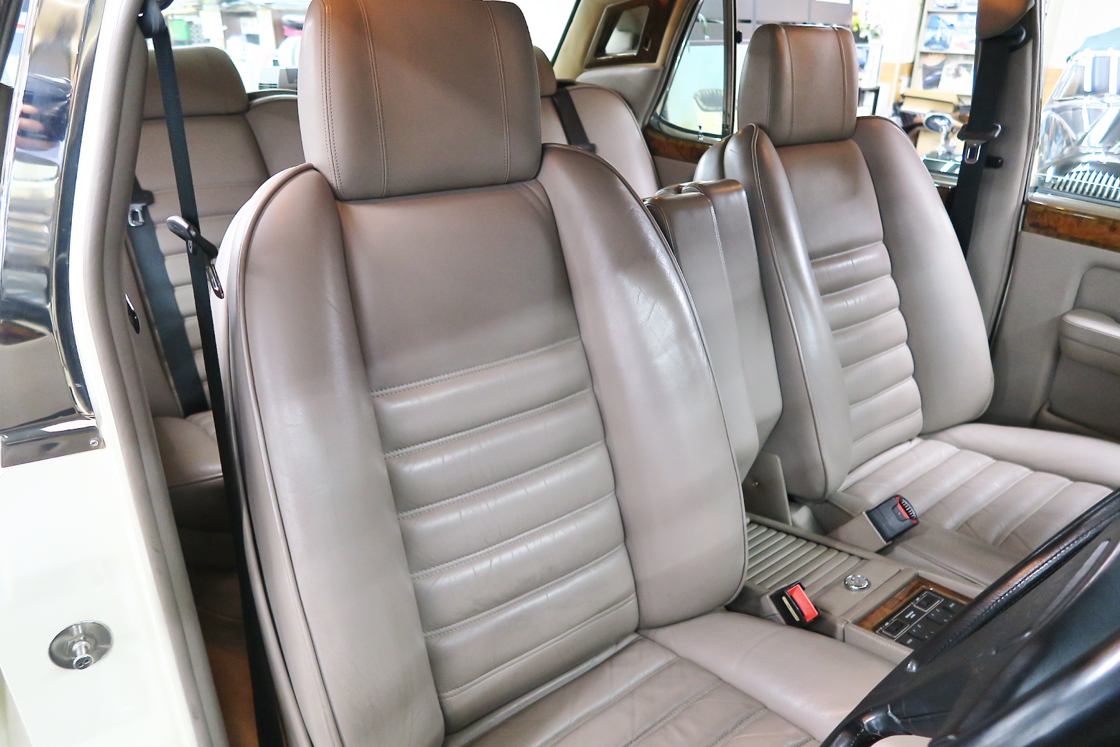 「ベントレー・ターボR」物語 「ロールス・ロイス」と「ベントレー」の生産比率(オーダー数)を逆転させた伝説の ホームラン王「ターボR」。 1965年から1980年の間に生産された「ロールス・ロイス」の4ドア・サルーン 「シャドウ」の生産台数は、「30.057台」、これに対し、ベントレーの4ドア・サルー ン、「T」は、その10分の1にも満たない、僅かに「2.289台」であった。 もはや、誰もが、ベントレーブランド自体を忘れそうになっていた。 おそらく、日本でも「ターボR」発売以前に「ベントレー」というブランドをよく知っ ていたのは、一部のエンスーな方だけであったろう。 この生産比率を逆転させる奇跡の原動力となったのが「ターボR」。 只者ではない。 ターボRの原点は、1982年に発表された「ミルザンヌ・ターボ」から始まる。 82年から85年の間に生産された、このモデルは、キャブ車のターボで、正直、 よろしくない。 トータル 516台生産されたらしいが、今となっては、当社も扱わない。 85年からは、名称を「ベントレー・ターボ」とし、インジェクション式のターボ付き となるが、本当の快進撃が始まるのは、1989年式モデルから、、 この年、エンブレムが「TURBO」から「TURBO R」に、、 外装を大型エアロパーツで武装、ヘッドライトが丸め四灯となる。 シートはバケットシート、タイヤは、ロールスの235サイズに対し、255サイズ、サス、 ショック共に「硬め」、最高速度は軽く200kmを超える、、明らかに、ロールスとは 違う、スポーツサルーン、、オーナードライバーズカーであることを強調。 しかも、時は、正にバブル絶頂期! これが 大ホームラン、名門「ベントレー」ブランドを復活してみせた。 1989年、ロールス社は年間生産台数が3000台を超えた(3254台)。 ハンドメイドの超高額モデルとしては大変な台数である。 1990年には、更に大掛かりな改良が行われ、シリーズ2へ進化、これが当車両、、 実際にベントレーがロールスの生産比率を超えたのは、この1990年のことである。 これは、「ベントレーS1」以来、実に45年ぶりの快挙であった。 この年のロールス社の年間生産台数(3274台)は、89年をも上回り、ベントレー 全盛期を迎えることになる。 90年当時のディーラー新車価格は、 ・ベントレーターボR 3100万円(税別) ・ベントレーラーボRL 3400万円(税別) ・R・RスパーU 3050万円(税別) ・R・RスピリットU 2750万円(税別) この価格設定からも、ロールスよりベントレーの方が高級、のイメージができあがる。 89年から91年にかけては、日本もバブル景気の全盛期、多くのベントレーが、正規 ディーラーのみならず、民間業者により並行車として輸入された。 当時は弊社とて、新車の「ターボR」を輸入したものだ。 が、流石に時間が経ってしまった、、近年では、この年式の極上個体のR・R、ベント レーは、ほとんど、見なくなった。 車自体は頑丈なのだが、中古車の流通価格が安くなりすぎて大切に扱われなくなったこ とと、仮に売り物がでても、その多くが、この円安で海外の業者に買われてしまってい ることが最大の原因であろう。 それが証拠に、先ほど、日本最大の掲載台数を誇る「カーセンサー」ネットで、 「ベントレー ターボR」と検索したところ、掲載車は、僅かに「4台」、それも、 内、2台は弊社の在庫車、、日本から消えた?? じゃなくても、今や当社の仕入基準を満たす個体は、ほぼない と言ってもよいほど、 さて、当車両のお話: ディーラー車 右ハンドル(90年モデル・90年8月登録) 当時は、「右H」は、完全にオーダー制で、注文される方も、10人にお一人くらい。 まだまだ「外車は左ハンドル」の時代であった。 当個体、複数オーナーであるが、弊社が、「2009年」に仕入れ、販売させて頂いた 元「シーザー認定号」、オーナー様は、2025年まで、16年間ご所有されていた。 今回は 終活の一環として、久しぶりの再入庫。 走行:「49.900km」 もちろん「実走」。 しかも、保管環境はバツグンで、販売させていただいた時と ほぼ変わりなし。 91年までに「ラッカー塗料」にありがちな「塗装クラック」箇所は、すでにリペア 対策済みで、クラックもなし。 ベース・コンディションは、極めて素晴らしい。 外装は、「アクリル・ホワイト」」 ソリッドのホワイト、真っ白ではなく、少し象牙色っぽい。 のちに「コーニッシュ・ホワイト」として復活した 良き時代のホワイト・カラー。 全長:「528cm」 ショートボディ、本来「RL」だけに付く「CピラーにBバッジ」、 純正フライングBマスコット 純正コーナーポール 当時の外装オプション全部付け 内装は、 「マッシュルーム」コノリーレザー。 オリジナル「コノリー」、ノンリペアで、ここまでキレイに残す。 マッシュルームというカラーを選択された方も極めて稀で、まず みない。 このカラー、汚れも目立たず、好きかな。 ウッドもノンリペアで 艶々っ オプションの「両面ウッド張りピクニック・テーブル」 この右テーブルを開いた箇所(ウッド面)