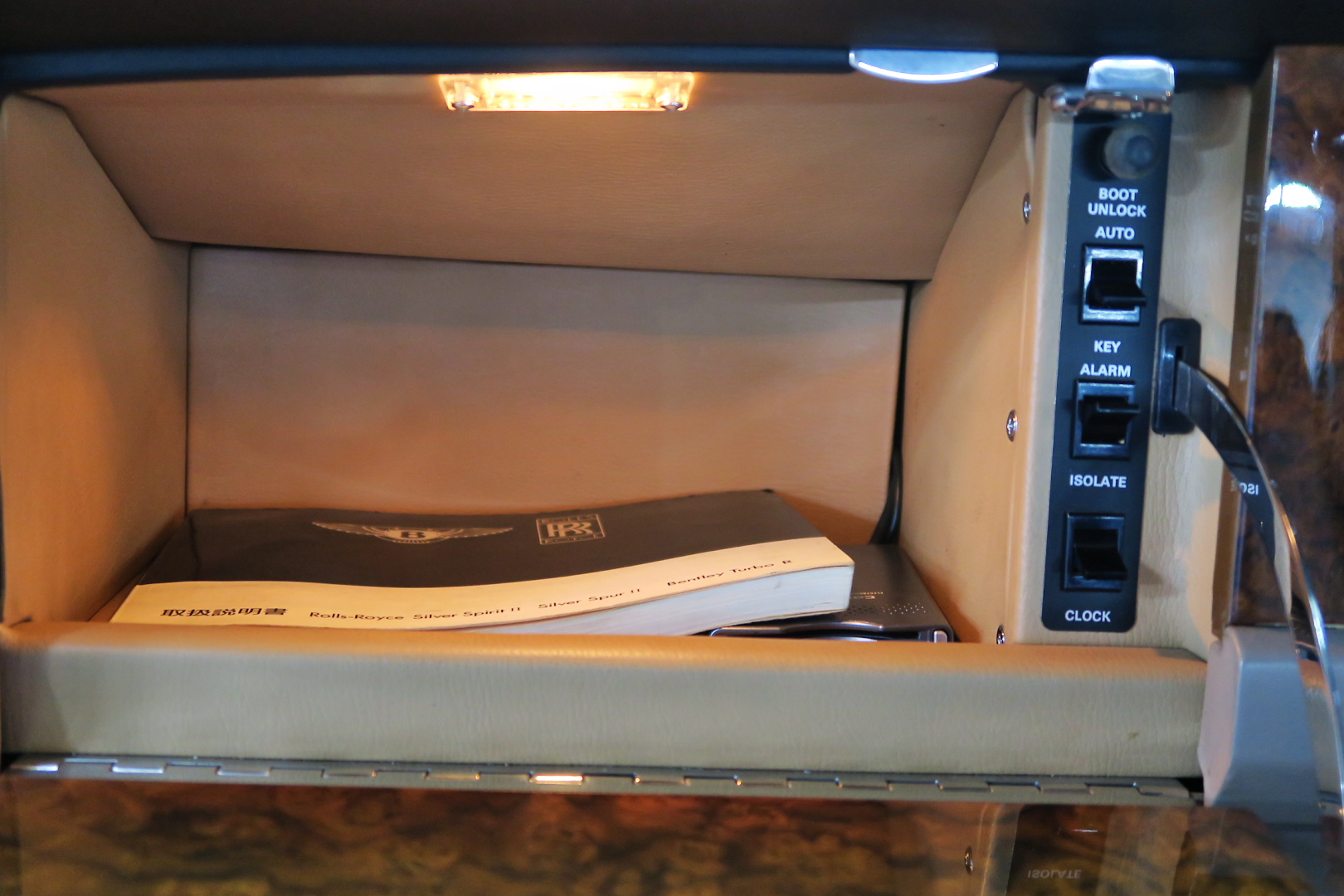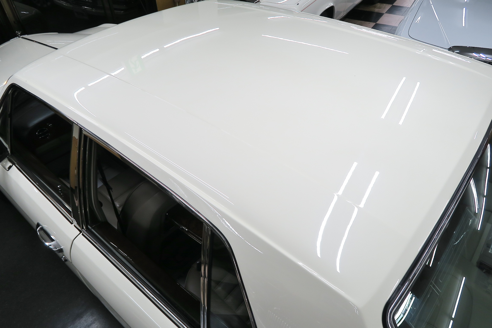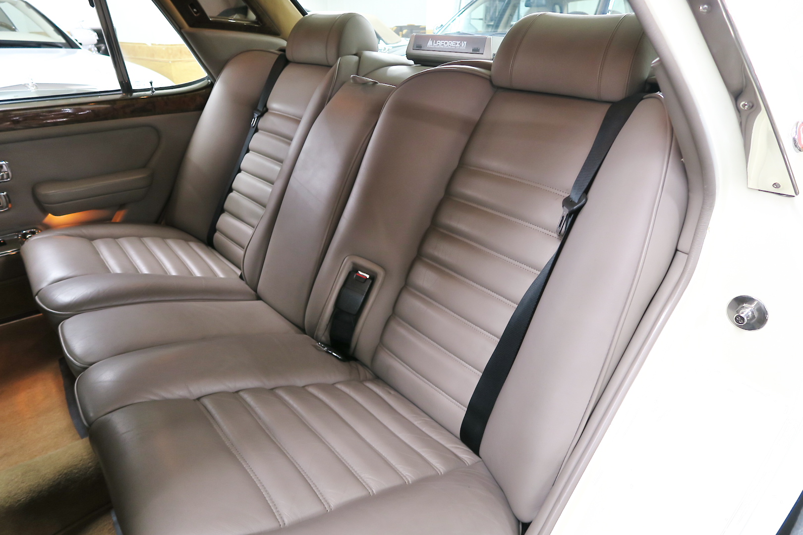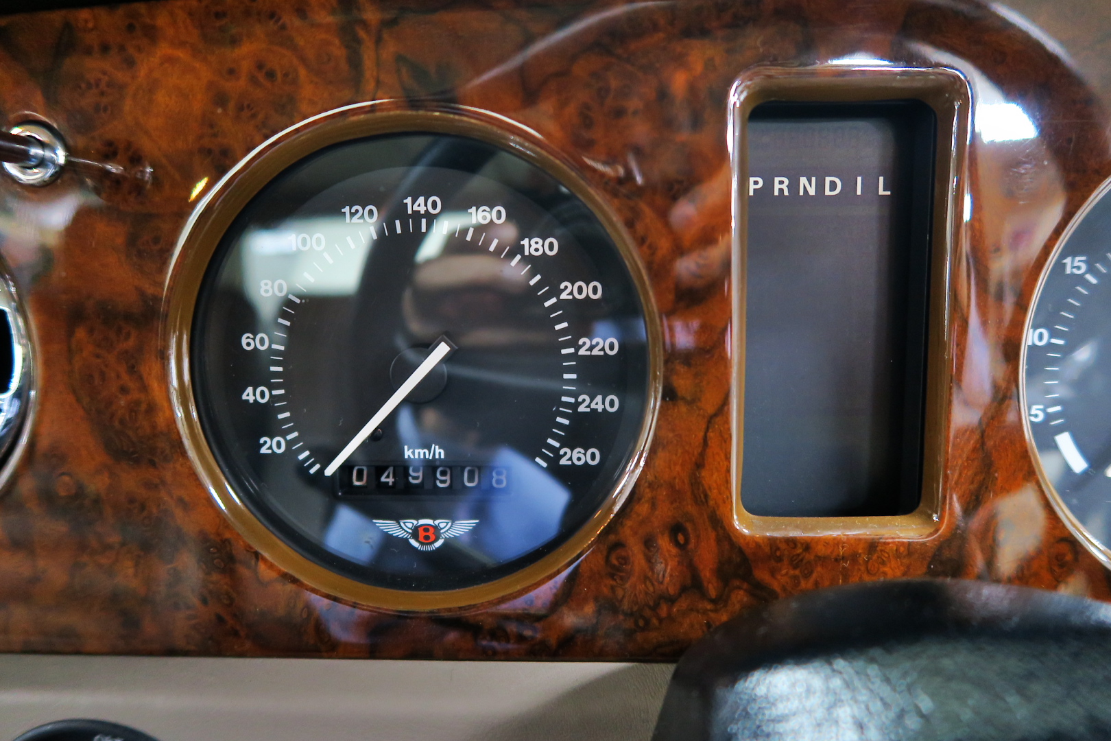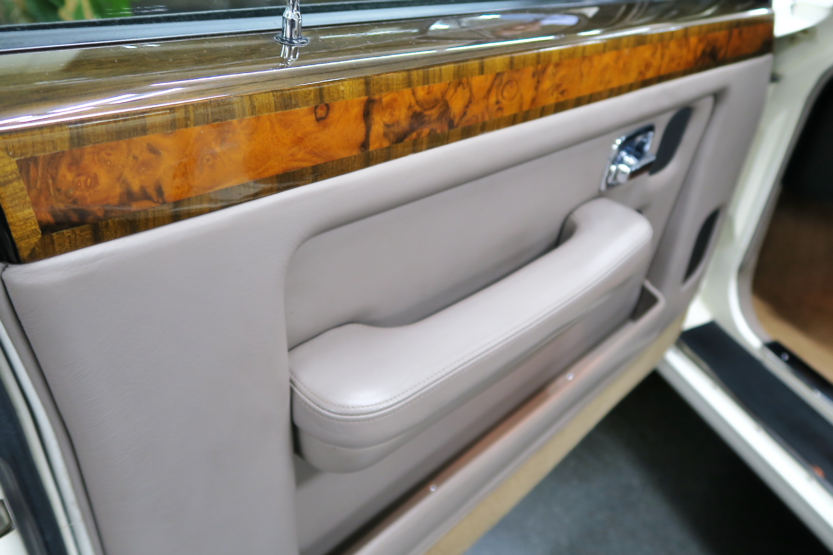 「ベントレー・ターボR」物語 「ロールス・ロイス」と「ベントレー」の生産比率(オーダー数)を逆転させた伝説の ホームラン王「ターボR」。 1965年から1980年の間に生産された「ロールス・ロイス」の4ドア・サルーン 「シャドウ」の生産台数は、「30.057台」、これに対し、ベントレーの4ドア・サルー ン、「T」は、その10分の1にも満たない、僅かに「2.289台」であった。 もはや、誰もが、ベントレーブランド自体を忘れそうになっていた。 おそらく、日本でも「ターボR」発売以前に「ベントレー」というブランドをよく知っ ていたのは、一部のエンスーな方だけであったろう。 この生産比率を逆転させる奇跡の原動力となったのが「ターボR」。 只者ではない。 ターボRの原点は、1982年に発表された「ミルザンヌ・ターボ」から始まる。 82年から85年の間に生産された、このモデルは、キャブ車のターボで、正直、 よろしくない。 トータル 516台生産されたらしいが、今となっては、当社も扱わない。 85年からは、名称を「ベントレー・ターボ」とし、インジェクション式のターボ付き となるが、本当の快進撃が始まるのは、1989年式モデルから、、 この年、エンブレムが「TURBO」から「TURBO R」に、、 外装を大型エアロパーツで武装、ヘッドライトが丸め四灯となる。 シートはバケットシート、タイヤは、ロールスの235サイズに対し、255サイズ、サス、 ショック共に「硬め」、最高速度は軽く200kmを超える、、明らかに、ロールスとは 違う、スポーツサルーン、、オーナードライバーズカーであることを強調。 しかも、時は、正にバブル絶頂期! これが 大ホームラン、名門「ベントレー」ブランドを復活してみせた。 1989年、ロールス社は年間生産台数が3000台を超えた(3254台)。 ハンドメイドの超高額モデルとしては大変な台数である。 1990年には、更に大掛かりな改良が行われ、シリーズ2へ進化、これが当車両、、 実際にベントレーがロールスの生産比率を超えたのは、この1990年のことである。 これは、「ベントレーS1」以来、実に45年ぶりの快挙であった。 この年のロールス社の年間生産台数(3274台)は、89年をも上回り、ベントレー 全盛期を迎えることになる。 90年当時のディーラー新車価格は、 ・ベントレーターボR 3100万円(税別) ・ベントレーラーボRL 3400万円(税別) ・R・RスパーU 3050万円(税別) ・R・RスピリットU 2750万円(税別) この価格設定からも、ロールスよりベントレーの方が高級、のイメージができあがる。 89年から91年にかけては、日本もバブル景気の全盛期、多くのベントレーが、正規 ディーラーのみならず、民間業者により並行車として輸入された。 当時は弊社とて、新車の「ターボR」を輸入したものだ。 が、流石に時間が経ってしまった、、近年では、この年式の極上個体のR・R、ベント レーは、ほとんど、見なくなった。 車自体は頑丈なのだが、中古車の流通価格が安くなりすぎて大切に扱われなくなったこ とと、仮に売り物がでても、その多くが、この円安で海外の業者に買われてしまってい ることが最大の原因であろう。 それが証拠に、先ほど、日本最大の掲載台数を誇る「カーセンサー」ネットで、 「ベントレー ターボR」と検索したところ、掲載車は、僅かに「4台」、それも、 内、2台は弊社の在庫車、、日本から消えた?? じゃなくても、今や当社の仕入基準を満たす個体は、ほぼない と言ってもよいほど、 さて、当車両のお話: ディーラー車 右ハンドル(90年モデル・90年8月登録) 当時は、「右H」は、完全にオーダー制で、注文される方も、10人にお一人くらい。 まだまだ「外車は左ハンドル」の時代であった。 当個体、複数オーナーであるが、弊社が、「2009年」に仕入れ、販売させて頂いた 元「シーザー認定号」、オーナー様は、2025年まで、16年間ご所有されていた。 今回は 終活の一環として、久しぶりの再入庫。 走行:「49.900km」 もちろん「実走」。 しかも、保管環境はバツグンで、販売させていただいた時と ほぼ変わりなし。 91年までに「ラッカー塗料」にありがちな「塗装クラック」箇所は、すでにリペア 対策済みで、クラックもなし。 ベース・コンディションは、極めて素晴らしい。 外装は、「アクリル・ホワイト」」 ソリッドのホワイト、真っ白ではなく、少し象牙色っぽい。 のちに「コーニッシュ・ホワイト」として復活した 良き時代のホワイト・カラー。 全長:「528cm」 ショートボディ、本来「RL」だけに付く「CピラーにBバッジ」、 純正フライングBマスコット 純正コーナーポール 当時の外装オプション全部付け 内装は、 「マッシュルーム」コノリーレザー。 オリジナル「コノリー」、ノンリペアで、ここまでキレイに残す。 マッシュルームというカラーを選択された方も極めて稀で、まず みない。 このカラー、汚れも目立たず、好きかな。 ウッドもノンリペアで 艶々っ オプションの「両面ウッド張りピクニック・テーブル」 この右テーブルを開いた箇所(ウッド面)