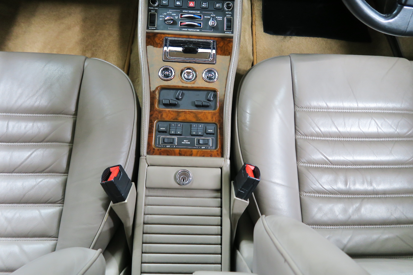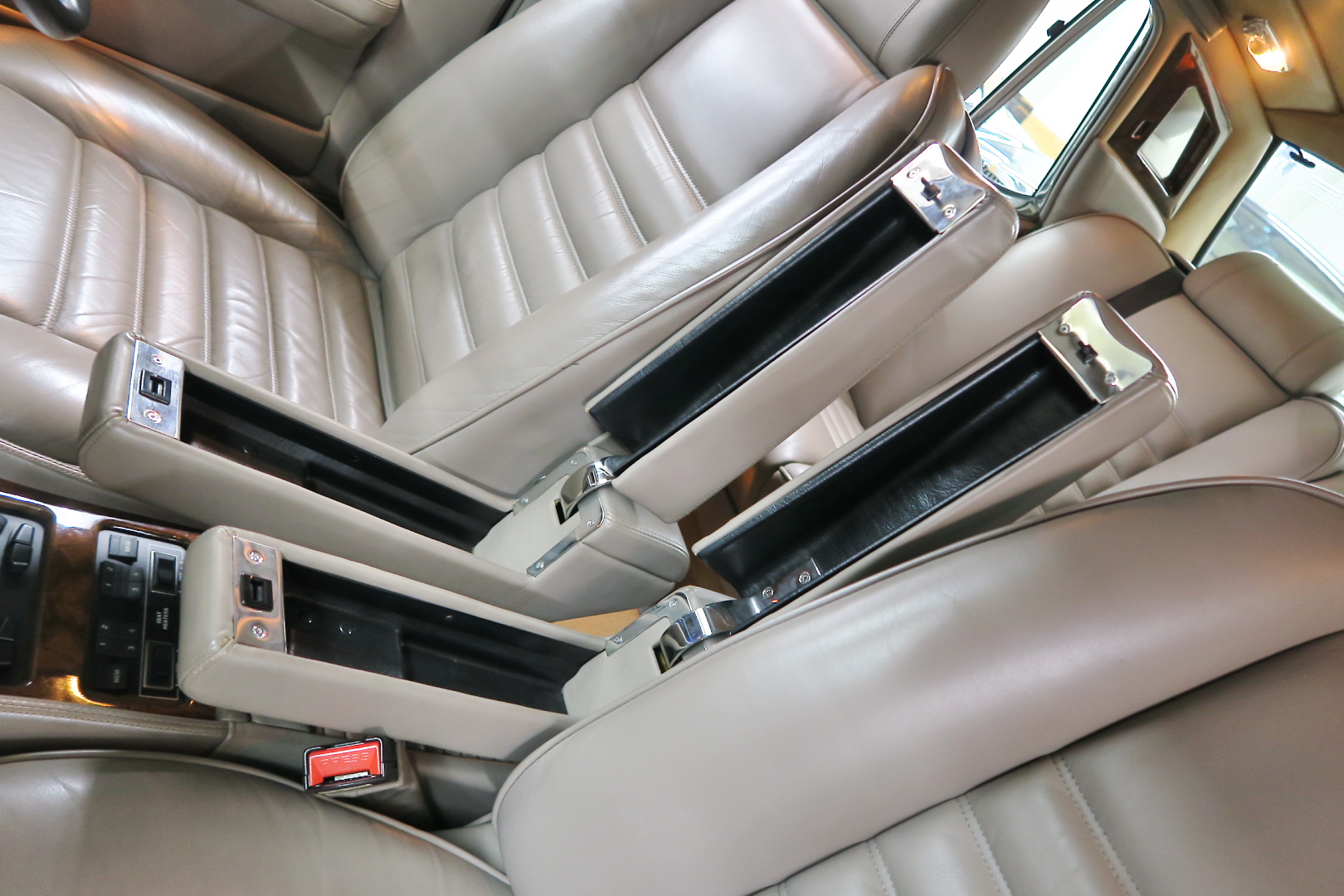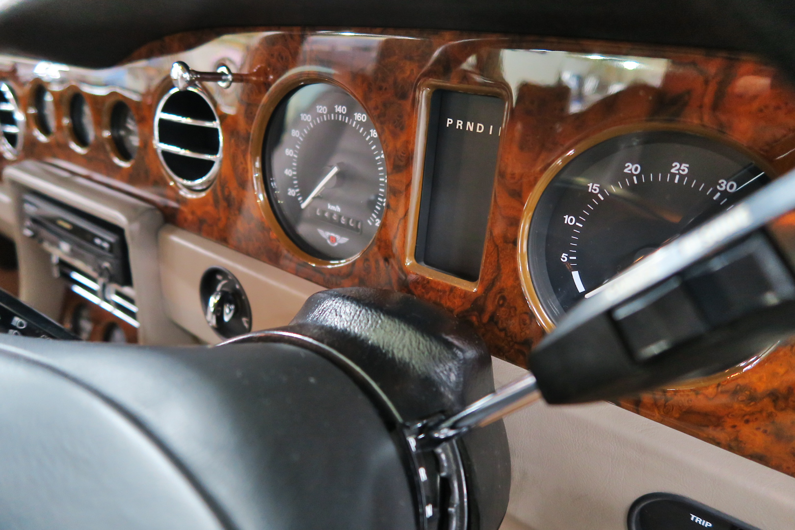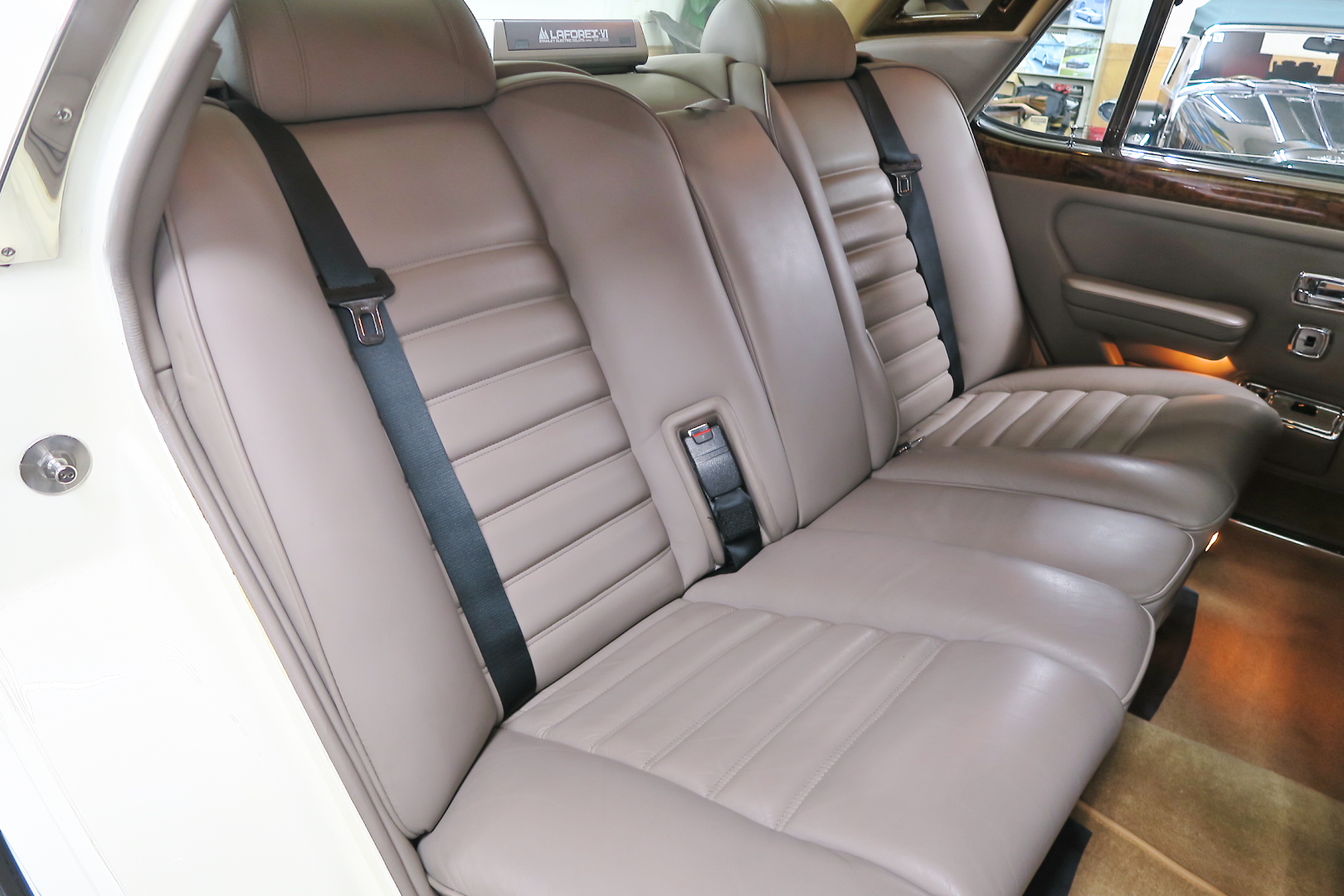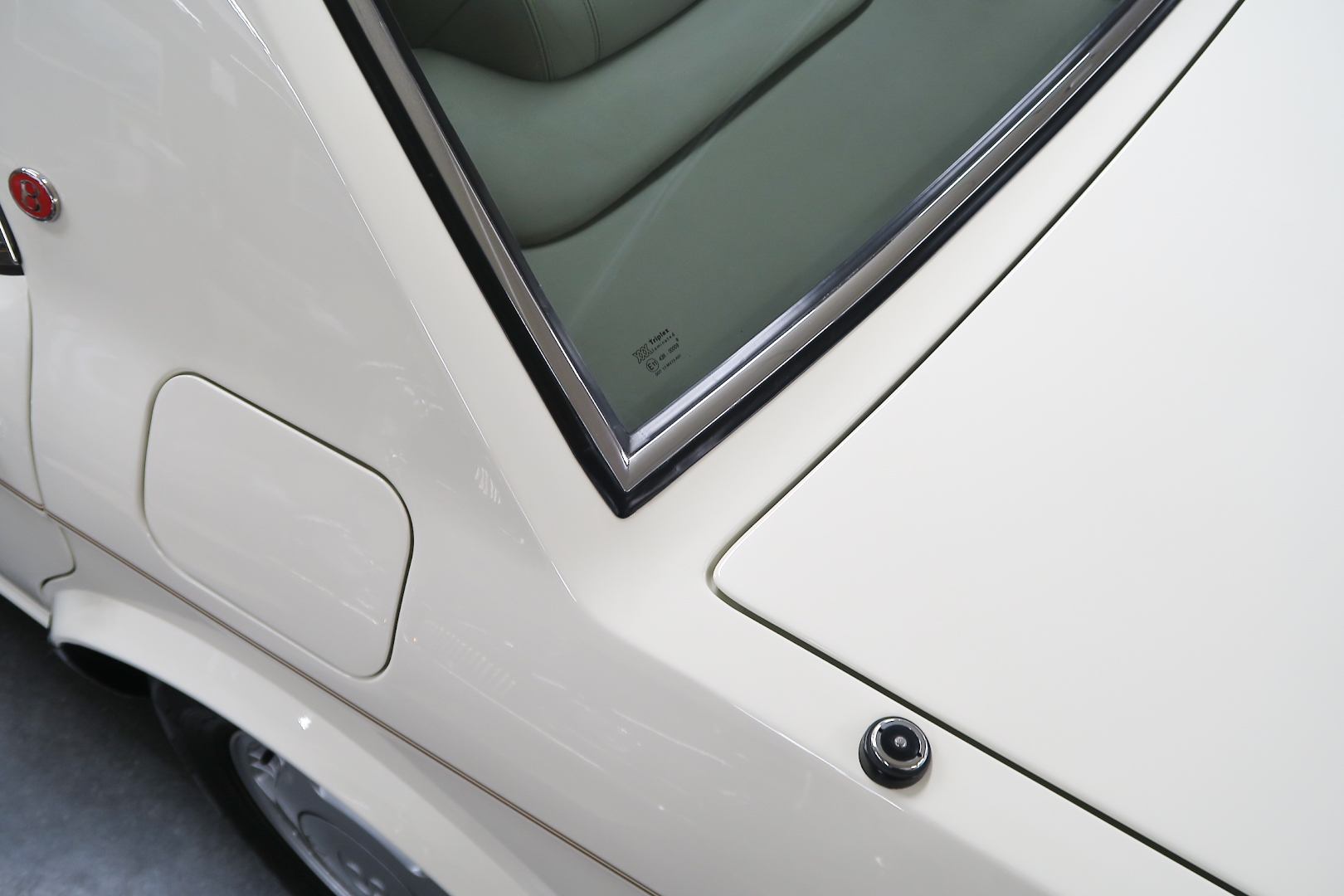 「ベントレー・ターボR」物語 「ロールス・ロイス」と「ベントレー」の生産比率(オーダー数)を逆転させた伝説の ホームラン王「ターボR」。 1965年から1980年の間に生産された「ロールス・ロイス」の4ドア・サルーン 「シャドウ」の生産台数は、「30.057台」、これに対し、ベントレーの4ドア・サルー ン、「T」は、その10分の1にも満たない、僅かに「2.289台」であった。 もはや、誰もが、ベントレーブランド自体を忘れそうになっていた。 おそらく、日本でも「ターボR」発売以前に「ベントレー」というブランドをよく知っ ていたのは、一部のエンスーな方だけであったろう。 この生産比率を逆転させる奇跡の原動力となったのが「ターボR」。 只者ではない。 ターボRの原点は、1982年に発表された「ミルザンヌ・ターボ」から始まる。 82年から85年の間に生産された、このモデルは、キャブ車のターボで、正直、 よろしくない。 トータル 516台生産されたらしいが、今となっては、当社も扱わない。 85年からは、名称を「ベントレー・ターボ」とし、インジェクション式のターボ付き となるが、本当の快進撃が始まるのは、1989年式モデルから、、 この年、エンブレムが「TURBO」から「TURBO R」に、、 外装を大型エアロパーツで武装、ヘッドライトが丸め四灯となる。 シートはバケットシート、タイヤは、ロールスの235サイズに対し、255サイズ、サス、 ショック共に「硬め」、最高速度は軽く200kmを超える、、明らかに、ロールスとは 違う、スポーツサルーン、、オーナードライバーズカーであることを強調。 しかも、時は、正にバブル絶頂期! これが 大ホームラン、名門「ベントレー」ブランドを復活してみせた。 1989年、ロールス社は年間生産台数が3000台を超えた(3254台)。 ハンドメイドの超高額モデルとしては大変な台数である。 1990年には、更に大掛かりな改良が行われ、シリーズ2へ進化、これが当車両、、 実際にベントレーがロールスの生産比率を超えたのは、この1990年のことである。 これは、「ベントレーS1」以来、実に45年ぶりの快挙であった。 この年のロールス社の年間生産台数(3274台)は、89年をも上回り、ベントレー 全盛期を迎えることになる。 90年当時のディーラー新車価格は、 ・ベントレーターボR 3100万円(税別) ・ベントレーラーボRL 3400万円(税別) ・R・RスパーU 3050万円(税別) ・R・RスピリットU 2750万円(税別) この価格設定からも、ロールスよりベントレーの方が高級、のイメージができあがる。 89年から91年にかけては、日本もバブル景気の全盛期、多くのベントレーが、正規 ディーラーのみならず、民間業者により並行車として輸入された。 当時は弊社とて、新車の「ターボR」を輸入したものだ。 が、流石に時間が経ってしまった、、近年では、この年式の極上個体のR・R、ベント レーは、ほとんど、見なくなった。 車自体は頑丈なのだが、中古車の流通価格が安くなりすぎて大切に扱われなくなったこ とと、仮に売り物がでても、その多くが、この円安で海外の業者に買われてしまってい ることが最大の原因であろう。 それが証拠に、先ほど、日本最大の掲載台数を誇る「カーセンサー」ネットで、 「ベントレー ターボR」と検索したところ、掲載車は、僅かに「4台」、それも、 内、2台は弊社の在庫車、、日本から消えた?? じゃなくても、今や当社の仕入基準を満たす個体は、ほぼない と言ってもよいほど、 さて、当車両のお話: ディーラー車 右ハンドル(90年モデル・90年8月登録) 当時は、「右H」は、完全にオーダー制で、注文される方も、10人にお一人くらい。 まだまだ「外車は左ハンドル」の時代であった。 当個体、複数オーナーであるが、弊社が、「2009年」に仕入れ、販売させて頂いた 元「シーザー認定号」、オーナー様は、2025年まで、16年間ご所有されていた。 今回は 終活の一環として、久しぶりの再入庫。 走行:「49.900km」 もちろん「実走」。 しかも、保管環境はバツグンで、販売させていただいた時と ほぼ変わりなし。 91年までに「ラッカー塗料」にありがちな「塗装クラック」箇所は、すでにリペア 対策済みで、クラックもなし。 ベース・コンディションは、極めて素晴らしい。 外装は、「アクリル・ホワイト」」 ソリッドのホワイト、真っ白ではなく、少し象牙色っぽい。 のちに「コーニッシュ・ホワイト」として復活した 良き時代のホワイト・カラー。 全長:「528cm」 ショートボディ、本来「RL」だけに付く「CピラーにBバッジ」、 純正フライングBマスコット 純正コーナーポール 当時の外装オプション全部付け 内装は、 「マッシュルーム」コノリーレザー。 オリジナル「コノリー」、ノンリペアで、ここまでキレイに残す。 マッシュルームというカラーを選択された方も極めて稀で、まず みない。 このカラー、汚れも目立たず、好きかな。 ウッドもノンリペアで 艶々っ オプションの「両面ウッド張りピクニック・テーブル」 この右テーブルを開いた箇所(ウッド面)