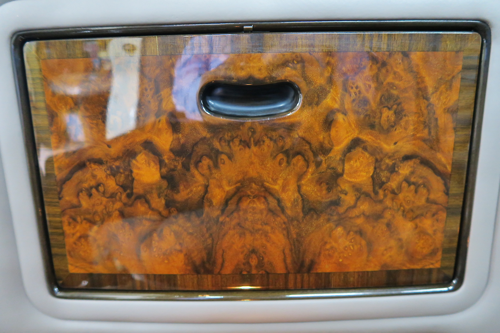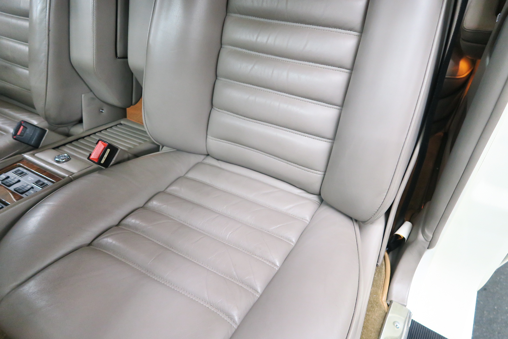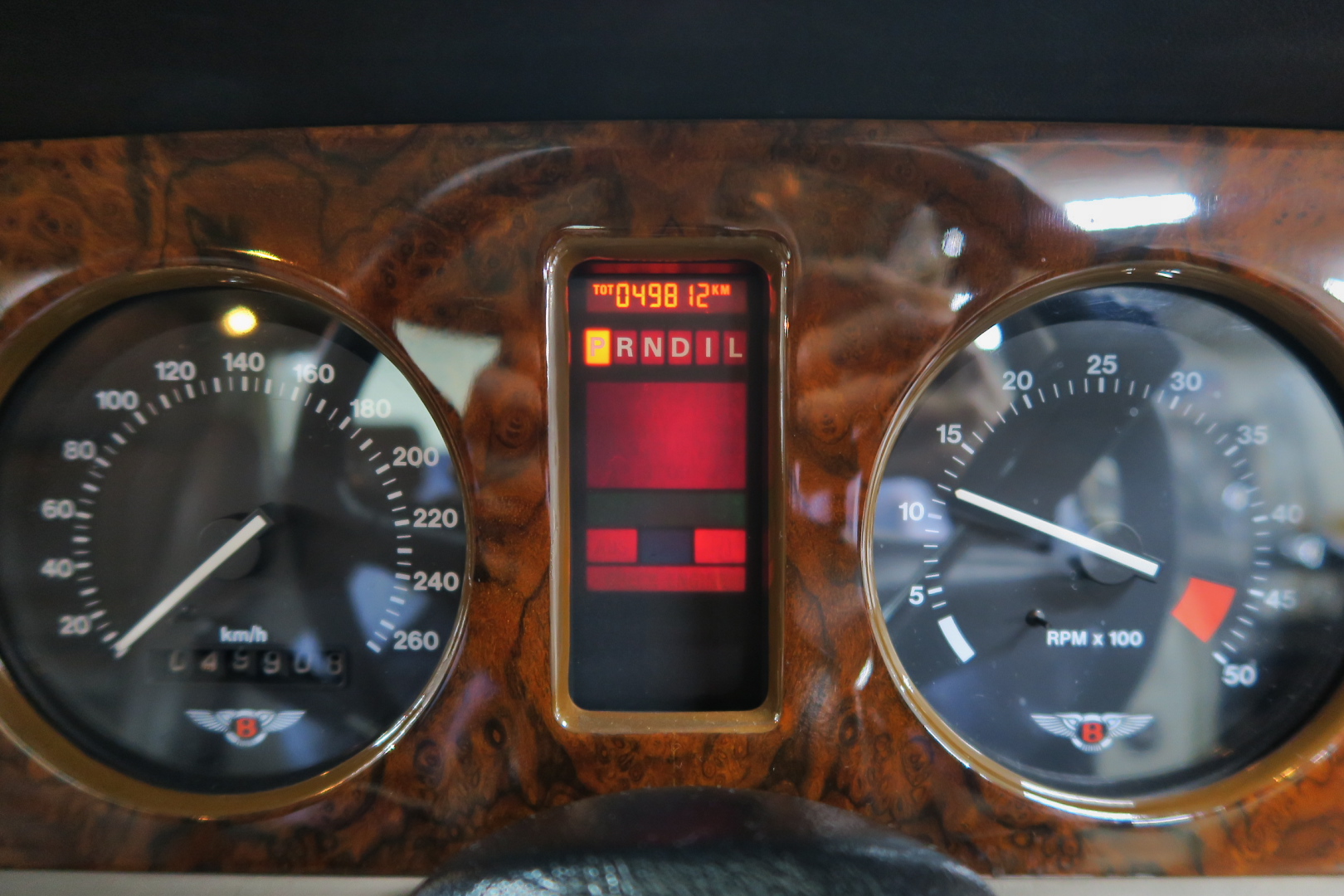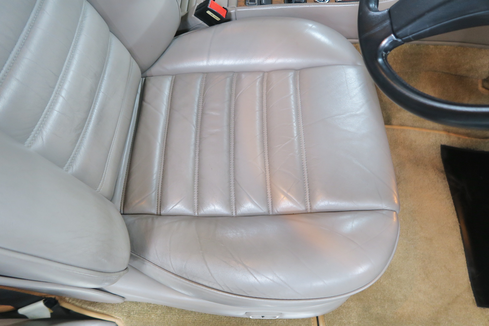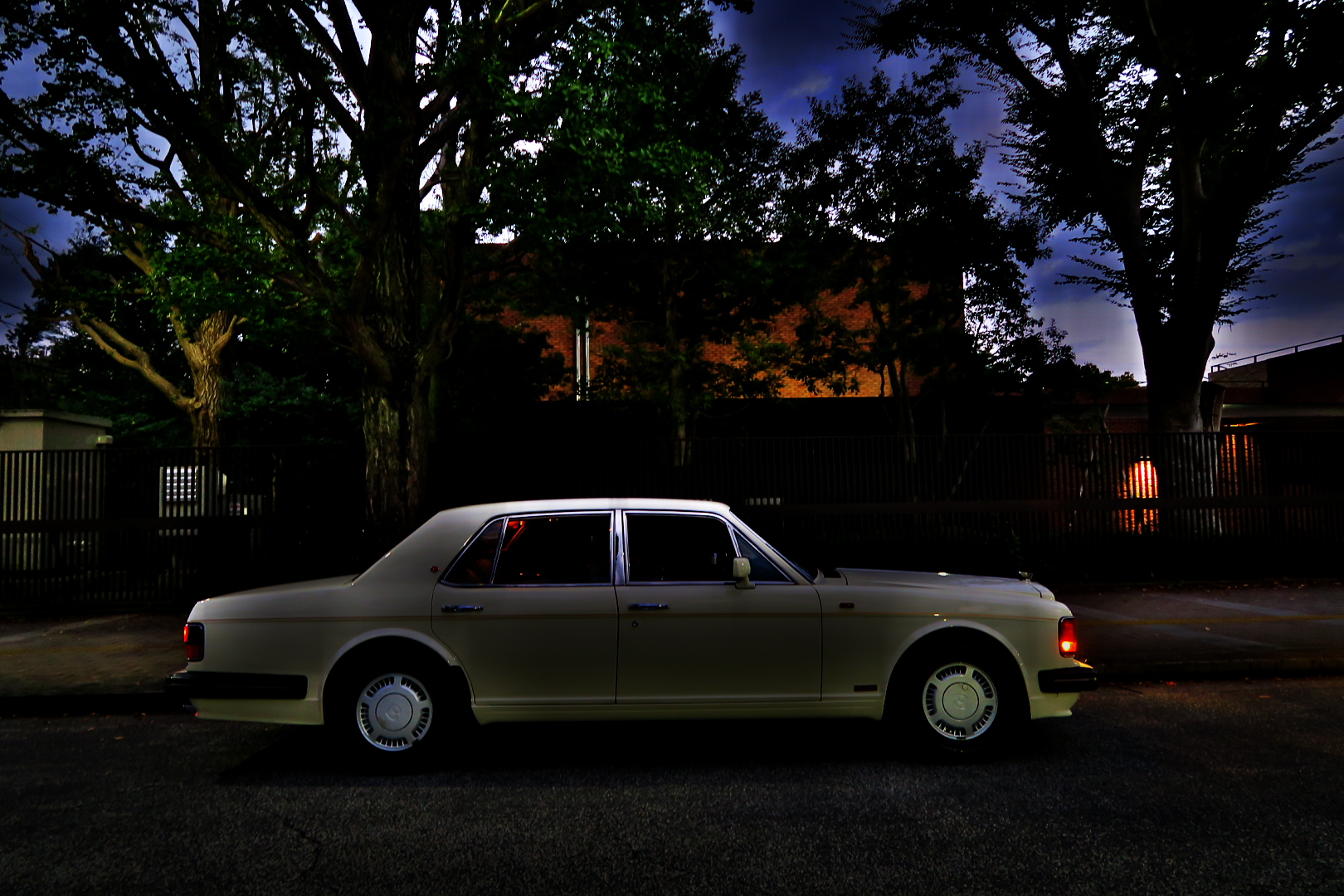 「ベントレー・ターボR」物語 「ロールス・ロイス」と「ベントレー」の生産比率(オーダー数)を逆転させた伝説の ホームラン王「ターボR」。 1965年から1980年の間に生産された「ロールス・ロイス」の4ドア・サルーン 「シャドウ」の生産台数は、「30.057台」、これに対し、ベントレーの4ドア・サルー ン、「T」は、その10分の1にも満たない、僅かに「2.289台」であった。 もはや、誰もが、ベントレーブランド自体を忘れそうになっていた。 おそらく、日本でも「ターボR」発売以前に「ベントレー」というブランドをよく知っ ていたのは、一部のエンスーな方だけであったろう。 この生産比率を逆転させる奇跡の原動力となったのが「ターボR」。 只者ではない。 ターボRの原点は、1982年に発表された「ミルザンヌ・ターボ」から始まる。 82年から85年の間に生産された、このモデルは、キャブ車のターボで、正直、 よろしくない。 トータル 516台生産されたらしいが、今となっては、当社も扱わない。 85年からは、名称を「ベントレー・ターボ」とし、インジェクション式のターボ付き となるが、本当の快進撃が始まるのは、1989年式モデルから、、 この年、エンブレムが「TURBO」から「TURBO R」に、、 外装を大型エアロパーツで武装、ヘッドライトが丸め四灯となる。 シートはバケットシート、タイヤは、ロールスの235サイズに対し、255サイズ、サス、 ショック共に「硬め」、最高速度は軽く200kmを超える、、明らかに、ロールスとは 違う、スポーツサルーン、、オーナードライバーズカーであることを強調。 しかも、時は、正にバブル絶頂期! これが 大ホームラン、名門「ベントレー」ブランドを復活してみせた。 1989年、ロールス社は年間生産台数が3000台を超えた(3254台)。 ハンドメイドの超高額モデルとしては大変な台数である。 1990年には、更に大掛かりな改良が行われ、シリーズ2へ進化、これが当車両、、 実際にベントレーがロールスの生産比率を超えたのは、この1990年のことである。 これは、「ベントレーS1」以来、実に45年ぶりの快挙であった。 この年のロールス社の年間生産台数(3274台)は、89年をも上回り、ベントレー 全盛期を迎えることになる。 90年当時のディーラー新車価格は、 ・ベントレーターボR 3100万円(税別) ・ベントレーラーボRL 3400万円(税別) ・R・RスパーU 3050万円(税別) ・R・RスピリットU 2750万円(税別) この価格設定からも、ロールスよりベントレーの方が高級、のイメージができあがる。 89年から91年にかけては、日本もバブル景気の全盛期、多くのベントレーが、正規 ディーラーのみならず、民間業者により並行車として輸入された。 当時は弊社とて、新車の「ターボR」を輸入したものだ。 が、流石に時間が経ってしまった、、近年では、この年式の極上個体のR・R、ベント レーは、ほとんど、見なくなった。 車自体は頑丈なのだが、中古車の流通価格が安くなりすぎて大切に扱われなくなったこ とと、仮に売り物がでても、その多くが、この円安で海外の業者に買われてしまってい ることが最大の原因であろう。 それが証拠に、先ほど、日本最大の掲載台数を誇る「カーセンサー」ネットで、 「ベントレー ターボR」と検索したところ、掲載車は、僅かに「4台」、それも、 内、2台は弊社の在庫車、、日本から消えた?? じゃなくても、今や当社の仕入基準を満たす個体は、ほぼない と言ってもよいほど、 さて、当車両のお話: ディーラー車 右ハンドル(90年モデル・90年8月登録) 当時は、「右H」は、完全にオーダー制で、注文される方も、10人にお一人くらい。 まだまだ「外車は左ハンドル」の時代であった。 当個体、複数オーナーであるが、弊社が、「2009年」に仕入れ、販売させて頂いた 元「シーザー認定号」、オーナー様は、2025年まで、16年間ご所有されていた。 今回は 終活の一環として、久しぶりの再入庫。 走行:「49.900km」 もちろん「実走」。 しかも、保管環境はバツグンで、販売させていただいた時と ほぼ変わりなし。 91年までに「ラッカー塗料」にありがちな「塗装クラック」箇所は、すでにリペア 対策済みで、クラックもなし。 ベース・コンディションは、極めて素晴らしい。 外装は、「アクリル・ホワイト」」 ソリッドのホワイト、真っ白ではなく、少し象牙色っぽい。 のちに「コーニッシュ・ホワイト」として復活した 良き時代のホワイト・カラー。 全長:「528cm」 ショートボディ、本来「RL」だけに付く「CピラーにBバッジ」、 純正フライングBマスコット 純正コーナーポール 当時の外装オプション全部付け 内装は、 「マッシュルーム」コノリーレザー。 オリジナル「コノリー」、ノンリペアで、ここまでキレイに残す。 マッシュルームというカラーを選択された方も極めて稀で、まず みない。 このカラー、汚れも目立たず、好きかな。 ウッドもノンリペアで 艶々っ オプションの「両面ウッド張りピクニック・テーブル」 この右テーブルを開いた箇所(ウッド面)
