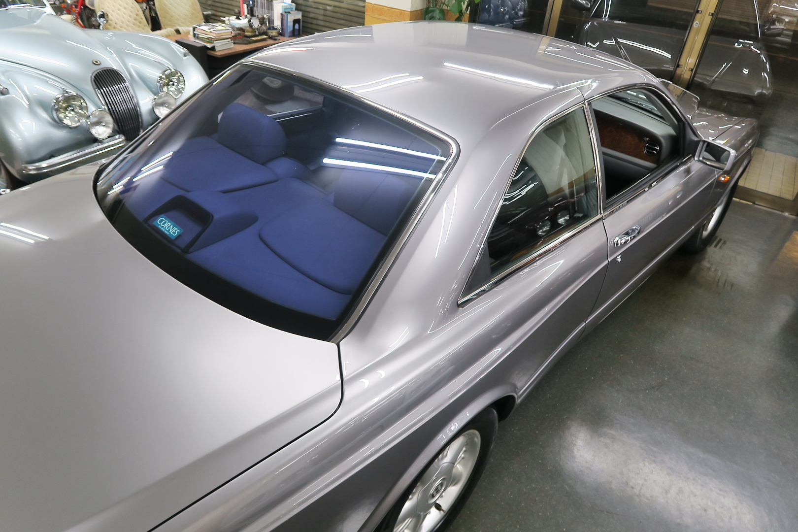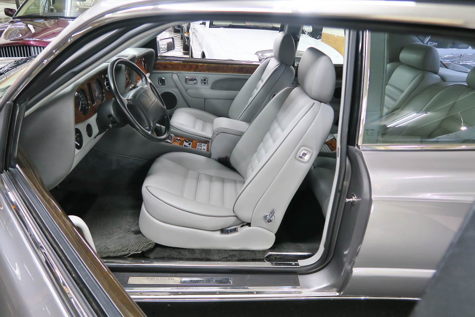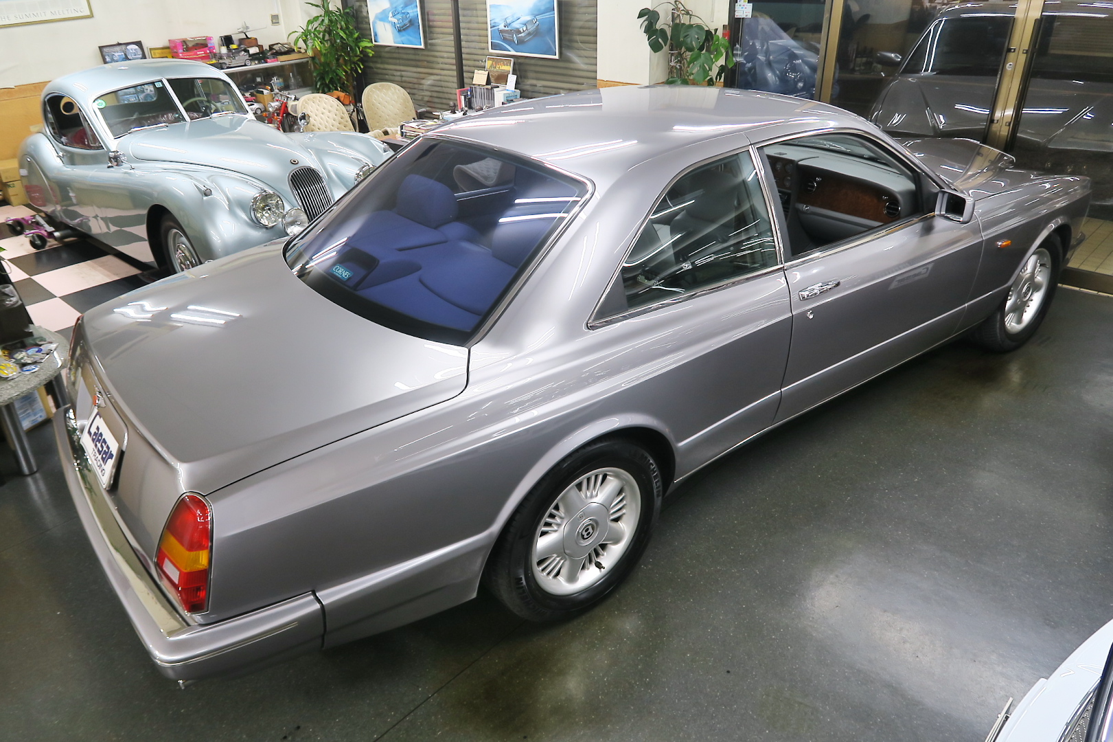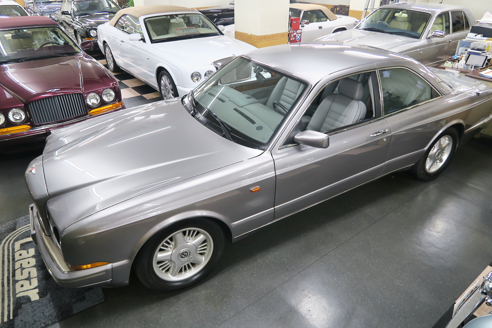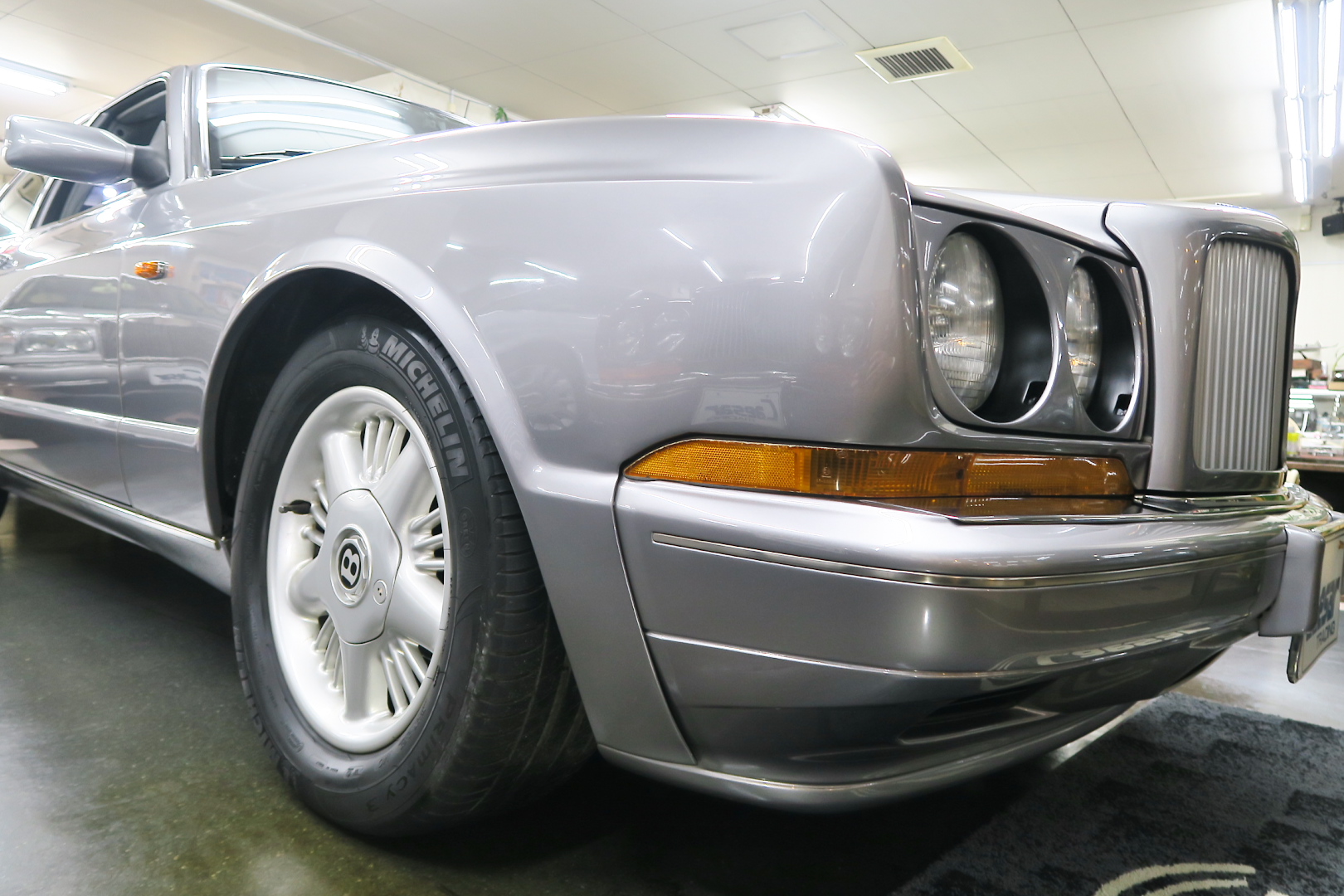 「コンチネンタルR物語」 このモデルを所有する場合、その「歴史」を知っておくことは必修となる。 解説: 「コンチネンタル」と「R」両方の名が付くモデルが登場するのは、1952年 (〜55年)、戦後ベントレーの最高傑作にして当時の世界最速(190km超) 2ドア4人乗りクーペ「Rタイプ・コンチネンタル」以来となる。 その名に恥じない「高性能2ドア・サルーン」の開発は、1980年の初頭から始まる 1980年は、「SZ系」モデルを発売した年であるが、、これは、ロールスの毎度の パターン、、新モデルが完成した直後、もしくは以前から、、継ぎのモデルの開発 を始める。 開発期間、通常10年ほど、、。 今回の開発モデルの社内コードは「ネパール」、、 この東洋のマイナーな国名を社内コード名にするのも、伝統で、例えば、クラウ ドは、「シャム」、シャドウは「チベット」、バンプラ4LRは、「ジャワ」 など、、。 ボディデザイナーは、「カマルグ」をピニンファリーナに外注デザインしたよう に、社外のデザイナーに協力を仰ぐ。 「インターナショナル・オートモビリア・デザイン」社の「ジョン」と「ケン」 この2名は、ベントレーに歴史上初めて最先端のコンピューターを駆使した設計 及び実験に基づく空力を計算しつくしたデザインを取り入れる。 *彼らは、アストンマーティン「V550」のデザイナーでもある。 まず、コンセプト・モデルとして 1985年、ジュネーブ・モーターショーで、コンセプト・モデル「プロジェクト90」 と命名されたモデルをお披露目、、。 総グラスファイバーの単なる お披露目モデルであったが、そのデザインは 1955年〜の「S1コンチネンタル」の現在版というコンセプトで、、 確かに、かの名車を彷彿させるものがあり、多くの反響を得る。 翌「1986年」には、ほぼデザインが完成、これは、「プロジェクト90」の進化型で デザインは大幅に変更、、ほぼ発売時と同じデザインという完成度であった。 内装デザインは、最先端では逆に困るため(ロールス・ベントレーのモデルは、 スイッチ・レイアウトのパターンを新型でも、さほど変えないため、古くからの ユーザーなら、説明書なしでも操作に困らない)社内チーフデザイナーである 「グラアム・ハル」が担当、、 バッチリ、伝統「ベントレー」の内装に仕上げる。 これもロールス・ベントレー初となる「総スチールのボディパネル」は、カマル グでも依頼していた下請け「パークシートメタル」社に依頼、、 ただし、ロールス社が要望する精度とクォリティは、他メーカーの依頼では絶対 にありえへんほど厳格で厳密であったという。 更に、ベントレーのパネルを製作してることは社外秘、宣伝に利用してはならず 無論、製作している工場スペースは、社外の人間に見せてはならない・ という条件付きであった。 日本で言うなら、まるで、、現在の御料車「センチュリー・ロイヤル」を製作し た関東自動車工業敷地内の秘密工場、あそこ、一般人は近づくこともできない。 エンジン・シャーシは、ロールス社で、ボディ溶接・下地作り・塗装・内装造作 ・仕上げは、我らが「マリナー・パークウォード」の職人が担当という分業制で あった。 何度もの試作と世界中での試乗テスト(極寒地や熱帯地まで)を繰り返し、、 やっと、1991年5月、ジェネーブのモーターショーで完成品モデルが発表される。 その名が、「コンチネンタル・R」! 「コンチ・・」と「R」、、2つの名が揃うのは、前述のとおり、 「Rタイプ・コンチ・・」が生産終了し1955年以来、実に 36年ぶりのことで あった。 弊社には、この「Rタイプ・コンチ By:HJマリナー」も住んでいるので 実車同士、見比べていただくと、その末裔こそが「コンチR」であることが ご理解いただけよう。 本家「Rタイプ・コンチ」は、総生産台数「208台」、内、「コンチR」がオマー ジュしたのは、「HJマリナー」のファーストバック「196台」。 日本に3台(内1台は不動)、世界的に見ても、「見比べできる」場所は、極めて 少ない。 このWネームが揃えば、世界中のファンが買わないわけにはいかない、、。 国内で、本格的に販売されるようになるのは、1992年からのことで、販売時の 新車価格: 3950万円(税別)! しかし、発売年が悪かった、、1992年は、完全にバブルが崩壊した年である。 それでいて、社用車には使えない2ドアのサルーン、、しかも超高額、、国内で 購入できる方は極限られた方々だけであった。 「コンチネンタル・R」は、2003年末まで生産され、 「ラスト・コーチビルド・モデル」となった。 総生産台数は、特殊モデルを除いて「1292台」。 1292台の内、右ハンドル:544台 左ハンドル:748台 私は、「コンチR」を、4つ の種類に分別している。 その1: 92年〜93年 ・初期モデル 431台 その2: 94年と95年 ・ダイレクトイグニッション 412台 その3: 96年と97年 ・水冷インタークーラー付 270台 その4: 98年〜03年 ・マトリックス・グリル 179台 当個体は、「その3」の「270台」に含まれるが、厳密には
