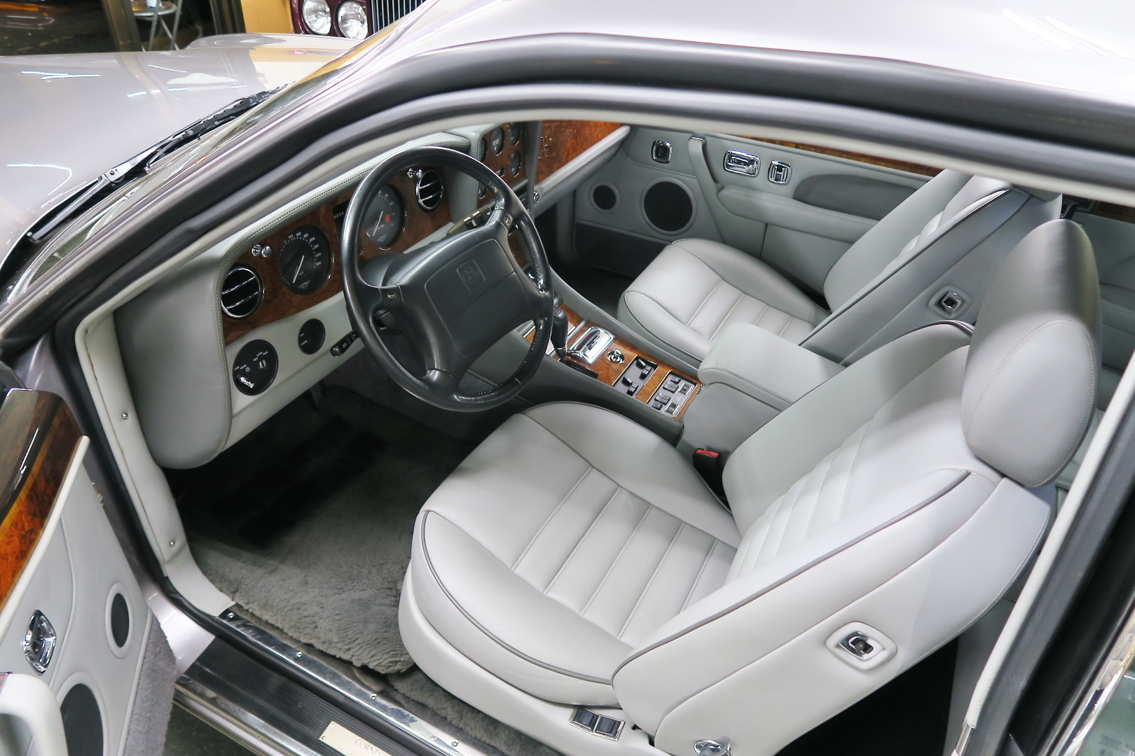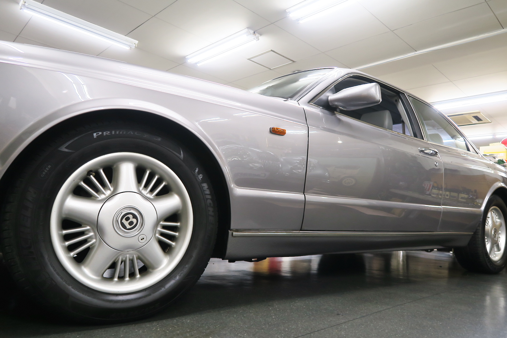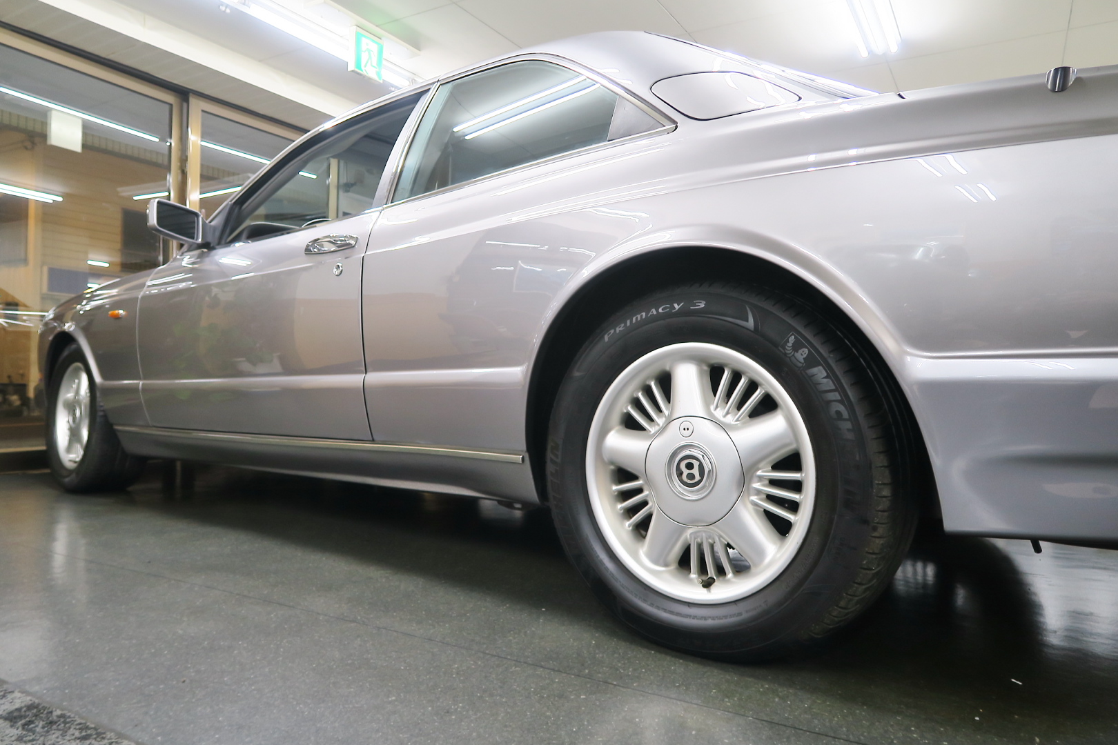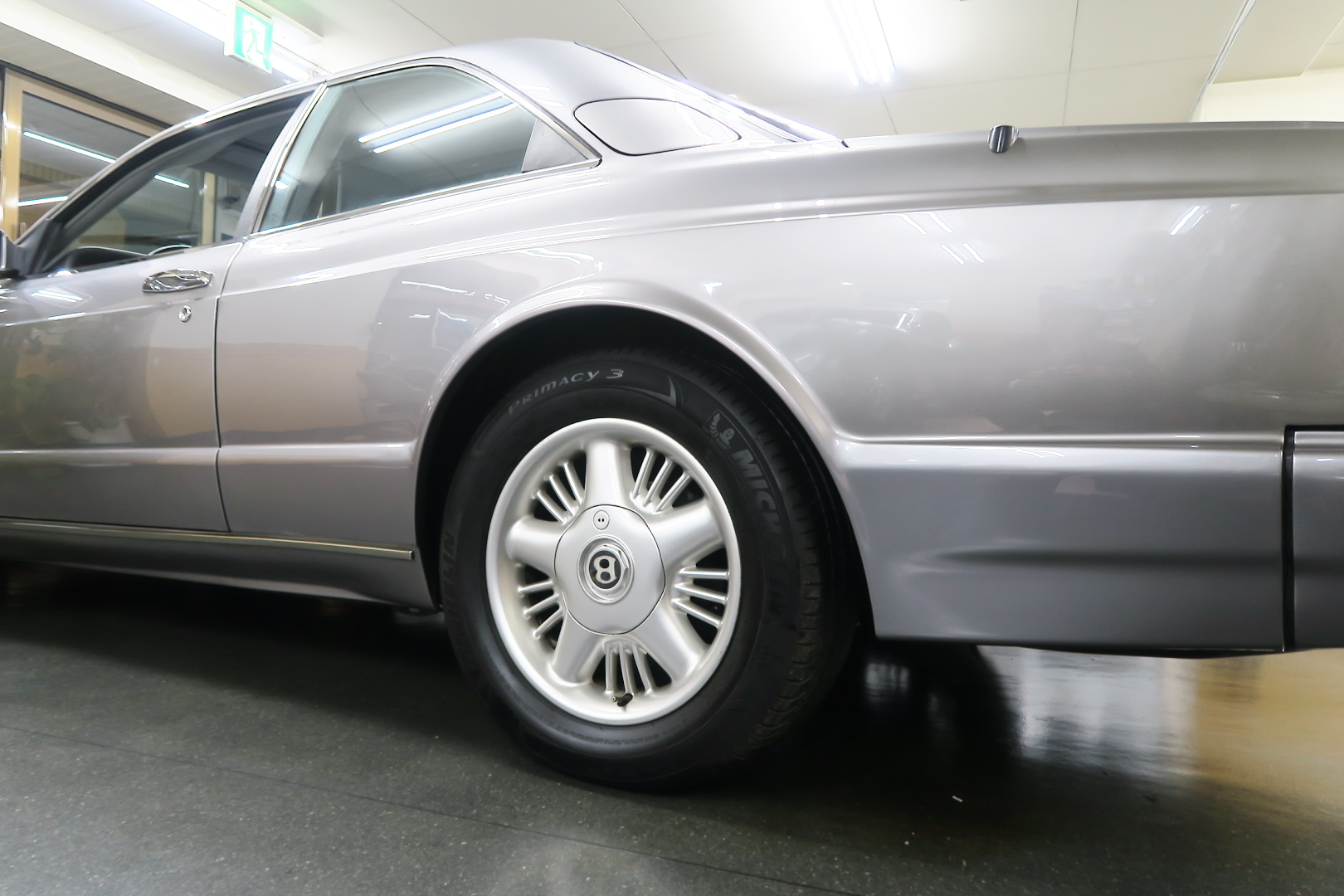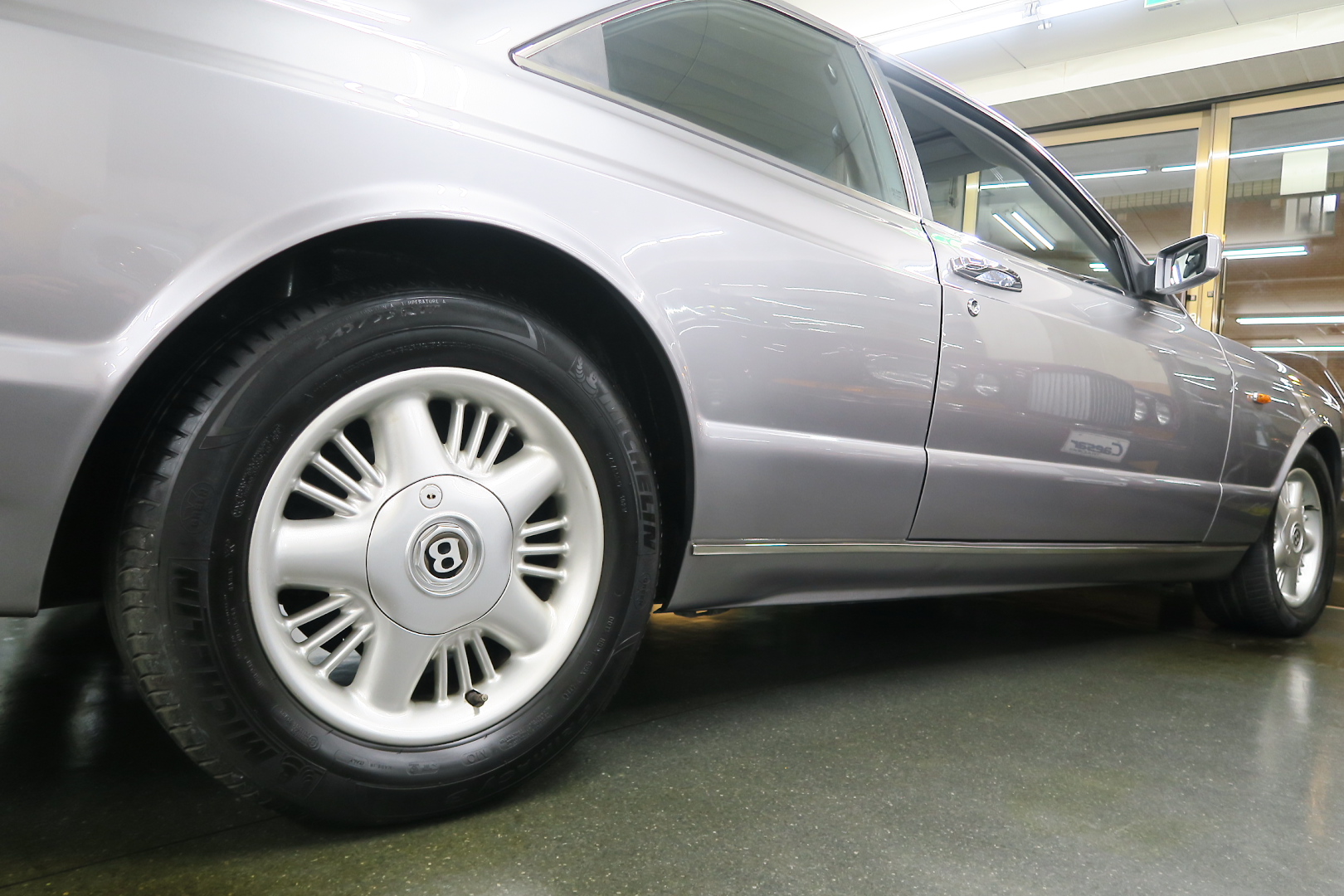 「コンチネンタルR物語」 このモデルを所有する場合、その「歴史」を知っておくことは必修となる。 解説: 「コンチネンタル」と「R」両方の名が付くモデルが登場するのは、1952年 (〜55年)、戦後ベントレーの最高傑作にして当時の世界最速(190km超) 2ドア4人乗りクーペ「Rタイプ・コンチネンタル」以来となる。 その名に恥じない「高性能2ドア・サルーン」の開発は、1980年の初頭から始まる 1980年は、「SZ系」モデルを発売した年であるが、、これは、ロールスの毎度の パターン、、新モデルが完成した直後、もしくは以前から、、継ぎのモデルの開発 を始める。 開発期間、通常10年ほど、、。 今回の開発モデルの社内コードは「ネパール」、、 この東洋のマイナーな国名を社内コード名にするのも、伝統で、例えば、クラウ ドは、「シャム」、シャドウは「チベット」、バンプラ4LRは、「ジャワ」 など、、。 ボディデザイナーは、「カマルグ」をピニンファリーナに外注デザインしたよう に、社外のデザイナーに協力を仰ぐ。 「インターナショナル・オートモビリア・デザイン」社の「ジョン」と「ケン」 この2名は、ベントレーに歴史上初めて最先端のコンピューターを駆使した設計 及び実験に基づく空力を計算しつくしたデザインを取り入れる。 *彼らは、アストンマーティン「V550」のデザイナーでもある。 まず、コンセプト・モデルとして 1985年、ジュネーブ・モーターショーで、コンセプト・モデル「プロジェクト90」 と命名されたモデルをお披露目、、。 総グラスファイバーの単なる お披露目モデルであったが、そのデザインは 1955年〜の「S1コンチネンタル」の現在版というコンセプトで、、 確かに、かの名車を彷彿させるものがあり、多くの反響を得る。 翌「1986年」には、ほぼデザインが完成、これは、「プロジェクト90」の進化型で デザインは大幅に変更、、ほぼ発売時と同じデザインという完成度であった。 内装デザインは、最先端では逆に困るため(ロールス・ベントレーのモデルは、 スイッチ・レイアウトのパターンを新型でも、さほど変えないため、古くからの ユーザーなら、説明書なしでも操作に困らない)社内チーフデザイナーである 「グラアム・ハル」が担当、、 バッチリ、伝統「ベントレー」の内装に仕上げる。 これもロールス・ベントレー初となる「総スチールのボディパネル」は、カマル グでも依頼していた下請け「パークシートメタル」社に依頼、、 ただし、ロールス社が要望する精度とクォリティは、他メーカーの依頼では絶対 にありえへんほど厳格で厳密であったという。 更に、ベントレーのパネルを製作してることは社外秘、宣伝に利用してはならず 無論、製作している工場スペースは、社外の人間に見せてはならない・ という条件付きであった。 日本で言うなら、まるで、、現在の御料車「センチュリー・ロイヤル」を製作し た関東自動車工業敷地内の秘密工場、あそこ、一般人は近づくこともできない。 エンジン・シャーシは、ロールス社で、ボディ溶接・下地作り・塗装・内装造作 ・仕上げは、我らが「マリナー・パークウォード」の職人が担当という分業制で あった。 何度もの試作と世界中での試乗テスト(極寒地や熱帯地まで)を繰り返し、、 やっと、1991年5月、ジェネーブのモーターショーで完成品モデルが発表される。 その名が、「コンチネンタル・R」! 「コンチ・・」と「R」、、2つの名が揃うのは、前述のとおり、 「Rタイプ・コンチ・・」が生産終了し1955年以来、実に 36年ぶりのことで あった。 弊社には、この「Rタイプ・コンチ By:HJマリナー」も住んでいるので 実車同士、見比べていただくと、その末裔こそが「コンチR」であることが ご理解いただけよう。 本家「Rタイプ・コンチ」は、総生産台数「208台」、内、「コンチR」がオマー ジュしたのは、「HJマリナー」のファーストバック「196台」。 日本に3台(内1台は不動)、世界的に見ても、「見比べできる」場所は、極めて 少ない。 このWネームが揃えば、世界中のファンが買わないわけにはいかない、、。 国内で、本格的に販売されるようになるのは、1992年からのことで、販売時の 新車価格: 3950万円(税別)! しかし、発売年が悪かった、、1992年は、完全にバブルが崩壊した年である。 それでいて、社用車には使えない2ドアのサルーン、、しかも超高額、、国内で 購入できる方は極限られた方々だけであった。 「コンチネンタル・R」は、2003年末まで生産され、 「ラスト・コーチビルド・モデル」となった。 総生産台数は、特殊モデルを除いて「1292台」。 1292台の内、右ハンドル:544台 左ハンドル:748台 私は、「コンチR」を、4つ の種類に分別している。 その1: 92年〜93年 ・初期モデル 431台 その2: 94年と95年 ・ダイレクトイグニッション 412台 その3: 96年と97年 ・水冷インタークーラー付 270台 その4: 98年〜03年 ・マトリックス・グリル 179台 当個体は、「その3」の「270台」に含まれるが、厳密には