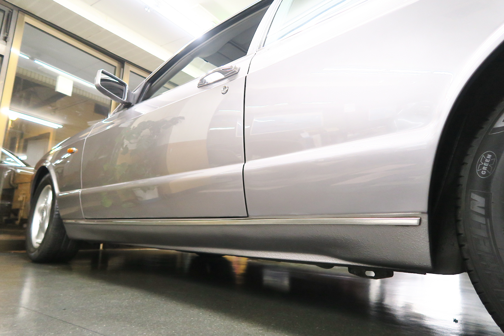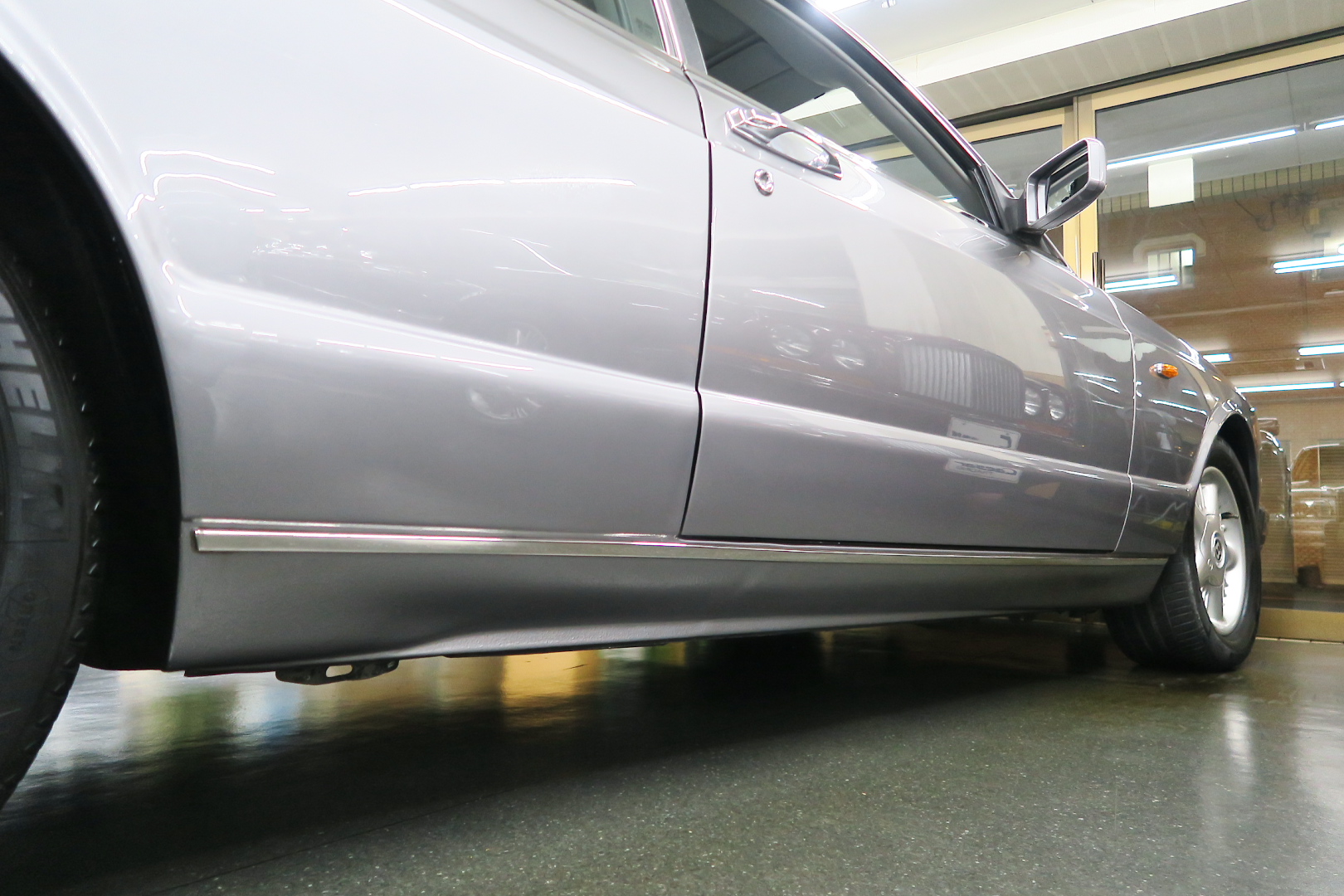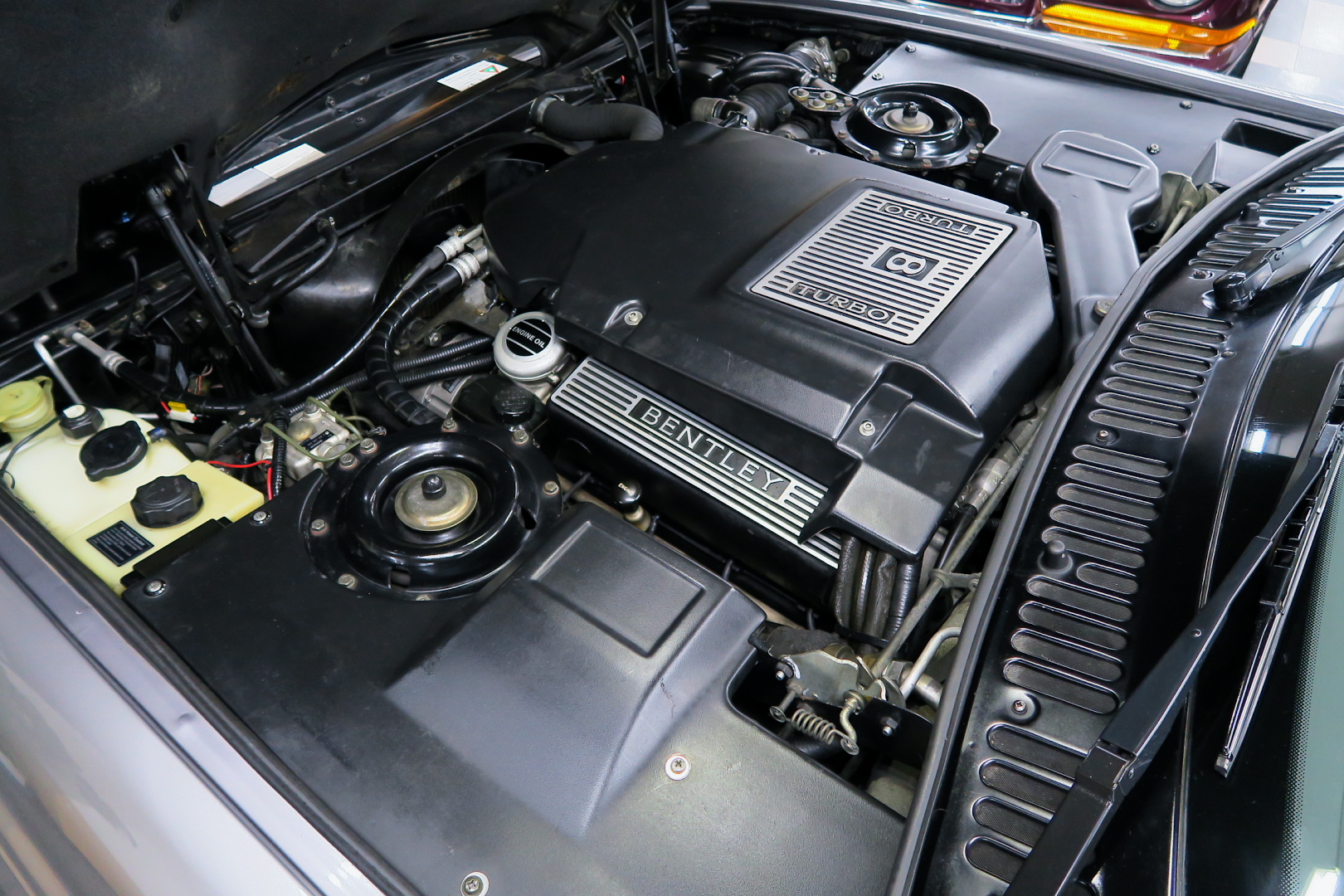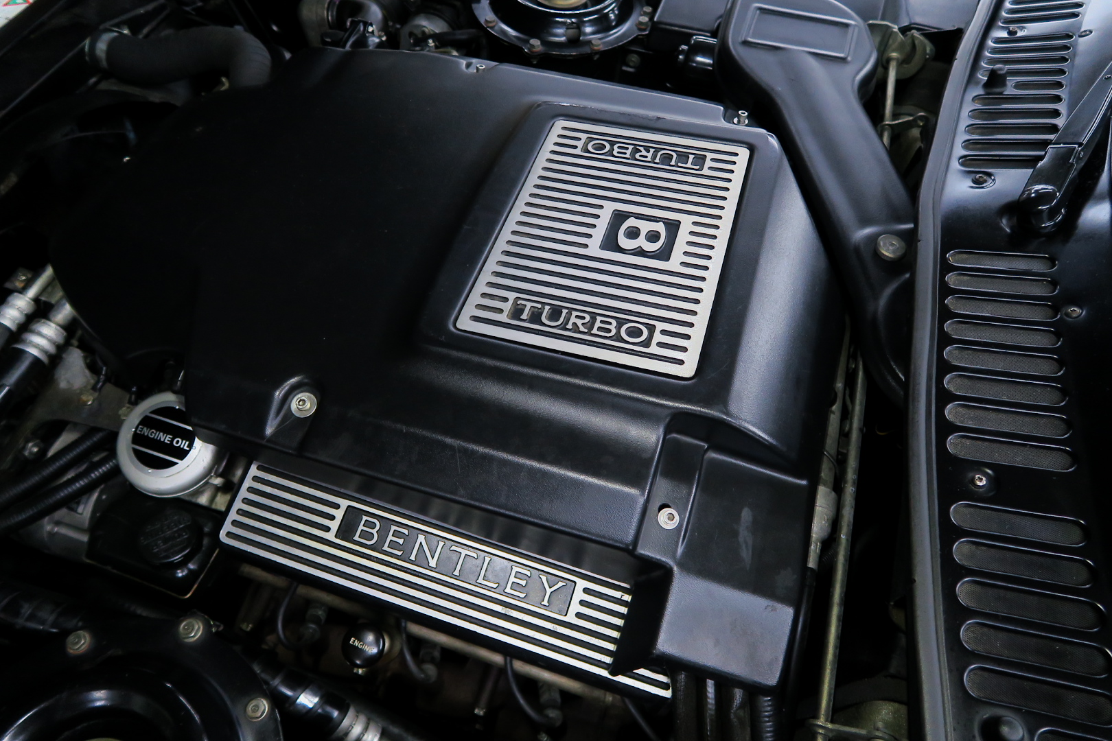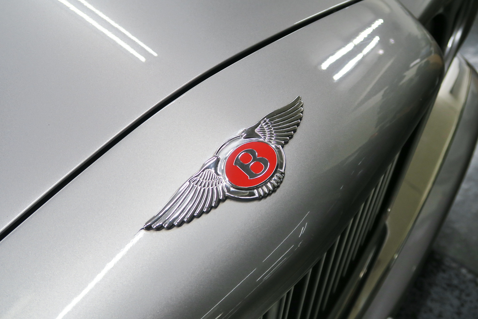 「コンチネンタルR物語」 このモデルを所有する場合、その「歴史」を知っておくことは必修となる。 解説: 「コンチネンタル」と「R」両方の名が付くモデルが登場するのは、1952年 (〜55年)、戦後ベントレーの最高傑作にして当時の世界最速(190km超) 2ドア4人乗りクーペ「Rタイプ・コンチネンタル」以来となる。 その名に恥じない「高性能2ドア・サルーン」の開発は、1980年の初頭から始まる 1980年は、「SZ系」モデルを発売した年であるが、、これは、ロールスの毎度の パターン、、新モデルが完成した直後、もしくは以前から、、継ぎのモデルの開発 を始める。 開発期間、通常10年ほど、、。 今回の開発モデルの社内コードは「ネパール」、、 この東洋のマイナーな国名を社内コード名にするのも、伝統で、例えば、クラウ ドは、「シャム」、シャドウは「チベット」、バンプラ4LRは、「ジャワ」 など、、。 ボディデザイナーは、「カマルグ」をピニンファリーナに外注デザインしたよう に、社外のデザイナーに協力を仰ぐ。 「インターナショナル・オートモビリア・デザイン」社の「ジョン」と「ケン」 この2名は、ベントレーに歴史上初めて最先端のコンピューターを駆使した設計 及び実験に基づく空力を計算しつくしたデザインを取り入れる。 *彼らは、アストンマーティン「V550」のデザイナーでもある。 まず、コンセプト・モデルとして 1985年、ジュネーブ・モーターショーで、コンセプト・モデル「プロジェクト90」 と命名されたモデルをお披露目、、。 総グラスファイバーの単なる お披露目モデルであったが、そのデザインは 1955年〜の「S1コンチネンタル」の現在版というコンセプトで、、 確かに、かの名車を彷彿させるものがあり、多くの反響を得る。 翌「1986年」には、ほぼデザインが完成、これは、「プロジェクト90」の進化型で デザインは大幅に変更、、ほぼ発売時と同じデザインという完成度であった。 内装デザインは、最先端では逆に困るため(ロールス・ベントレーのモデルは、 スイッチ・レイアウトのパターンを新型でも、さほど変えないため、古くからの ユーザーなら、説明書なしでも操作に困らない)社内チーフデザイナーである 「グラアム・ハル」が担当、、 バッチリ、伝統「ベントレー」の内装に仕上げる。 これもロールス・ベントレー初となる「総スチールのボディパネル」は、カマル グでも依頼していた下請け「パークシートメタル」社に依頼、、 ただし、ロールス社が要望する精度とクォリティは、他メーカーの依頼では絶対 にありえへんほど厳格で厳密であったという。 更に、ベントレーのパネルを製作してることは社外秘、宣伝に利用してはならず 無論、製作している工場スペースは、社外の人間に見せてはならない・ という条件付きであった。 日本で言うなら、まるで、、現在の御料車「センチュリー・ロイヤル」を製作し た関東自動車工業敷地内の秘密工場、あそこ、一般人は近づくこともできない。 エンジン・シャーシは、ロールス社で、ボディ溶接・下地作り・塗装・内装造作 ・仕上げは、我らが「マリナー・パークウォード」の職人が担当という分業制で あった。 何度もの試作と世界中での試乗テスト(極寒地や熱帯地まで)を繰り返し、、 やっと、1991年5月、ジェネーブのモーターショーで完成品モデルが発表される。 その名が、「コンチネンタル・R」! 「コンチ・・」と「R」、、2つの名が揃うのは、前述のとおり、 「Rタイプ・コンチ・・」が生産終了し1955年以来、実に 36年ぶりのことで あった。 弊社には、この「Rタイプ・コンチ By:HJマリナー」も住んでいるので 実車同士、見比べていただくと、その末裔こそが「コンチR」であることが ご理解いただけよう。 本家「Rタイプ・コンチ」は、総生産台数「208台」、内、「コンチR」がオマー ジュしたのは、「HJマリナー」のファーストバック「196台」。 日本に3台(内1台は不動)、世界的に見ても、「見比べできる」場所は、極めて 少ない。 このWネームが揃えば、世界中のファンが買わないわけにはいかない、、。 国内で、本格的に販売されるようになるのは、1992年からのことで、販売時の 新車価格: 3950万円(税別)! しかし、発売年が悪かった、、1992年は、完全にバブルが崩壊した年である。 それでいて、社用車には使えない2ドアのサルーン、、しかも超高額、、国内で 購入できる方は極限られた方々だけであった。 「コンチネンタル・R」は、2003年末まで生産され、 「ラスト・コーチビルド・モデル」となった。 総生産台数は、特殊モデルを除いて「1292台」。 1292台の内、右ハンドル:544台 左ハンドル:748台 私は、「コンチR」を、4つ の種類に分別している。 その1: 92年〜93年 ・初期モデル 431台 その2: 94年と95年 ・ダイレクトイグニッション 412台 その3: 96年と97年 ・水冷インタークーラー付 270台 その4: 98年〜03年 ・マトリックス・グリル 179台 当個体は、「その3」の「270台」に含まれるが、厳密には