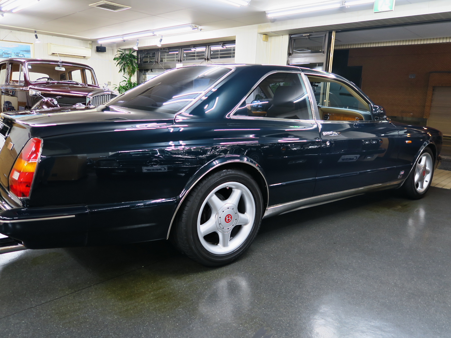 外色は、「ブラック・エメラルド」。 96年に追加された当時の新色。 基本ブラック・メタリックにエメラルドのグリーンが混ざる。 メタリック粒子は細かく、ギラついたカラーではない。 そして、太陽光のもとでは、やんわりとグリーンが浮かびあがる、、なんとも上品なカラーである。 過去に飛び石後など、気になった箇所は塗装仕上げ済みで、コンディションも極めて よろしく、手直しを 要す箇所は見受けられない。 「R400」の6台、、うち3台ほど過去に扱わせて頂いたが、同じカラーの個体はなかった。 全長は、537cm、、「コンチR」と同じ 「R400」の魅力の一つが、このサイズであろう。 「コンチT」になると、10cmショート、、つまり、リア・シートが狭い。が、「R400」は、 Tエンジンでありながらリア・シート空間も十分に広い。=実用度が高いのだ。 おまけに、交換用クッションが残されている。 これは、通常のリア用センターコンソールと交換できる クッションで、それに交換すると、リア・シートに子供3人(法律的に12歳未満なら)乗ることができる。 前述したが、「R400」のみの装備、、「ステンレス・モール」、、これがいい! 単純にキレイ、、眺めていて飽きない。 これは、「MPW」お得意の芸だ。 あと、一目で「R400」だ・・と判断できる電動格納式ミラー、、形状からして他とは異なる。 コンチGTが販売される2004年、、、それ以前のベントレーモデルでは、唯一、このモデルだけが 電動格納式である。(特注すれば可能だったが、オプションには存在しない) 狭い日本、、残念ながら、あると便利、、 このミラー、内緒であるが、アウディのものを流用している。 だから、もし、壊れても アウディ・パーツで直せば安い。 ただ、ボディとの台座部分は、専用ハンドメイド物で、この部分は高そうだ。ぶつけなければOK。 「コンチTホイール」 97年の「コンチR」は、17インチ、7.5Jホイールにタイヤは、255サイズ 「R400」のホイールは、「コンチT」の18インチ、9.5Jホイール、「T」は、これに285サイズ のタイヤを履いている。 当時(今でも)、この「T」ホイールのデザインは人気で、多くの方が、履き替えたいと考えた、、、 しかし、まずは、その価格を聞いて、9割の方が諦める、、、 残った1割の方も、、285サイズのタイヤのまま、コンチRやターボRに履いてしまうと、フロントが タイヤを切ったさいにフェンダーに当たってしまう。で、諦めていた。 しかし、「R400」は最初から「T」ホイール、、なぜ? それは、4本とも「255」サイズのタイヤを履かせていたから、、、それなら、確かに当たらない。 乗り心地は、タイヤが細い分 路面振動を拾わないので、「T」より、静か、シャープな乗り心地 となっている。 新車時は、「ピレリー」を履いていたが、今では選択肢も多く、当個体の場合、 255サイズ、45扁平 加重指数103Y の ブリジストン「ポテンザ」を選択している。 このタイヤは、大正解だ! 走りが やばい。 フェンダーにも当たらないし、、見た目も好いし、オリジナル時の「ピレリー」より、遥かに 高性能、、 乗り心地は、3段階UPである。 「R400」の豪華版コンチRのコンセプトは、マフラーを見ると分かる。 コンチTエンジンにも係わらず、「T」の大口径1本だしマフラーではなく、「R」と同じ、 デュアル・マフラー、、かっ飛び仕様ではなく、あくまで、ロング高速ツアラー、、 もしくは、街乗り仕様なのだ。 その気になれば、パワーありますけど、それがなにか?、みたいな奥ゆかしさ、これが「R400」。 メッキ・グリルとフライングBは、オプション。 メッキ・グリルは、ステン・モールに 好く似合っている。 これだけで、他のコンチRやTとは一線の違う雰囲気を醸し出す。 トランクリッドには、左に「CONTINENTAL R」、右に「400」のプレート、 Fフェンダー左右には、「ユニオンジャック」と「400」プレート、、激渋! |
