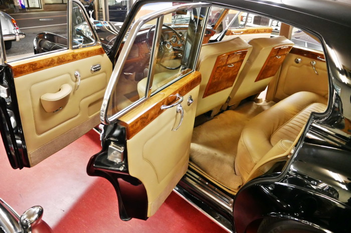 | エンジンは、ロールス社・新設計V8エンジン。 ロールス社のV8エンジンは、1905年にも試作、完成までされているので、これで2番目となるが、 このV8は、まったくの新設計。 アルミ合金製、6230cc OHV、SUツインキャブ、、、 このエンジン、オーナー、もしくはメカニックが、間違った管理、整備で壊さないかぎり、壊れようが ないので、説明は割愛。 この時代に 早くも サスの硬さも調整ができる。 ハンドルポスト左脇にスイッチがあり、ノーマルとハイ(高速走行時などで利用)を切り替えられる。 クラウドのメカニズムで、特筆すべきは、油圧のブレーキ廻りであろう。 4輪ともに、ドラム・ブレーキではあるが、前輪の油圧系パーツは、「ロッキード」製、後輪パーツには、 「ガーリング」製のものが使用されている。 更に、これに、「メカニカル・サーボ・ブレーキ」の機能が加わる。 戦前の名車「イスパノ・スイザ」が特許をもつ、「メカニカル・サーボ」、、、ロールス社は、1925年 のファンタム1から使用している。 国内各所で行なわれているクラシックカー・ラリーやフェスティバルに戦前のロールスが、まるで普通に 参加して走行しているが、それは、このブレーキシステムの恩恵によるところも大きい。 このシステムは、エンジンの回転(ドライブシャフトの回転)からパワーを取り出し、ブレーキの効きを 増大(アシスト)するもので、簡単に言ってしまえば、パワーブレーキだ。 よって、ドライブシャフト回転数が高い(走行速度が速い)ほど、アシスト力は増大する。 シャドウ以降に採用されるシトロエン特許のハイドロとは、まったくシステムが異なる。 私個人の感想だが、ほんの30年ほど前まで、このブレーキシステムを多くの日本人メカニックは、完全 には理解していなかったのではなかろうか・と思う。 なにせ、当時は、クラウドのブレーキは、効きが甘くて怖いのが、普通、、なんていっていたものだ、、。 これが、バブル景気のお陰で、多くのクラウドを含むクラシックロールスが海外から輸入され、メカニック も数多くの個体の整備が出来るようになった・・・お陰で当社でも完全に整備できるようになった。 正しく整備されたクラウドのブレーキは、まったく恐いものではない。逆に安心。 かく云う私も、戦前の「ファンタム1」を所有しているが、これが、今でも普通に乗れるのだ。 戦後の「クラウド3」モデルのブレーキなど、私にしてみれば、最終進化系もの、不安?ってなんですか? ご納車時には、メカニカル・サーボのシステムの説明と実際に走行した上で、その特性を体感していただい ておくと、いっそう普通に乗れる。 極めて興味深いブレーキ・システムながら、これを採用されたモデルは「ファンタム6」以外では、 「クラウドV」が最後となった。 当個体、 エンジン・ルームは、レストアされていない。 オリジナルでキレイなのだ。 このあたりのキレイさが、当個体のベース・コンディションの良さを物語っている。 とくかく素性の よくない個体は、いくら金を掛けても 無駄。 世の中には、どうにもならない個体も 普通に売られていたりするが、、それを膨大な金額をかけて レストアするくらいなら、完成車を買ったほうが安い。 レストア費用は、1千万円「から」だ。 当個体が前述の「乗るためのクラウドV」という理由は、 ・オルタネーター近代物に交換 (直流から交流に) ・ラジエーターに「サブ・タンク」増設 ・近代「コンプレッサー」に ・大型電動ファン 2基 増設 などなど エンジン・ルーム内をのぞき込めば、一目瞭然。 前回ご納車時(平成23年だけど)、大掛かりな整備を弊社ファクトリーで施してある。 そして、前述のとおり、今回ご購入いただいたオーナー様には、「特典」で、 「元・陛下のメカニックの 遠慮のない怒涛の無料整備」をプレゼント。 これは、この日本では、唯一無二、最高の特典である。 実際に走らせて見る: なんという乗り心地の良さ、、 ふわっとしてはいるが、バツグンのボディ剛性のお陰で、どこか どっしりもしておる。 加速も十分 4速の位置だけで、スタートの段階から、どこでも走れるが、馴れてきたら、発進時だけは、 3速が よかろう。 3速で発進して、ちょいとギアを引っ張ったら、4速にシフトUP、、 この走り方をすれば、「クラウドV」が、「速い」車だと理解できる。 ブレーキング時も同じことで、4速から3速にシフトダウンして エンジンブレーキも併用するのが ベスト。 あと、ロールス乗りは、左足ブレーキを覚えるべし。 (理由は、いろいろあるので、、聞いて) 「クラウドV」、普通に走らせているだけで、 それ すなわち、至福。 さあ、今度は、あなたの番、 こうして「至福」は次の代に引き継がれていく。 車好きなら間違いないが、 長い人生が終わるとき、、二度と開けない瞳を閉じる その 一瞬前、、 走馬灯のように過去に乗ったクルマたちが脳裏をよぎるだろう、、 そして、きっと強烈に思い出すに違い