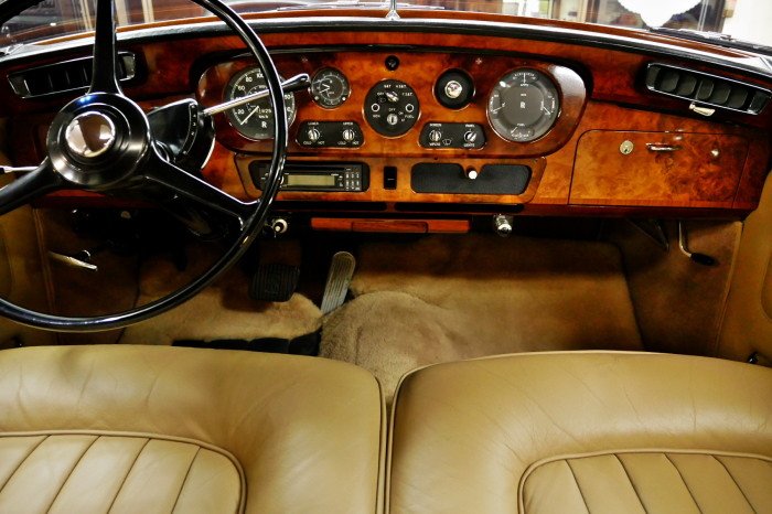 「シルバー・クラウドV」 1955年~1966年の間に生産された「クラウド」シリーズのファイナル・モデル 「シルバー・クラウドV」である。 「シャーシ・オン・ボディ」伝統的クラシック・ロールス、最後のモデルとなる。 「シルバークラウド」と名が付くモデルは、1955年4月に発表された「クラウド1」 から始まる。 戦後、1949年発売、「シルバードーン」で始まったロールス・ロイス・スタンダード・ サルーンの新型後継モデル。 (ベントレーは、1946年のマーク6から) 「クラウド」とは、「雲」、「煙」などの意味を持つが、「シルバーゴースト」から続く 伝統の幻想的「シルバー・ほにゃらら」シリーズである。 「クラウド」の「シリーズ」を おさらいしておこう。 ボディデザインは、「ジョン・バラッチリー」師匠 1913年・生まれの ロンドンっ子、デザイン工学を学び、1935年、名門コーチビルダー 「ガーニィ・ナッティング」社に入社。 チーフデザイナーにまで のし上がり、1940年、「ロールス社」に移籍。 次々と「名車」を生み出す、、 ・「マーク6」 ・「Rタイプ」 ・「クラウド」1.2.3. ・「シャドウ1」 ・「コーニッシュ」 天才である。 晩年、BMWに買収された「ロールス」社が新作「NEWファンタム」を作る前、 ジョンにデザイン画を数枚持ち、意見を聞きに行ったほど、、 数枚のデザイン画を観た「ジョン」は、後に こう語っている、、 「1枚しか良いものはなかった」 「彼ら(BMW社)が、作ったのが、、それだよ」と。 ボディのプレスは、下請け「プレスド・スティール・カンパニー」に外注。 もちろん、尋常じゃないほど厳格で厳密な指示書のもと、社外秘。 ロールス社が求めた「精度」を実現できる会社は、ほとんど存在しなかった。 開閉部は全て = 「ドア.4枚」「ボンネット」「トランク」「給油口」 「アルミ」製で、他ボディは、「スティール」製。 これが、「スタンダード・スティール・サルーン」モデルと呼ばれる由縁である。 「クラウド1」は、 1955年〜59年に生産 「シルバードーン」と同じ、直6・4887ccのエンジンを積んだ車ではあったが、 ボディデザインの変更以外にも、機関系には、大幅な改良が加えられロールス社・ 直6モデルの集大成、、しかも、最後の直6エンジンを積んだモデルとなった。 1956年からは、オプションで、「パワステ」と「クーラー」が選べるように。 「クラウド1」の生産台数は、「2238台」(+ロングホイール:122台)。 1959年9月、新設計、総アルミ合金製V8・6230ccエンジンを積んだ 「クラウドU」がデビューする。 この時点からロールス社のエンジンは、このV8 一種類のみとなる。 このV8エンジンこそ、数十年後の現行モデルにまで使い続けられることになる伝説的 エンジン! クラウド1と2は、シングルヘッドライトの同じデザインのボディと考えてよいので、 外観上で区別することは難しい。 「クラウドU」の生産台数は、「2418台」(+ロングホイール:299台)。 1962年 10月、パリ・サロン 新型にしてファイナル・モデル「クラウド3」がデビューする。 エンジンの改良(7%パワーUP)とパワステ・サーボ力向上、外見上でも、デュアルヘッド ライトに変更された(ファンダー形状も異なる)ため、一目で区別できる。 ロールス社は、どのモデルでも毎年のように改良を加える。 で、当個体の「クラウド3・ショートホイールベース」でも、ロールス社的には「8モデル」 で分類していた。「A」「C」「D」「E」「G」「H」「J」「K」の8種類。 どのモデルも「少し」改良されているのであるが、今となっては、入手できるパーツは、 最終物改良版なので、どれも同じと思っていただいてよい。 で、「クラウド2」との違いを ざっと ・強化クランク・シャフトに ・グリルは、2より、3.8cm低くなった ・63年11月より、「リアウインドにデフロッサー」 ・64年1月より、「フロント・シート」デザイン若干変更で広くなった。 「クラウドV」に至っても、エンジン出力などのスペックは非公開で「必要にして十分」 としか説明されていない。 カタログには、十分という意味の「ENOUGH」と書かれていたが、洋書によっては、 馬力を220ps/4500rpmと明記しているものもある。 それは、馬力課税を採用していた一部の国向けのためだと思われる。 当時の英国の有名カー雑誌「AUTOCAR」などのテスト計測によると、最高速度は、 実速で シルバードーン :140km(ATで) クラウド1 :170km クラウドU :185km クラウドV :188.25km となっている。 正に必要にして十分、、実際に乗ってみるとトルク感も満点、、 これだから、ロールスに乗るのに「数字」は必要ない。 「クラウドV」は、1962年から「シルバーシャドウ」デビューの1965年の 僅かな期間にしか作られていない。 その理由は、突如「頂点車」部門の戦いに挑んできたメルセデスの「グロッサー600」 このモデル、1963年9月のモーターショーで初お披露目されたわけだが、 何もかもが「油圧」制御の最先端、、あきらかにロールスが有する頂点市場へ挑んできた。 慌てたロールス