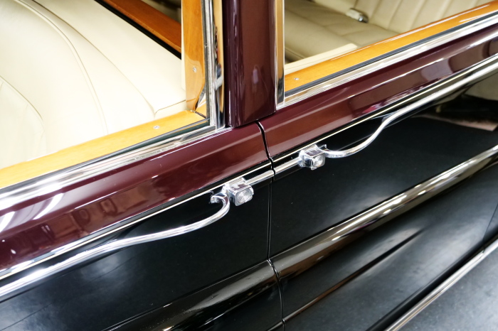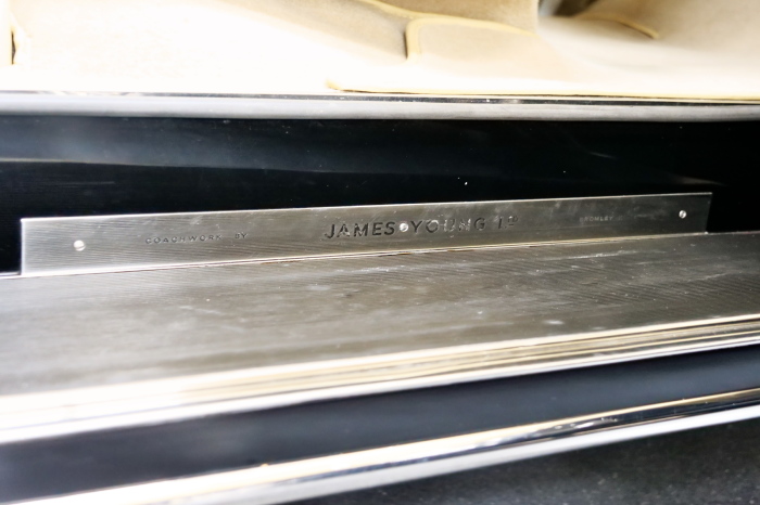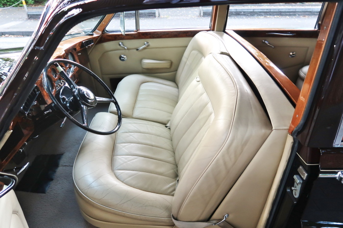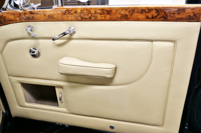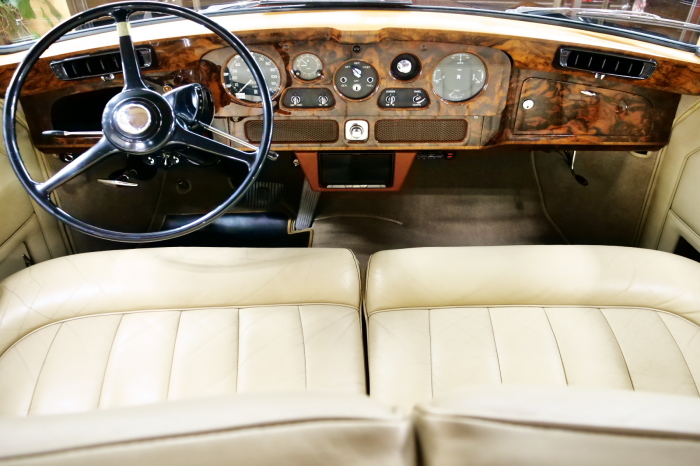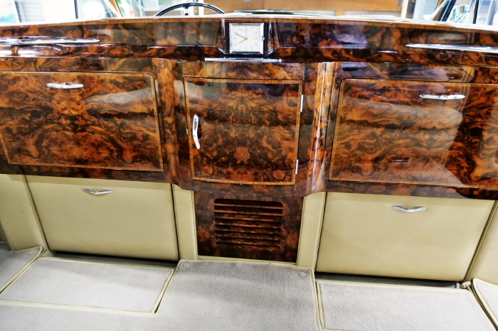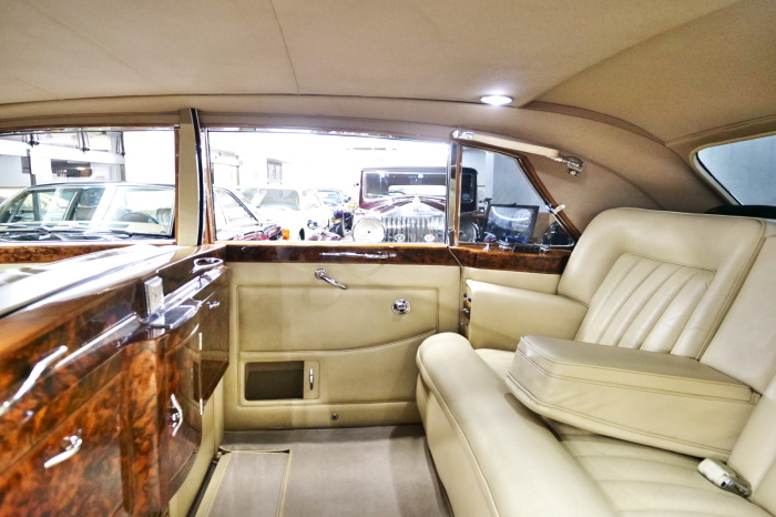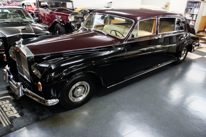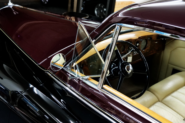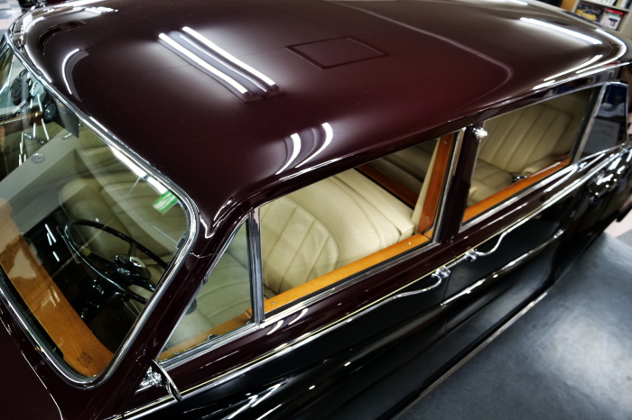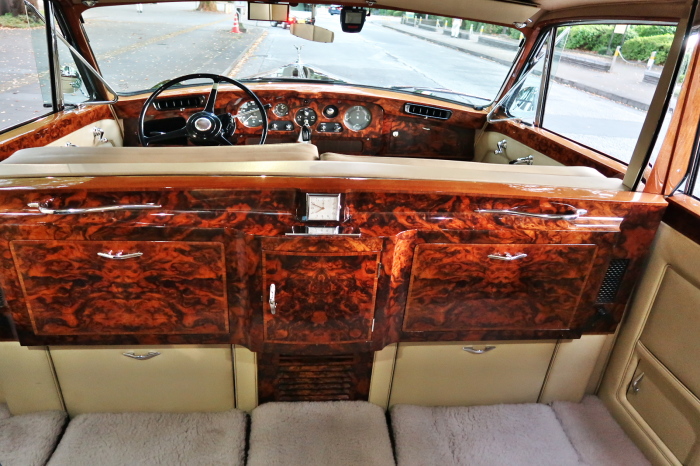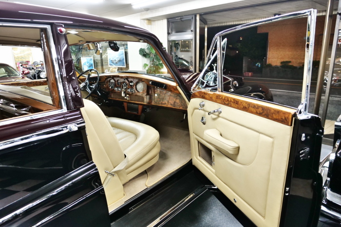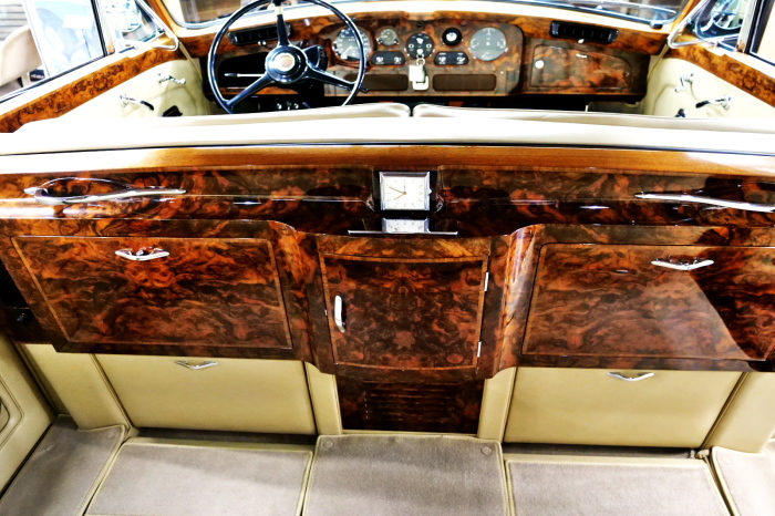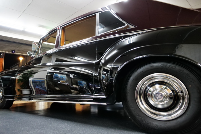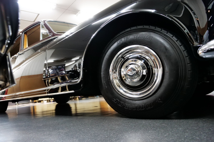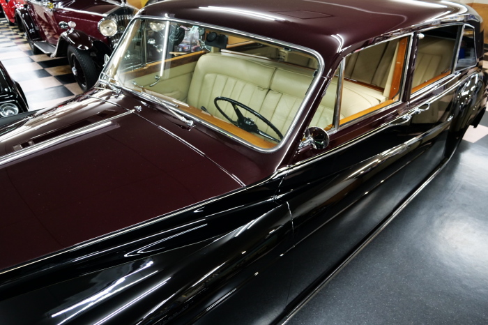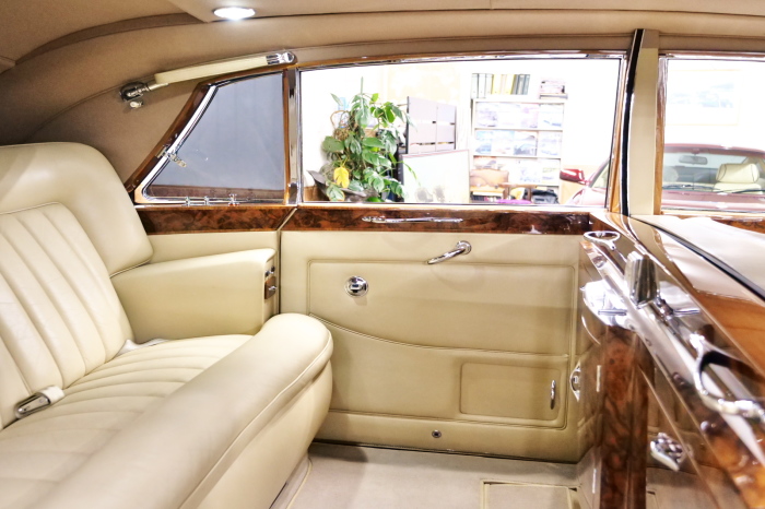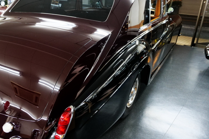 「ジェームス・ヤング」コーチビルドの傑作! 「ファンタム5」の 「PV23」! 解説: 1925年発表の「ファンタム1」から続く、ロールス・ロイス頂点モデル・・ つまりは、世界の自動車の頂点モデルに君臨する「ファンタム」の5代目である。 今回は、ちょいと時代を さかのぼって「ファンタム」自体の歴史から簡単にご解説したい。 1904年創業の「ロールス・ロイス」が最初に、その名を世界に知らしめた傑作モデルが、 1906年に発表した「40/50馬力」である。 直列6気筒・7036cc(後に7428ccに)、「ロイス」設計の自信作、、 このモデルの優れた性能をアピールするため、翌 1907年、「ロンドン〜グラスゴー間 ノンストップ・ラン」に挑戦する。 それまでの記録は、シドレーという車の「11.272km」 「40/50」は大人4人を乗せ昼夜を問わずノン・ストップ(給油を除き)で走り、、 叩き出した記録は、、「23.315km」! ノンストップで東京・福岡間を 12往復くらい、、今でも凄い、 しかも、走行直後の検査(機関を元の正常状態に戻すのに、いくらのパーツ代が必要か?) の結果、パーツ費用は、僅かに「2ポンド2シリング」にすぎなかった。 この驚異的な記録は、当時の人々を驚愕させると共に、ロールス・ロイスの ずば抜けた性能 を世に知らしめる。 この段階で、すでにロールス社は世界一の自動車メーカーと賞賛されている。 この記録を出した「40/50」は、シルバーにオールペイントされ、音もなく走行することか ら「シルバーゴースト」のプレートが張られていた。 この後、「40/50」は、「シルバーゴースト」のモデル名で販売されることとなる。 「シルバーゴースト」は、永きに渡って生産されたが、1925年、改良ともに新型モデル となる。 モデル名「ファンタム」! 中身は事実上のゴーストであったが、ここから「ファンタム」の神話が始まる 伝説の頂点モデル「シルバーゴースト」の正当な後継モデルが「ファンタム」なのだ。 ・1929年には、更なる改良が施され「ファンタム2」に (直列6気筒OHV/7668cc) ・1936年には、ついに飛行機のエンジンと形容された(実際には違うが) 12気筒・7340ccエンジンを積み「ファンタム3」に、 1939年、第2次世界大戦の始まりで一旦「ファンタム」の歴史は途絶える 第2次大戦後、ロールス社が本社「クルー」工場で再開、生産・販売を始めたのは、 1946年からのことである。 当初、ベントレー「マーク6」とロールス「シルバーレイス」の販売でスタートしていた ものの、ロールス社としては、戦前の「格」を取り戻すため、頂点モデル「ファンタム」 をも復活させる必要があった。 そこで、1950年に登場したのが「ファンタム4」であるが、このモデル (直8気筒エンジンを積む)は、王族、皇族にしか販売されず、1950年から56年の間 に、僅か「18台」しか生産・販売されていない。 詳しくは割愛させて頂くが、要は「ファンタム」と名の付くモデルは、 「そういう車」ってこと、、。 「格」を取り戻したロールス社が次ぎに発表した「ファンタム」が、 アルミ合金製・新型V8エンジンを積む、ファンタム5。 では、ここから、やっと、、 「ファンタム5」物語 登場は、1958年、実際のデリバリーは、1959年から、 同じエンジンを積む、クラウド2(ベントレーS2)と同時に発表された。 「ファンタム5」のシャーシは、「クラウド」をベースに延長・補強されたもので、 そのメイン・シャーシは、10tトラックのごとし、、。 新設計アルミ合金製 V8 OHV 6230cc ミッションは、GM製を改良し、ロールス社自身で作られた「4速コラムAT」 ロールス社というのは、飛行機のエンジンをも作れる研磨に特出した技術を持つわけだから、 エンジンもミッションも尋常じゃない耐久性を誇る。 ブレーキは、全輪ドラム式ながら、「イスパノ・スイザ社」の特許「メカニカル・サーボ・ ブレーキ」により、効き は、現在の交通事情の中でも、まったく問題ない。 正確には、、 バブル期くらいまでは、このブレーキ・システムは怖かった、 当時、このシステムを完璧に理解し、整備できるメカニックが、ほとんど日本にいなかった からだ。 現在でも少ないが、弊社のメカニックなら、 楽勝、正しい整備(オーバーホールなど)を施せば、これほど信頼性の高いブレーキもない。 普通に効く。 ロールス社も、信頼して採用したようで、当時の インタビュー記事: 記者:「どうして、ディスク・ブレーキを 採用しないのですか?」 RR:「メカニカル・サーボ・ブレーキより、優れたディスク・ブレーキが あるなら採用してますが」 「ファンタム5」は、前期型と後期型があり、1959年〜1962年までは、「クラウド2」ベース 後期型は、1962年〜1968年までは、「クラウド3」ベースである。 圧縮比が違うなど、若干の機関的違いがあり、後期型のが好ましい。 *ロールス社では、もっと細かくシリーズ分けしていて、全9シリーズ、、 これは、覚える必要はない。 「ファンタム」のボディはロールス社の自社製(スタンダード・モデル)ではなく、 全て、社外の「