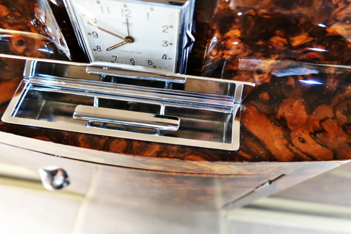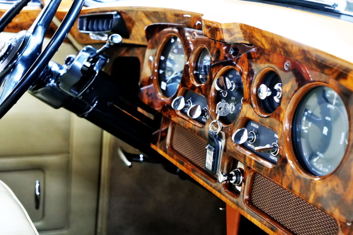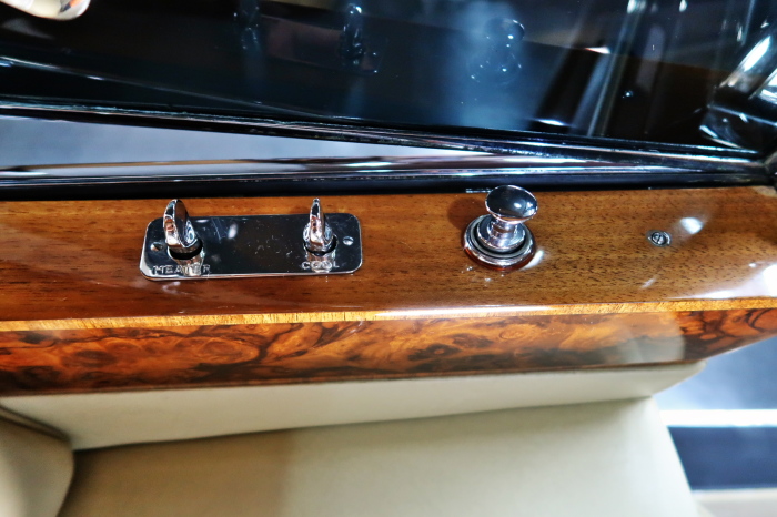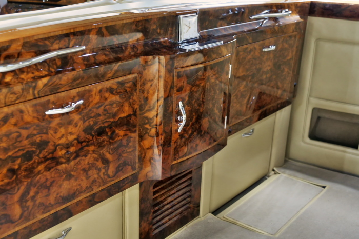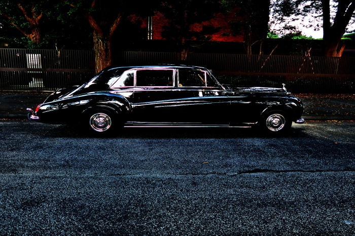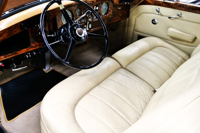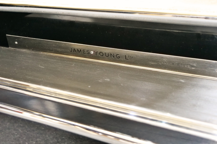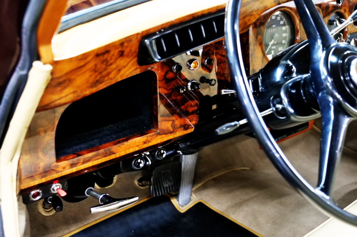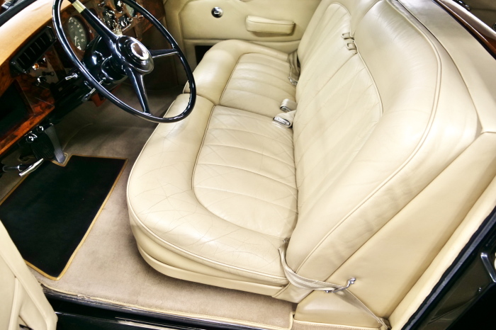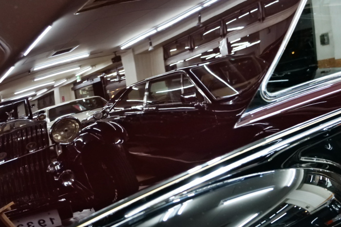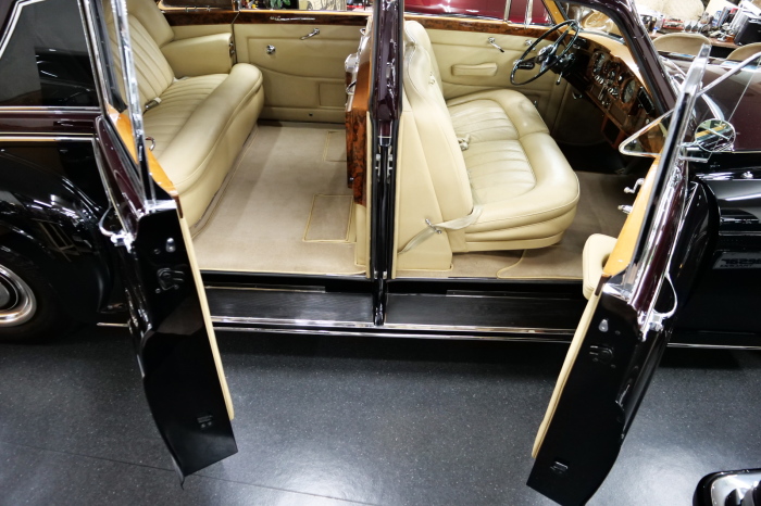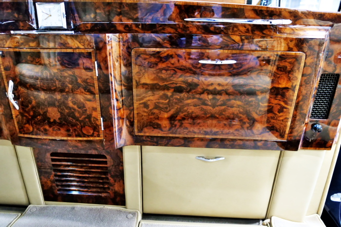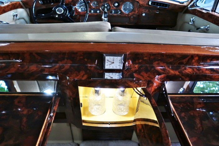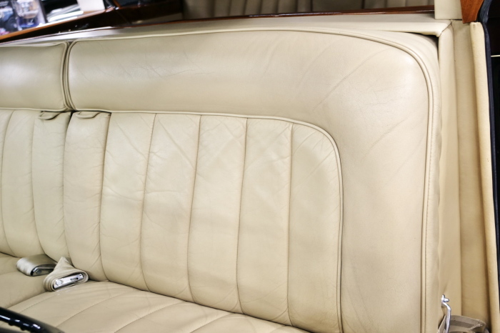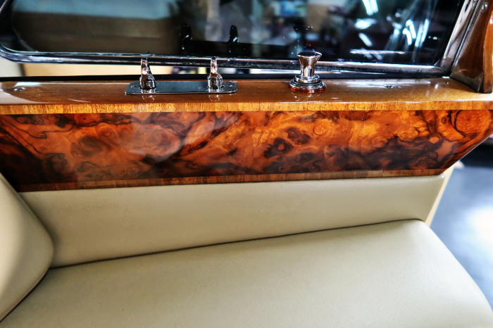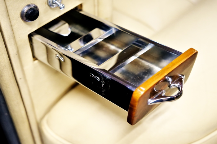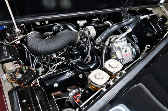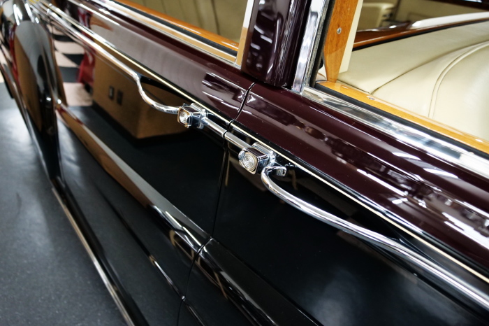 「ジェームス・ヤング」コーチビルドの傑作! 「ファンタム5」の 「PV23」! 解説: 1925年発表の「ファンタム1」から続く、ロールス・ロイス頂点モデル・・ つまりは、世界の自動車の頂点モデルに君臨する「ファンタム」の5代目である。 今回は、ちょいと時代を さかのぼって「ファンタム」自体の歴史から簡単にご解説したい。 1904年創業の「ロールス・ロイス」が最初に、その名を世界に知らしめた傑作モデルが、 1906年に発表した「40/50馬力」である。 直列6気筒・7036cc(後に7428ccに)、「ロイス」設計の自信作、、 このモデルの優れた性能をアピールするため、翌 1907年、「ロンドン〜グラスゴー間 ノンストップ・ラン」に挑戦する。 それまでの記録は、シドレーという車の「11.272km」 「40/50」は大人4人を乗せ昼夜を問わずノン・ストップ(給油を除き)で走り、、 叩き出した記録は、、「23.315km」! ノンストップで東京・福岡間を 12往復くらい、、今でも凄い、 しかも、走行直後の検査(機関を元の正常状態に戻すのに、いくらのパーツ代が必要か?) の結果、パーツ費用は、僅かに「2ポンド2シリング」にすぎなかった。 この驚異的な記録は、当時の人々を驚愕させると共に、ロールス・ロイスの ずば抜けた性能 を世に知らしめる。 この段階で、すでにロールス社は世界一の自動車メーカーと賞賛されている。 この記録を出した「40/50」は、シルバーにオールペイントされ、音もなく走行することか ら「シルバーゴースト」のプレートが張られていた。 この後、「40/50」は、「シルバーゴースト」のモデル名で販売されることとなる。 「シルバーゴースト」は、永きに渡って生産されたが、1925年、改良ともに新型モデル となる。 モデル名「ファンタム」! 中身は事実上のゴーストであったが、ここから「ファンタム」の神話が始まる 伝説の頂点モデル「シルバーゴースト」の正当な後継モデルが「ファンタム」なのだ。 ・1929年には、更なる改良が施され「ファンタム2」に (直列6気筒OHV/7668cc) ・1936年には、ついに飛行機のエンジンと形容された(実際には違うが) 12気筒・7340ccエンジンを積み「ファンタム3」に、 1939年、第2次世界大戦の始まりで一旦「ファンタム」の歴史は途絶える 第2次大戦後、ロールス社が本社「クルー」工場で再開、生産・販売を始めたのは、 1946年からのことである。 当初、ベントレー「マーク6」とロールス「シルバーレイス」の販売でスタートしていた ものの、ロールス社としては、戦前の「格」を取り戻すため、頂点モデル「ファンタム」 をも復活させる必要があった。 そこで、1950年に登場したのが「ファンタム4」であるが、このモデル (直8気筒エンジンを積む)は、王族、皇族にしか販売されず、1950年から56年の間 に、僅か「18台」しか生産・販売されていない。 詳しくは割愛させて頂くが、要は「ファンタム」と名の付くモデルは、 「そういう車」ってこと、、。 「格」を取り戻したロールス社が次ぎに発表した「ファンタム」が、 アルミ合金製・新型V8エンジンを積む、ファンタム5。 では、ここから、やっと、、 「ファンタム5」物語 登場は、1958年、実際のデリバリーは、1959年から、 同じエンジンを積む、クラウド2(ベントレーS2)と同時に発表された。 「ファンタム5」のシャーシは、「クラウド」をベースに延長・補強されたもので、 そのメイン・シャーシは、10tトラックのごとし、、。 新設計アルミ合金製 V8 OHV 6230cc ミッションは、GM製を改良し、ロールス社自身で作られた「4速コラムAT」 ロールス社というのは、飛行機のエンジンをも作れる研磨に特出した技術を持つわけだから、 エンジンもミッションも尋常じゃない耐久性を誇る。 ブレーキは、全輪ドラム式ながら、「イスパノ・スイザ社」の特許「メカニカル・サーボ・ ブレーキ」により、効き は、現在の交通事情の中でも、まったく問題ない。 正確には、、 バブル期くらいまでは、このブレーキ・システムは怖かった、 当時、このシステムを完璧に理解し、整備できるメカニックが、ほとんど日本にいなかった からだ。 現在でも少ないが、弊社のメカニックなら、 楽勝、正しい整備(オーバーホールなど)を施せば、これほど信頼性の高いブレーキもない。 普通に効く。 ロールス社も、信頼して採用したようで、当時の インタビュー記事: 記者:「どうして、ディスク・ブレーキを 採用しないのですか?」 RR:「メカニカル・サーボ・ブレーキより、優れたディスク・ブレーキが あるなら採用してますが」 「ファンタム5」は、前期型と後期型があり、1959年〜1962年までは、「クラウド2」ベース 後期型は、1962年〜1968年までは、「クラウド3」ベースである。 圧縮比が違うなど、若干の機関的違いがあり、後期型のが好ましい。 *ロールス社では、もっと細かくシリーズ分けしていて、全9シリーズ、、 これは、覚える必要はない。 「ファンタム」のボディはロールス社の自社製(スタンダード・モデル)ではなく、 全て、社外の「