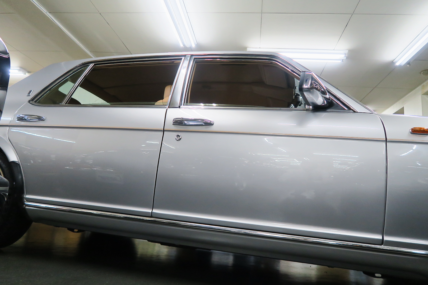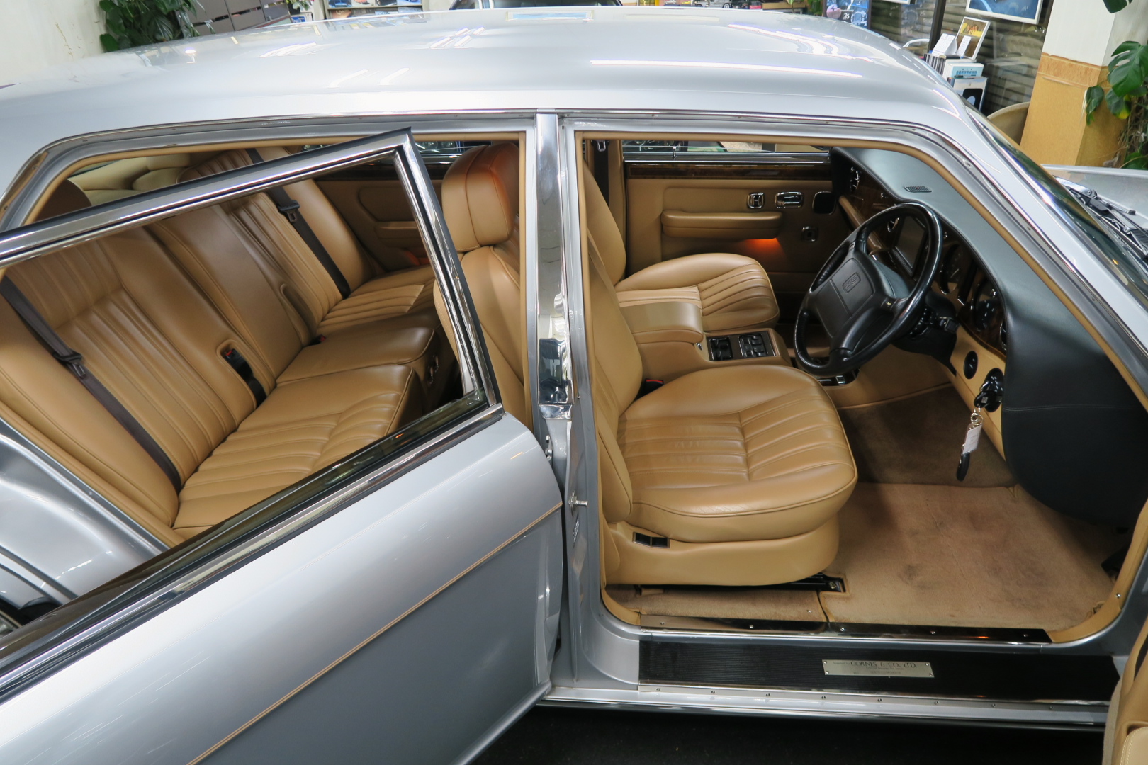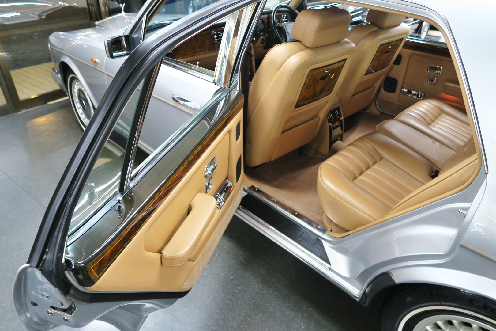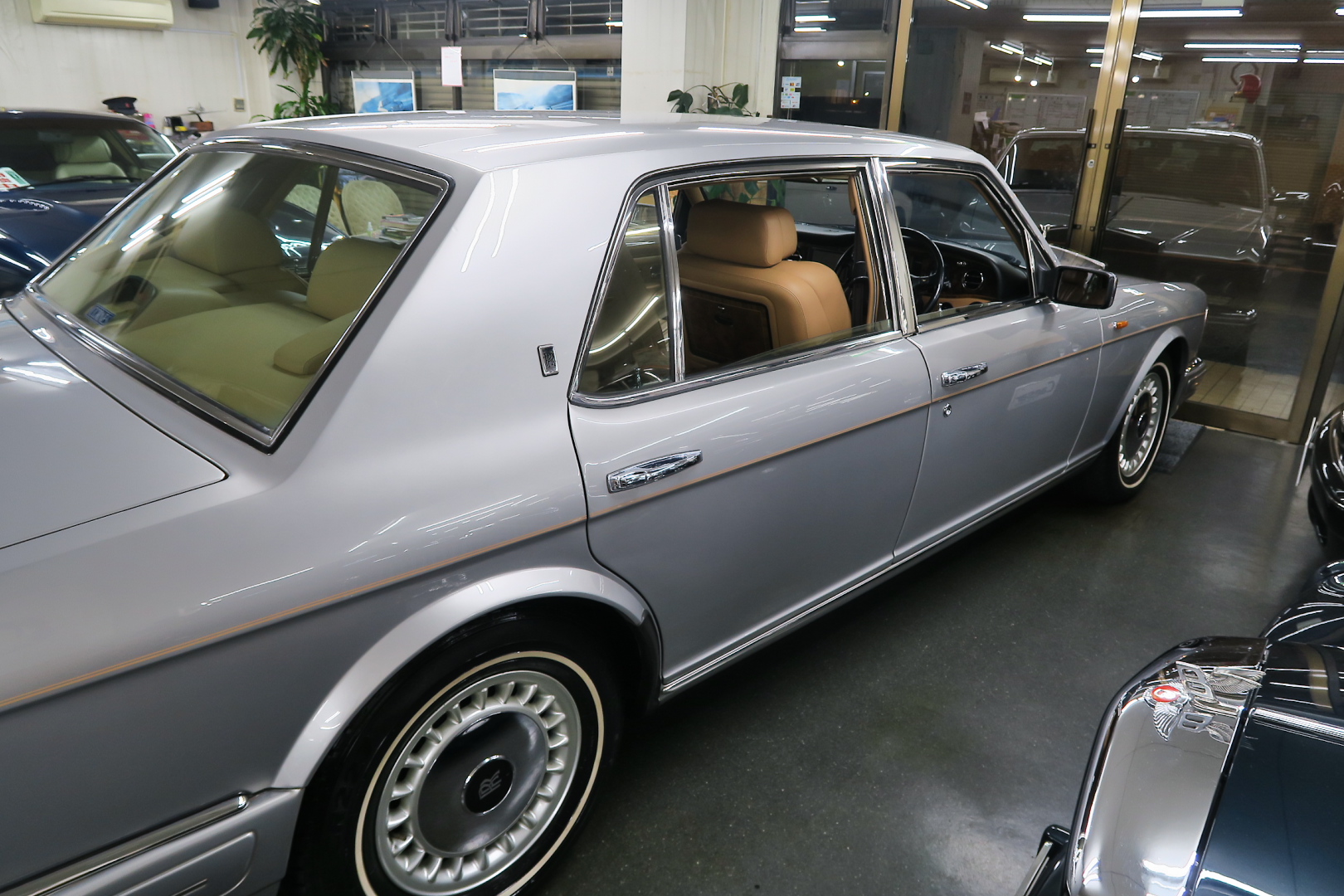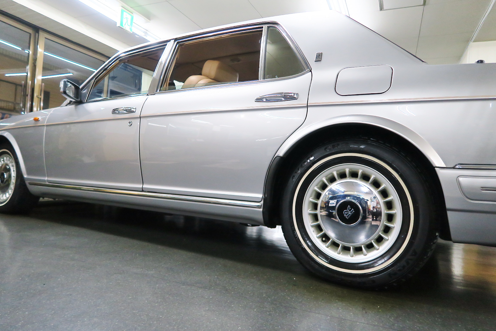外装は、「シルバー・パール」。 当時の新色、薄い色目のシルバーメタリック パールって名がつくカラーであるから、塗料に「パールマイカ」が含まれていて、確かに、パールっぽい 輝きをみせる。 塗装コンディションも申し分なし。バリビカっ。 ボディサイドには、内装カラーに合わせた タン系色のコーチラインが2本入ってる。 SZ系ロールスに コーチラインは、つきものだ。 98年モデルだけの外見上の特徴は、 *前後バンパーが、ボディ同色塗装 *トランクのエンブレムが、「ブルー」カラー 一目で「98’ ファイナル」と分かる。 全長:541cm、、ロングホイール・ベース。 98年時には、ターボ無しモデルの「シルバードーン」も存在したが、98’「ドーン」は、世界で「11台」 しか売れていない。 大半の方が、「ターボ付き」を選択したようだ。 リアのドアが10cm短い「スピリット」は、97年時コーンズのカタログから消え、特別オーダー受付のみ の扱いとなる。 「ターボ付き」は、特注しない限り、「スピリット」には設定がなかった。 この特注をオーダーした人は、世界に6人しかいない。 「スピリット」は、97年モデル(6台)が、最終モデルとなった。 ロングホイールと聞くと、長いと思われる方も多かろうが、やたらハンドルが切れるので、 驚くほど取り廻しが良い。 メルセデスのSクラスが入れる道なら、困らず ついていけるはず。 96年時の大幅改良は、初めて、ボディにまで及び、 ・フロント廻りのボディプレス(左右フェンダー形状など)、 ・前後のバンパー・一体式エアロスポイラー、 ・ミラーがボディと一体式に、 ・グリルの縦横比(縦が少し短くなった)、 ・アルミホイール(16インチ)デザイン、 ・マドガラス枠サッシにウェザーストリップが、、 などが変更に、 これは、全て 空力を計算した上での結果で、高速走行時の風切り音は、明らかに激減した。 ベントレーのモデルについては戦前から「空力」を考えたボディ作りがなされてきたが、こと ロールスの モデルでは、この96年モデルで初めて考えてみたのではなかろうか?? 95年以前モデルを上記改良がなされた96’以降モデル仕様に後から改造するには莫大な費用を要す、、 一般的には不可能である。 SZ系までのモデルは、スタンダード・サルーンでも、開閉部(ボンネット・トランク・ドア4枚・給油口 )は全て「アルミ」製、 戦後モデルの伝統であったが、、この後のモデル(セラフ・アルナージ)から総スチィール・ボディとなる。 コスト・ダウンは、まず、見えない箇所から 行われるのだ。 |
