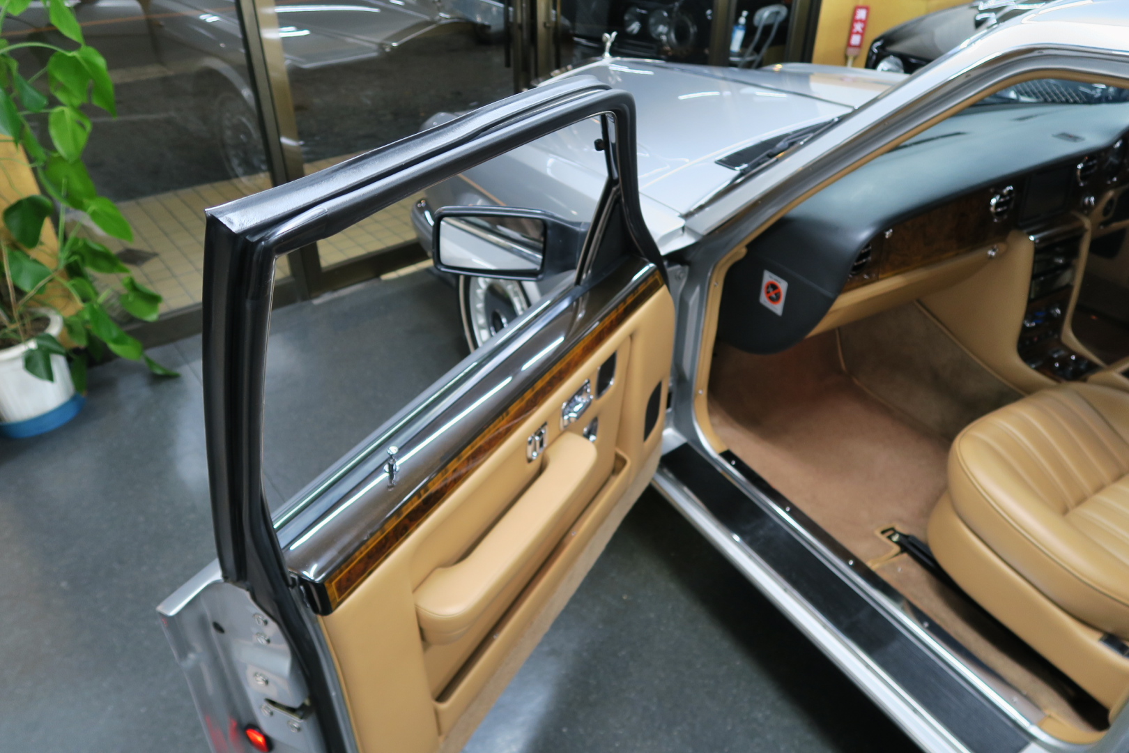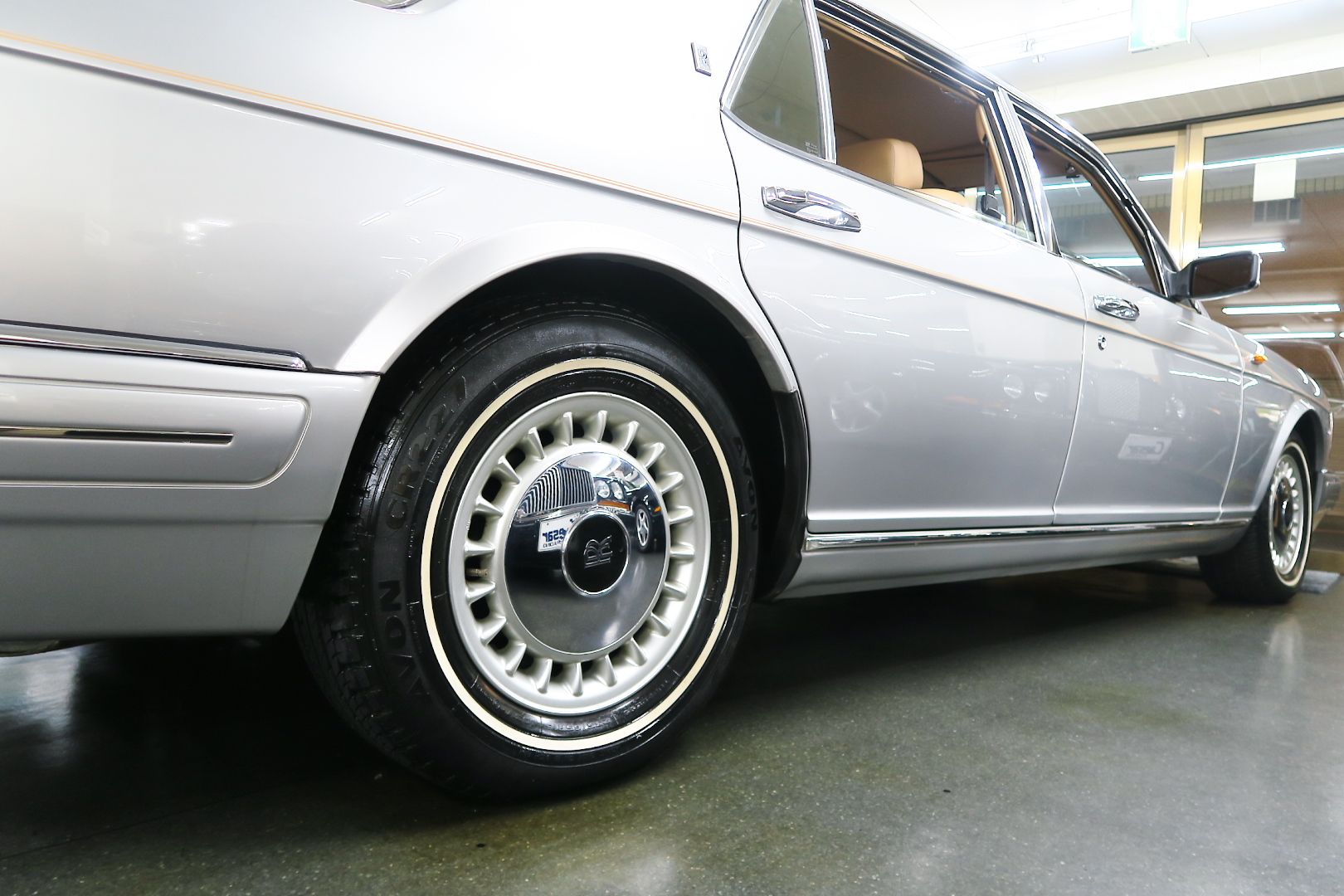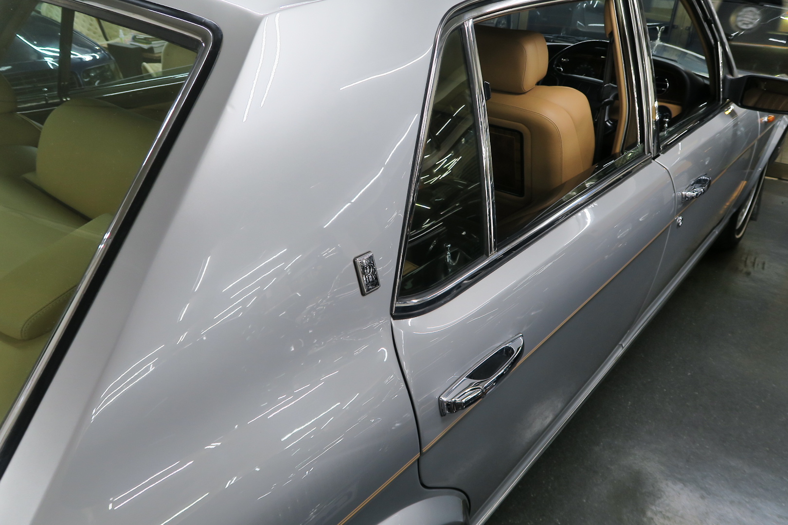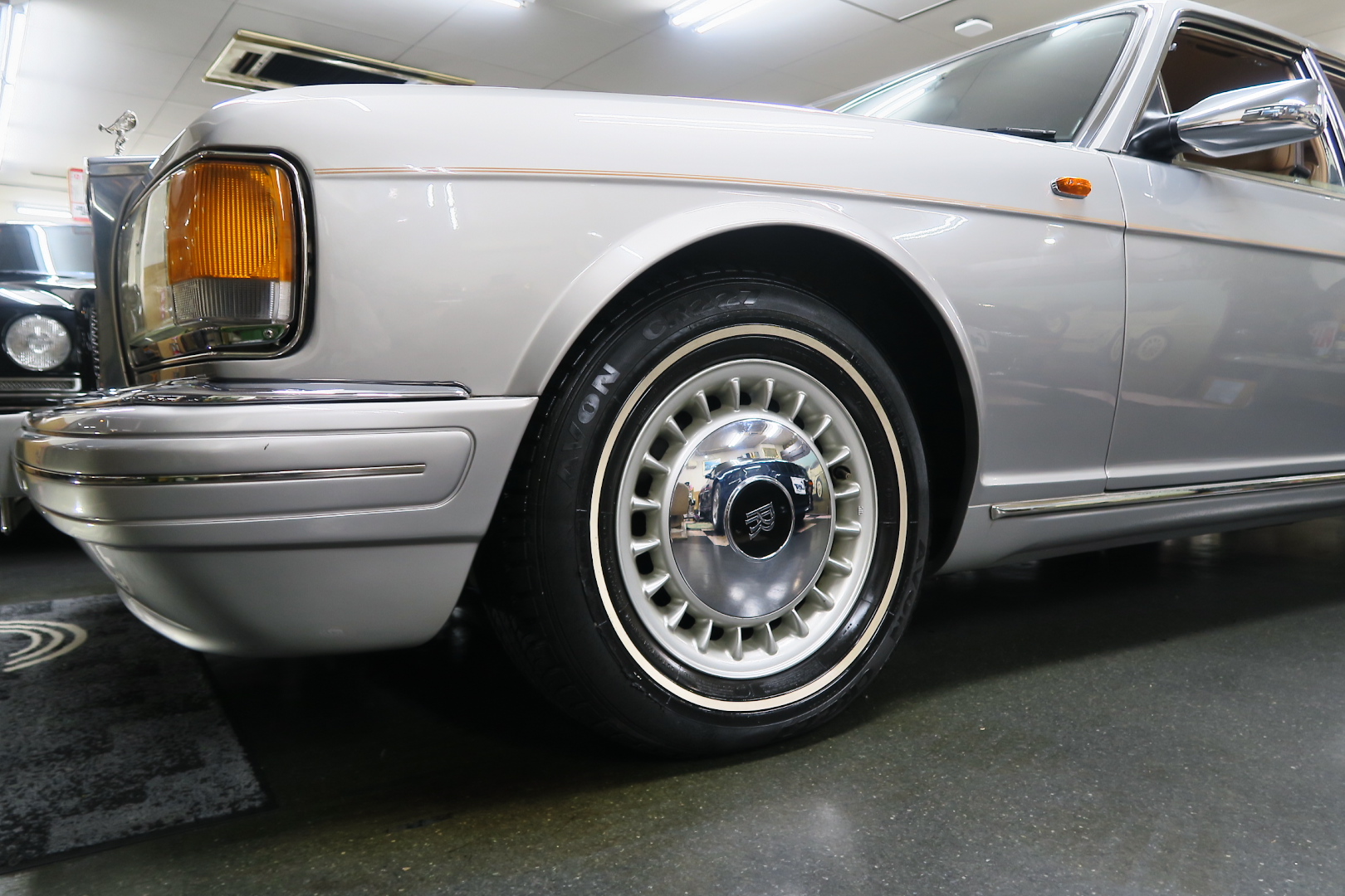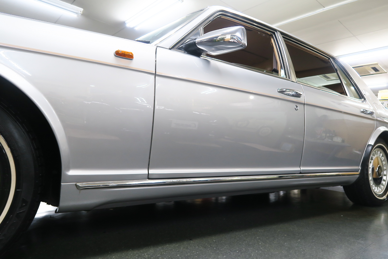 外装は、「シルバー・パール」。 当時の新色、薄い色目のシルバーメタリック パールって名がつくカラーであるから、塗料に「パールマイカ」が含まれていて、確かに、パールっぽい 輝きをみせる。 塗装コンディションも申し分なし。バリビカっ。 ボディサイドには、内装カラーに合わせた タン系色のコーチラインが2本入ってる。 SZ系ロールスに コーチラインは、つきものだ。 98年モデルだけの外見上の特徴は、 *前後バンパーが、ボディ同色塗装 *トランクのエンブレムが、「ブルー」カラー 一目で「98’ ファイナル」と分かる。 全長:541cm、、ロングホイール・ベース。 98年時には、ターボ無しモデルの「シルバードーン」も存在したが、98’「ドーン」は、世界で「11台」 しか売れていない。 大半の方が、「ターボ付き」を選択したようだ。 リアのドアが10cm短い「スピリット」は、97年時コーンズのカタログから消え、特別オーダー受付のみ の扱いとなる。 「ターボ付き」は、特注しない限り、「スピリット」には設定がなかった。 この特注をオーダーした人は、世界に6人しかいない。 「スピリット」は、97年モデル(6台)が、最終モデルとなった。 ロングホイールと聞くと、長いと思われる方も多かろうが、やたらハンドルが切れるので、 驚くほど取り廻しが良い。 メルセデスのSクラスが入れる道なら、困らず ついていけるはず。 96年時の大幅改良は、初めて、ボディにまで及び、 ・フロント廻りのボディプレス(左右フェンダー形状など)、 ・前後のバンパー・一体式エアロスポイラー、 ・ミラーがボディと一体式に、 ・グリルの縦横比(縦が少し短くなった)、 ・アルミホイール(16インチ)デザイン、 ・マドガラス枠サッシにウェザーストリップが、、 などが変更に、 これは、全て 空力を計算した上での結果で、高速走行時の風切り音は、明らかに激減した。 ベントレーのモデルについては戦前から「空力」を考えたボディ作りがなされてきたが、こと ロールスの モデルでは、この96年モデルで初めて考えてみたのではなかろうか?? 95年以前モデルを上記改良がなされた96’以降モデル仕様に後から改造するには莫大な費用を要す、、 一般的には不可能である。 SZ系までのモデルは、スタンダード・サルーンでも、開閉部(ボンネット・トランク・ドア4枚・給油口 )は全て「アルミ」製、 戦後モデルの伝統であったが、、この後のモデル(セラフ・アルナージ)から総スチィール・ボディとなる。 コスト・ダウンは、まず、見えない箇所から 行われるのだ。 |
