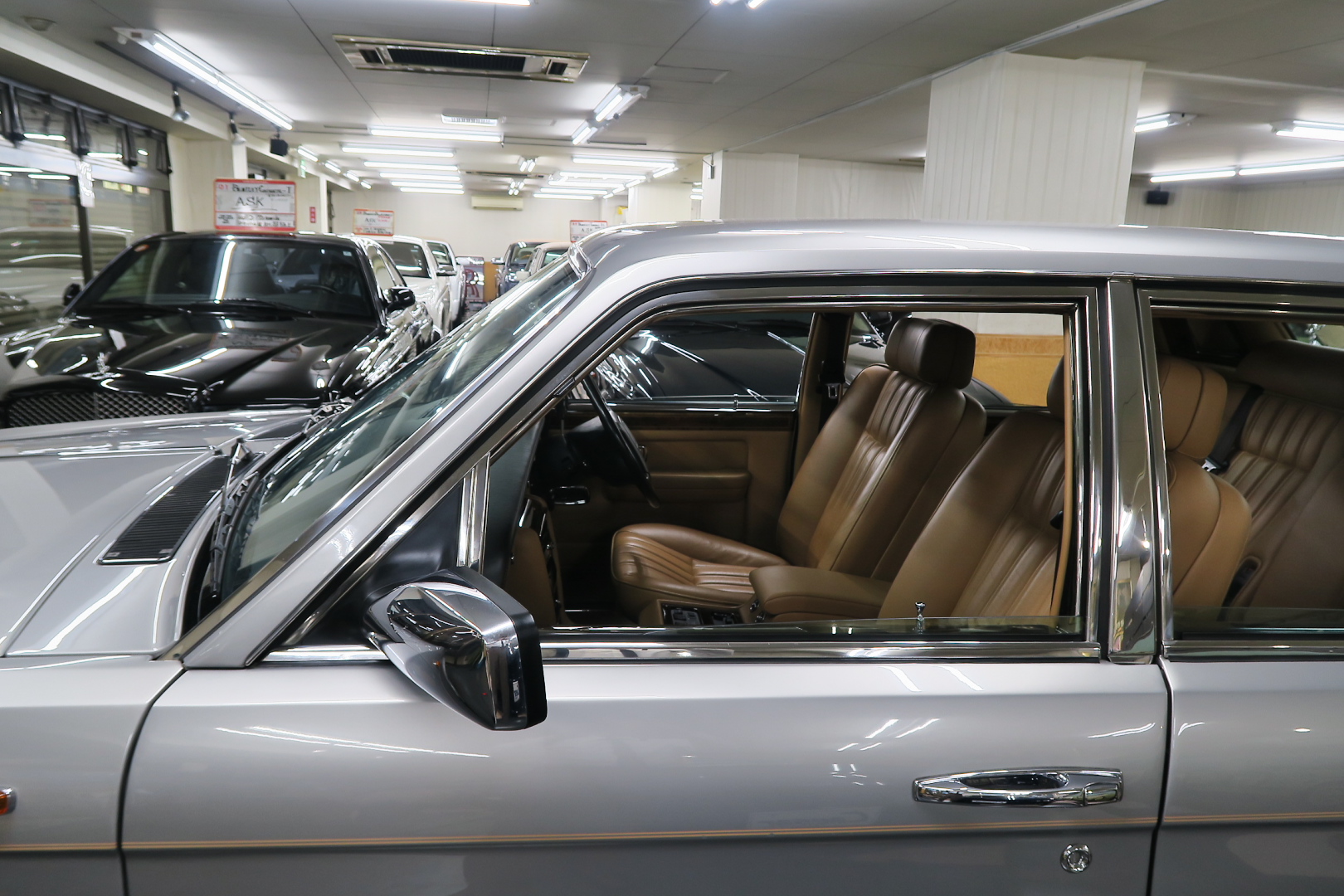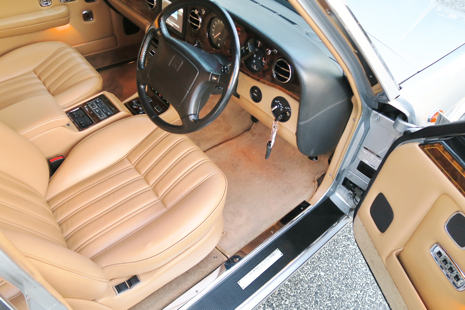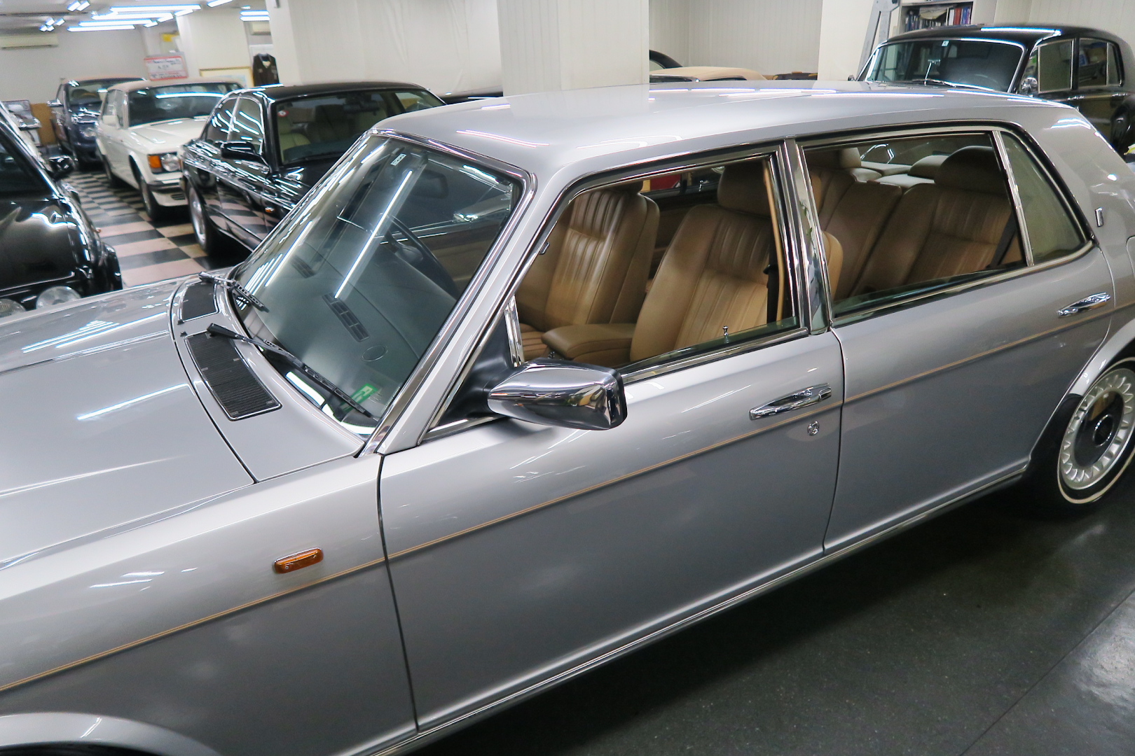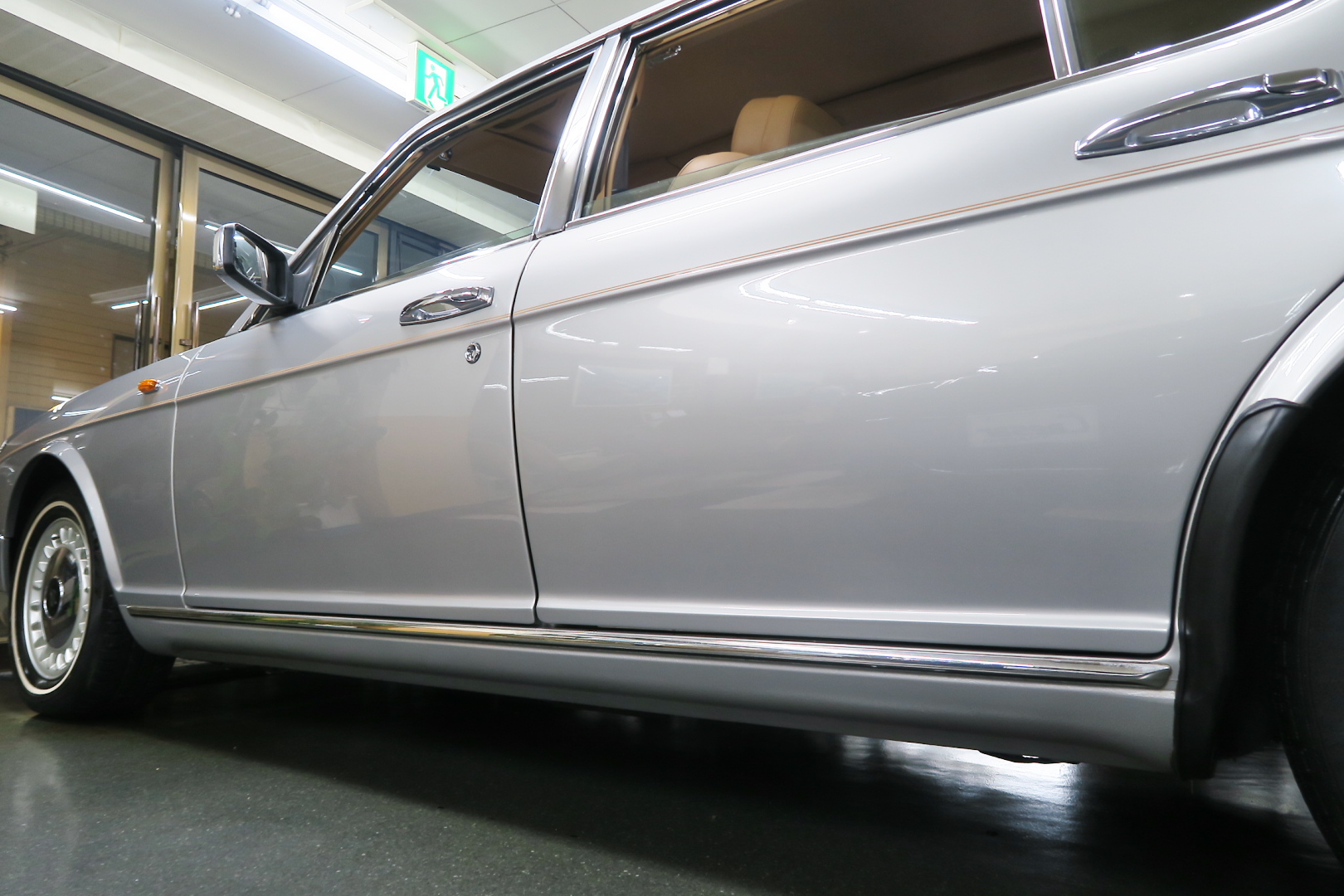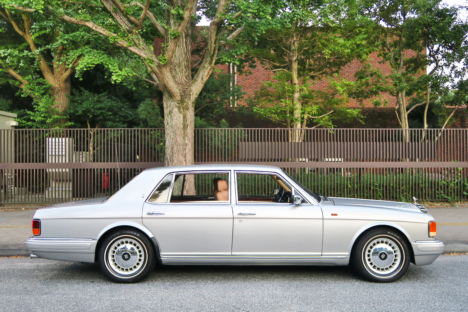 外装は、「シルバー・パール」。 当時の新色、薄い色目のシルバーメタリック パールって名がつくカラーであるから、塗料に「パールマイカ」が含まれていて、確かに、パールっぽい 輝きをみせる。 塗装コンディションも申し分なし。バリビカっ。 ボディサイドには、内装カラーに合わせた タン系色のコーチラインが2本入ってる。 SZ系ロールスに コーチラインは、つきものだ。 98年モデルだけの外見上の特徴は、 *前後バンパーが、ボディ同色塗装 *トランクのエンブレムが、「ブルー」カラー 一目で「98’ ファイナル」と分かる。 全長:541cm、、ロングホイール・ベース。 98年時には、ターボ無しモデルの「シルバードーン」も存在したが、98’「ドーン」は、世界で「11台」 しか売れていない。 大半の方が、「ターボ付き」を選択したようだ。 リアのドアが10cm短い「スピリット」は、97年時コーンズのカタログから消え、特別オーダー受付のみ の扱いとなる。 「ターボ付き」は、特注しない限り、「スピリット」には設定がなかった。 この特注をオーダーした人は、世界に6人しかいない。 「スピリット」は、97年モデル(6台)が、最終モデルとなった。 ロングホイールと聞くと、長いと思われる方も多かろうが、やたらハンドルが切れるので、 驚くほど取り廻しが良い。 メルセデスのSクラスが入れる道なら、困らず ついていけるはず。 96年時の大幅改良は、初めて、ボディにまで及び、 ・フロント廻りのボディプレス(左右フェンダー形状など)、 ・前後のバンパー・一体式エアロスポイラー、 ・ミラーがボディと一体式に、 ・グリルの縦横比(縦が少し短くなった)、 ・アルミホイール(16インチ)デザイン、 ・マドガラス枠サッシにウェザーストリップが、、 などが変更に、 これは、全て 空力を計算した上での結果で、高速走行時の風切り音は、明らかに激減した。 ベントレーのモデルについては戦前から「空力」を考えたボディ作りがなされてきたが、こと ロールスの モデルでは、この96年モデルで初めて考えてみたのではなかろうか?? 95年以前モデルを上記改良がなされた96’以降モデル仕様に後から改造するには莫大な費用を要す、、 一般的には不可能である。 SZ系までのモデルは、スタンダード・サルーンでも、開閉部(ボンネット・トランク・ドア4枚・給油口 )は全て「アルミ」製、 戦後モデルの伝統であったが、、この後のモデル(セラフ・アルナージ)から総スチィール・ボディとなる。 コスト・ダウンは、まず、見えない箇所から 行われるのだ。 |