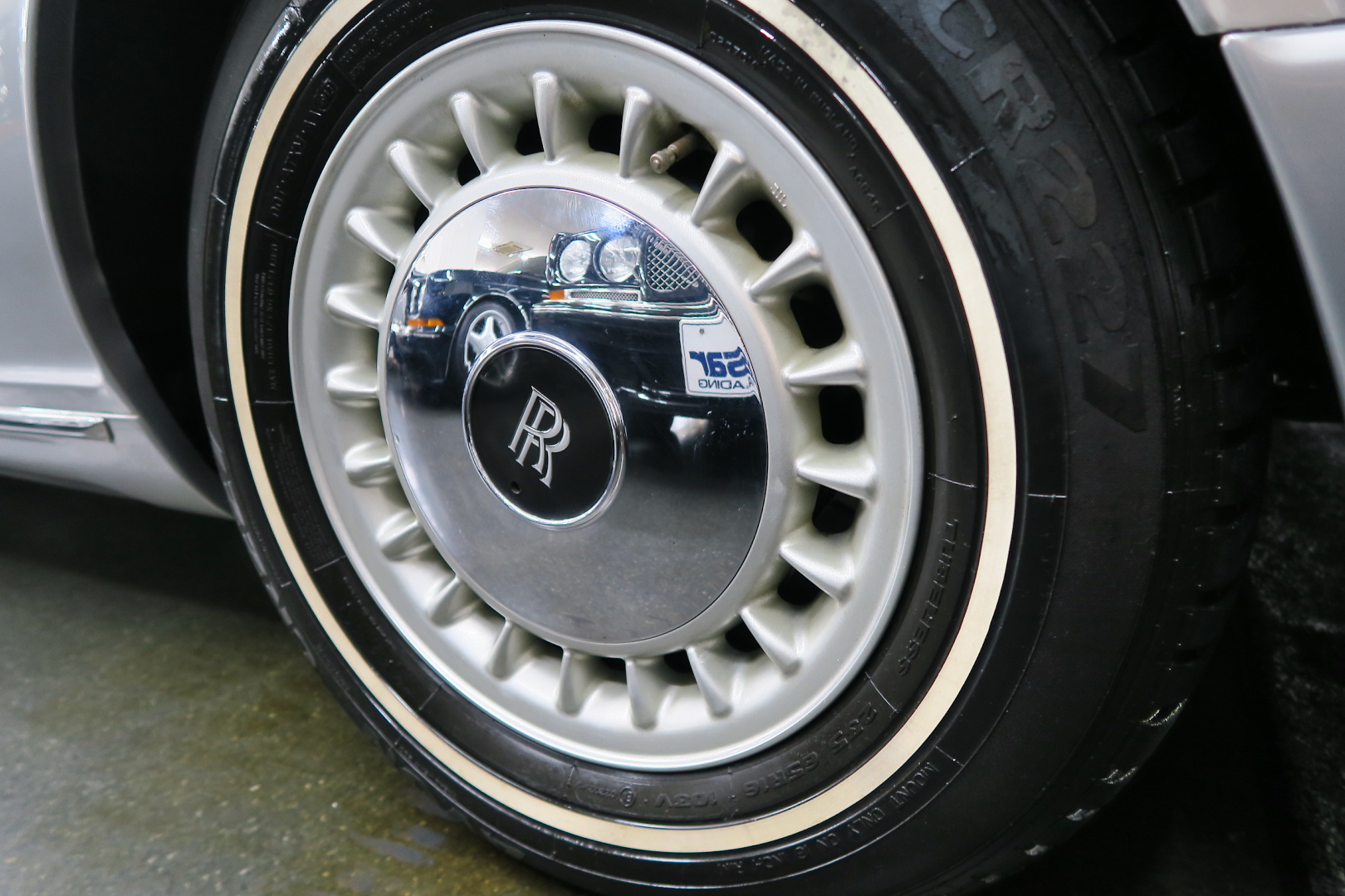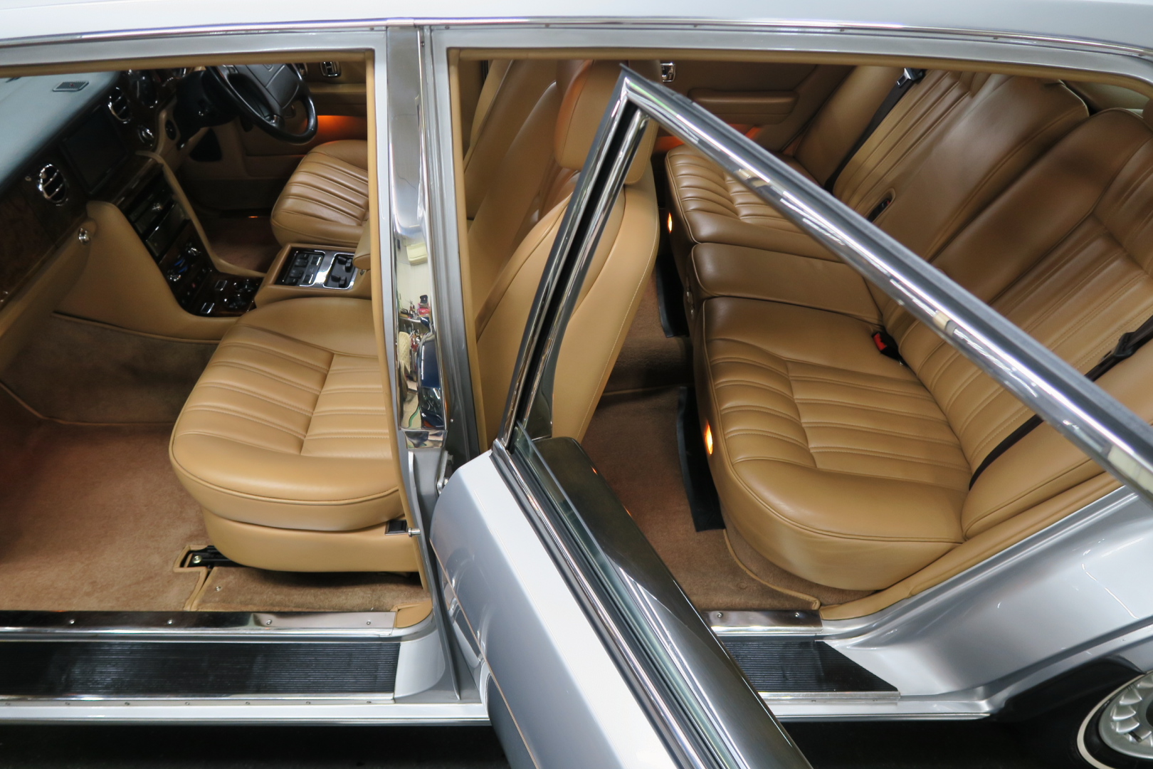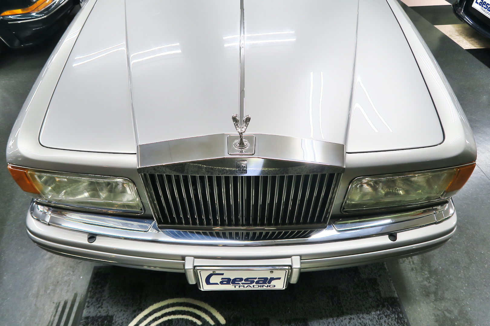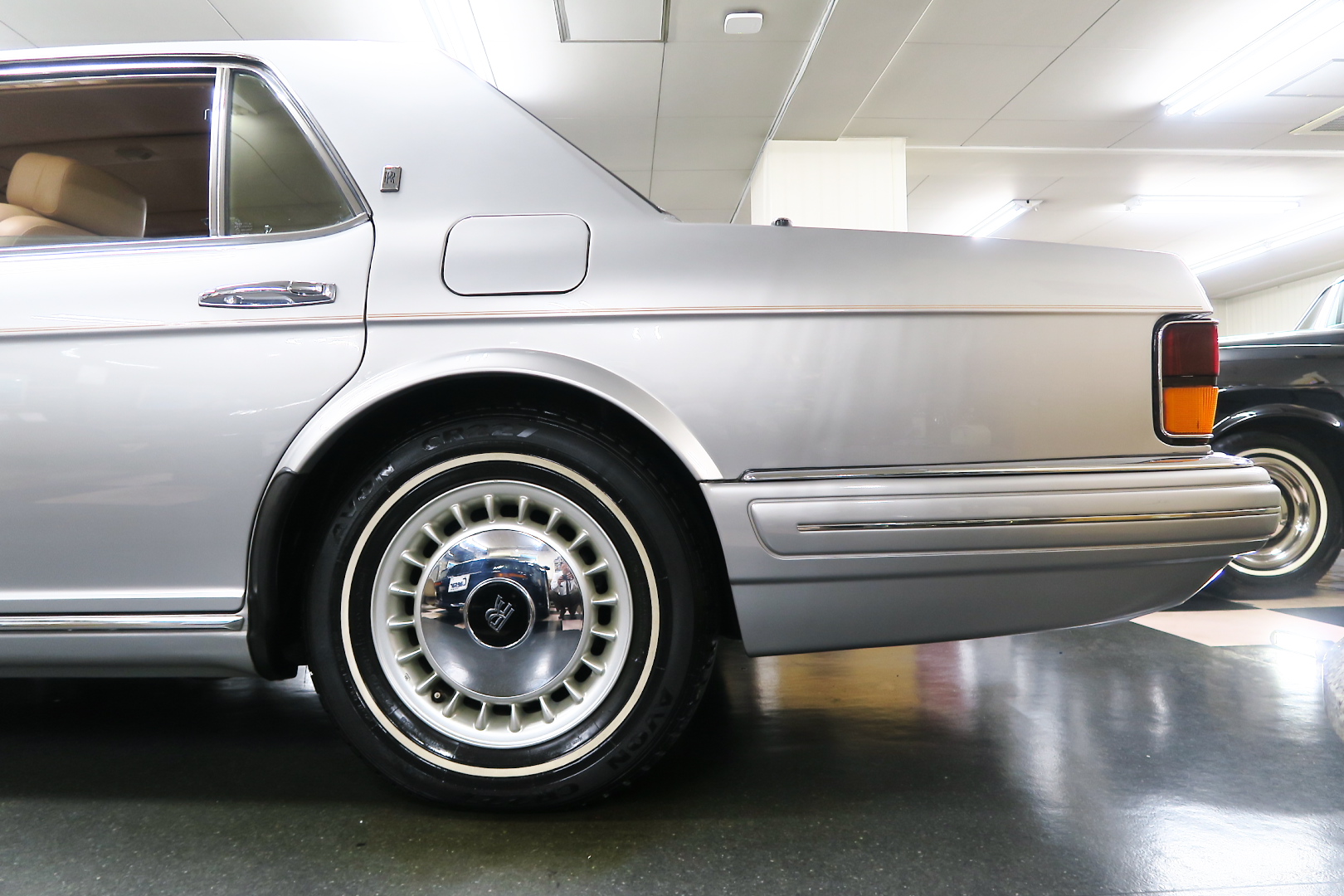 外装は、「シルバー・パール」。 当時の新色、薄い色目のシルバーメタリック パールって名がつくカラーであるから、塗料に「パールマイカ」が含まれていて、確かに、パールっぽい 輝きをみせる。 塗装コンディションも申し分なし。バリビカっ。 ボディサイドには、内装カラーに合わせた タン系色のコーチラインが2本入ってる。 SZ系ロールスに コーチラインは、つきものだ。 98年モデルだけの外見上の特徴は、 *前後バンパーが、ボディ同色塗装 *トランクのエンブレムが、「ブルー」カラー 一目で「98’ ファイナル」と分かる。 全長:541cm、、ロングホイール・ベース。 98年時には、ターボ無しモデルの「シルバードーン」も存在したが、98’「ドーン」は、世界で「11台」 しか売れていない。 大半の方が、「ターボ付き」を選択したようだ。 リアのドアが10cm短い「スピリット」は、97年時コーンズのカタログから消え、特別オーダー受付のみ の扱いとなる。 「ターボ付き」は、特注しない限り、「スピリット」には設定がなかった。 この特注をオーダーした人は、世界に6人しかいない。 「スピリット」は、97年モデル(6台)が、最終モデルとなった。 ロングホイールと聞くと、長いと思われる方も多かろうが、やたらハンドルが切れるので、 驚くほど取り廻しが良い。 メルセデスのSクラスが入れる道なら、困らず ついていけるはず。 96年時の大幅改良は、初めて、ボディにまで及び、 ・フロント廻りのボディプレス(左右フェンダー形状など)、 ・前後のバンパー・一体式エアロスポイラー、 ・ミラーがボディと一体式に、 ・グリルの縦横比(縦が少し短くなった)、 ・アルミホイール(16インチ)デザイン、 ・マドガラス枠サッシにウェザーストリップが、、 などが変更に、 これは、全て 空力を計算した上での結果で、高速走行時の風切り音は、明らかに激減した。 ベントレーのモデルについては戦前から「空力」を考えたボディ作りがなされてきたが、こと ロールスの モデルでは、この96年モデルで初めて考えてみたのではなかろうか?? 95年以前モデルを上記改良がなされた96’以降モデル仕様に後から改造するには莫大な費用を要す、、 一般的には不可能である。 SZ系までのモデルは、スタンダード・サルーンでも、開閉部(ボンネット・トランク・ドア4枚・給油口 )は全て「アルミ」製、 戦後モデルの伝統であったが、、この後のモデル(セラフ・アルナージ)から総スチィール・ボディとなる。 コスト・ダウンは、まず、見えない箇所から 行われるのだ。 |