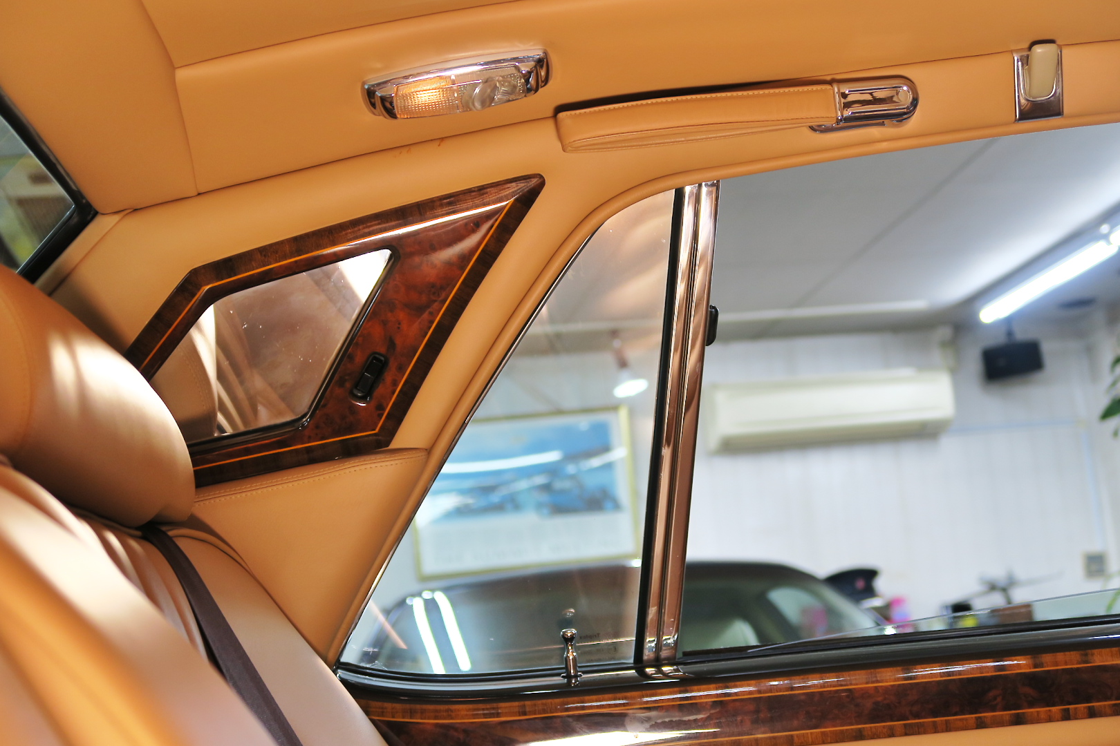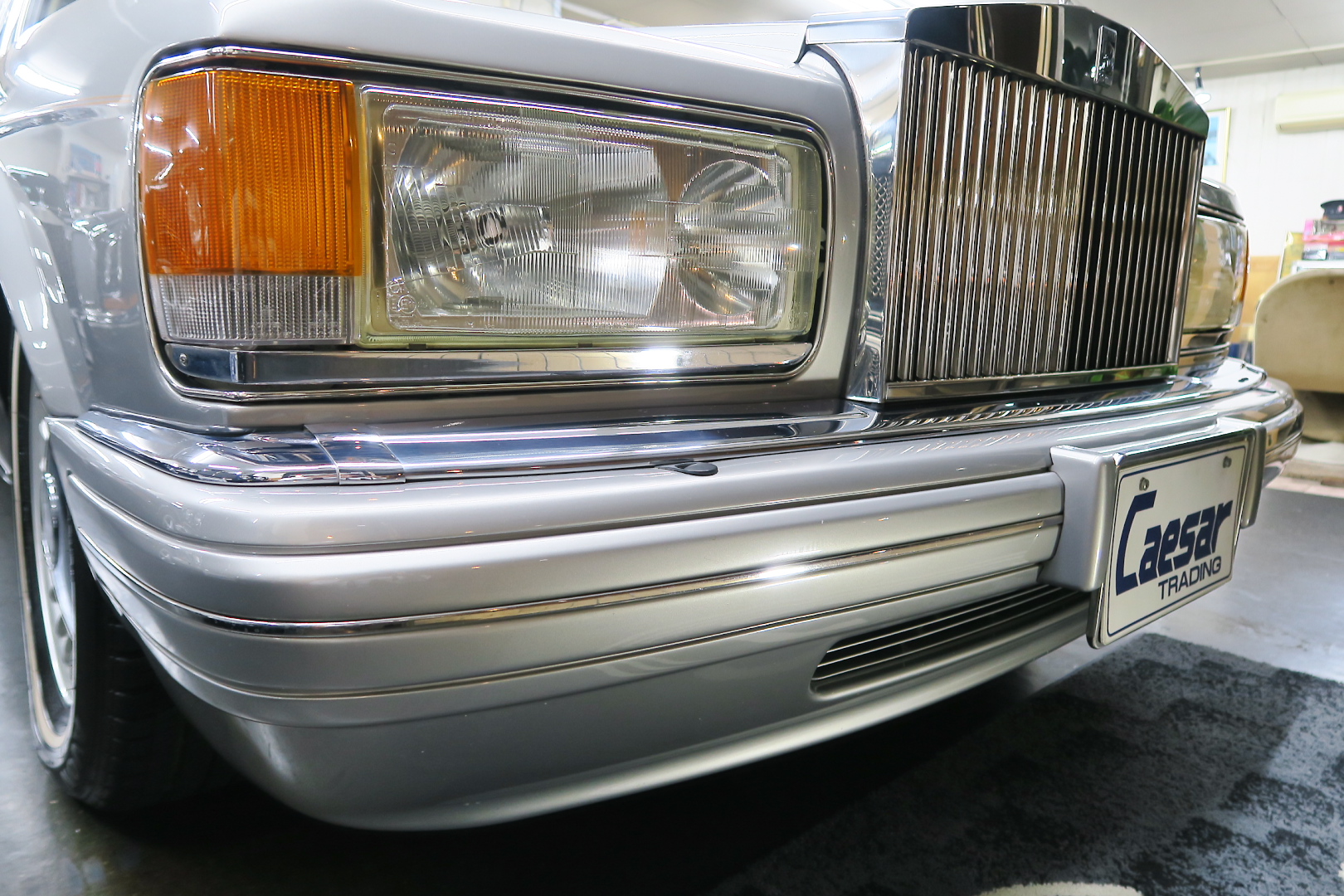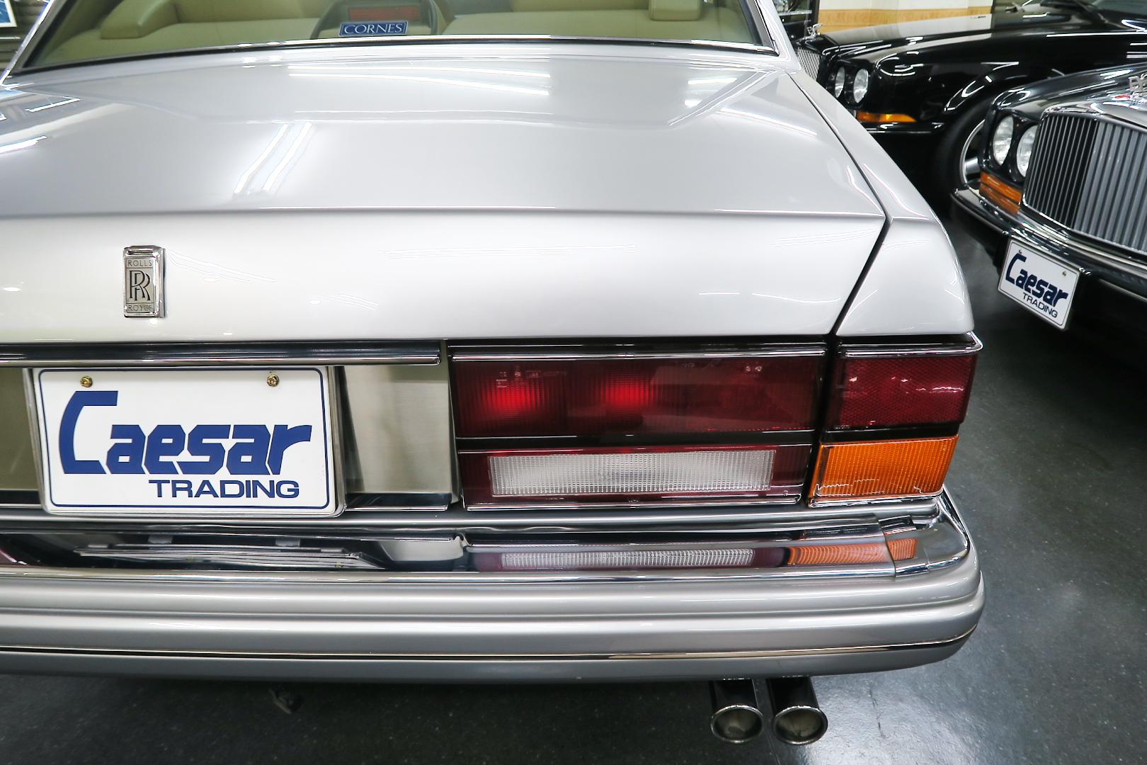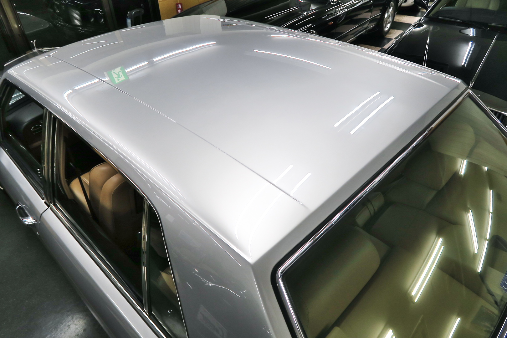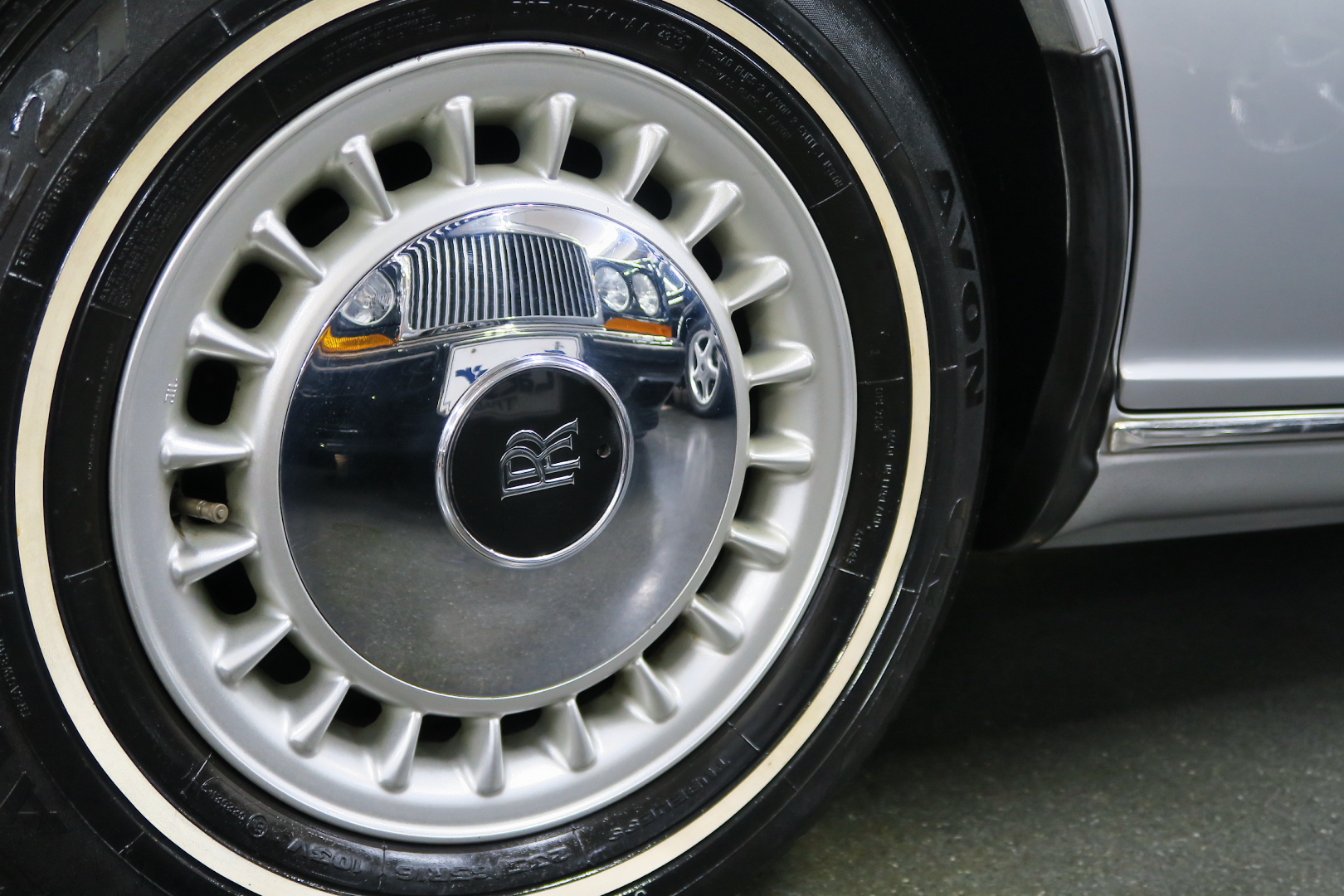 外装は、「シルバー・パール」。 当時の新色、薄い色目のシルバーメタリック パールって名がつくカラーであるから、塗料に「パールマイカ」が含まれていて、確かに、パールっぽい 輝きをみせる。 塗装コンディションも申し分なし。バリビカっ。 ボディサイドには、内装カラーに合わせた タン系色のコーチラインが2本入ってる。 SZ系ロールスに コーチラインは、つきものだ。 98年モデルだけの外見上の特徴は、 *前後バンパーが、ボディ同色塗装 *トランクのエンブレムが、「ブルー」カラー 一目で「98’ ファイナル」と分かる。 全長:541cm、、ロングホイール・ベース。 98年時には、ターボ無しモデルの「シルバードーン」も存在したが、98’「ドーン」は、世界で「11台」 しか売れていない。 大半の方が、「ターボ付き」を選択したようだ。 リアのドアが10cm短い「スピリット」は、97年時コーンズのカタログから消え、特別オーダー受付のみ の扱いとなる。 「ターボ付き」は、特注しない限り、「スピリット」には設定がなかった。 この特注をオーダーした人は、世界に6人しかいない。 「スピリット」は、97年モデル(6台)が、最終モデルとなった。 ロングホイールと聞くと、長いと思われる方も多かろうが、やたらハンドルが切れるので、 驚くほど取り廻しが良い。 メルセデスのSクラスが入れる道なら、困らず ついていけるはず。 96年時の大幅改良は、初めて、ボディにまで及び、 ・フロント廻りのボディプレス(左右フェンダー形状など)、 ・前後のバンパー・一体式エアロスポイラー、 ・ミラーがボディと一体式に、 ・グリルの縦横比(縦が少し短くなった)、 ・アルミホイール(16インチ)デザイン、 ・マドガラス枠サッシにウェザーストリップが、、 などが変更に、 これは、全て 空力を計算した上での結果で、高速走行時の風切り音は、明らかに激減した。 ベントレーのモデルについては戦前から「空力」を考えたボディ作りがなされてきたが、こと ロールスの モデルでは、この96年モデルで初めて考えてみたのではなかろうか?? 95年以前モデルを上記改良がなされた96’以降モデル仕様に後から改造するには莫大な費用を要す、、 一般的には不可能である。 SZ系までのモデルは、スタンダード・サルーンでも、開閉部(ボンネット・トランク・ドア4枚・給油口 )は全て「アルミ」製、 戦後モデルの伝統であったが、、この後のモデル(セラフ・アルナージ)から総スチィール・ボディとなる。 コスト・ダウンは、まず、見えない箇所から 行われるのだ。 |