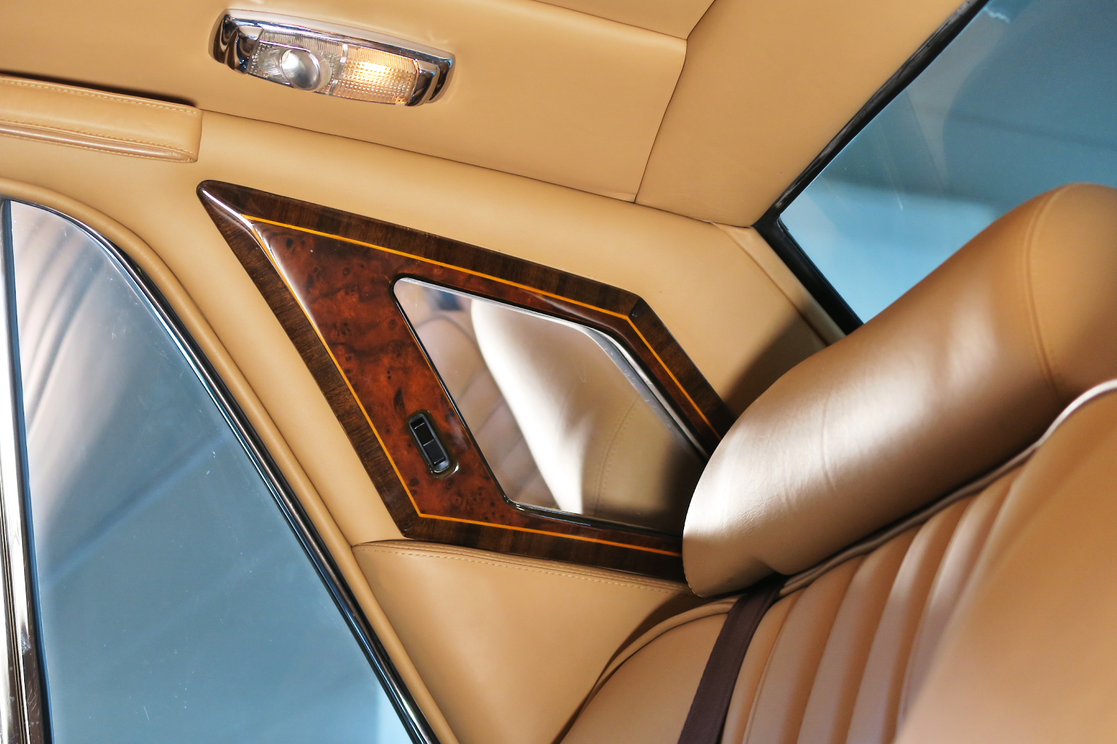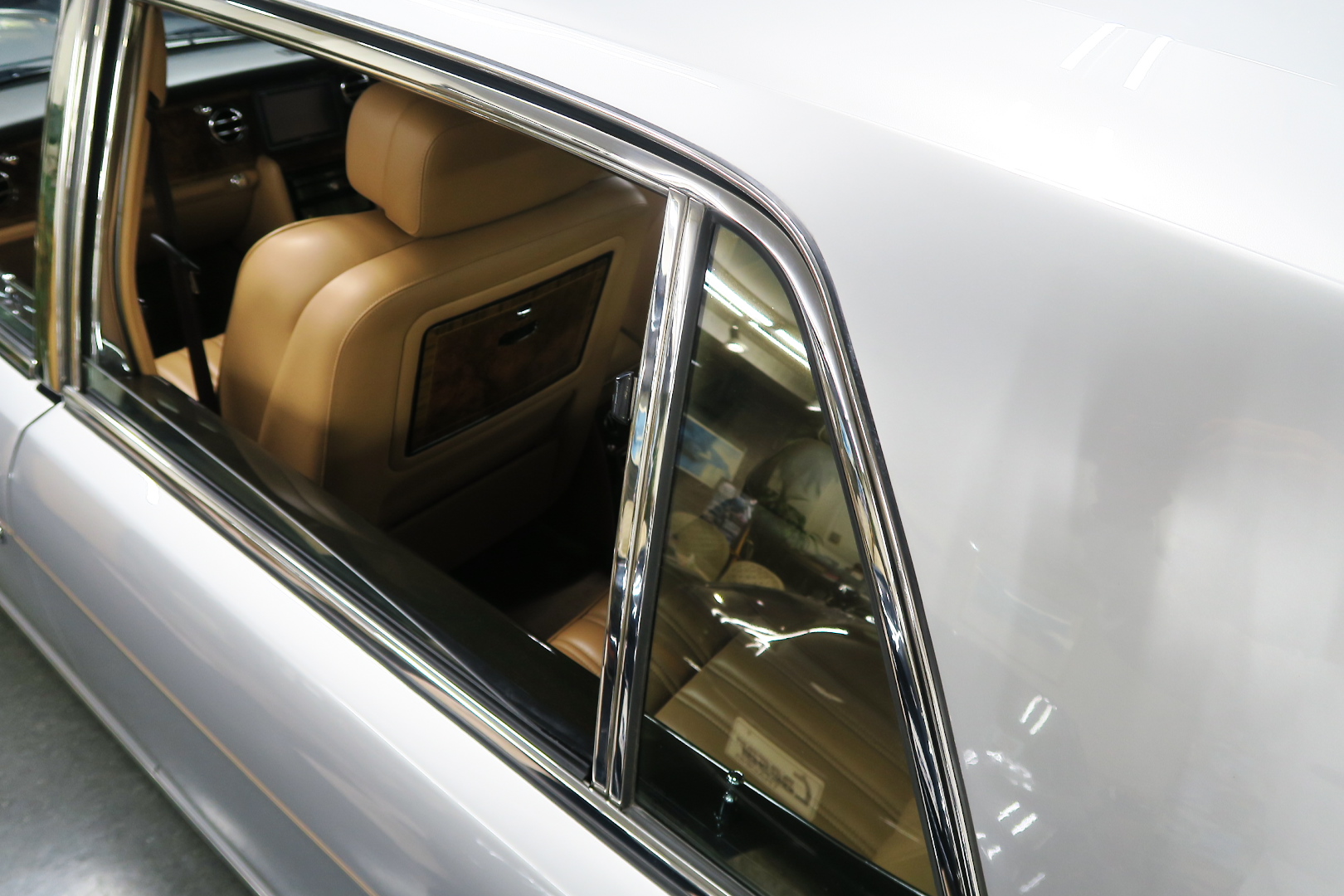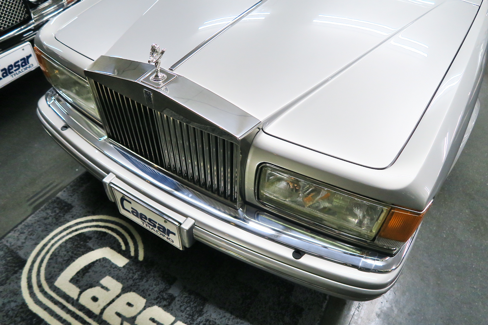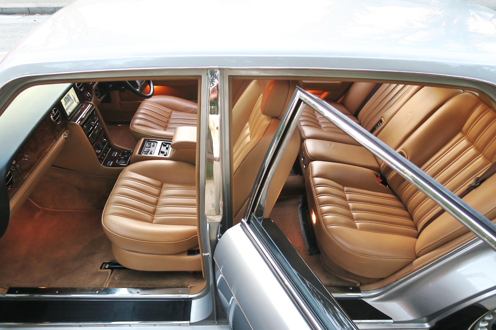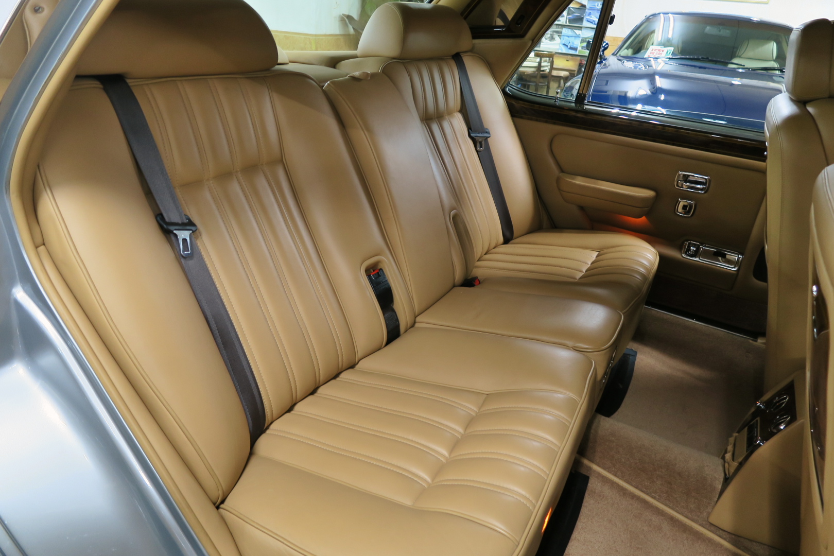 外装は、「シルバー・パール」。 当時の新色、薄い色目のシルバーメタリック パールって名がつくカラーであるから、塗料に「パールマイカ」が含まれていて、確かに、パールっぽい 輝きをみせる。 塗装コンディションも申し分なし。バリビカっ。 ボディサイドには、内装カラーに合わせた タン系色のコーチラインが2本入ってる。 SZ系ロールスに コーチラインは、つきものだ。 98年モデルだけの外見上の特徴は、 *前後バンパーが、ボディ同色塗装 *トランクのエンブレムが、「ブルー」カラー 一目で「98’ ファイナル」と分かる。 全長:541cm、、ロングホイール・ベース。 98年時には、ターボ無しモデルの「シルバードーン」も存在したが、98’「ドーン」は、世界で「11台」 しか売れていない。 大半の方が、「ターボ付き」を選択したようだ。 リアのドアが10cm短い「スピリット」は、97年時コーンズのカタログから消え、特別オーダー受付のみ の扱いとなる。 「ターボ付き」は、特注しない限り、「スピリット」には設定がなかった。 この特注をオーダーした人は、世界に6人しかいない。 「スピリット」は、97年モデル(6台)が、最終モデルとなった。 ロングホイールと聞くと、長いと思われる方も多かろうが、やたらハンドルが切れるので、 驚くほど取り廻しが良い。 メルセデスのSクラスが入れる道なら、困らず ついていけるはず。 96年時の大幅改良は、初めて、ボディにまで及び、 ・フロント廻りのボディプレス(左右フェンダー形状など)、 ・前後のバンパー・一体式エアロスポイラー、 ・ミラーがボディと一体式に、 ・グリルの縦横比(縦が少し短くなった)、 ・アルミホイール(16インチ)デザイン、 ・マドガラス枠サッシにウェザーストリップが、、 などが変更に、 これは、全て 空力を計算した上での結果で、高速走行時の風切り音は、明らかに激減した。 ベントレーのモデルについては戦前から「空力」を考えたボディ作りがなされてきたが、こと ロールスの モデルでは、この96年モデルで初めて考えてみたのではなかろうか?? 95年以前モデルを上記改良がなされた96’以降モデル仕様に後から改造するには莫大な費用を要す、、 一般的には不可能である。 SZ系までのモデルは、スタンダード・サルーンでも、開閉部(ボンネット・トランク・ドア4枚・給油口 )は全て「アルミ」製、 戦後モデルの伝統であったが、、この後のモデル(セラフ・アルナージ)から総スチィール・ボディとなる。 コスト・ダウンは、まず、見えない箇所から 行われるのだ。 |