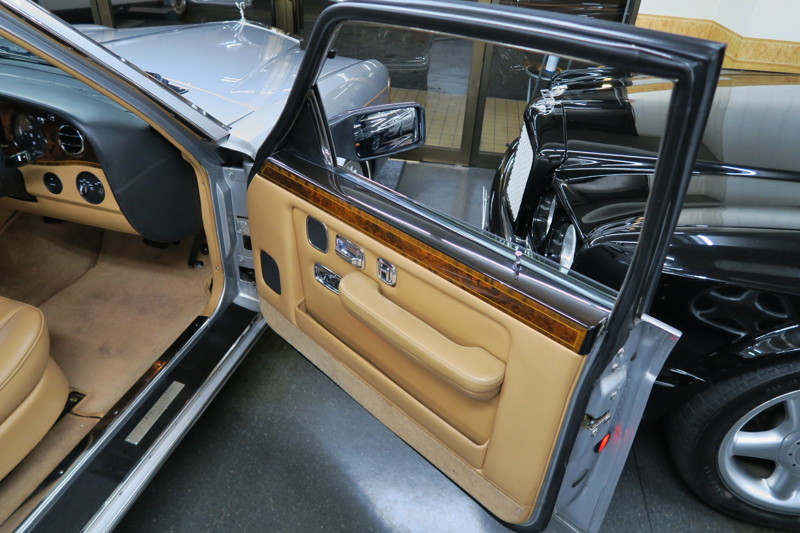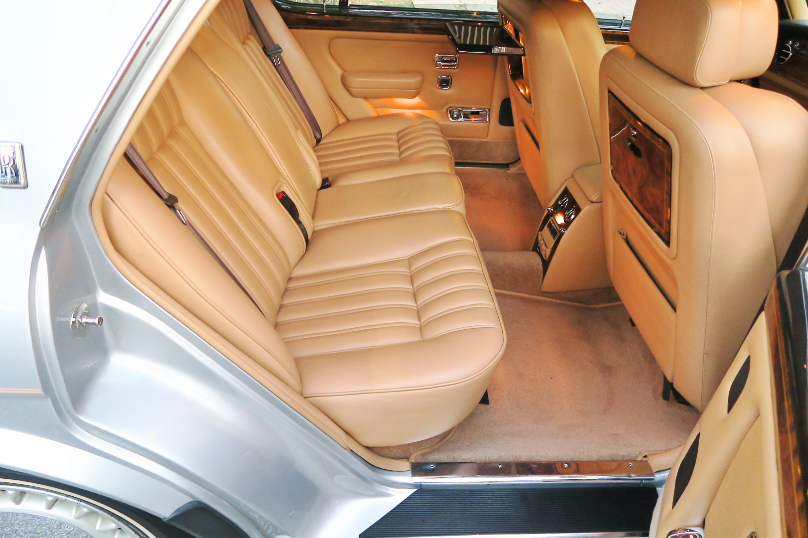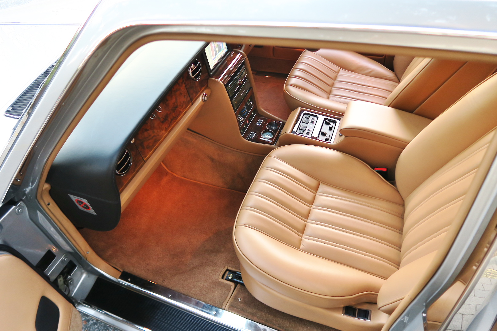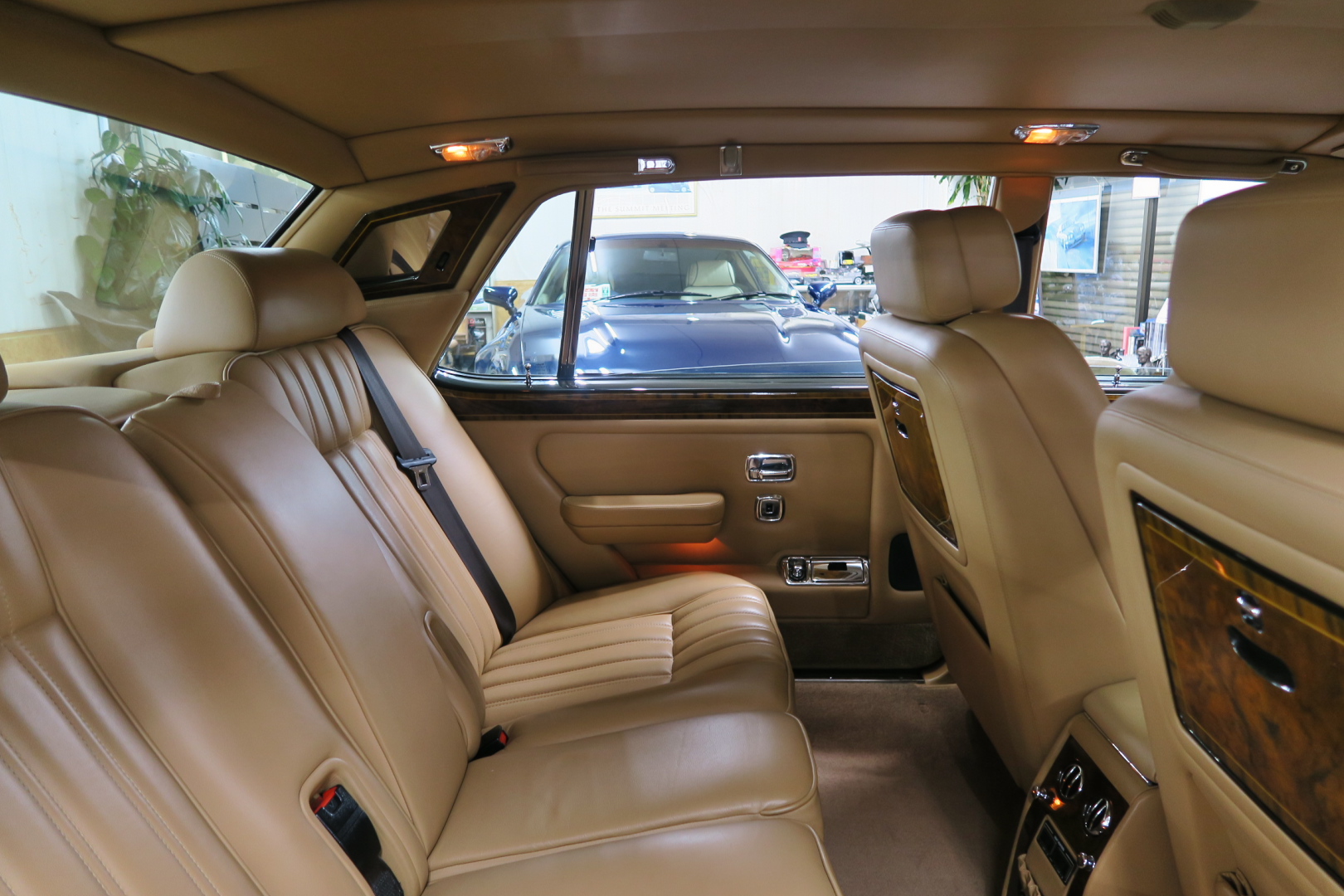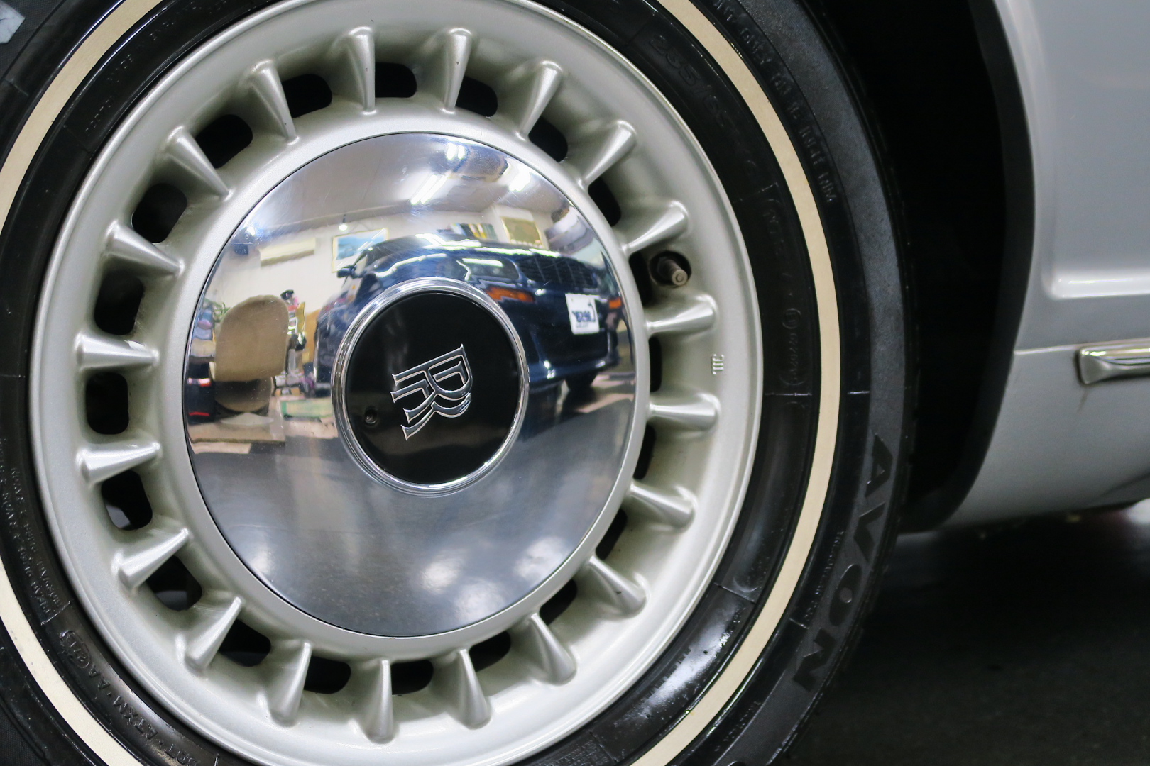 外装は、「シルバー・パール」。 当時の新色、薄い色目のシルバーメタリック パールって名がつくカラーであるから、塗料に「パールマイカ」が含まれていて、確かに、パールっぽい 輝きをみせる。 塗装コンディションも申し分なし。バリビカっ。 ボディサイドには、内装カラーに合わせた タン系色のコーチラインが2本入ってる。 SZ系ロールスに コーチラインは、つきものだ。 98年モデルだけの外見上の特徴は、 *前後バンパーが、ボディ同色塗装 *トランクのエンブレムが、「ブルー」カラー 一目で「98’ ファイナル」と分かる。 全長:541cm、、ロングホイール・ベース。 98年時には、ターボ無しモデルの「シルバードーン」も存在したが、98’「ドーン」は、世界で「11台」 しか売れていない。 大半の方が、「ターボ付き」を選択したようだ。 リアのドアが10cm短い「スピリット」は、97年時コーンズのカタログから消え、特別オーダー受付のみ の扱いとなる。 「ターボ付き」は、特注しない限り、「スピリット」には設定がなかった。 この特注をオーダーした人は、世界に6人しかいない。 「スピリット」は、97年モデル(6台)が、最終モデルとなった。 ロングホイールと聞くと、長いと思われる方も多かろうが、やたらハンドルが切れるので、 驚くほど取り廻しが良い。 メルセデスのSクラスが入れる道なら、困らず ついていけるはず。 96年時の大幅改良は、初めて、ボディにまで及び、 ・フロント廻りのボディプレス(左右フェンダー形状など)、 ・前後のバンパー・一体式エアロスポイラー、 ・ミラーがボディと一体式に、 ・グリルの縦横比(縦が少し短くなった)、 ・アルミホイール(16インチ)デザイン、 ・マドガラス枠サッシにウェザーストリップが、、 などが変更に、 これは、全て 空力を計算した上での結果で、高速走行時の風切り音は、明らかに激減した。 ベントレーのモデルについては戦前から「空力」を考えたボディ作りがなされてきたが、こと ロールスの モデルでは、この96年モデルで初めて考えてみたのではなかろうか?? 95年以前モデルを上記改良がなされた96’以降モデル仕様に後から改造するには莫大な費用を要す、、 一般的には不可能である。 SZ系までのモデルは、スタンダード・サルーンでも、開閉部(ボンネット・トランク・ドア4枚・給油口 )は全て「アルミ」製、 戦後モデルの伝統であったが、、この後のモデル(セラフ・アルナージ)から総スチィール・ボディとなる。 コスト・ダウンは、まず、見えない箇所から 行われるのだ。 |