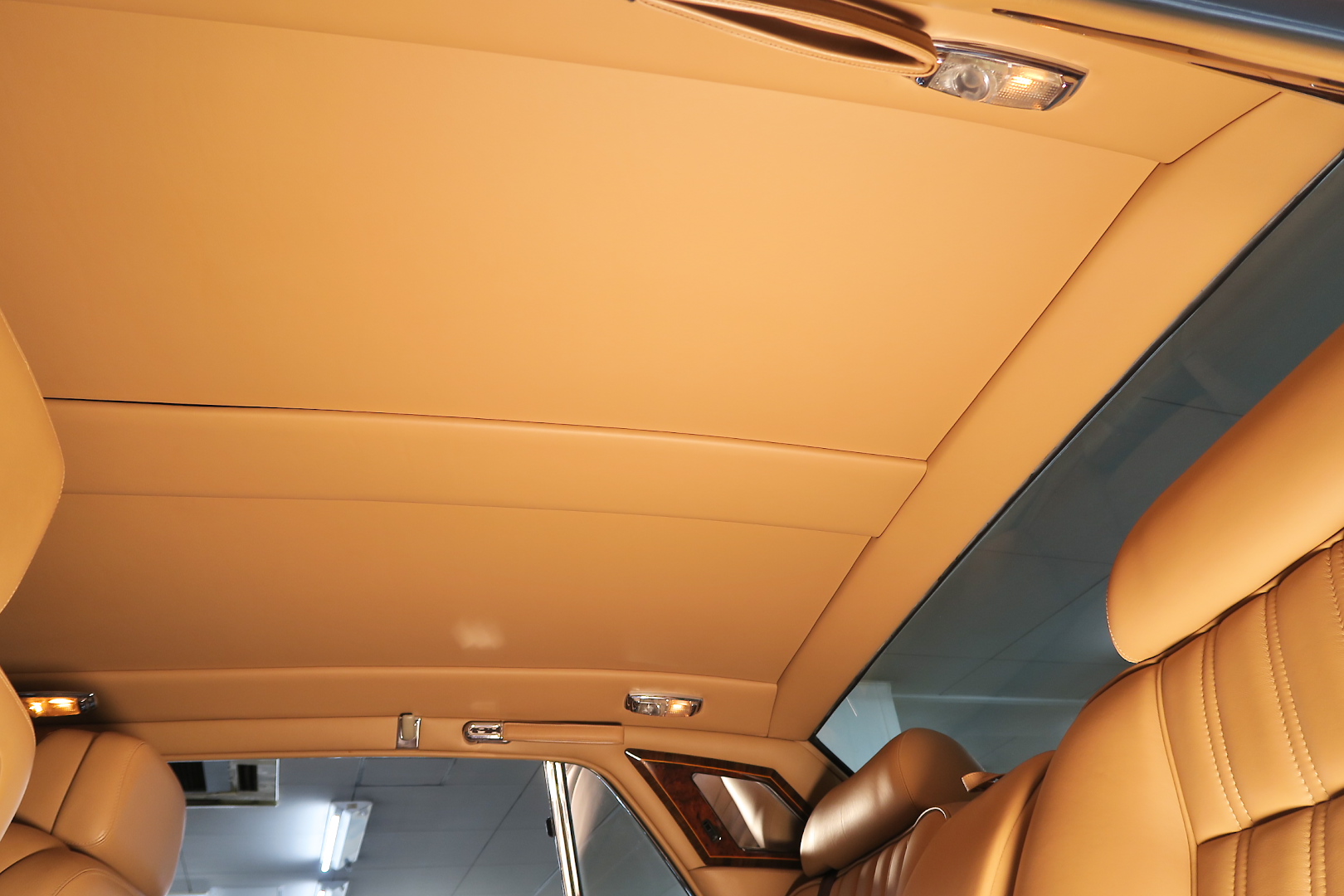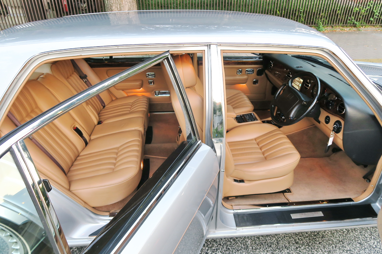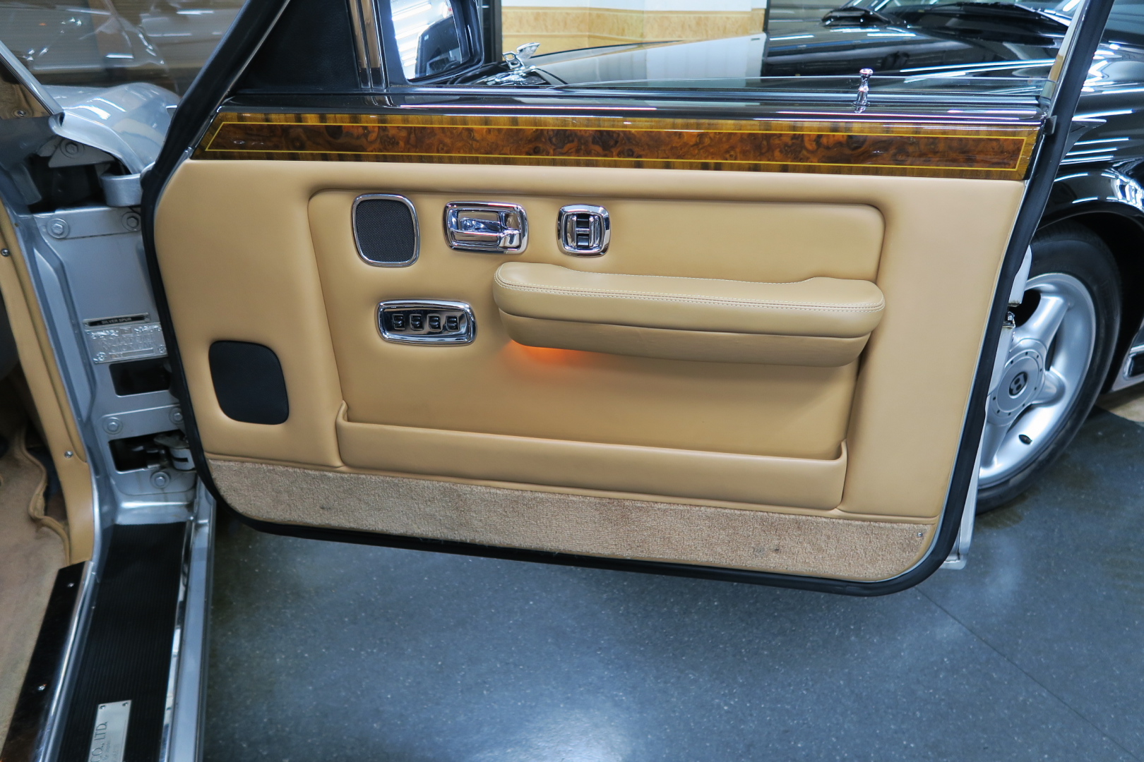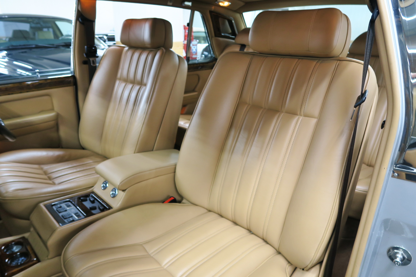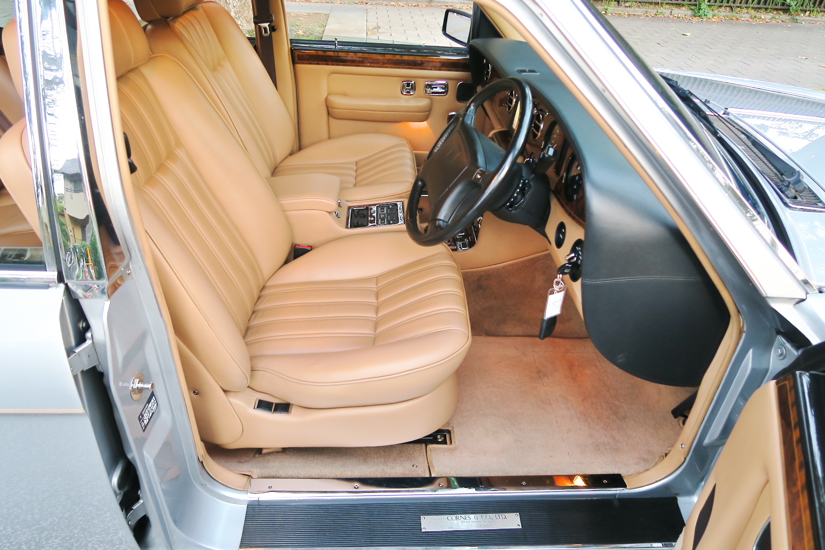 外装は、「シルバー・パール」。 当時の新色、薄い色目のシルバーメタリック パールって名がつくカラーであるから、塗料に「パールマイカ」が含まれていて、確かに、パールっぽい 輝きをみせる。 塗装コンディションも申し分なし。バリビカっ。 ボディサイドには、内装カラーに合わせた タン系色のコーチラインが2本入ってる。 SZ系ロールスに コーチラインは、つきものだ。 98年モデルだけの外見上の特徴は、 *前後バンパーが、ボディ同色塗装 *トランクのエンブレムが、「ブルー」カラー 一目で「98’ ファイナル」と分かる。 全長:541cm、、ロングホイール・ベース。 98年時には、ターボ無しモデルの「シルバードーン」も存在したが、98’「ドーン」は、世界で「11台」 しか売れていない。 大半の方が、「ターボ付き」を選択したようだ。 リアのドアが10cm短い「スピリット」は、97年時コーンズのカタログから消え、特別オーダー受付のみ の扱いとなる。 「ターボ付き」は、特注しない限り、「スピリット」には設定がなかった。 この特注をオーダーした人は、世界に6人しかいない。 「スピリット」は、97年モデル(6台)が、最終モデルとなった。 ロングホイールと聞くと、長いと思われる方も多かろうが、やたらハンドルが切れるので、 驚くほど取り廻しが良い。 メルセデスのSクラスが入れる道なら、困らず ついていけるはず。 96年時の大幅改良は、初めて、ボディにまで及び、 ・フロント廻りのボディプレス(左右フェンダー形状など)、 ・前後のバンパー・一体式エアロスポイラー、 ・ミラーがボディと一体式に、 ・グリルの縦横比(縦が少し短くなった)、 ・アルミホイール(16インチ)デザイン、 ・マドガラス枠サッシにウェザーストリップが、、 などが変更に、 これは、全て 空力を計算した上での結果で、高速走行時の風切り音は、明らかに激減した。 ベントレーのモデルについては戦前から「空力」を考えたボディ作りがなされてきたが、こと ロールスの モデルでは、この96年モデルで初めて考えてみたのではなかろうか?? 95年以前モデルを上記改良がなされた96’以降モデル仕様に後から改造するには莫大な費用を要す、、 一般的には不可能である。 SZ系までのモデルは、スタンダード・サルーンでも、開閉部(ボンネット・トランク・ドア4枚・給油口 )は全て「アルミ」製、 戦後モデルの伝統であったが、、この後のモデル(セラフ・アルナージ)から総スチィール・ボディとなる。 コスト・ダウンは、まず、見えない箇所から 行われるのだ。 |