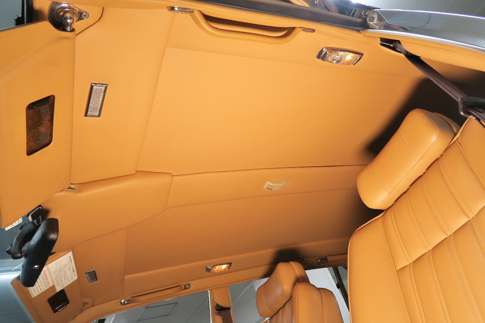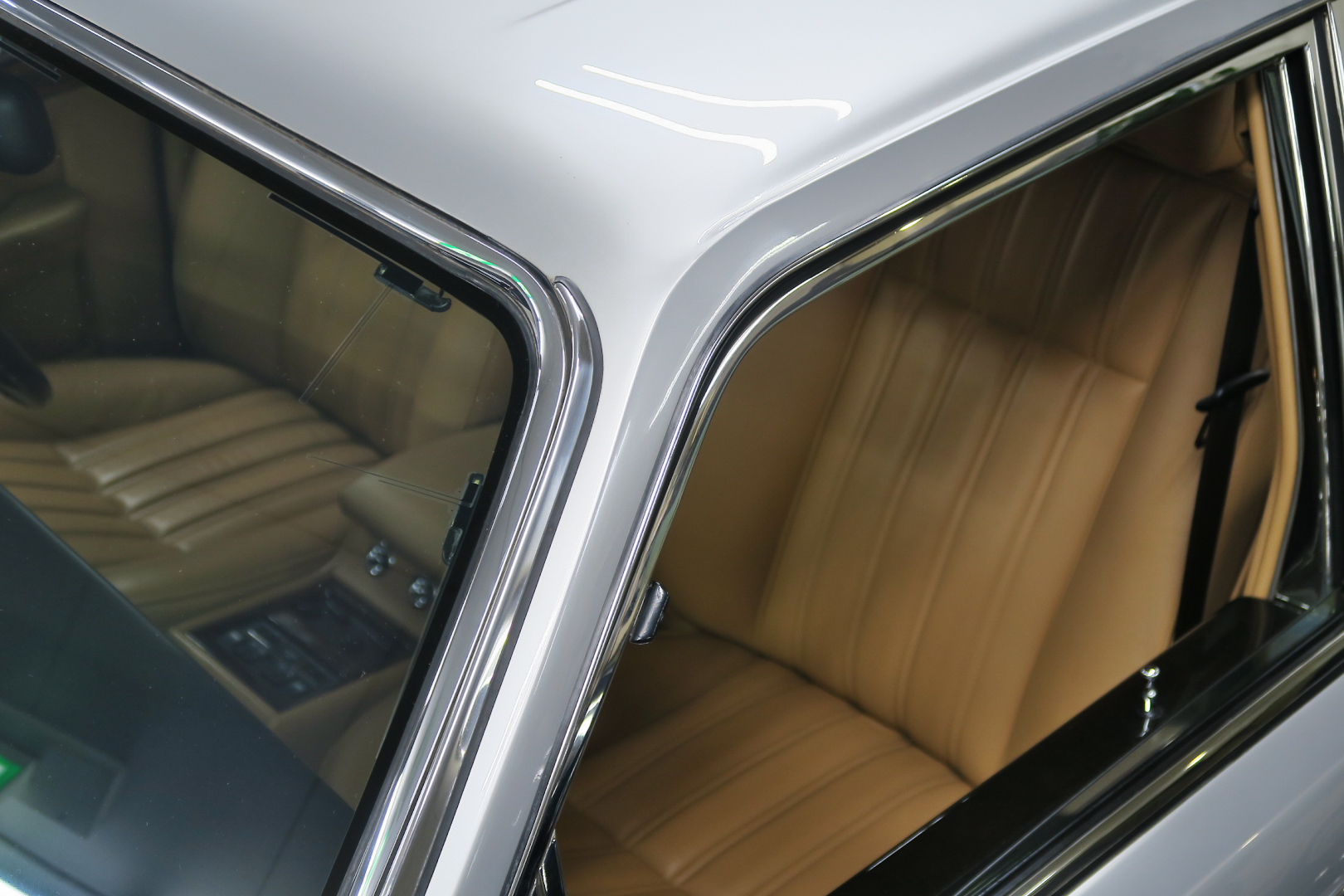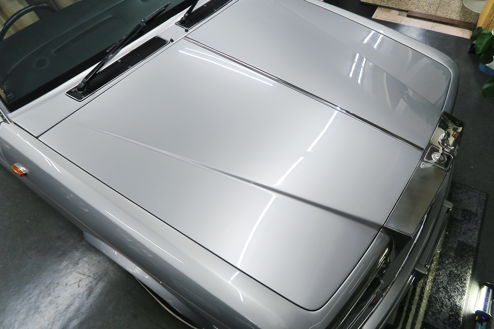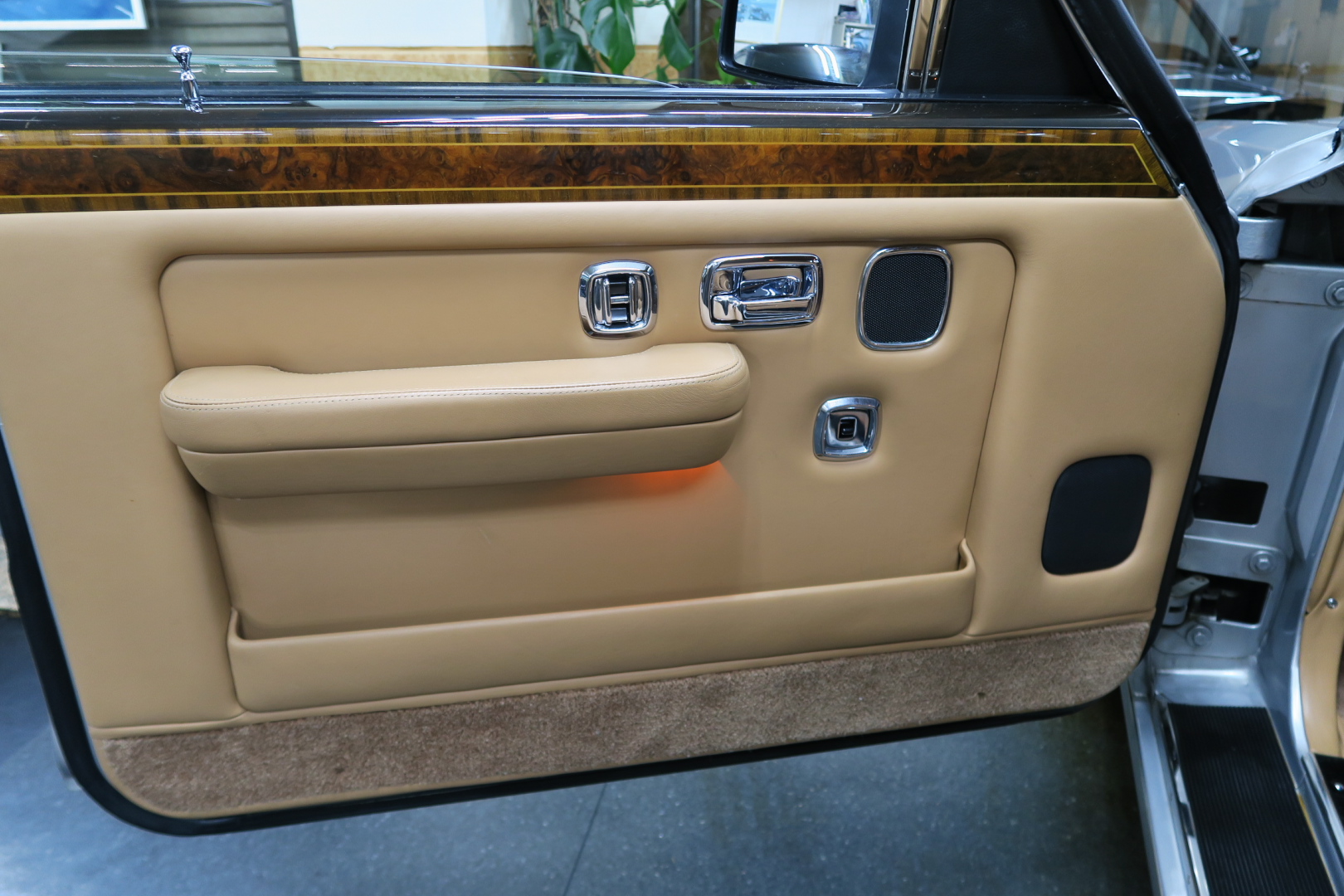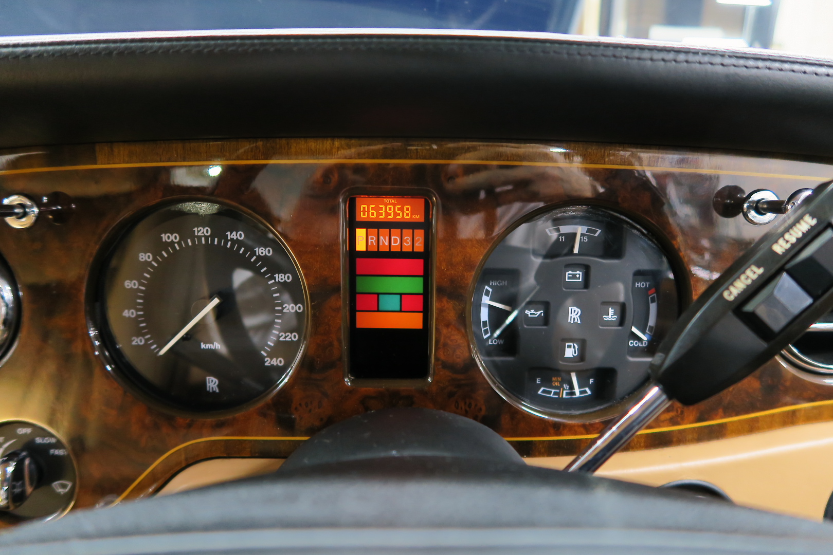 外装は、「シルバー・パール」。 当時の新色、薄い色目のシルバーメタリック パールって名がつくカラーであるから、塗料に「パールマイカ」が含まれていて、確かに、パールっぽい 輝きをみせる。 塗装コンディションも申し分なし。バリビカっ。 ボディサイドには、内装カラーに合わせた タン系色のコーチラインが2本入ってる。 SZ系ロールスに コーチラインは、つきものだ。 98年モデルだけの外見上の特徴は、 *前後バンパーが、ボディ同色塗装 *トランクのエンブレムが、「ブルー」カラー 一目で「98’ ファイナル」と分かる。 全長:541cm、、ロングホイール・ベース。 98年時には、ターボ無しモデルの「シルバードーン」も存在したが、98’「ドーン」は、世界で「11台」 しか売れていない。 大半の方が、「ターボ付き」を選択したようだ。 リアのドアが10cm短い「スピリット」は、97年時コーンズのカタログから消え、特別オーダー受付のみ の扱いとなる。 「ターボ付き」は、特注しない限り、「スピリット」には設定がなかった。 この特注をオーダーした人は、世界に6人しかいない。 「スピリット」は、97年モデル(6台)が、最終モデルとなった。 ロングホイールと聞くと、長いと思われる方も多かろうが、やたらハンドルが切れるので、 驚くほど取り廻しが良い。 メルセデスのSクラスが入れる道なら、困らず ついていけるはず。 96年時の大幅改良は、初めて、ボディにまで及び、 ・フロント廻りのボディプレス(左右フェンダー形状など)、 ・前後のバンパー・一体式エアロスポイラー、 ・ミラーがボディと一体式に、 ・グリルの縦横比(縦が少し短くなった)、 ・アルミホイール(16インチ)デザイン、 ・マドガラス枠サッシにウェザーストリップが、、 などが変更に、 これは、全て 空力を計算した上での結果で、高速走行時の風切り音は、明らかに激減した。 ベントレーのモデルについては戦前から「空力」を考えたボディ作りがなされてきたが、こと ロールスの モデルでは、この96年モデルで初めて考えてみたのではなかろうか?? 95年以前モデルを上記改良がなされた96’以降モデル仕様に後から改造するには莫大な費用を要す、、 一般的には不可能である。 SZ系までのモデルは、スタンダード・サルーンでも、開閉部(ボンネット・トランク・ドア4枚・給油口 )は全て「アルミ」製、 戦後モデルの伝統であったが、、この後のモデル(セラフ・アルナージ)から総スチィール・ボディとなる。 コスト・ダウンは、まず、見えない箇所から 行われるのだ。 |