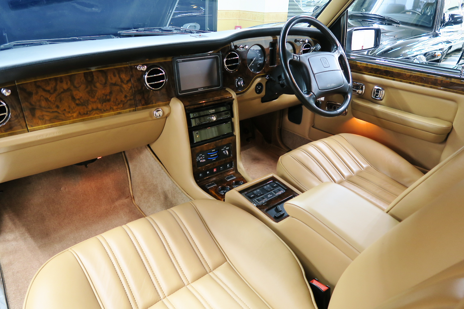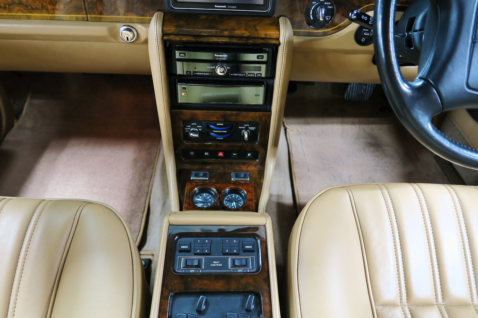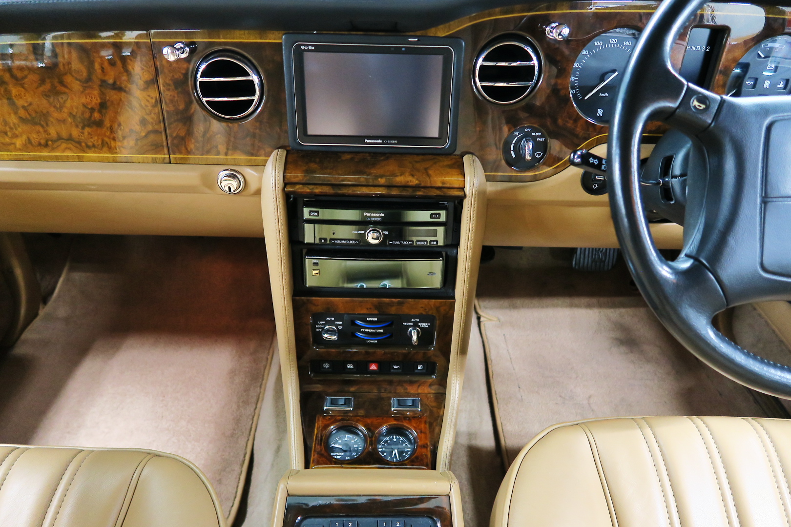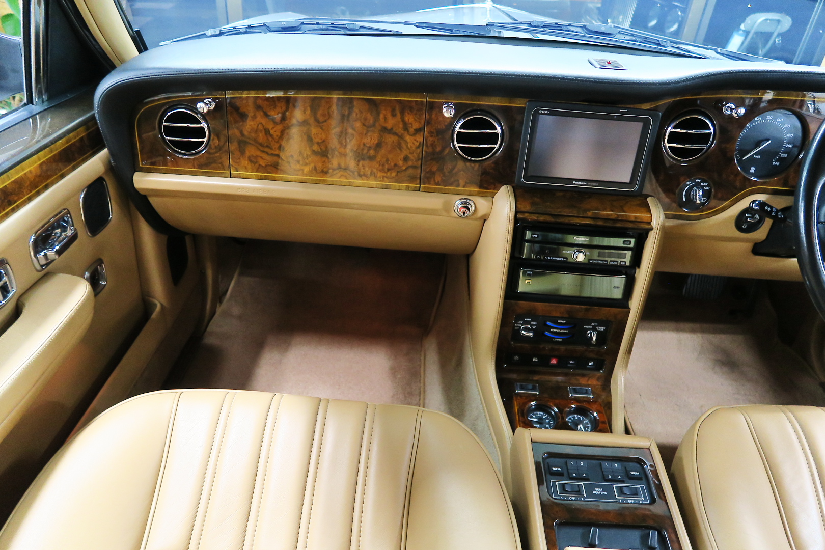 内装は、「ソフト・タン」コノリー・レザー。 昔からの「タン」カラーより、より明るいタン、もち、オリジナル「コノリー」! 室内、、まさに 走行距離を感じさせない:極上コンディションだ。 オリジナル「コノリー」は、走行距離が信じられないほど、スレもヤレもない。 また、「バーウォールナット」パネルも驚くほど艶々っ しかも、クラックは、リア・ピクニックテーブル表に2cmほどがあるだけで、あとは なし。 まず こういう個体には出会えない。 SZ系モデルと言うと、、これを語らないわけにはいかない、、 いまや見ることは出来ない(2002年末でコノリー社は自動車メーカーへの革供給業務を停止)コノリー 張り、、ビニールやプラスティックの類いは、ほぼ使用されていない。 ダッシュボード、ハンドル、ウエリントンのカーペットの縁を飾る革まで、「コノリー」レザーだ。 96年からのモデルは、内装も一新され、ロールス・ロイス・4ドアサルーンモデルとしては、初めてセン ターコンソールがダッシュに繋がった。 これは、スパーは完全なショーファードリブンの車ではない、ってことをメーカーも暗示させたってこと。 ショーファードリブンの場合、運転手は後部シートに座るオーナーのドアを開ける際、左右どちらのドアか らも内側から降りられる必要がある、、つまり、センターコンソールが切れていなければ、運転手が移動し ずらい。 後ろにだけ乗るなら、リムジンが正しい(スパーは、リムジンではない)。 コーニッシュは、先駆けて86年から、センターコンソールがダッシュに繋がったが、もちろん、コーニッ シュは、オーナーが後ろに乗る車ではない。 で、スパーも、オーナー自ら、堂々とハンドルを握ってよし。 運転手に見られそう、って?、、後ろにお乗りになるオーナーは、とっくに、正しいリムジン(ファンタム やパークウォード)の後ろに お乗りになっているので、ご心配なく。 もう一つ、96年以降のSZ系モデルの内装で特筆したいのが、、 「バー・ウォールナット」張り部分の面積の拡大、、 センターコンソールが繋がったお陰もあるが、、高級感UPとともに、より、クラシカルになった。 後部のエアコン吹き出し口が追加されたのも96’以降から、、些細なことだが、後ろに座る方にとっては、素 早くエアコンの恩恵を受けられることになった。 リア・シートも、パワー&シートヒーター付き。ターボ無しモデルの「ドーン」には、この装備はない。 さて、当個体、現在写真では、カロッツェリアの「インダッシュ・ナビ」が取り付けられているが、 これは、前オーナーにお戻しするので、無き ものと。 替わりには、次のオーナー様次第ですが、CDオーディオ と 引き出し式小物入れ(社外品で入手できる) にするのが、パターン。 このカロのナビは、前述の昔オーナー様が取り付けたものだそうで、古い。 また そのころ製品自体が生産中止となり、もはや中古品しかない。 他、インパネのセンターには、パナソニックの「ゴリラ」ナビが埋め込まれている。 これも今となっては使い道に困るが、例えば、新しめのゴリラに入れ替えて、バックカメラのモニターとして 利用するのが 最も有益だろうと思う。 この場所には、本来、「時計」と「外気温度計」があったのだが、その2つの計器は、センターコンソールに 移設されている。これは戻しようがないので、そのままで。 |