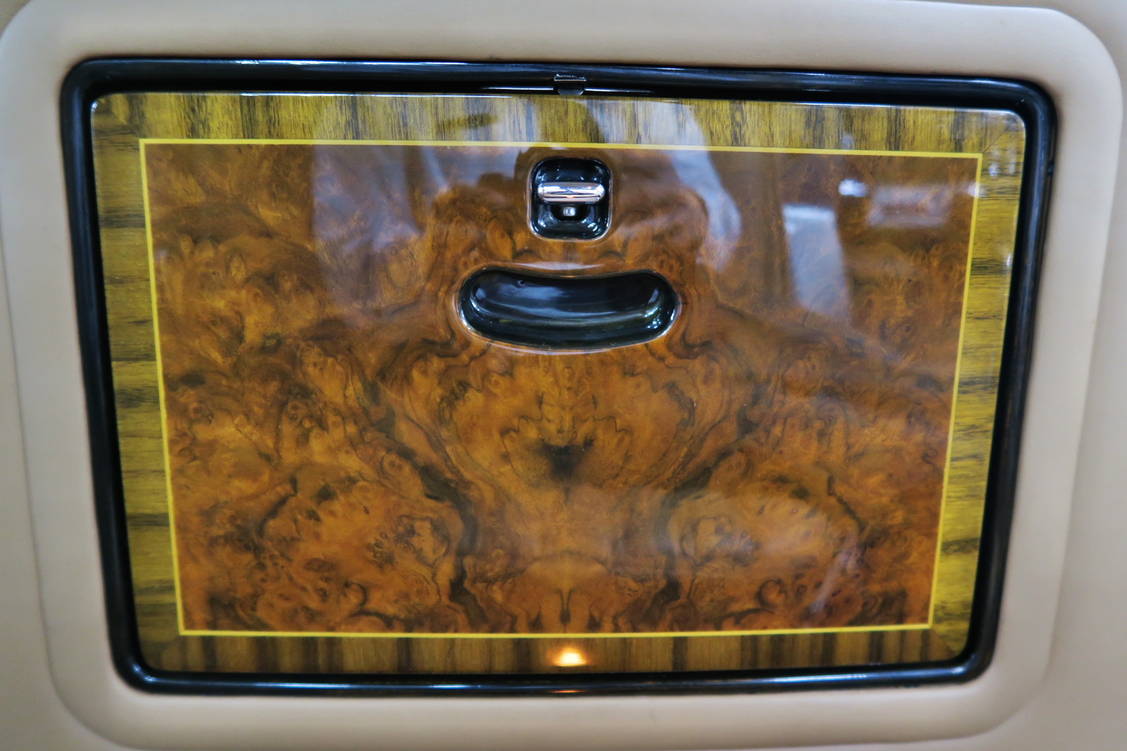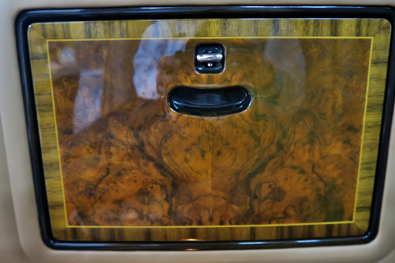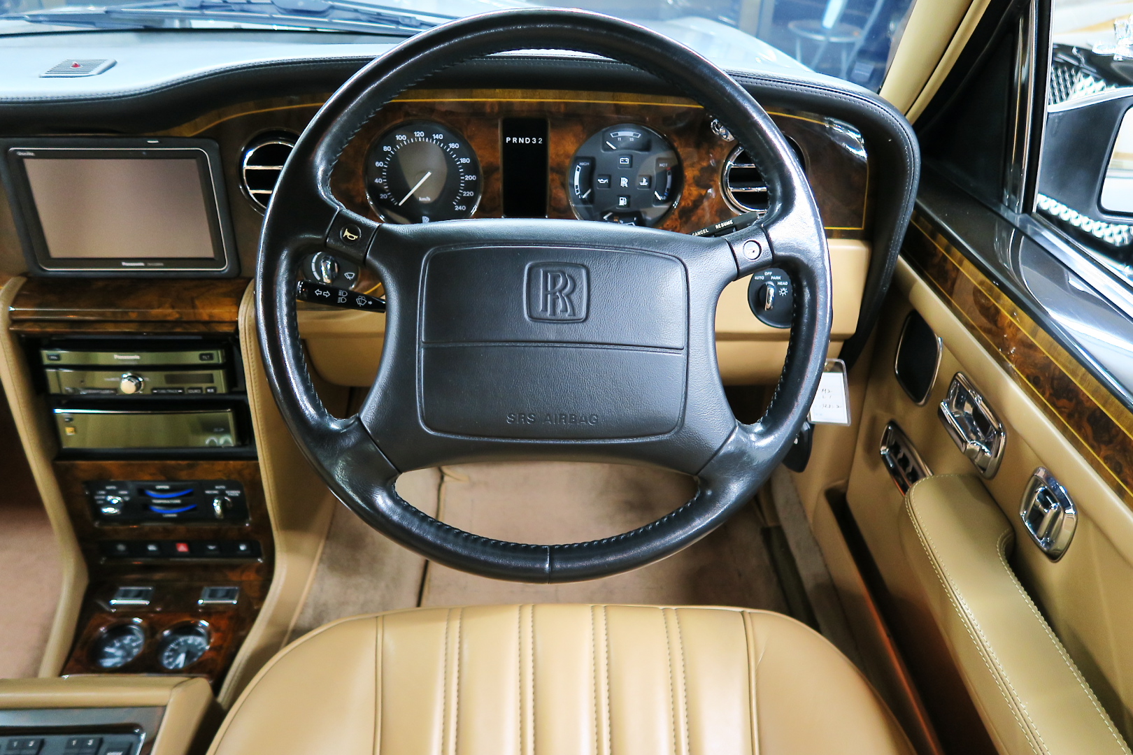 内装は、「ソフト・タン」コノリー・レザー。 昔からの「タン」カラーより、より明るいタン、もち、オリジナル「コノリー」! 室内、、まさに 走行距離を感じさせない:極上コンディションだ。 オリジナル「コノリー」は、走行距離が信じられないほど、スレもヤレもない。 また、「バーウォールナット」パネルも驚くほど艶々っ しかも、クラックは、リア・ピクニックテーブル表に2cmほどがあるだけで、あとは なし。 まず こういう個体には出会えない。 SZ系モデルと言うと、、これを語らないわけにはいかない、、 いまや見ることは出来ない(2002年末でコノリー社は自動車メーカーへの革供給業務を停止)コノリー 張り、、ビニールやプラスティックの類いは、ほぼ使用されていない。 ダッシュボード、ハンドル、ウエリントンのカーペットの縁を飾る革まで、「コノリー」レザーだ。 96年からのモデルは、内装も一新され、ロールス・ロイス・4ドアサルーンモデルとしては、初めてセン ターコンソールがダッシュに繋がった。 これは、スパーは完全なショーファードリブンの車ではない、ってことをメーカーも暗示させたってこと。 ショーファードリブンの場合、運転手は後部シートに座るオーナーのドアを開ける際、左右どちらのドアか らも内側から降りられる必要がある、、つまり、センターコンソールが切れていなければ、運転手が移動し ずらい。 後ろにだけ乗るなら、リムジンが正しい(スパーは、リムジンではない)。 コーニッシュは、先駆けて86年から、センターコンソールがダッシュに繋がったが、もちろん、コーニッ シュは、オーナーが後ろに乗る車ではない。 で、スパーも、オーナー自ら、堂々とハンドルを握ってよし。 運転手に見られそう、って?、、後ろにお乗りになるオーナーは、とっくに、正しいリムジン(ファンタム やパークウォード)の後ろに お乗りになっているので、ご心配なく。 もう一つ、96年以降のSZ系モデルの内装で特筆したいのが、、 「バー・ウォールナット」張り部分の面積の拡大、、 センターコンソールが繋がったお陰もあるが、、高級感UPとともに、より、クラシカルになった。 後部のエアコン吹き出し口が追加されたのも96’以降から、、些細なことだが、後ろに座る方にとっては、素 早くエアコンの恩恵を受けられることになった。 リア・シートも、パワー&シートヒーター付き。ターボ無しモデルの「ドーン」には、この装備はない。 さて、当個体、現在写真では、カロッツェリアの「インダッシュ・ナビ」が取り付けられているが、 これは、前オーナーにお戻しするので、無き ものと。 替わりには、次のオーナー様次第ですが、CDオーディオ と 引き出し式小物入れ(社外品で入手できる) にするのが、パターン。 このカロのナビは、前述の昔オーナー様が取り付けたものだそうで、古い。 また そのころ製品自体が生産中止となり、もはや中古品しかない。 他、インパネのセンターには、パナソニックの「ゴリラ」ナビが埋め込まれている。 これも今となっては使い道に困るが、例えば、新しめのゴリラに入れ替えて、バックカメラのモニターとして 利用するのが 最も有益だろうと思う。 この場所には、本来、「時計」と「外気温度計」があったのだが、その2つの計器は、センターコンソールに 移設されている。これは戻しようがないので、そのままで。 |