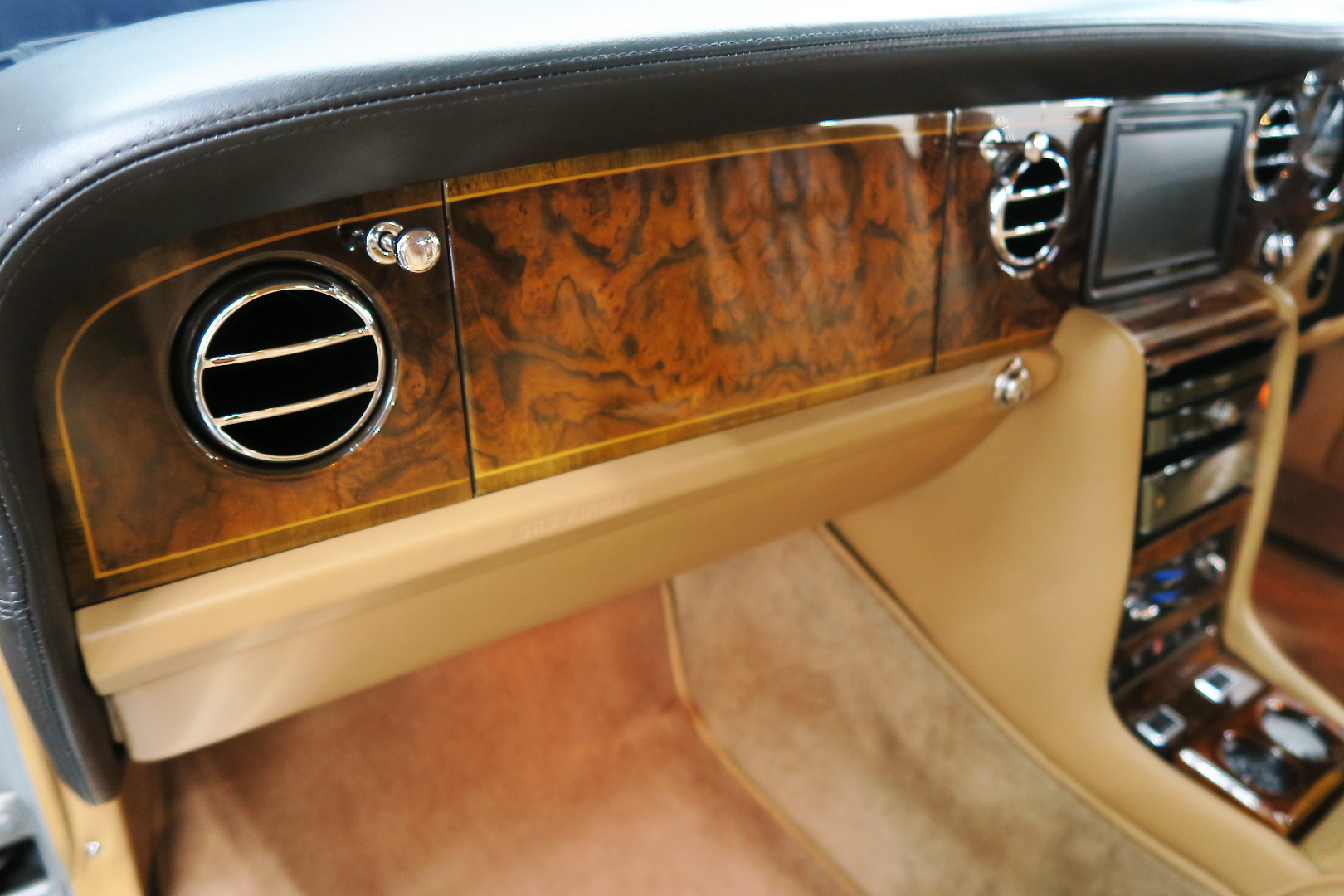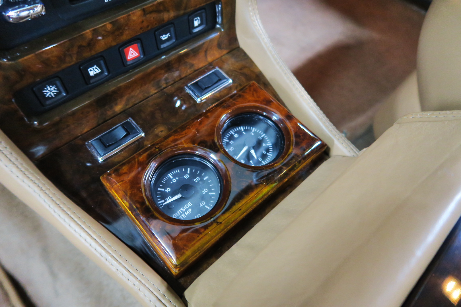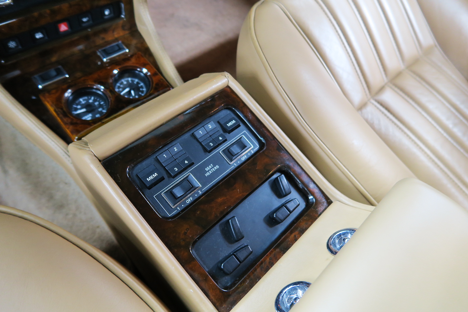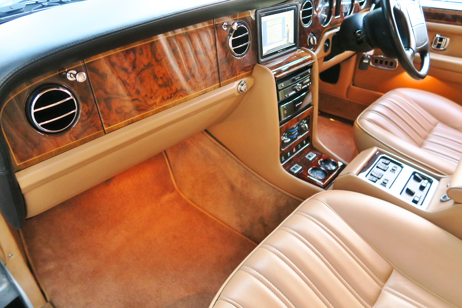 内装は、「ソフト・タン」コノリー・レザー。 昔からの「タン」カラーより、より明るいタン、もち、オリジナル「コノリー」! 室内、、まさに 走行距離を感じさせない:極上コンディションだ。 オリジナル「コノリー」は、走行距離が信じられないほど、スレもヤレもない。 また、「バーウォールナット」パネルも驚くほど艶々っ しかも、クラックは、リア・ピクニックテーブル表に2cmほどがあるだけで、あとは なし。 まず こういう個体には出会えない。 SZ系モデルと言うと、、これを語らないわけにはいかない、、 いまや見ることは出来ない(2002年末でコノリー社は自動車メーカーへの革供給業務を停止)コノリー 張り、、ビニールやプラスティックの類いは、ほぼ使用されていない。 ダッシュボード、ハンドル、ウエリントンのカーペットの縁を飾る革まで、「コノリー」レザーだ。 96年からのモデルは、内装も一新され、ロールス・ロイス・4ドアサルーンモデルとしては、初めてセン ターコンソールがダッシュに繋がった。 これは、スパーは完全なショーファードリブンの車ではない、ってことをメーカーも暗示させたってこと。 ショーファードリブンの場合、運転手は後部シートに座るオーナーのドアを開ける際、左右どちらのドアか らも内側から降りられる必要がある、、つまり、センターコンソールが切れていなければ、運転手が移動し ずらい。 後ろにだけ乗るなら、リムジンが正しい(スパーは、リムジンではない)。 コーニッシュは、先駆けて86年から、センターコンソールがダッシュに繋がったが、もちろん、コーニッ シュは、オーナーが後ろに乗る車ではない。 で、スパーも、オーナー自ら、堂々とハンドルを握ってよし。 運転手に見られそう、って?、、後ろにお乗りになるオーナーは、とっくに、正しいリムジン(ファンタム やパークウォード)の後ろに お乗りになっているので、ご心配なく。 もう一つ、96年以降のSZ系モデルの内装で特筆したいのが、、 「バー・ウォールナット」張り部分の面積の拡大、、 センターコンソールが繋がったお陰もあるが、、高級感UPとともに、より、クラシカルになった。 後部のエアコン吹き出し口が追加されたのも96’以降から、、些細なことだが、後ろに座る方にとっては、素 早くエアコンの恩恵を受けられることになった。 リア・シートも、パワー&シートヒーター付き。ターボ無しモデルの「ドーン」には、この装備はない。 さて、当個体、現在写真では、カロッツェリアの「インダッシュ・ナビ」が取り付けられているが、 これは、前オーナーにお戻しするので、無き ものと。 替わりには、次のオーナー様次第ですが、CDオーディオ と 引き出し式小物入れ(社外品で入手できる) にするのが、パターン。 このカロのナビは、前述の昔オーナー様が取り付けたものだそうで、古い。 また そのころ製品自体が生産中止となり、もはや中古品しかない。 他、インパネのセンターには、パナソニックの「ゴリラ」ナビが埋め込まれている。 これも今となっては使い道に困るが、例えば、新しめのゴリラに入れ替えて、バックカメラのモニターとして 利用するのが 最も有益だろうと思う。 この場所には、本来、「時計」と「外気温度計」があったのだが、その2つの計器は、センターコンソールに 移設されている。これは戻しようがないので、そのままで。 |
