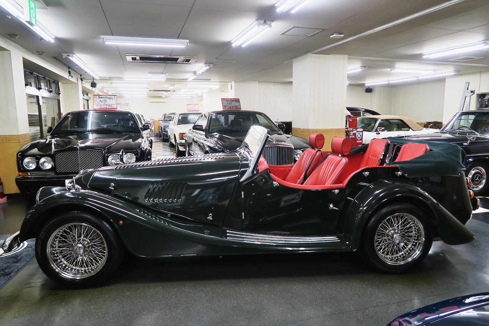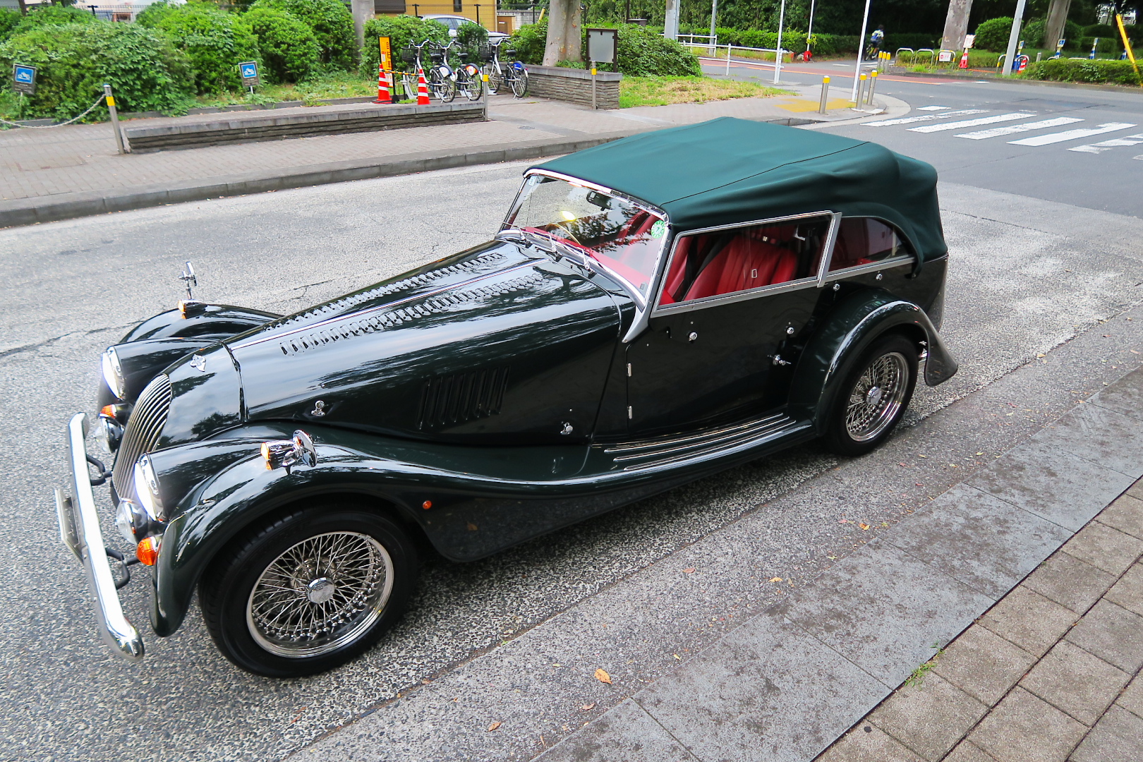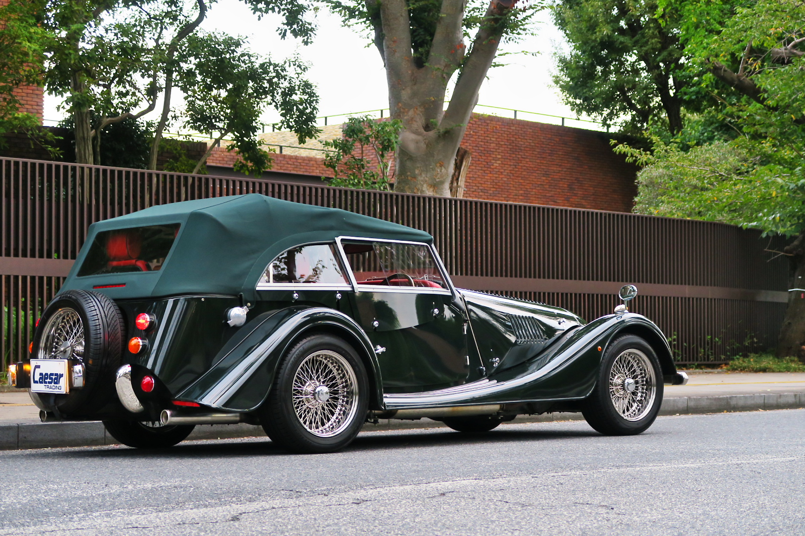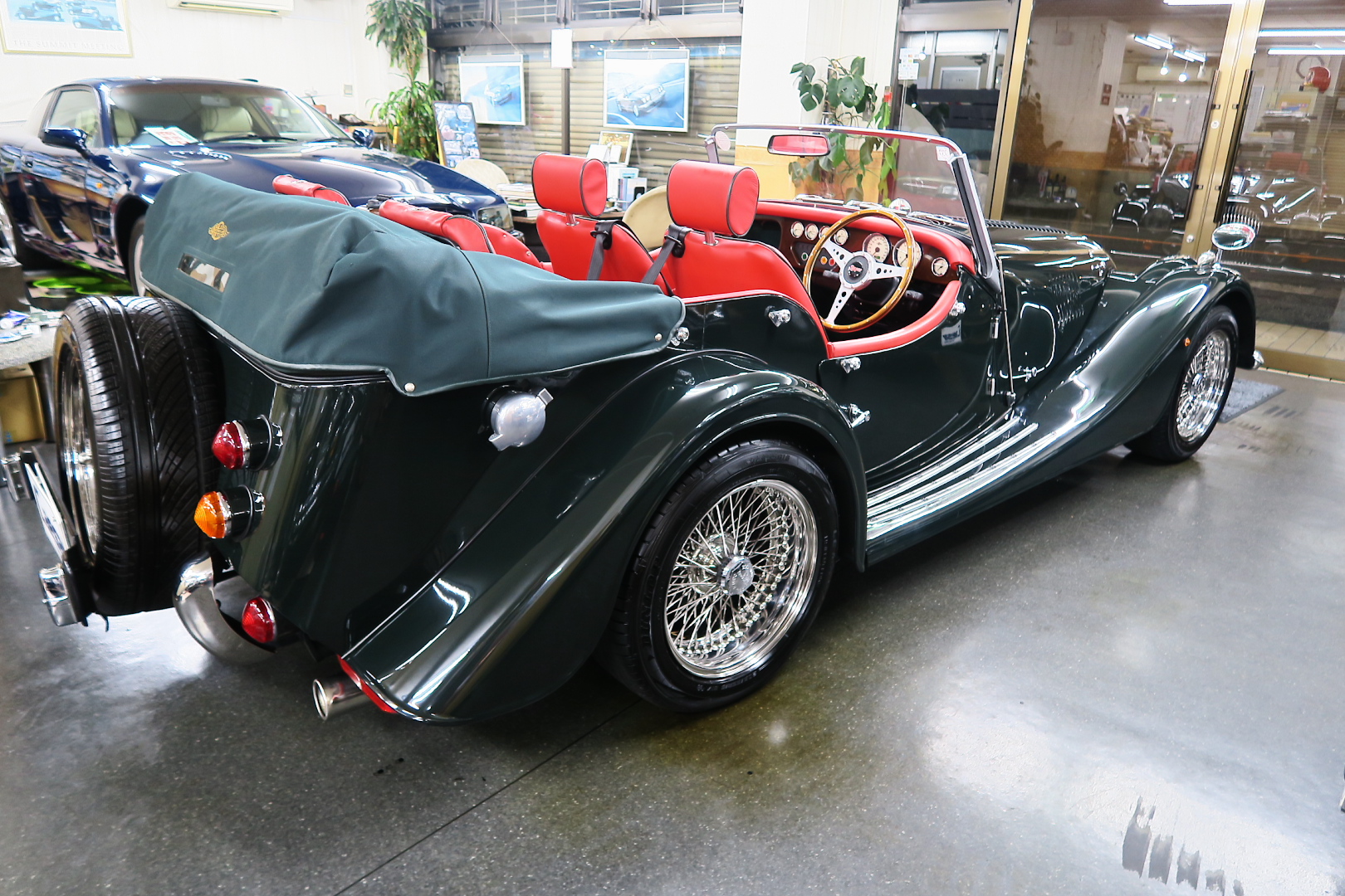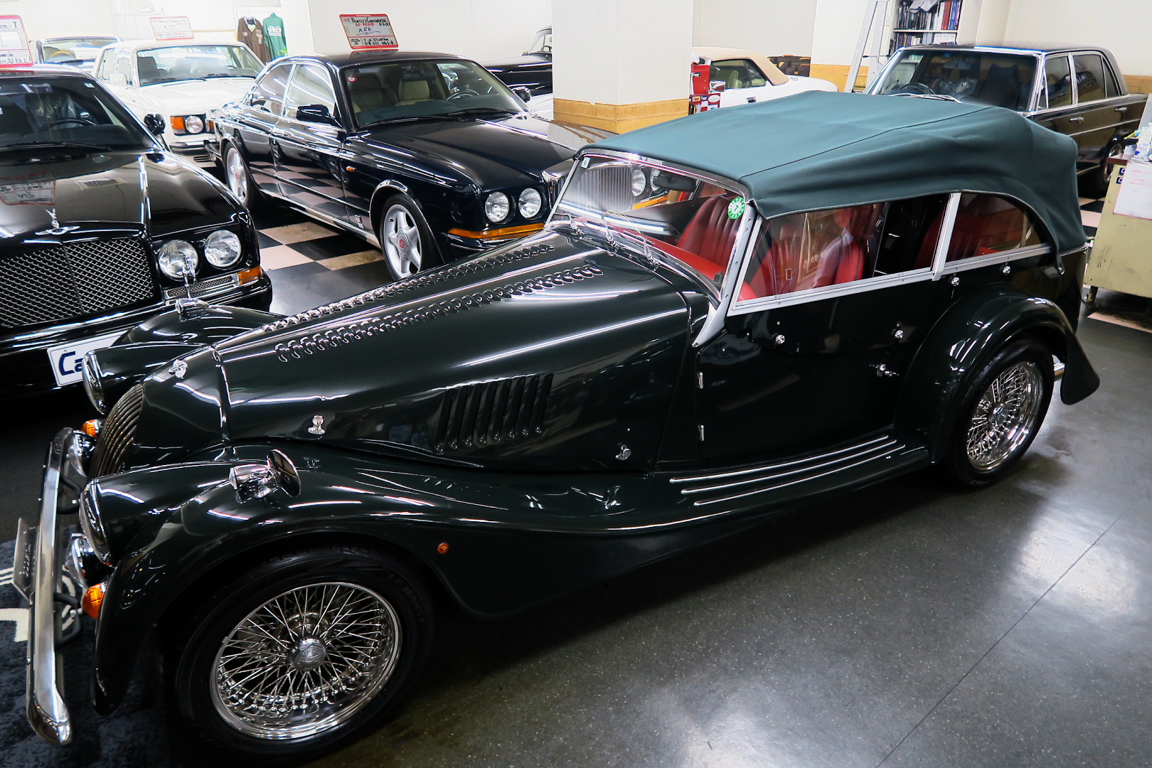 モーガン「ロードスター」! 2004年から登場した新型モデル「ロードスター」。 「プラス4」と「プラス8」の中間に位置するモデルである。 1930年代のクラシック・カーを現在でも生産しつづけている世界で唯一の自動車メーカー ・・「モーガン」。 この車に乗る前に、その歴史を簡単に、ご紹介しておきたい。 イギリスは、ウースター州マルヴァーン・リンクという小さな街にあるレンガ作りの古風な 工場・・「モーガン・モーター・カンパニー」の誕生は、100年以上も前にさかのぼる。 1907年に初代「モーガン」氏が、自身のために1台の3輪自動車(スリーホイラー) を作ったことから始まる。 1910年のモーターショーに出品されたオートバイ・エンジンを積む、フロント2輪、 リア1輪のスリーホイラーは、税金面での優遇性と驚くほどの加速性能で、人気を得る。 瞬く間に多数のオーダーが入り、1912年には、正式に「モーガン・モーター・カンパニー 」を設立することになる。 顧客の好みに応じ、当時人気のオートバイエンジンを積んだスリーホイラーは、2人乗りから 4人乗りまで、数年ごとに数々のバリエーションが発表され、会社の基盤を作る。 そして、 市場の要求という時代の波に乗り1936年秋、満を持して4輪自動車を発表する。 モデル名:モーガン「4/4」・・・モーガン4輪ファーストモデルである。 4気筒の4輪車という意味の4/4という名称で、「Four・Four」と発音したほうが よい。 Z型スチール製のラダーフレームに叩き出しのスチール・パネル(アルミ製も有る)を ボディに貼り付ける・・といった製作方法は、全モデル共通で、それは当モデルでも変わって いない。 よく、「木骨フレーム」の・・なんて書かれていることがあるが、本当の意味でのフレーム は、上記の通り、頑丈なスチール製であり、あくまでも、ボディの一部、例えば、ドア枠、 リアホイールアーチ、ダッシュボードを留めるための土台などの造作内部に木材が使われて いるにすぎない。 使われている木材は、「アッシュ材」と「松」。 これも、英国流の基本のまま、、。 戦前のイギリス車の大半は、ロールス・ベントレーも含めて見えない部分には木材が使われ ていたが、現在に、その技法を残すのは、世界広しといえど、モーガンだけだ。 「4/4」は、その後、数年おきにエンジンが、新しいものに変更され、1963年には 「シリーズ5」まで進む。 国内に正規輸入されるようになったのは、このモデルからではなかろうか? この「シリーズ5」は、1968年まで生産されるが、、正直、こんな古い時代の正規 輸入物モーガンは、国内に、ほとんど存在しない・・・ なにせ、正規で輸入されたモーガンは、当時のディーラーにより(1966年から1967年 にかけて輸入元:セール・チルニー・ジャパン)、4台しか輸入されていないという。 1968年からは、「モーガン・オート・タカノ」さんが正規ディーラーとなり、2005年 10月には、「モーガン・オート・イワセ」さんが後継となり、近年まで続けていた。 モーガンは、「4/4」モデル、1L代の排気量の非力感を補うため1950年 2.1Lの直4エンジンを積む「プラス4」を発表する。 「4/4」のハイパワーバージョンであるが、その後、 1968年、さらに V型8気筒を積む「プラス8」を追加。 そうして モーガンは、しばらくの間(2004年まで) 「4/4」、「プラス4」、「プラス8」の3つのラインナップを揃えていた。 ところが、2004年 「プラス8」に替わり、久方振りに新型モデルが登場する。 FORDのV型6気筒3Lを積む「ロードスター」 それが、当個体である。 前述の通り、戦前と変わらぬハンドメイド ボディは、総アルミで、「プラス8」と同じくワイド・ボディ。 全幅は、169cmもあり、全高は、僅かに122cm(当・4シーターは、137cm) 広くて低い。 見た目は、あくまでクラシックカー ただし、中身は、 最新のFORD製「モンデオ」などに積まれ好評価を受けた「V6」である。 4ドア・サルーンのモンデオでさえ、その走りの良さを称えられたほどのエンジンである から、それを 車輌重量 1トンほどのクルマに積んでしまえば、、ご想像の通り 236馬力! 0−99kmを5.0秒、 最高速は、200kmをゆうに超える。 ギアBOXも信頼のFORD製で、その5速MTは、お約束どおり、ショート・ストローク、 実に小気味良い。 ハンドル操作にパワステはないが、それに気が付かないほど取り回しがよい。 パワーに見合うブレーキも抜かりなし、 リアは、相変らずのドラム式ながら、フロントは、「ロッキード」製のディスク・ブレーキ 大径ローターで、効きも最新鋭。 その後のMORGAN社は、いつのまにか、また「プラス8」を復活させ、 「4/4」、「プラス4」、「ロードスター」、「プラス8」、「エアロ8」と いう5つのモデルを持つ時代もあった(今は、プラス4とプラス6のみ) あえて、「ロードスター」を褒めるなら、「4/4」と「プラス4」は非力、 「プラス8」は、直線道路仕様のドラッグスター = アメリカ向けモデル。 =「ロードスター」は日本で乗るベスト・モデル。 ご存