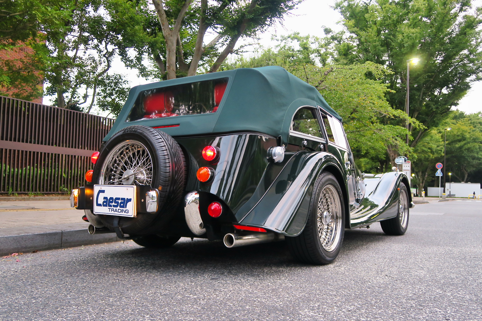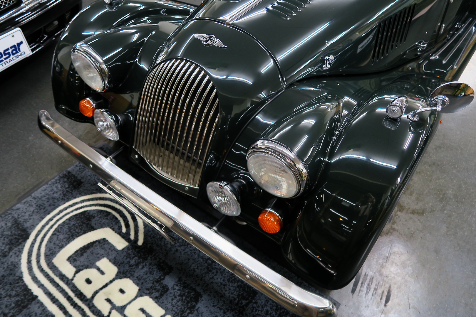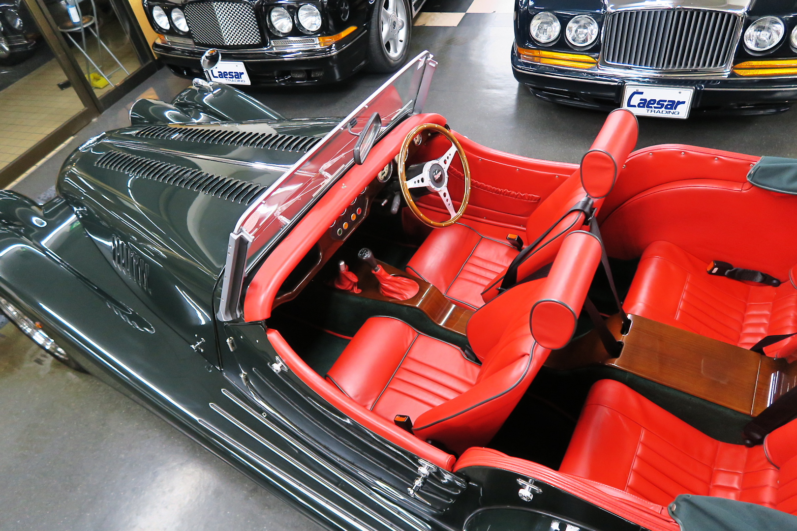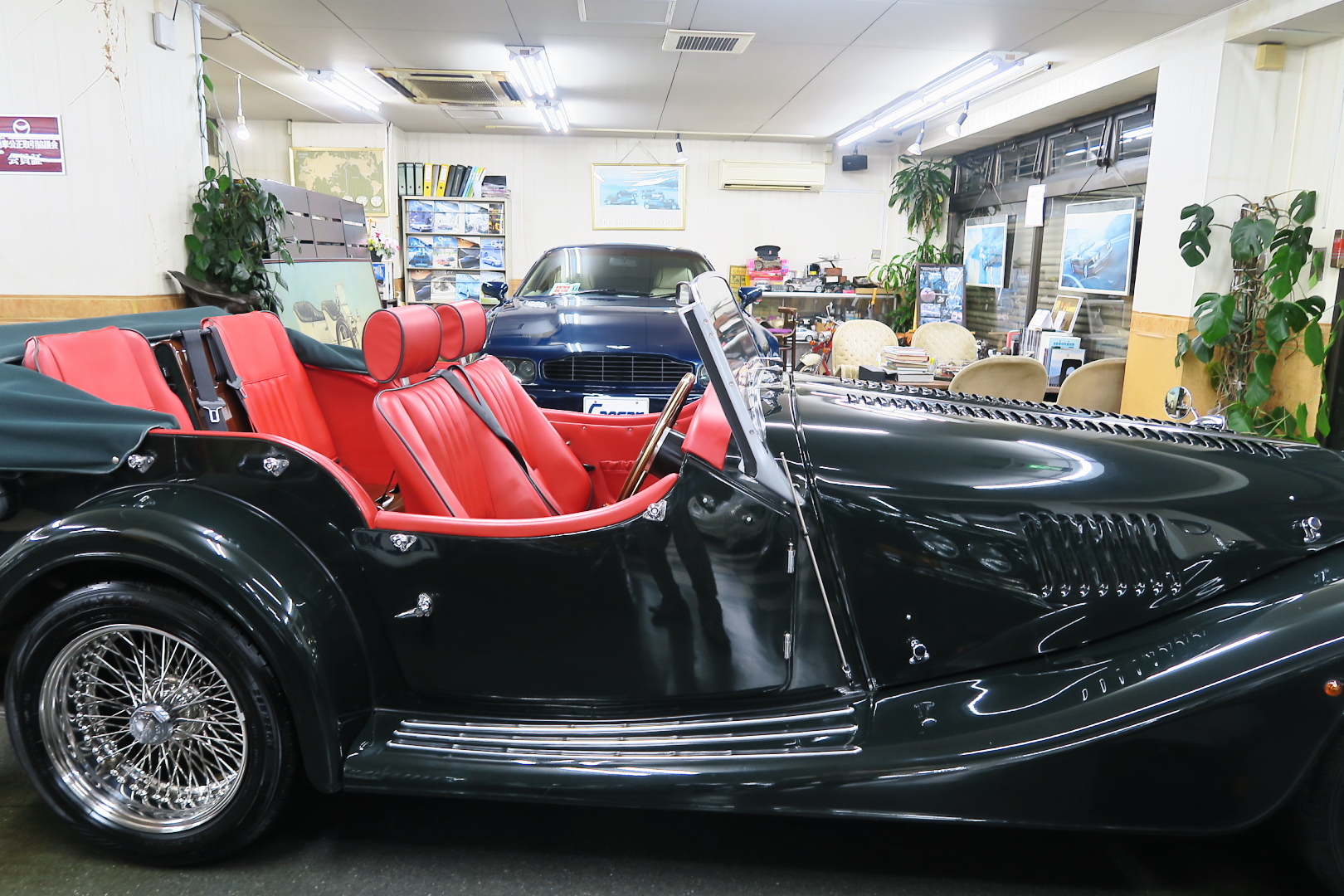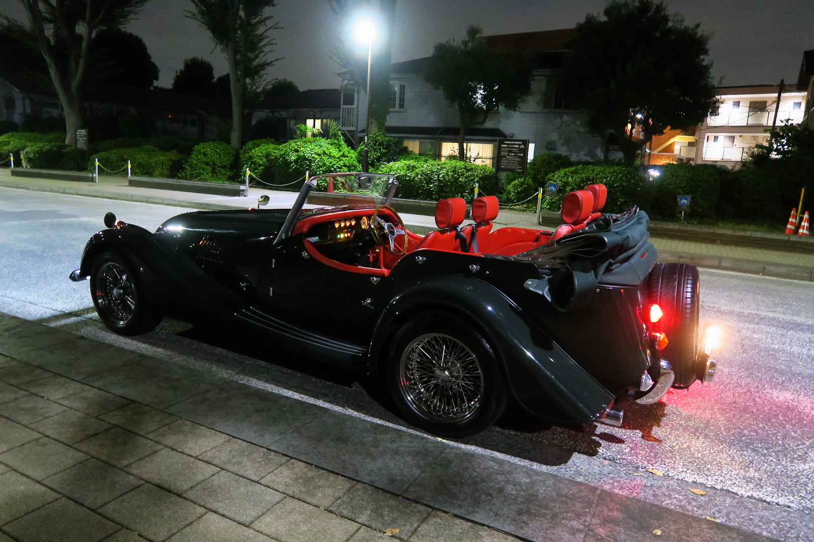 モーガン「ロードスター」! 2004年から登場した新型モデル「ロードスター」。 「プラス4」と「プラス8」の中間に位置するモデルである。 1930年代のクラシック・カーを現在でも生産しつづけている世界で唯一の自動車メーカー ・・「モーガン」。 この車に乗る前に、その歴史を簡単に、ご紹介しておきたい。 イギリスは、ウースター州マルヴァーン・リンクという小さな街にあるレンガ作りの古風な 工場・・「モーガン・モーター・カンパニー」の誕生は、100年以上も前にさかのぼる。 1907年に初代「モーガン」氏が、自身のために1台の3輪自動車(スリーホイラー) を作ったことから始まる。 1910年のモーターショーに出品されたオートバイ・エンジンを積む、フロント2輪、 リア1輪のスリーホイラーは、税金面での優遇性と驚くほどの加速性能で、人気を得る。 瞬く間に多数のオーダーが入り、1912年には、正式に「モーガン・モーター・カンパニー 」を設立することになる。 顧客の好みに応じ、当時人気のオートバイエンジンを積んだスリーホイラーは、2人乗りから 4人乗りまで、数年ごとに数々のバリエーションが発表され、会社の基盤を作る。 そして、 市場の要求という時代の波に乗り1936年秋、満を持して4輪自動車を発表する。 モデル名:モーガン「4/4」・・・モーガン4輪ファーストモデルである。 4気筒の4輪車という意味の4/4という名称で、「Four・Four」と発音したほうが よい。 Z型スチール製のラダーフレームに叩き出しのスチール・パネル(アルミ製も有る)を ボディに貼り付ける・・といった製作方法は、全モデル共通で、それは当モデルでも変わって いない。 よく、「木骨フレーム」の・・なんて書かれていることがあるが、本当の意味でのフレーム は、上記の通り、頑丈なスチール製であり、あくまでも、ボディの一部、例えば、ドア枠、 リアホイールアーチ、ダッシュボードを留めるための土台などの造作内部に木材が使われて いるにすぎない。 使われている木材は、「アッシュ材」と「松」。 これも、英国流の基本のまま、、。 戦前のイギリス車の大半は、ロールス・ベントレーも含めて見えない部分には木材が使われ ていたが、現在に、その技法を残すのは、世界広しといえど、モーガンだけだ。 「4/4」は、その後、数年おきにエンジンが、新しいものに変更され、1963年には 「シリーズ5」まで進む。 国内に正規輸入されるようになったのは、このモデルからではなかろうか? この「シリーズ5」は、1968年まで生産されるが、、正直、こんな古い時代の正規 輸入物モーガンは、国内に、ほとんど存在しない・・・ なにせ、正規で輸入されたモーガンは、当時のディーラーにより(1966年から1967年 にかけて輸入元:セール・チルニー・ジャパン)、4台しか輸入されていないという。 1968年からは、「モーガン・オート・タカノ」さんが正規ディーラーとなり、2005年 10月には、「モーガン・オート・イワセ」さんが後継となり、近年まで続けていた。 モーガンは、「4/4」モデル、1L代の排気量の非力感を補うため1950年 2.1Lの直4エンジンを積む「プラス4」を発表する。 「4/4」のハイパワーバージョンであるが、その後、 1968年、さらに V型8気筒を積む「プラス8」を追加。 そうして モーガンは、しばらくの間(2004年まで) 「4/4」、「プラス4」、「プラス8」の3つのラインナップを揃えていた。 ところが、2004年 「プラス8」に替わり、久方振りに新型モデルが登場する。 FORDのV型6気筒3Lを積む「ロードスター」 それが、当個体である。 前述の通り、戦前と変わらぬハンドメイド ボディは、総アルミで、「プラス8」と同じくワイド・ボディ。 全幅は、169cmもあり、全高は、僅かに122cm(当・4シーターは、137cm) 広くて低い。 見た目は、あくまでクラシックカー ただし、中身は、 最新のFORD製「モンデオ」などに積まれ好評価を受けた「V6」である。 4ドア・サルーンのモンデオでさえ、その走りの良さを称えられたほどのエンジンである から、それを 車輌重量 1トンほどのクルマに積んでしまえば、、ご想像の通り 236馬力! 0−99kmを5.0秒、 最高速は、200kmをゆうに超える。 ギアBOXも信頼のFORD製で、その5速MTは、お約束どおり、ショート・ストローク、 実に小気味良い。 ハンドル操作にパワステはないが、それに気が付かないほど取り回しがよい。 パワーに見合うブレーキも抜かりなし、 リアは、相変らずのドラム式ながら、フロントは、「ロッキード」製のディスク・ブレーキ 大径ローターで、効きも最新鋭。 その後のMORGAN社は、いつのまにか、また「プラス8」を復活させ、 「4/4」、「プラス4」、「ロードスター」、「プラス8」、「エアロ8」と いう5つのモデルを持つ時代もあった(今は、プラス4とプラス6のみ) あえて、「ロードスター」を褒めるなら、「4/4」と「プラス4」は非力、 「プラス8」は、直線道路仕様のドラッグスター = アメリカ向けモデル。 =「ロードスター」は日本で乗るベスト・モデル。 ご存
