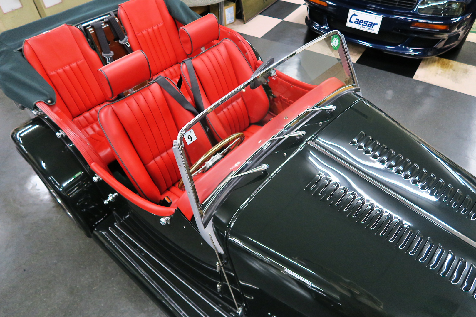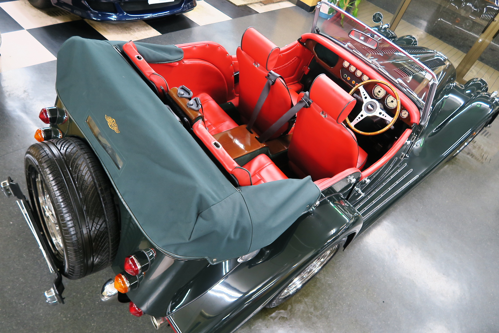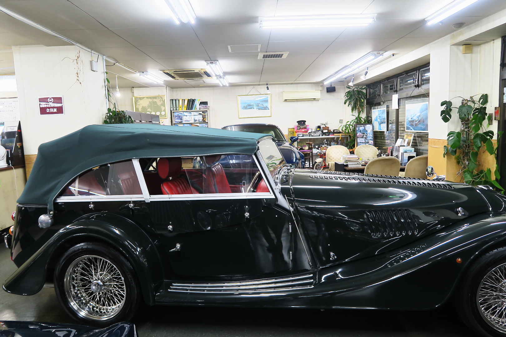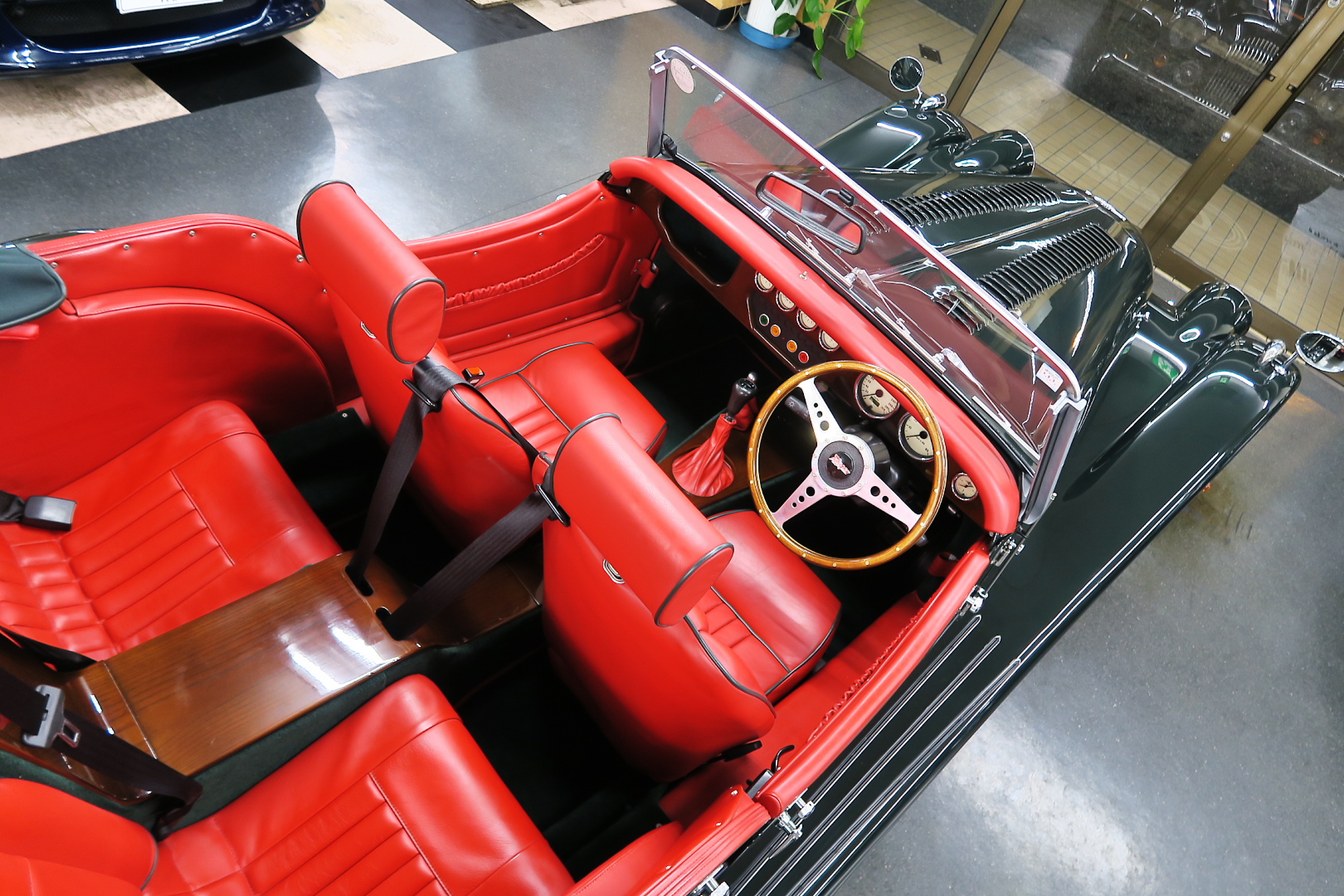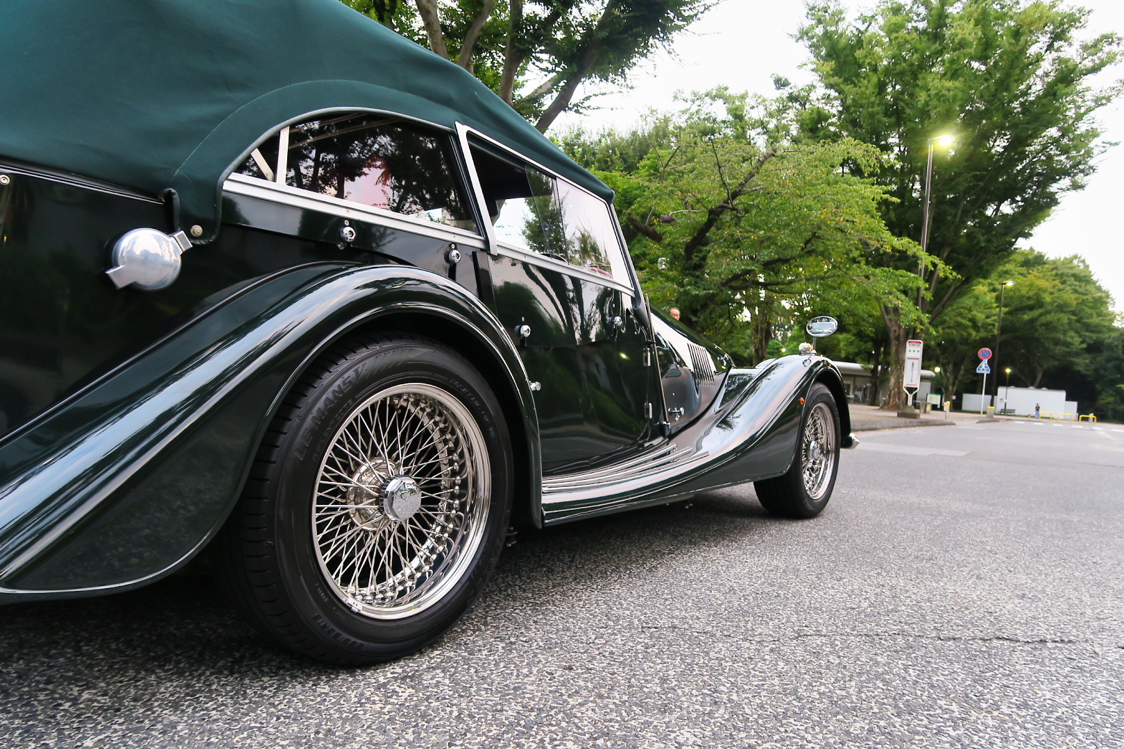 モーガン「ロードスター」! 2004年から登場した新型モデル「ロードスター」。 「プラス4」と「プラス8」の中間に位置するモデルである。 1930年代のクラシック・カーを現在でも生産しつづけている世界で唯一の自動車メーカー ・・「モーガン」。 この車に乗る前に、その歴史を簡単に、ご紹介しておきたい。 イギリスは、ウースター州マルヴァーン・リンクという小さな街にあるレンガ作りの古風な 工場・・「モーガン・モーター・カンパニー」の誕生は、100年以上も前にさかのぼる。 1907年に初代「モーガン」氏が、自身のために1台の3輪自動車(スリーホイラー) を作ったことから始まる。 1910年のモーターショーに出品されたオートバイ・エンジンを積む、フロント2輪、 リア1輪のスリーホイラーは、税金面での優遇性と驚くほどの加速性能で、人気を得る。 瞬く間に多数のオーダーが入り、1912年には、正式に「モーガン・モーター・カンパニー 」を設立することになる。 顧客の好みに応じ、当時人気のオートバイエンジンを積んだスリーホイラーは、2人乗りから 4人乗りまで、数年ごとに数々のバリエーションが発表され、会社の基盤を作る。 そして、 市場の要求という時代の波に乗り1936年秋、満を持して4輪自動車を発表する。 モデル名:モーガン「4/4」・・・モーガン4輪ファーストモデルである。 4気筒の4輪車という意味の4/4という名称で、「Four・Four」と発音したほうが よい。 Z型スチール製のラダーフレームに叩き出しのスチール・パネル(アルミ製も有る)を ボディに貼り付ける・・といった製作方法は、全モデル共通で、それは当モデルでも変わって いない。 よく、「木骨フレーム」の・・なんて書かれていることがあるが、本当の意味でのフレーム は、上記の通り、頑丈なスチール製であり、あくまでも、ボディの一部、例えば、ドア枠、 リアホイールアーチ、ダッシュボードを留めるための土台などの造作内部に木材が使われて いるにすぎない。 使われている木材は、「アッシュ材」と「松」。 これも、英国流の基本のまま、、。 戦前のイギリス車の大半は、ロールス・ベントレーも含めて見えない部分には木材が使われ ていたが、現在に、その技法を残すのは、世界広しといえど、モーガンだけだ。 「4/4」は、その後、数年おきにエンジンが、新しいものに変更され、1963年には 「シリーズ5」まで進む。 国内に正規輸入されるようになったのは、このモデルからではなかろうか? この「シリーズ5」は、1968年まで生産されるが、、正直、こんな古い時代の正規 輸入物モーガンは、国内に、ほとんど存在しない・・・ なにせ、正規で輸入されたモーガンは、当時のディーラーにより(1966年から1967年 にかけて輸入元:セール・チルニー・ジャパン)、4台しか輸入されていないという。 1968年からは、「モーガン・オート・タカノ」さんが正規ディーラーとなり、2005年 10月には、「モーガン・オート・イワセ」さんが後継となり、近年まで続けていた。 モーガンは、「4/4」モデル、1L代の排気量の非力感を補うため1950年 2.1Lの直4エンジンを積む「プラス4」を発表する。 「4/4」のハイパワーバージョンであるが、その後、 1968年、さらに V型8気筒を積む「プラス8」を追加。 そうして モーガンは、しばらくの間(2004年まで) 「4/4」、「プラス4」、「プラス8」の3つのラインナップを揃えていた。 ところが、2004年 「プラス8」に替わり、久方振りに新型モデルが登場する。 FORDのV型6気筒3Lを積む「ロードスター」 それが、当個体である。 前述の通り、戦前と変わらぬハンドメイド ボディは、総アルミで、「プラス8」と同じくワイド・ボディ。 全幅は、169cmもあり、全高は、僅かに122cm(当・4シーターは、137cm) 広くて低い。 見た目は、あくまでクラシックカー ただし、中身は、 最新のFORD製「モンデオ」などに積まれ好評価を受けた「V6」である。 4ドア・サルーンのモンデオでさえ、その走りの良さを称えられたほどのエンジンである から、それを 車輌重量 1トンほどのクルマに積んでしまえば、、ご想像の通り 236馬力! 0−99kmを5.0秒、 最高速は、200kmをゆうに超える。 ギアBOXも信頼のFORD製で、その5速MTは、お約束どおり、ショート・ストローク、 実に小気味良い。 ハンドル操作にパワステはないが、それに気が付かないほど取り回しがよい。 パワーに見合うブレーキも抜かりなし、 リアは、相変らずのドラム式ながら、フロントは、「ロッキード」製のディスク・ブレーキ 大径ローターで、効きも最新鋭。 その後のMORGAN社は、いつのまにか、また「プラス8」を復活させ、 「4/4」、「プラス4」、「ロードスター」、「プラス8」、「エアロ8」と いう5つのモデルを持つ時代もあった(今は、プラス4とプラス6のみ) あえて、「ロードスター」を褒めるなら、「4/4」と「プラス4」は非力、 「プラス8」は、直線道路仕様のドラッグスター = アメリカ向けモデル。 =「ロードスター」は日本で乗るベスト・モデル。 ご存