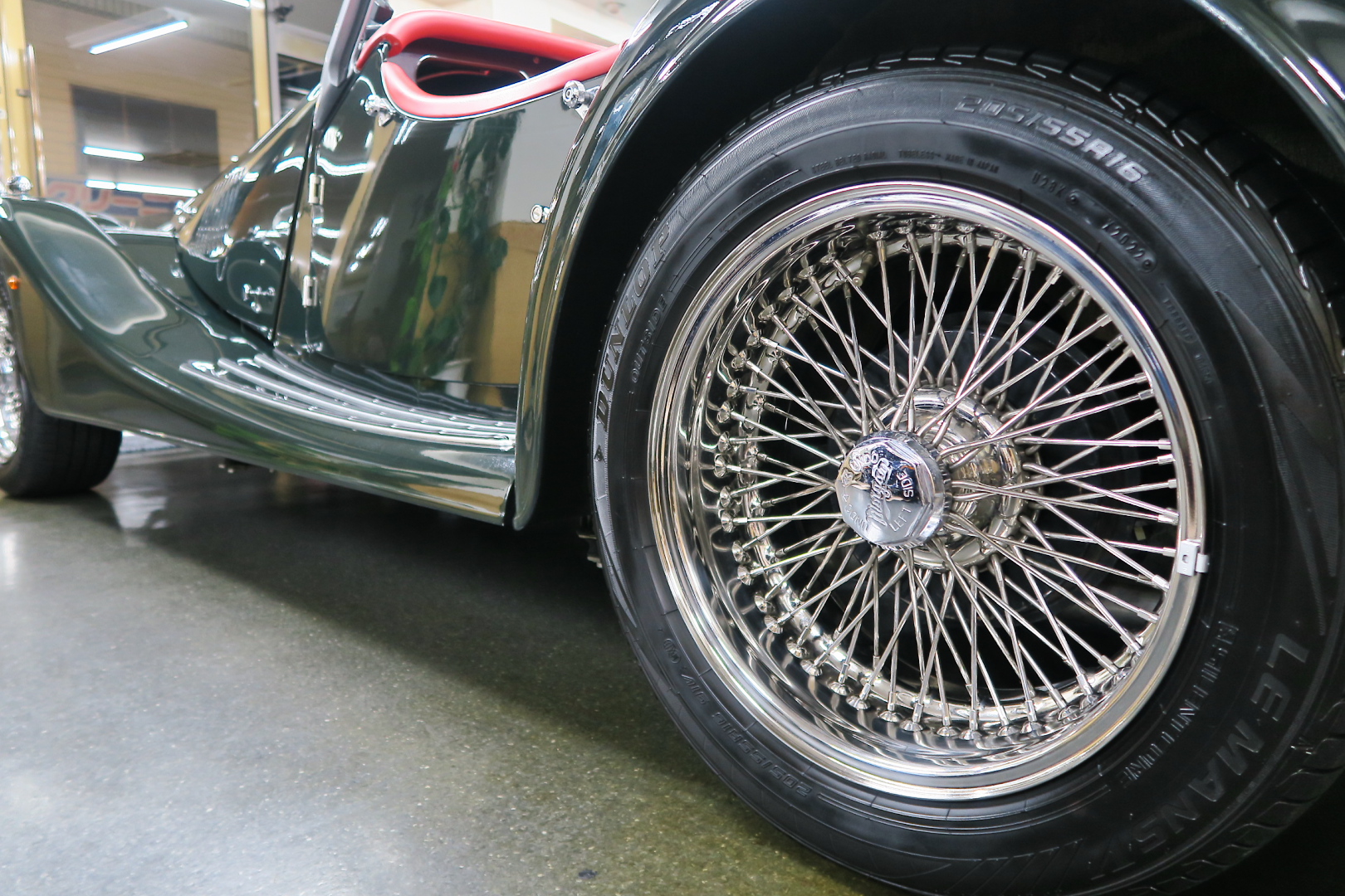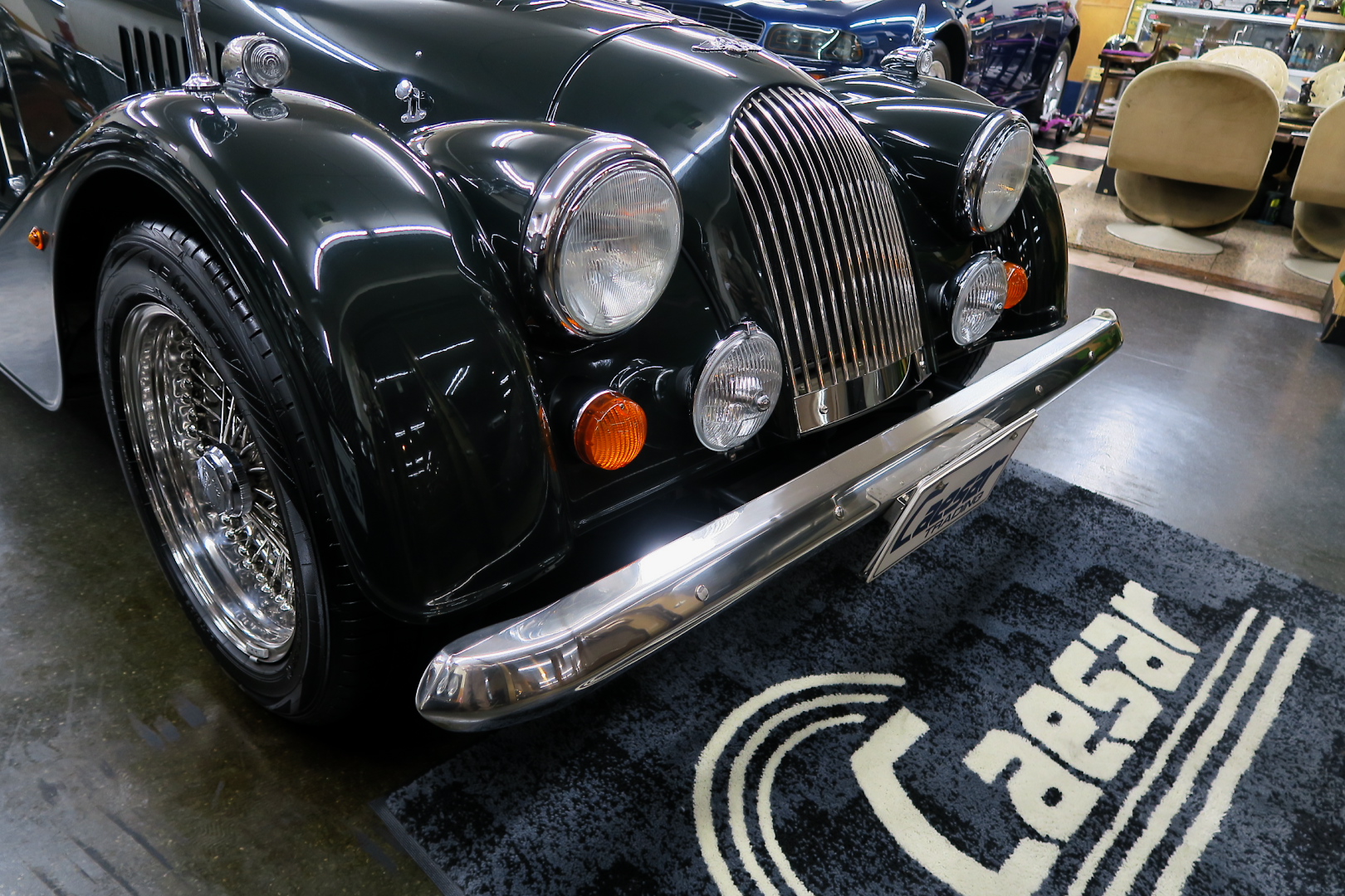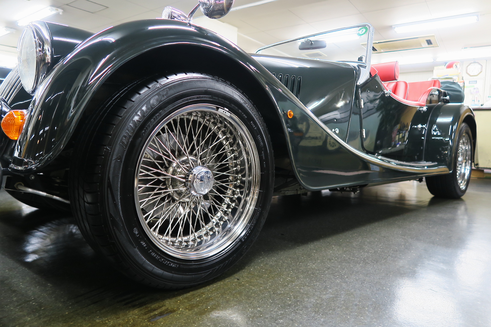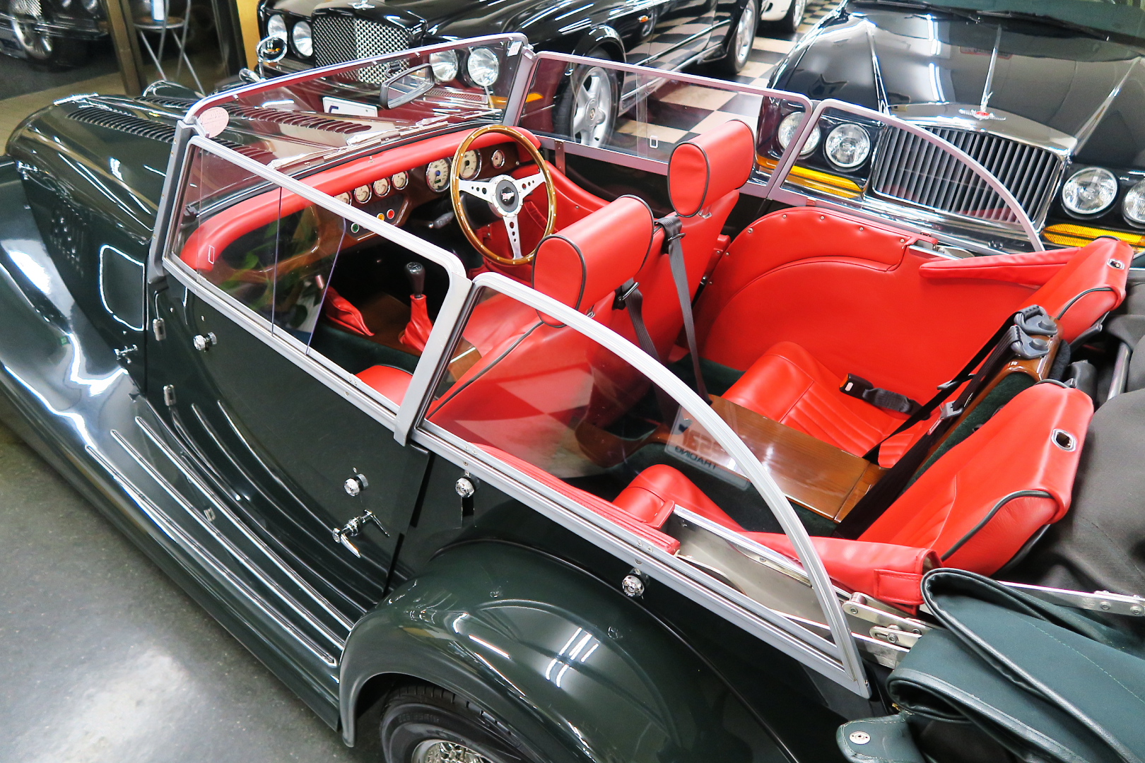 モーガン「ロードスター」! 2004年から登場した新型モデル「ロードスター」。 「プラス4」と「プラス8」の中間に位置するモデルである。 1930年代のクラシック・カーを現在でも生産しつづけている世界で唯一の自動車メーカー ・・「モーガン」。 この車に乗る前に、その歴史を簡単に、ご紹介しておきたい。 イギリスは、ウースター州マルヴァーン・リンクという小さな街にあるレンガ作りの古風な 工場・・「モーガン・モーター・カンパニー」の誕生は、100年以上も前にさかのぼる。 1907年に初代「モーガン」氏が、自身のために1台の3輪自動車(スリーホイラー) を作ったことから始まる。 1910年のモーターショーに出品されたオートバイ・エンジンを積む、フロント2輪、 リア1輪のスリーホイラーは、税金面での優遇性と驚くほどの加速性能で、人気を得る。 瞬く間に多数のオーダーが入り、1912年には、正式に「モーガン・モーター・カンパニー 」を設立することになる。 顧客の好みに応じ、当時人気のオートバイエンジンを積んだスリーホイラーは、2人乗りから 4人乗りまで、数年ごとに数々のバリエーションが発表され、会社の基盤を作る。 そして、 市場の要求という時代の波に乗り1936年秋、満を持して4輪自動車を発表する。 モデル名:モーガン「4/4」・・・モーガン4輪ファーストモデルである。 4気筒の4輪車という意味の4/4という名称で、「Four・Four」と発音したほうが よい。 Z型スチール製のラダーフレームに叩き出しのスチール・パネル(アルミ製も有る)を ボディに貼り付ける・・といった製作方法は、全モデル共通で、それは当モデルでも変わって いない。 よく、「木骨フレーム」の・・なんて書かれていることがあるが、本当の意味でのフレーム は、上記の通り、頑丈なスチール製であり、あくまでも、ボディの一部、例えば、ドア枠、 リアホイールアーチ、ダッシュボードを留めるための土台などの造作内部に木材が使われて いるにすぎない。 使われている木材は、「アッシュ材」と「松」。 これも、英国流の基本のまま、、。 戦前のイギリス車の大半は、ロールス・ベントレーも含めて見えない部分には木材が使われ ていたが、現在に、その技法を残すのは、世界広しといえど、モーガンだけだ。 「4/4」は、その後、数年おきにエンジンが、新しいものに変更され、1963年には 「シリーズ5」まで進む。 国内に正規輸入されるようになったのは、このモデルからではなかろうか? この「シリーズ5」は、1968年まで生産されるが、、正直、こんな古い時代の正規 輸入物モーガンは、国内に、ほとんど存在しない・・・ なにせ、正規で輸入されたモーガンは、当時のディーラーにより(1966年から1967年 にかけて輸入元:セール・チルニー・ジャパン)、4台しか輸入されていないという。 1968年からは、「モーガン・オート・タカノ」さんが正規ディーラーとなり、2005年 10月には、「モーガン・オート・イワセ」さんが後継となり、近年まで続けていた。 モーガンは、「4/4」モデル、1L代の排気量の非力感を補うため1950年 2.1Lの直4エンジンを積む「プラス4」を発表する。 「4/4」のハイパワーバージョンであるが、その後、 1968年、さらに V型8気筒を積む「プラス8」を追加。 そうして モーガンは、しばらくの間(2004年まで) 「4/4」、「プラス4」、「プラス8」の3つのラインナップを揃えていた。 ところが、2004年 「プラス8」に替わり、久方振りに新型モデルが登場する。 FORDのV型6気筒3Lを積む「ロードスター」 それが、当個体である。 前述の通り、戦前と変わらぬハンドメイド ボディは、総アルミで、「プラス8」と同じくワイド・ボディ。 全幅は、169cmもあり、全高は、僅かに122cm(当・4シーターは、137cm) 広くて低い。 見た目は、あくまでクラシックカー ただし、中身は、 最新のFORD製「モンデオ」などに積まれ好評価を受けた「V6」である。 4ドア・サルーンのモンデオでさえ、その走りの良さを称えられたほどのエンジンである から、それを 車輌重量 1トンほどのクルマに積んでしまえば、、ご想像の通り 236馬力! 0−99kmを5.0秒、 最高速は、200kmをゆうに超える。 ギアBOXも信頼のFORD製で、その5速MTは、お約束どおり、ショート・ストローク、 実に小気味良い。 ハンドル操作にパワステはないが、それに気が付かないほど取り回しがよい。 パワーに見合うブレーキも抜かりなし、 リアは、相変らずのドラム式ながら、フロントは、「ロッキード」製のディスク・ブレーキ 大径ローターで、効きも最新鋭。 その後のMORGAN社は、いつのまにか、また「プラス8」を復活させ、 「4/4」、「プラス4」、「ロードスター」、「プラス8」、「エアロ8」と いう5つのモデルを持つ時代もあった(今は、プラス4とプラス6のみ) あえて、「ロードスター」を褒めるなら、「4/4」と「プラス4」は非力、 「プラス8」は、直線道路仕様のドラッグスター = アメリカ向けモデル。 =「ロードスター」は日本で乗るベスト・モデル。 ご存
