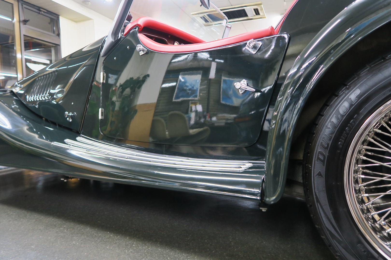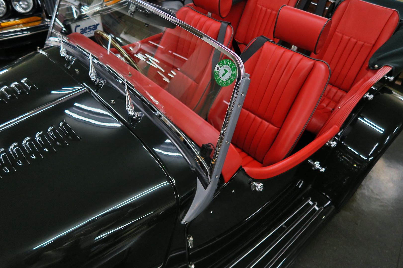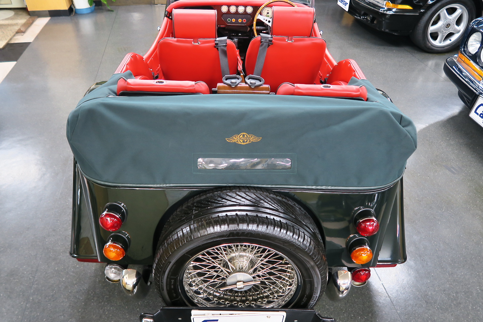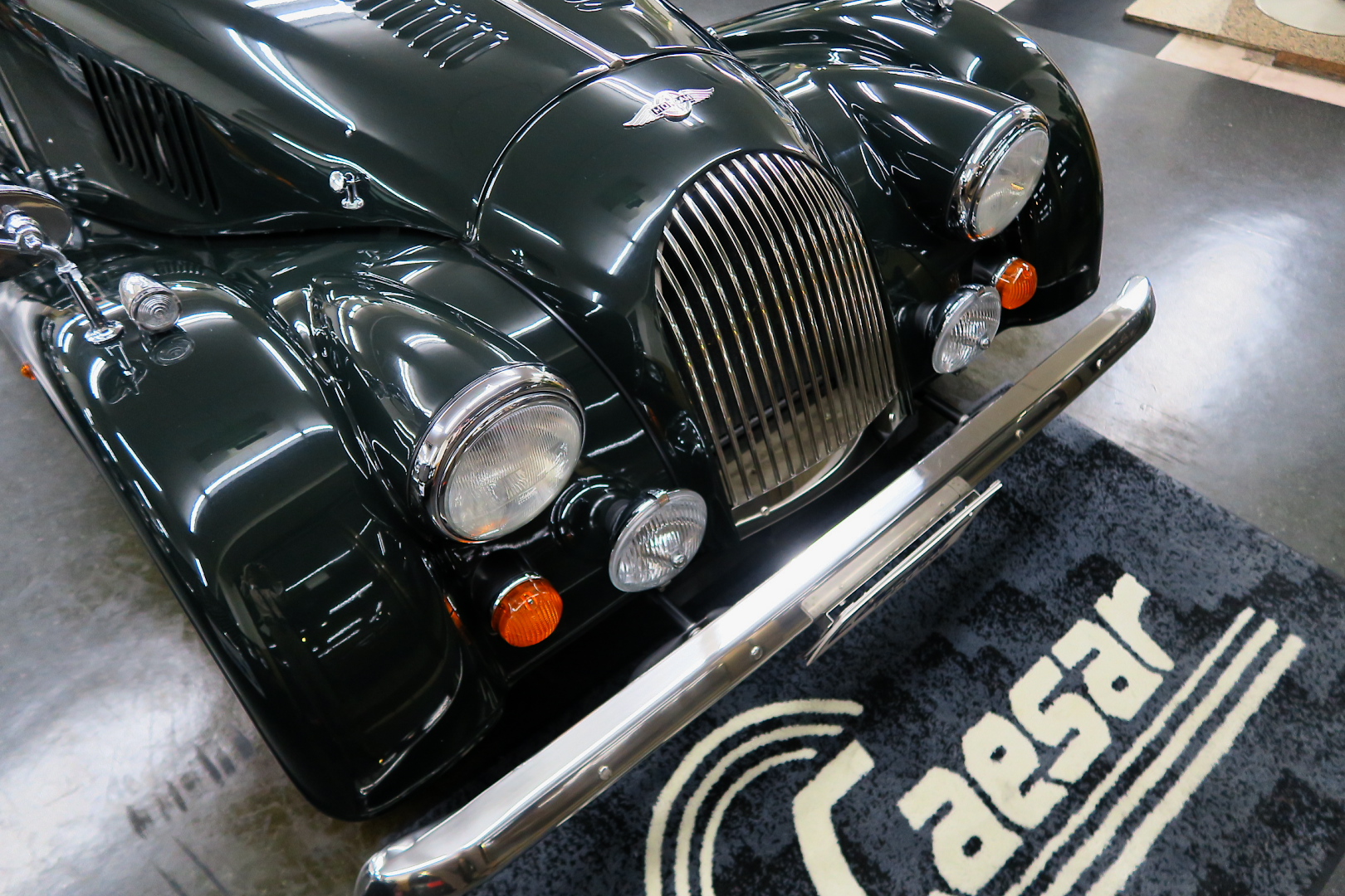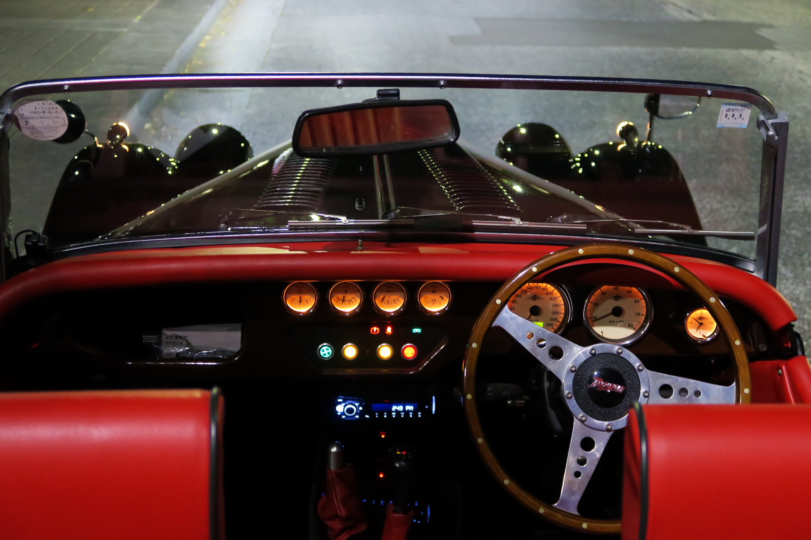モーガン「ロードスター」! 2004年から登場した新型モデル「ロードスター」。 「プラス4」と「プラス8」の中間に位置するモデルである。 1930年代のクラシック・カーを現在でも生産しつづけている世界で唯一の自動車メーカー ・・「モーガン」。 この車に乗る前に、その歴史を簡単に、ご紹介しておきたい。 イギリスは、ウースター州マルヴァーン・リンクという小さな街にあるレンガ作りの古風な 工場・・「モーガン・モーター・カンパニー」の誕生は、100年以上も前にさかのぼる。 1907年に初代「モーガン」氏が、自身のために1台の3輪自動車(スリーホイラー) を作ったことから始まる。 1910年のモーターショーに出品されたオートバイ・エンジンを積む、フロント2輪、 リア1輪のスリーホイラーは、税金面での優遇性と驚くほどの加速性能で、人気を得る。 瞬く間に多数のオーダーが入り、1912年には、正式に「モーガン・モーター・カンパニー 」を設立することになる。 顧客の好みに応じ、当時人気のオートバイエンジンを積んだスリーホイラーは、2人乗りから 4人乗りまで、数年ごとに数々のバリエーションが発表され、会社の基盤を作る。 そして、 市場の要求という時代の波に乗り1936年秋、満を持して4輪自動車を発表する。 モデル名:モーガン「4/4」・・・モーガン4輪ファーストモデルである。 4気筒の4輪車という意味の4/4という名称で、「Four・Four」と発音したほうが よい。 Z型スチール製のラダーフレームに叩き出しのスチール・パネル(アルミ製も有る)を ボディに貼り付ける・・といった製作方法は、全モデル共通で、それは当モデルでも変わって いない。 よく、「木骨フレーム」の・・なんて書かれていることがあるが、本当の意味でのフレーム は、上記の通り、頑丈なスチール製であり、あくまでも、ボディの一部、例えば、ドア枠、 リアホイールアーチ、ダッシュボードを留めるための土台などの造作内部に木材が使われて いるにすぎない。 使われている木材は、「アッシュ材」と「松」。 これも、英国流の基本のまま、、。 戦前のイギリス車の大半は、ロールス・ベントレーも含めて見えない部分には木材が使われ ていたが、現在に、その技法を残すのは、世界広しといえど、モーガンだけだ。 「4/4」は、その後、数年おきにエンジンが、新しいものに変更され、1963年には 「シリーズ5」まで進む。 国内に正規輸入されるようになったのは、このモデルからではなかろうか? この「シリーズ5」は、1968年まで生産されるが、、正直、こんな古い時代の正規 輸入物モーガンは、国内に、ほとんど存在しない・・・ なにせ、正規で輸入されたモーガンは、当時のディーラーにより(1966年から1967年 にかけて輸入元:セール・チルニー・ジャパン)、4台しか輸入されていないという。 1968年からは、「モーガン・オート・タカノ」さんが正規ディーラーとなり、2005年 10月には、「モーガン・オート・イワセ」さんが後継となり、近年まで続けていた。 モーガンは、「4/4」モデル、1L代の排気量の非力感を補うため1950年 2.1Lの直4エンジンを積む「プラス4」を発表する。 「4/4」のハイパワーバージョンであるが、その後、 1968年、さらに V型8気筒を積む「プラス8」を追加。 そうして モーガンは、しばらくの間(2004年まで) 「4/4」、「プラス4」、「プラス8」の3つのラインナップを揃えていた。 ところが、2004年 「プラス8」に替わり、久方振りに新型モデルが登場する。 FORDのV型6気筒3Lを積む「ロードスター」 それが、当個体である。 前述の通り、戦前と変わらぬハンドメイド ボディは、総アルミで、「プラス8」と同じくワイド・ボディ。 全幅は、169cmもあり、全高は、僅かに122cm(当・4シーターは、137cm) 広くて低い。 見た目は、あくまでクラシックカー ただし、中身は、 最新のFORD製「モンデオ」などに積まれ好評価を受けた「V6」である。 4ドア・サルーンのモンデオでさえ、その走りの良さを称えられたほどのエンジンである から、それを 車輌重量 1トンほどのクルマに積んでしまえば、、ご想像の通り 236馬力! 0−99kmを5.0秒、 最高速は、200kmをゆうに超える。 ギアBOXも信頼のFORD製で、その5速MTは、お約束どおり、ショート・ストローク、 実に小気味良い。 ハンドル操作にパワステはないが、それに気が付かないほど取り回しがよい。 パワーに見合うブレーキも抜かりなし、 リアは、相変らずのドラム式ながら、フロントは、「ロッキード」製のディスク・ブレーキ 大径ローターで、効きも最新鋭。 その後のMORGAN社は、いつのまにか、また「プラス8」を復活させ、 「4/4」、「プラス4」、「ロードスター」、「プラス8」、「エアロ8」と いう5つのモデルを持つ時代もあった(今は、プラス4とプラス6のみ) あえて、「ロードスター」を褒めるなら、「4/4」と「プラス4」は非力、 「プラス8」は、直線道路仕様のドラッグスター = アメリカ向けモデル。 =「ロードスター」は日本で乗るベスト・モデル。 ご存