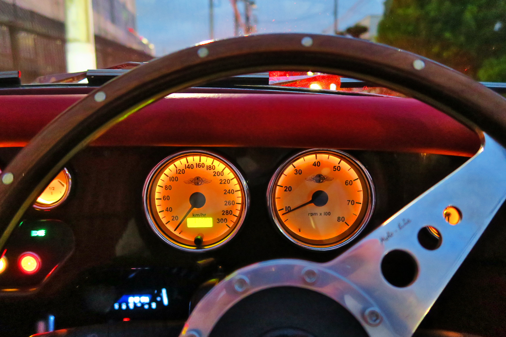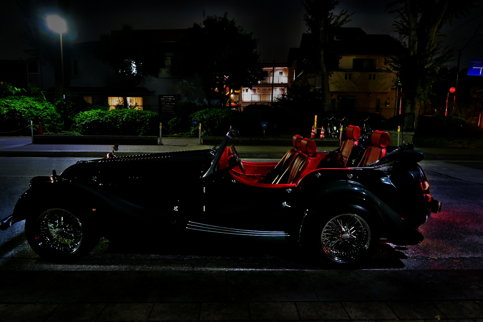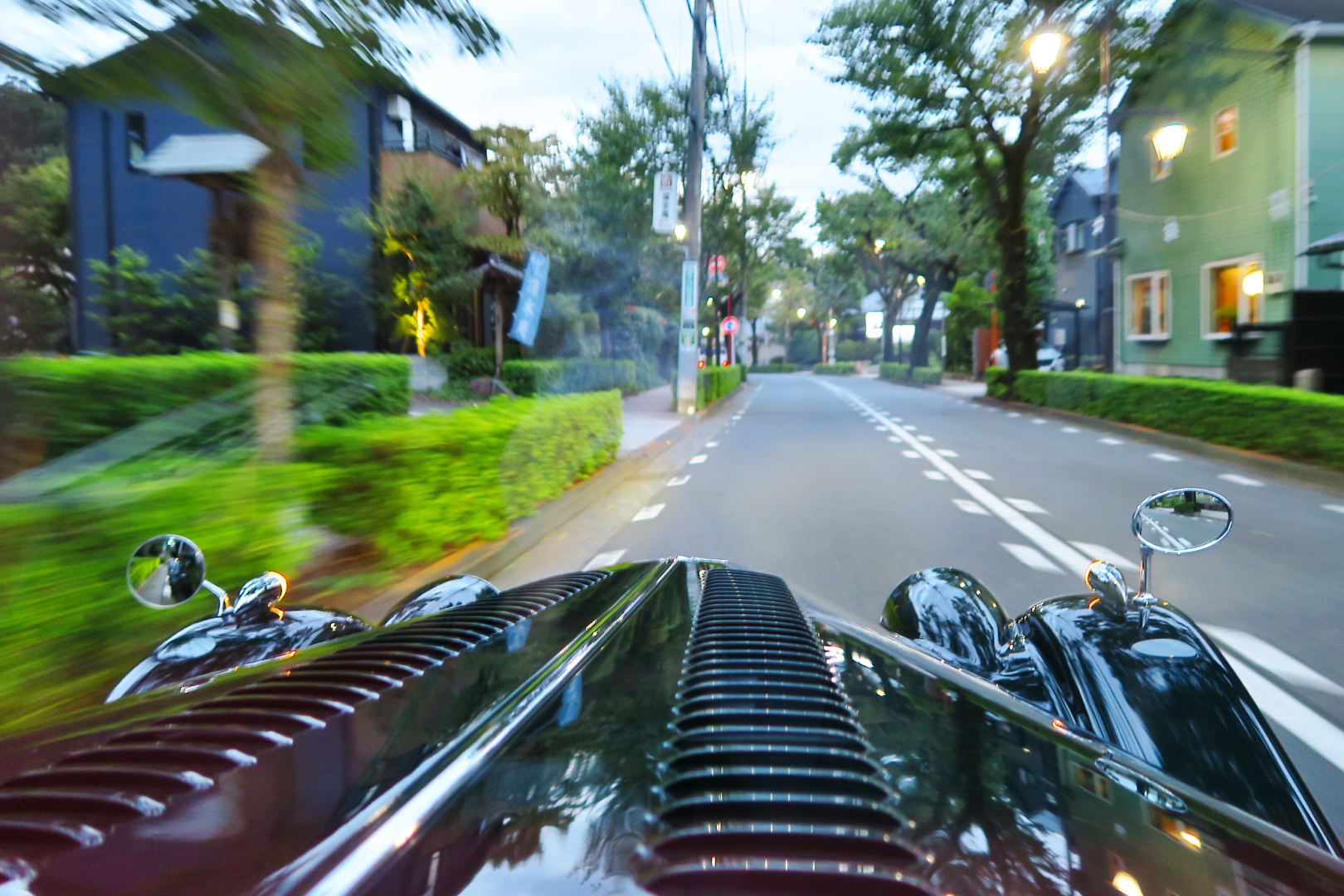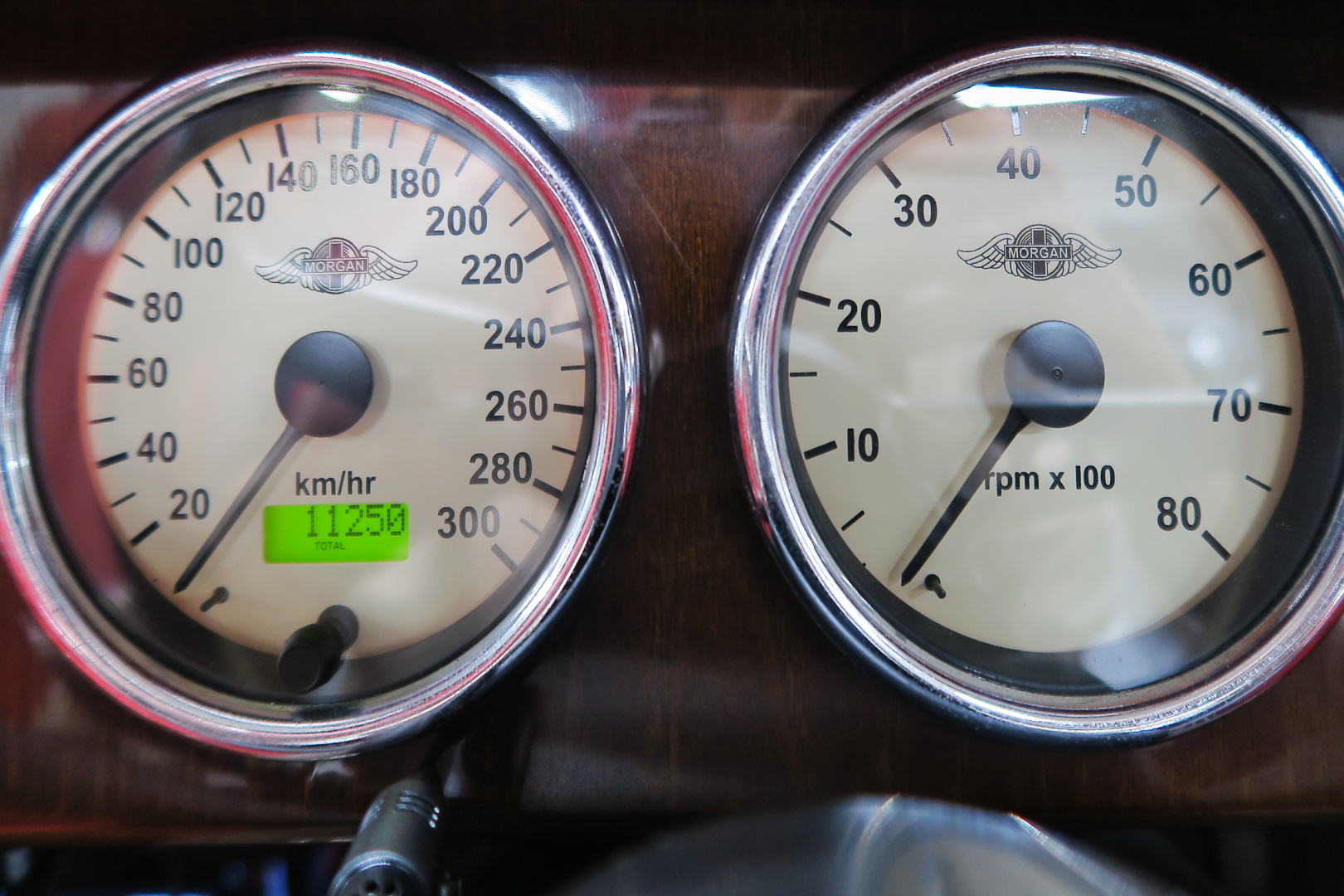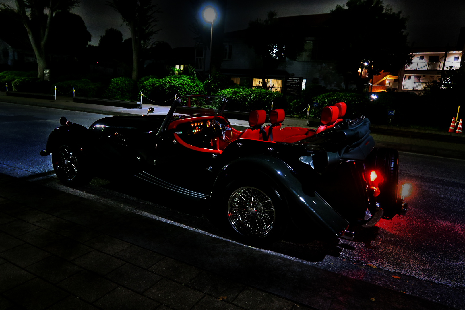 モーガン「ロードスター」! 2004年から登場した新型モデル「ロードスター」。 「プラス4」と「プラス8」の中間に位置するモデルである。 1930年代のクラシック・カーを現在でも生産しつづけている世界で唯一の自動車メーカー ・・「モーガン」。 この車に乗る前に、その歴史を簡単に、ご紹介しておきたい。 イギリスは、ウースター州マルヴァーン・リンクという小さな街にあるレンガ作りの古風な 工場・・「モーガン・モーター・カンパニー」の誕生は、100年以上も前にさかのぼる。 1907年に初代「モーガン」氏が、自身のために1台の3輪自動車(スリーホイラー) を作ったことから始まる。 1910年のモーターショーに出品されたオートバイ・エンジンを積む、フロント2輪、 リア1輪のスリーホイラーは、税金面での優遇性と驚くほどの加速性能で、人気を得る。 瞬く間に多数のオーダーが入り、1912年には、正式に「モーガン・モーター・カンパニー 」を設立することになる。 顧客の好みに応じ、当時人気のオートバイエンジンを積んだスリーホイラーは、2人乗りから 4人乗りまで、数年ごとに数々のバリエーションが発表され、会社の基盤を作る。 そして、 市場の要求という時代の波に乗り1936年秋、満を持して4輪自動車を発表する。 モデル名:モーガン「4/4」・・・モーガン4輪ファーストモデルである。 4気筒の4輪車という意味の4/4という名称で、「Four・Four」と発音したほうが よい。 Z型スチール製のラダーフレームに叩き出しのスチール・パネル(アルミ製も有る)を ボディに貼り付ける・・といった製作方法は、全モデル共通で、それは当モデルでも変わって いない。 よく、「木骨フレーム」の・・なんて書かれていることがあるが、本当の意味でのフレーム は、上記の通り、頑丈なスチール製であり、あくまでも、ボディの一部、例えば、ドア枠、 リアホイールアーチ、ダッシュボードを留めるための土台などの造作内部に木材が使われて いるにすぎない。 使われている木材は、「アッシュ材」と「松」。 これも、英国流の基本のまま、、。 戦前のイギリス車の大半は、ロールス・ベントレーも含めて見えない部分には木材が使われ ていたが、現在に、その技法を残すのは、世界広しといえど、モーガンだけだ。 「4/4」は、その後、数年おきにエンジンが、新しいものに変更され、1963年には 「シリーズ5」まで進む。 国内に正規輸入されるようになったのは、このモデルからではなかろうか? この「シリーズ5」は、1968年まで生産されるが、、正直、こんな古い時代の正規 輸入物モーガンは、国内に、ほとんど存在しない・・・ なにせ、正規で輸入されたモーガンは、当時のディーラーにより(1966年から1967年 にかけて輸入元:セール・チルニー・ジャパン)、4台しか輸入されていないという。 1968年からは、「モーガン・オート・タカノ」さんが正規ディーラーとなり、2005年 10月には、「モーガン・オート・イワセ」さんが後継となり、近年まで続けていた。 モーガンは、「4/4」モデル、1L代の排気量の非力感を補うため1950年 2.1Lの直4エンジンを積む「プラス4」を発表する。 「4/4」のハイパワーバージョンであるが、その後、 1968年、さらに V型8気筒を積む「プラス8」を追加。 そうして モーガンは、しばらくの間(2004年まで) 「4/4」、「プラス4」、「プラス8」の3つのラインナップを揃えていた。 ところが、2004年 「プラス8」に替わり、久方振りに新型モデルが登場する。 FORDのV型6気筒3Lを積む「ロードスター」 それが、当個体である。 前述の通り、戦前と変わらぬハンドメイド ボディは、総アルミで、「プラス8」と同じくワイド・ボディ。 全幅は、169cmもあり、全高は、僅かに122cm(当・4シーターは、137cm) 広くて低い。 見た目は、あくまでクラシックカー ただし、中身は、 最新のFORD製「モンデオ」などに積まれ好評価を受けた「V6」である。 4ドア・サルーンのモンデオでさえ、その走りの良さを称えられたほどのエンジンである から、それを 車輌重量 1トンほどのクルマに積んでしまえば、、ご想像の通り 236馬力! 0−99kmを5.0秒、 最高速は、200kmをゆうに超える。 ギアBOXも信頼のFORD製で、その5速MTは、お約束どおり、ショート・ストローク、 実に小気味良い。 ハンドル操作にパワステはないが、それに気が付かないほど取り回しがよい。 パワーに見合うブレーキも抜かりなし、 リアは、相変らずのドラム式ながら、フロントは、「ロッキード」製のディスク・ブレーキ 大径ローターで、効きも最新鋭。 その後のMORGAN社は、いつのまにか、また「プラス8」を復活させ、 「4/4」、「プラス4」、「ロードスター」、「プラス8」、「エアロ8」と いう5つのモデルを持つ時代もあった(今は、プラス4とプラス6のみ) あえて、「ロードスター」を褒めるなら、「4/4」と「プラス4」は非力、 「プラス8」は、直線道路仕様のドラッグスター = アメリカ向けモデル。 =「ロードスター」は日本で乗るベスト・モデル。 ご存