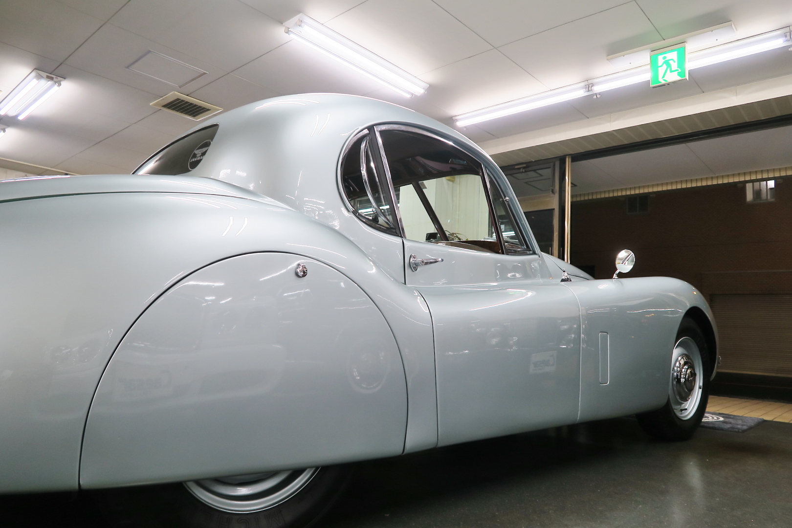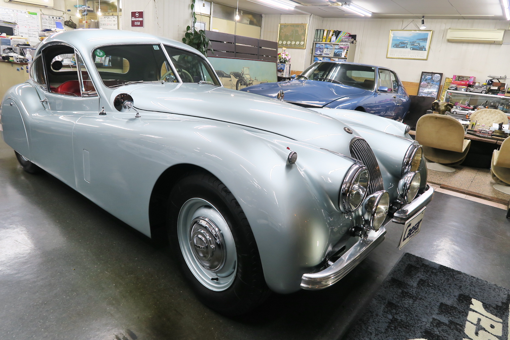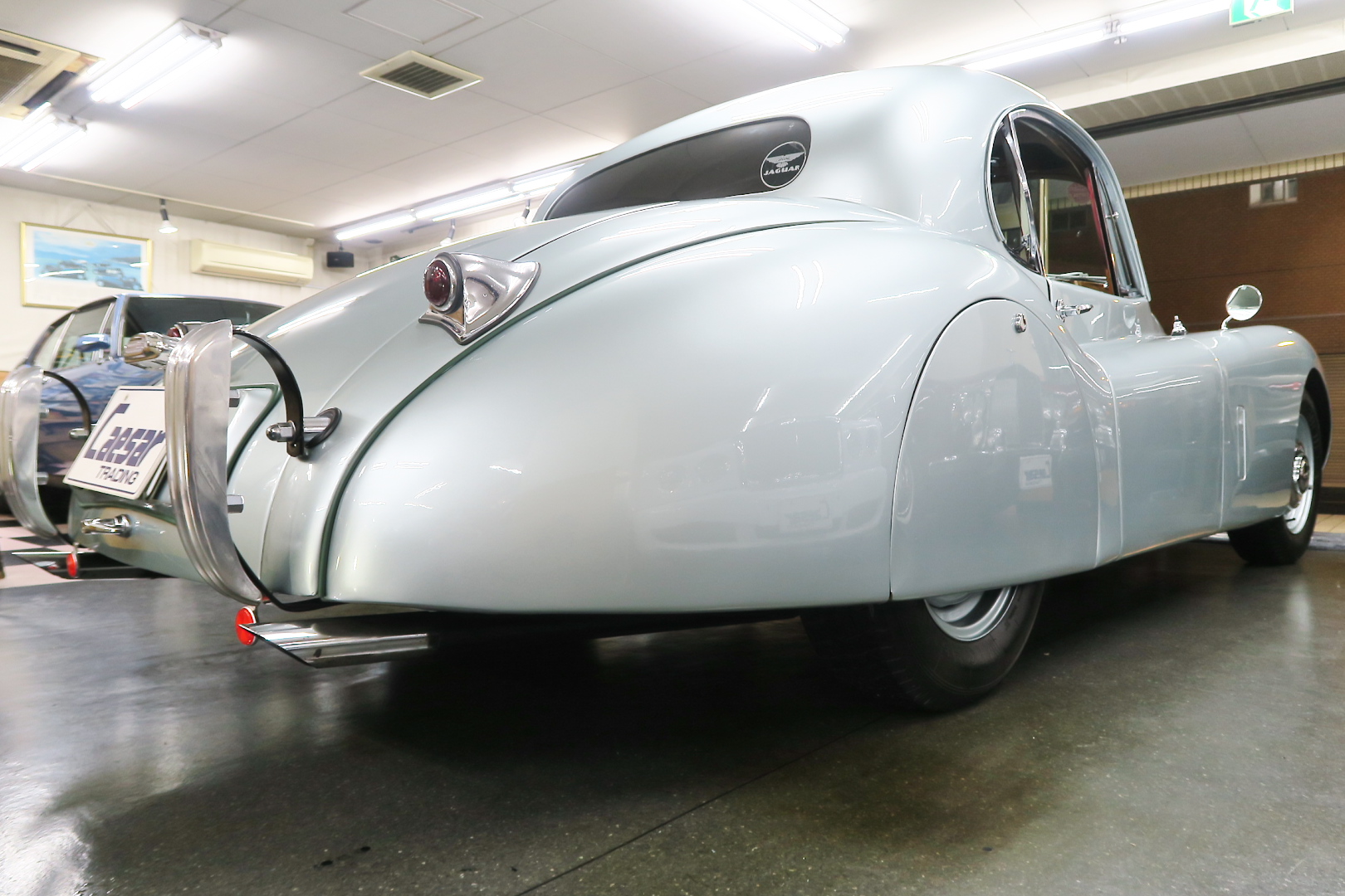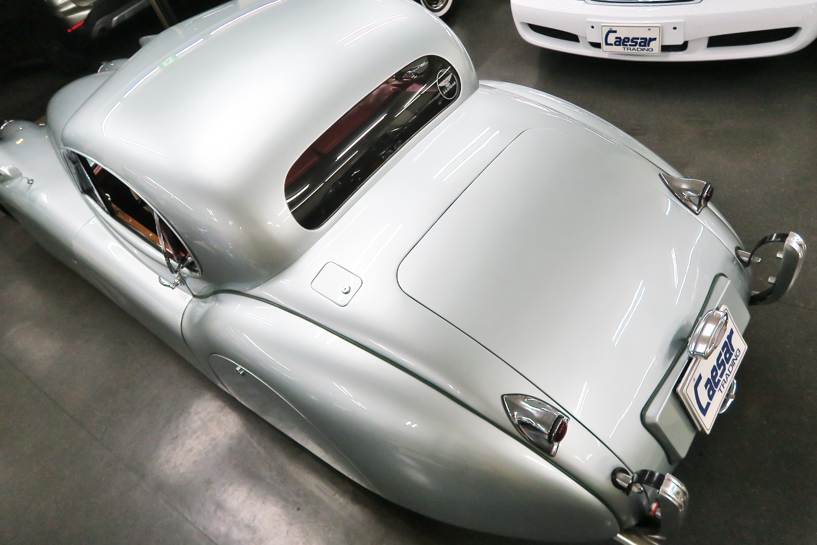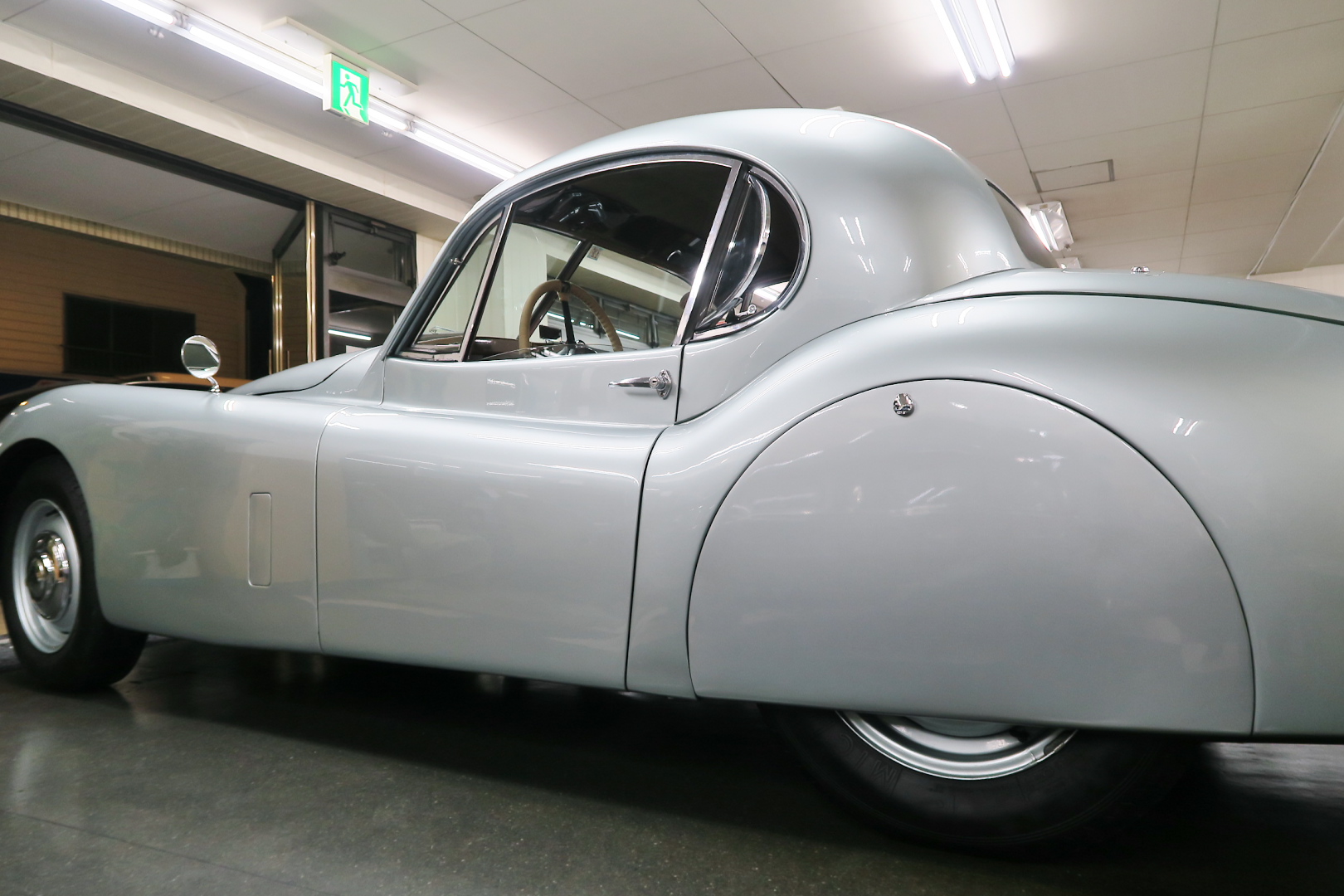 「XK120」物語 1922年、若干21歳だった「ウイリアム・ライオンズ」が創業した「スワローサイド・ カンパニー」、サイドカーの販売から始まった小さな会社を、世界的スポーツカー メーターへと転身させたのが、当「XK120」である。 戦前の名車「SS100」スポーツカーの高性能版・後継モデル。 1948年10月、ロンドン・モーターショーでデビューする。 このショーは、サルーンの「マーク5」が主役のはずだったが、それではインパクトが 弱い、、と考えたライオンズが急きょデザインし、完成させた、いわば客引き用の ワンメイクのコンセプトモデルであったが、、これが大反響、、世界中から注文が 殺到した。 ハリウッドスターがこぞって、、「ハンフリー・ボガート」「クラーク・ゲーブル」 「イングリッド・バークマン」などなど 翌、1949年からカタログモデルとして販売することに。 ただ、このモデル、量産予定がなかったので、1台づつトンテンカンのアルミボディ、 当初(1950年3月まで)の「243台」はアルミで作られたが、その後は、スティール製 ボディ(プレス)に変更される。 「XK120」の「120」は、「120マイルは出る」という意味であったが、実際、 1949年に有名誌「ザ・モーター」が、最高速を計測したところ、実走で、 「124.62マイル」(199.36km)を記録、、マジであった。 しかも、超安価。 かの「WOベントレー」師匠が設計した「直6DOHC」エンジンを積んだ、アストン ・マーティンの「DB2ヴァンテージ」はXK120の1.5倍の価格であったが、性能的 には、125馬力で最高速は、187km、、。 そりゃ 売れるさ。 欠点といえば、、、その あまりに質素な作り、、だって、コンセプカーですから。 デザインと性能は素晴らしいが 豪華さは なし。 そこで、 1951年3月、新型モデルを投入する。 それが、当「XK120 FHC」である。 * FHC「フィクスド・ヘッド・クーペ」は、クーペ。 * DHC「ドロップ・ヘッド・クーペ」は、オープンカー。 こちらは、待ちに待った「豪華版」クーペ! それまでの、パネルは、ビニール張り、FHCは、バーウォールナット張り、 巻き上げ式ウインドに三角窓、ヒーター付きで、本革シートが標準装備。 おまけに、デザインは、かの「ブガッティ・タイプ57・アトランテ」を彷彿させる 丸みをおびた流線形。 こちらも注文殺到、、 ついには、工場が手狭となり、1952年11月 コヴェントリーの「ブラウンズレイン工場」へ移転。 この工場は、それまで、「ディムラー」がいくつか持っていた秘密工場で、 戦時中は、「小型装甲車」(フェレットなどの)を生産していた大工場だ。 この工場の設備のお陰で、生産効率は、飛躍的に向上する。 調子にのって、1953年、「カブリオレ」モデルを投入。 初期モデルは、簡易幌のロードスターといったイメージだったが、こちらは、固定式の ちゃんとした裏地付き幌を持つオープンカー。 ジャガー社的には、カブリオレであるが、世間では、最初に「FHC」があったため 「DHC」と呼ばれる場合も。 こちらも好評であったが、生産は、翌1954年まで 1955年には、後継モデル「XK140」が発売されたからである。 その後、1957年には、「XK150」に とパワーを増す替わりに、、 「XK120」のグラマラスな流線美は、どんどん失われていく。 より室内空間を確保するため らしいが、平たくいうと、どんどん普通〜になる。 その後は、1961年より、あの「Eタイプ」にシリーズを継承するわけだが、 今回は、「XK120」に話を絞ろう。 「XK120」が今もなおモータースポーツ界に その名を残す最大の理由は、 このモデルを元に製作したレースマシン「Cタイプ」「Dタイプ」にある。 機関系もチューン(210馬力)されたが、なにより、「C」「D」のデザイナー、 ちょうど「ブリストル社」から移籍してきたばかりの「マルコム・セイヤー」が担当。 彼が 後に「Eタイプ」をデザインすることになる。 「Cタイプ」は、「1951年」と「1953年」に「ルマン24時間レース」で総合優勝! 1954年には、「Dタイプ」に進化し、「1955年」「56年」「57年」と3年連続 「ルマン」で総合優勝! バケモン この時代には、たいしたスポーツカーがなかった わけではない。 最初の「51年」時、「アストン」も「ベントレー」も「ポルシェ」も参戦していたし、 「55年」時には、全員集合、、「フェラーリ・121LM」、「マセラティ・300S」、 「メルセデス・300SLR」、「アストン・DB3S」、「ラゴンダ」、「トライアンフ」 などなど、今じゃ数億、数十億円する名車ばかり、、その中で、3年連続優勝 って、 夢のような話、、 1958年には、レースの規定が「3L以下」とされたため、参加し ていないが、、参加できなかった「Dタイプ」のパーツを集めて生産したのが、 1957年発売の 市販車「XKSS」である。 「スティーブ・マックイーン」が乗っていたことで有名であるが、 このモデル、生産から僅かして、工場が火災になり、わずか、16台しか作れていない。 「XK120オープン」生産台数:左「6438台」、右「1176台」:計:「7614台」 「XK120 FHC」生産台数:左「2485
