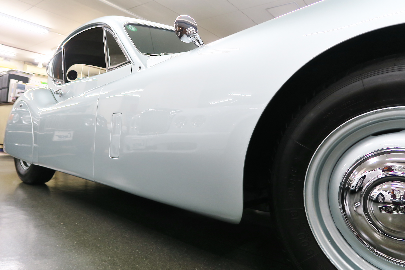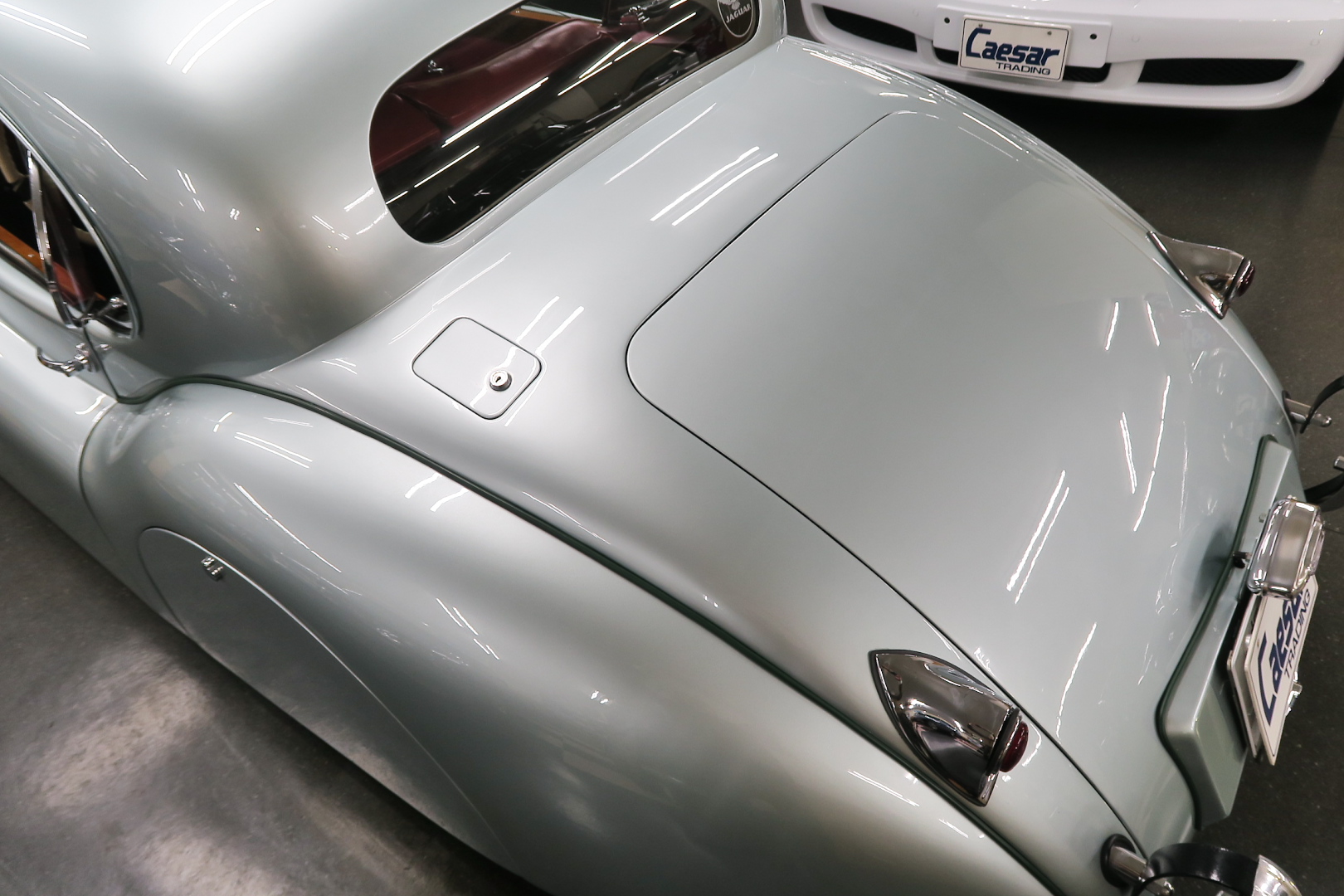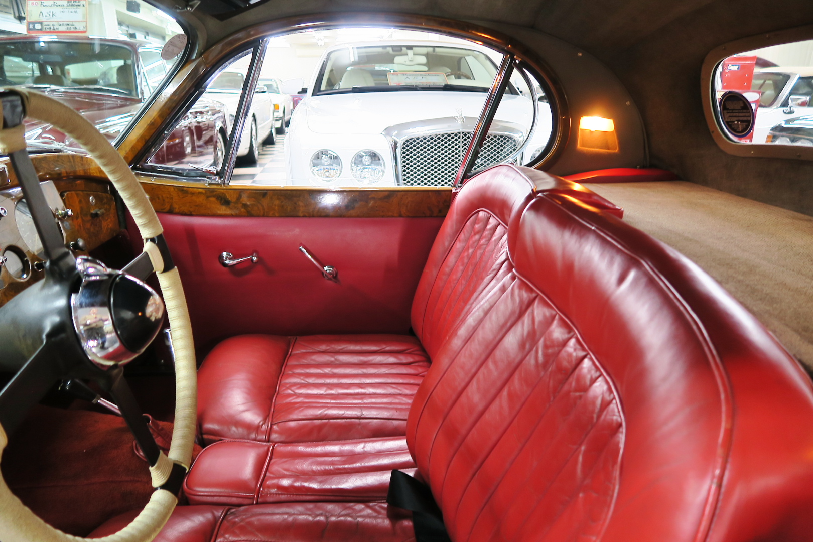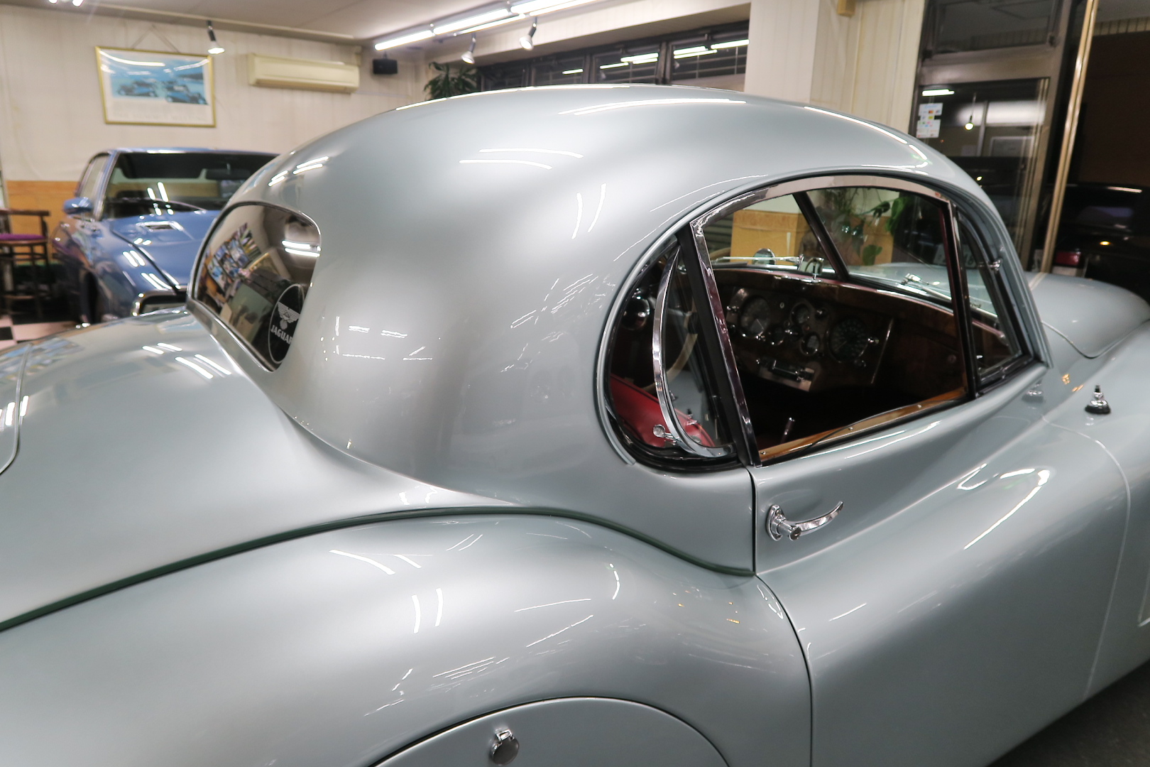 「XK120」物語 1922年、若干21歳だった「ウイリアム・ライオンズ」が創業した「スワローサイド・ カンパニー」、サイドカーの販売から始まった小さな会社を、世界的スポーツカー メーターへと転身させたのが、当「XK120」である。 戦前の名車「SS100」スポーツカーの高性能版・後継モデル。 1948年10月、ロンドン・モーターショーでデビューする。 このショーは、サルーンの「マーク5」が主役のはずだったが、それではインパクトが 弱い、、と考えたライオンズが急きょデザインし、完成させた、いわば客引き用の ワンメイクのコンセプトモデルであったが、、これが大反響、、世界中から注文が 殺到した。 ハリウッドスターがこぞって、、「ハンフリー・ボガート」「クラーク・ゲーブル」 「イングリッド・バークマン」などなど 翌、1949年からカタログモデルとして販売することに。 ただ、このモデル、量産予定がなかったので、1台づつトンテンカンのアルミボディ、 当初(1950年3月まで)の「243台」はアルミで作られたが、その後は、スティール製 ボディ(プレス)に変更される。 「XK120」の「120」は、「120マイルは出る」という意味であったが、実際、 1949年に有名誌「ザ・モーター」が、最高速を計測したところ、実走で、 「124.62マイル」(199.36km)を記録、、マジであった。 しかも、超安価。 かの「WOベントレー」師匠が設計した「直6DOHC」エンジンを積んだ、アストン ・マーティンの「DB2ヴァンテージ」はXK120の1.5倍の価格であったが、性能的 には、125馬力で最高速は、187km、、。 そりゃ 売れるさ。 欠点といえば、、、その あまりに質素な作り、、だって、コンセプカーですから。 デザインと性能は素晴らしいが 豪華さは なし。 そこで、 1951年3月、新型モデルを投入する。 それが、当「XK120 FHC」である。 * FHC「フィクスド・ヘッド・クーペ」は、クーペ。 * DHC「ドロップ・ヘッド・クーペ」は、オープンカー。 こちらは、待ちに待った「豪華版」クーペ! それまでの、パネルは、ビニール張り、FHCは、バーウォールナット張り、 巻き上げ式ウインドに三角窓、ヒーター付きで、本革シートが標準装備。 おまけに、デザインは、かの「ブガッティ・タイプ57・アトランテ」を彷彿させる 丸みをおびた流線形。 こちらも注文殺到、、 ついには、工場が手狭となり、1952年11月 コヴェントリーの「ブラウンズレイン工場」へ移転。 この工場は、それまで、「ディムラー」がいくつか持っていた秘密工場で、 戦時中は、「小型装甲車」(フェレットなどの)を生産していた大工場だ。 この工場の設備のお陰で、生産効率は、飛躍的に向上する。 調子にのって、1953年、「カブリオレ」モデルを投入。 初期モデルは、簡易幌のロードスターといったイメージだったが、こちらは、固定式の ちゃんとした裏地付き幌を持つオープンカー。 ジャガー社的には、カブリオレであるが、世間では、最初に「FHC」があったため 「DHC」と呼ばれる場合も。 こちらも好評であったが、生産は、翌1954年まで 1955年には、後継モデル「XK140」が発売されたからである。 その後、1957年には、「XK150」に とパワーを増す替わりに、、 「XK120」のグラマラスな流線美は、どんどん失われていく。 より室内空間を確保するため らしいが、平たくいうと、どんどん普通〜になる。 その後は、1961年より、あの「Eタイプ」にシリーズを継承するわけだが、 今回は、「XK120」に話を絞ろう。 「XK120」が今もなおモータースポーツ界に その名を残す最大の理由は、 このモデルを元に製作したレースマシン「Cタイプ」「Dタイプ」にある。 機関系もチューン(210馬力)されたが、なにより、「C」「D」のデザイナー、 ちょうど「ブリストル社」から移籍してきたばかりの「マルコム・セイヤー」が担当。 彼が 後に「Eタイプ」をデザインすることになる。 「Cタイプ」は、「1951年」と「1953年」に「ルマン24時間レース」で総合優勝! 1954年には、「Dタイプ」に進化し、「1955年」「56年」「57年」と3年連続 「ルマン」で総合優勝! バケモン この時代には、たいしたスポーツカーがなかった わけではない。 最初の「51年」時、「アストン」も「ベントレー」も「ポルシェ」も参戦していたし、 「55年」時には、全員集合、、「フェラーリ・121LM」、「マセラティ・300S」、 「メルセデス・300SLR」、「アストン・DB3S」、「ラゴンダ」、「トライアンフ」 などなど、今じゃ数億、数十億円する名車ばかり、、その中で、3年連続優勝 って、 夢のような話、、 1958年には、レースの規定が「3L以下」とされたため、参加し ていないが、、参加できなかった「Dタイプ」のパーツを集めて生産したのが、 1957年発売の 市販車「XKSS」である。 「スティーブ・マックイーン」が乗っていたことで有名であるが、 このモデル、生産から僅かして、工場が火災になり、わずか、16台しか作れていない。 「XK120オープン」生産台数:左「6438台」、右「1176台」:計:「7614台」 「XK120 FHC」生産台数:左「2485