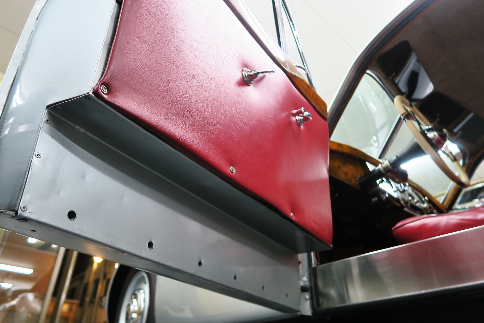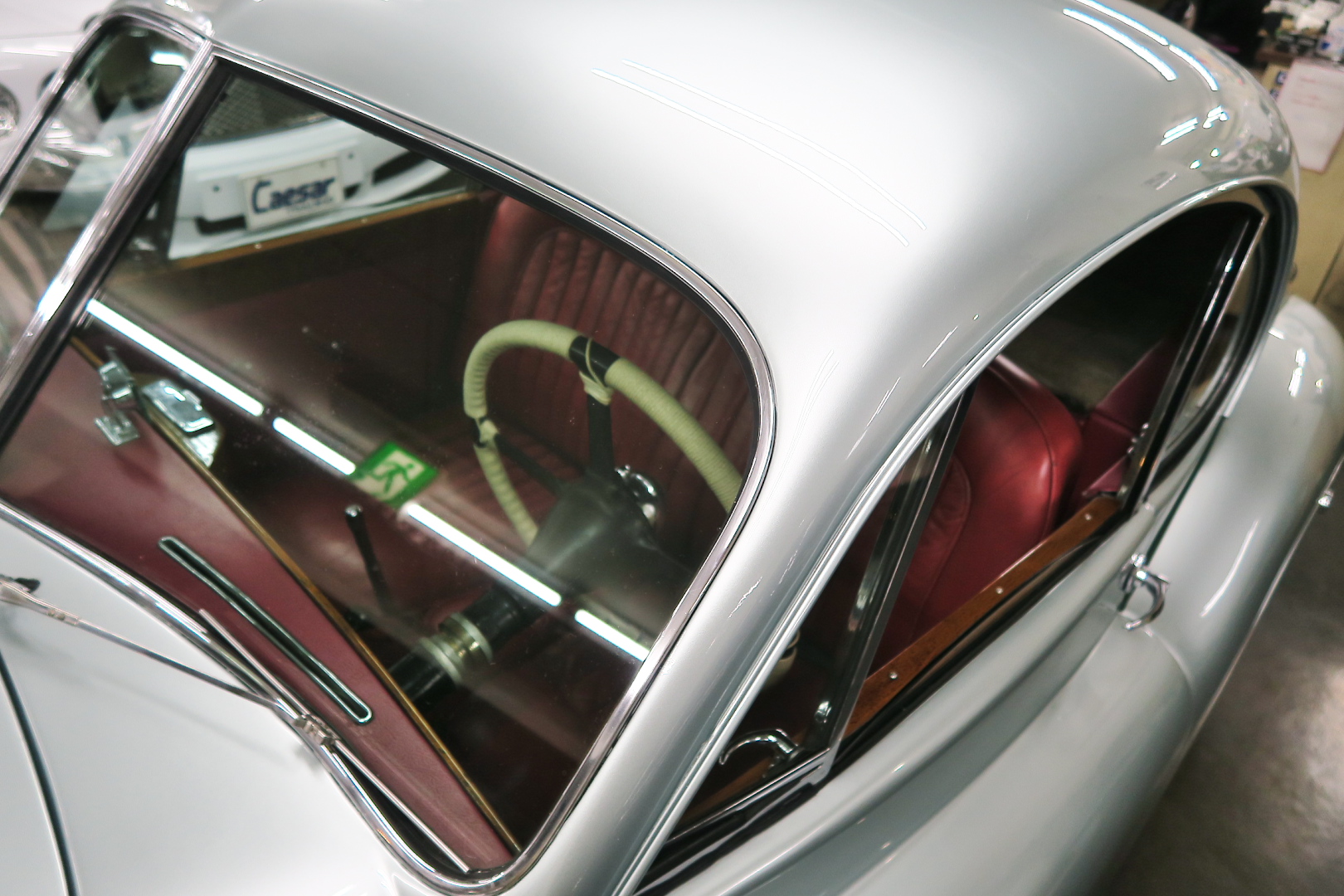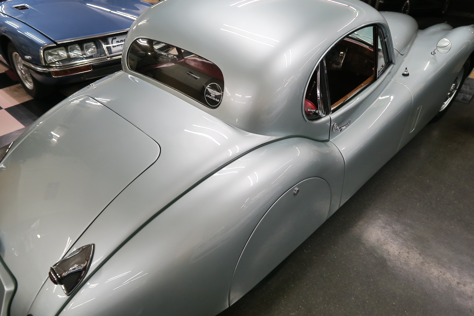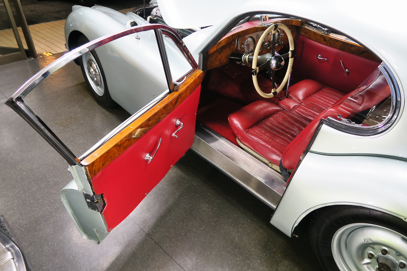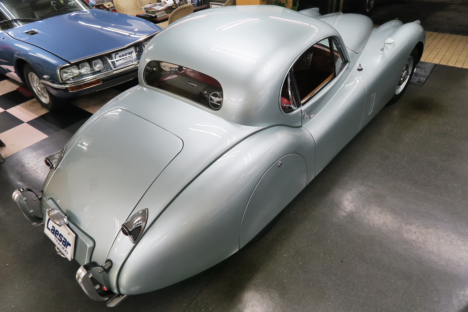「XK120」物語 1922年、若干21歳だった「ウイリアム・ライオンズ」が創業した「スワローサイド・ カンパニー」、サイドカーの販売から始まった小さな会社を、世界的スポーツカー メーターへと転身させたのが、当「XK120」である。 戦前の名車「SS100」スポーツカーの高性能版・後継モデル。 1948年10月、ロンドン・モーターショーでデビューする。 このショーは、サルーンの「マーク5」が主役のはずだったが、それではインパクトが 弱い、、と考えたライオンズが急きょデザインし、完成させた、いわば客引き用の ワンメイクのコンセプトモデルであったが、、これが大反響、、世界中から注文が 殺到した。 ハリウッドスターがこぞって、、「ハンフリー・ボガート」「クラーク・ゲーブル」 「イングリッド・バークマン」などなど 翌、1949年からカタログモデルとして販売することに。 ただ、このモデル、量産予定がなかったので、1台づつトンテンカンのアルミボディ、 当初(1950年3月まで)の「243台」はアルミで作られたが、その後は、スティール製 ボディ(プレス)に変更される。 「XK120」の「120」は、「120マイルは出る」という意味であったが、実際、 1949年に有名誌「ザ・モーター」が、最高速を計測したところ、実走で、 「124.62マイル」(199.36km)を記録、、マジであった。 しかも、超安価。 かの「WOベントレー」師匠が設計した「直6DOHC」エンジンを積んだ、アストン ・マーティンの「DB2ヴァンテージ」はXK120の1.5倍の価格であったが、性能的 には、125馬力で最高速は、187km、、。 そりゃ 売れるさ。 欠点といえば、、、その あまりに質素な作り、、だって、コンセプカーですから。 デザインと性能は素晴らしいが 豪華さは なし。 そこで、 1951年3月、新型モデルを投入する。 それが、当「XK120 FHC」である。 * FHC「フィクスド・ヘッド・クーペ」は、クーペ。 * DHC「ドロップ・ヘッド・クーペ」は、オープンカー。 こちらは、待ちに待った「豪華版」クーペ! それまでの、パネルは、ビニール張り、FHCは、バーウォールナット張り、 巻き上げ式ウインドに三角窓、ヒーター付きで、本革シートが標準装備。 おまけに、デザインは、かの「ブガッティ・タイプ57・アトランテ」を彷彿させる 丸みをおびた流線形。 こちらも注文殺到、、 ついには、工場が手狭となり、1952年11月 コヴェントリーの「ブラウンズレイン工場」へ移転。 この工場は、それまで、「ディムラー」がいくつか持っていた秘密工場で、 戦時中は、「小型装甲車」(フェレットなどの)を生産していた大工場だ。 この工場の設備のお陰で、生産効率は、飛躍的に向上する。 調子にのって、1953年、「カブリオレ」モデルを投入。 初期モデルは、簡易幌のロードスターといったイメージだったが、こちらは、固定式の ちゃんとした裏地付き幌を持つオープンカー。 ジャガー社的には、カブリオレであるが、世間では、最初に「FHC」があったため 「DHC」と呼ばれる場合も。 こちらも好評であったが、生産は、翌1954年まで 1955年には、後継モデル「XK140」が発売されたからである。 その後、1957年には、「XK150」に とパワーを増す替わりに、、 「XK120」のグラマラスな流線美は、どんどん失われていく。 より室内空間を確保するため らしいが、平たくいうと、どんどん普通〜になる。 その後は、1961年より、あの「Eタイプ」にシリーズを継承するわけだが、 今回は、「XK120」に話を絞ろう。 「XK120」が今もなおモータースポーツ界に その名を残す最大の理由は、 このモデルを元に製作したレースマシン「Cタイプ」「Dタイプ」にある。 機関系もチューン(210馬力)されたが、なにより、「C」「D」のデザイナー、 ちょうど「ブリストル社」から移籍してきたばかりの「マルコム・セイヤー」が担当。 彼が 後に「Eタイプ」をデザインすることになる。 「Cタイプ」は、「1951年」と「1953年」に「ルマン24時間レース」で総合優勝! 1954年には、「Dタイプ」に進化し、「1955年」「56年」「57年」と3年連続 「ルマン」で総合優勝! バケモン この時代には、たいしたスポーツカーがなかった わけではない。 最初の「51年」時、「アストン」も「ベントレー」も「ポルシェ」も参戦していたし、 「55年」時には、全員集合、、「フェラーリ・121LM」、「マセラティ・300S」、 「メルセデス・300SLR」、「アストン・DB3S」、「ラゴンダ」、「トライアンフ」 などなど、今じゃ数億、数十億円する名車ばかり、、その中で、3年連続優勝 って、 夢のような話、、 1958年には、レースの規定が「3L以下」とされたため、参加し ていないが、、参加できなかった「Dタイプ」のパーツを集めて生産したのが、 1957年発売の 市販車「XKSS」である。 「スティーブ・マックイーン」が乗っていたことで有名であるが、 このモデル、生産から僅かして、工場が火災になり、わずか、16台しか作れていない。 「XK120オープン」生産台数:左「6438台」、右「1176台」:計:「7614台」 「XK120 FHC」生産台数:左「2485