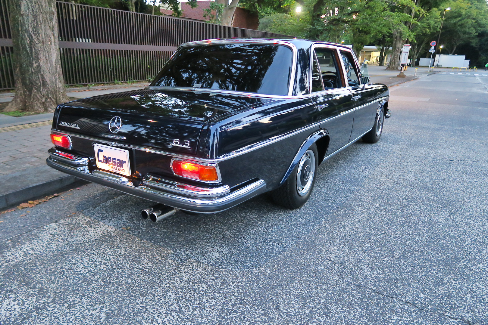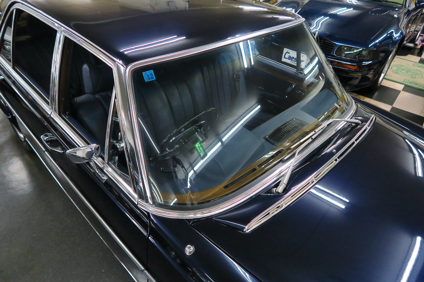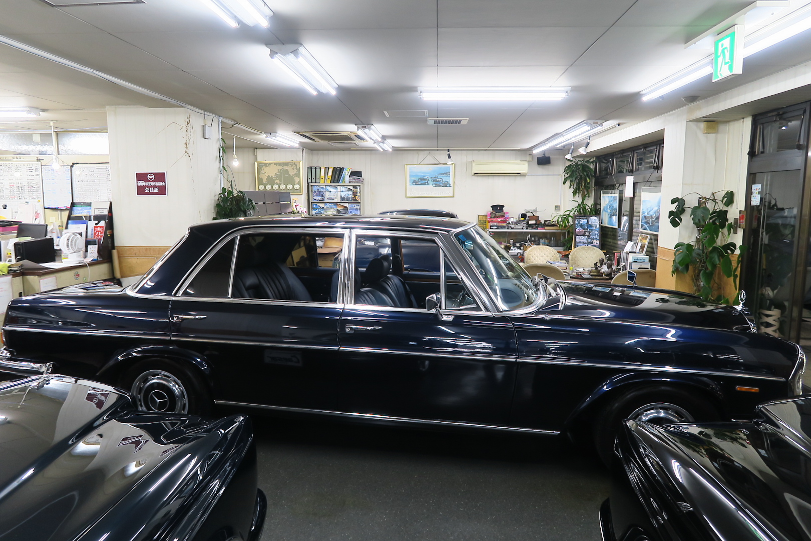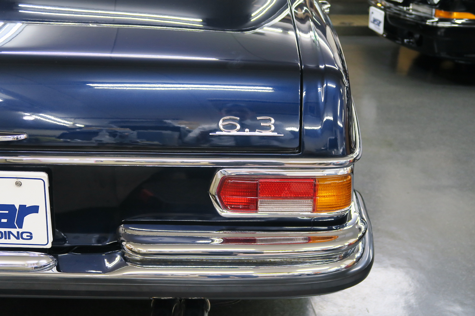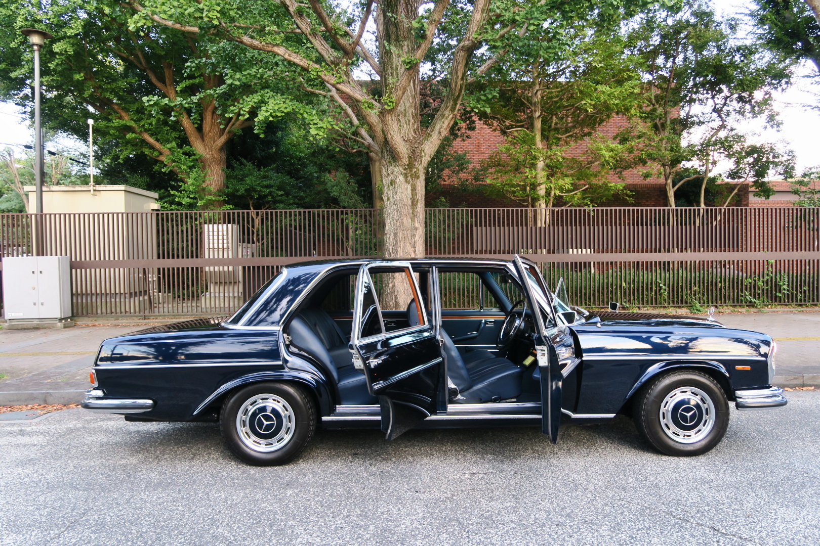 「300SEL 6.3」物語 1967年〜1972年の間に生産された「W109」タテ目の「300SEL」の 「6.3」である。 それも、ウエスタン自働車(ディーラー)物の「右ハンドル」 しかも、3オーナー、前オーナー様は、昭和59年から41年間も ご所有。 このモデルの生い立ちは、極めて興味深く、面白い。 こんな無茶なモデルがなぜに誕生したのか? ベースモデルは、1965年に発売されたばかりの最上級高級セダン「300SEL」 このモデルは、直列6気筒、3L、170馬力、 この頑丈なシャーシに目を付けたのが、エンジニアの「エーリッヒ・ヴァイクセンベル ロー」(文中:ベルローに短縮)。 1966年、「この300SELのシャーシなら、M600エンジンを積んだら面白そ〜 で、社内で こっそく時間を見つけて、載せ替え、完成させた車で、工場の敷地を 走り回った、、そして、その「音」でバレた、、 明らかに、聞くはずのない「音」、、工場責任者「ドルフ・ウーレンハウト」に見つか る。 彼はベルローに じっくり話を聞いたのち、試乗してみる。 結果、すぐに、開発へのGOサインを出す。 メーカー広報誌によれば、「書類にサインするとき、ウーレンハウトは、 ニヤリと笑ったはずだ、、」 なかなか 粋な会社である。 翌1967年、早くも市販モデル1台が完成。 正式モデル名: 「300SEL 6.3」 文字通り、「600リムジーネ」&「600プルマン」(1963年〜1981年)に積んだ 「M100」エンジン、V8、6.3L、250馬力、を移植。 これは、思った以上に販売不信だった「M100」の使い道を広げる意味もあった。 1968年から、正式に発売、1972年まで販売する。 生産台数: 「6526台」 この変態的怪物モデルは、想定外に 売れた。 ドイツ国内では、1839台しか売れていないが北米を中心とした海外で人気に火が付いた それは、現在でも同じ。 因みに、1967年は我が国でも、あの「トヨタ2000GT」が販売された年。 スペックを比較してみると: ・「300SEL 6.3」 最高速:「221km」 0−400m:「15.4秒」 ・「トヨタ2000GT」 : 「220km」 0−400m:「15.9秒」 ・「67’ ポルシェ911S」 :「225km」 0−400m:「15.8秒」 ・「70’ ハカスカGTR」 : 「200km」 0−400m:「16.0秒」 国内無敵の「2000GT」も、「6.3」に及ばず、ポルシェも「S」以外じゃ、太刀打ち できず、後年発売の「GTR」は、ぶっちぎられる、、まさに、スーパースポーツカー 、、「セダン」のくせに、、本物の「羊の皮をかぶった狼」! しかも、エアサスにレベルコントロール(車高自動調整)、AT、PW、パワステ、 クーラー付きで、乗心地も快適。「アウトバーンの覇者」。 では、当個体のお話: ウエスタン自働車(=ヤナセ=ディーラー)物、右ハンドル、3オーナー 前オーナー様は、昭和59年(1984年)より、2025年まで 41年間 ご所有。 聞けば分かる有名企業のオーナー様で、入手当初は、ヤナセ整備、できるメカニックが 引退したのちは、通常整備は、地元整備工場で、「6.3」ならではの整備は、例の神戸 の専門店様にて。この専門店さまで、2021年に大掛かりな整備、明細残る。 ・エアサス関係・レベリング関係・インジェクション関係・コンプレッサー・ウォータ ーポンプ関係・ブレーキ関係など、「6.3」における「キモ」整備が施されている。 しかも、長年のお付き合いの「正しすぎる一時預かり人」である、前オーナー様は、 弊社に持つ込むまえ、2025年8月、「シーザーさんに迷惑がかからないように」と、 前述の専門店様に入庫、点検依頼、「どこか不具合箇所があれば直しといて」 で、・ヒーターコア脱着・修理、プラグ交換、エンジンオイル交換、各グリスUP、 などなどが施された上で、当社入庫。 感謝・感激。 また、お次のオーナー様にとっても、相当な安心材料であろう。 お金持ち あるあるだが、記録簿とか なんですか それ である。 ただ、車検証上で分かるのは、 令和3年12月: 「77.200km」 令和5年12月: 「78.900km」 現在: 「79.200km」! さらに、当個体は、正しい整備だけでなく、内外装もレストアが施されている。 外装は: 「ダークブルー」メタリックに、全バラシ「オールペイント」済み。 *元色は、「パピルス・ホワイト」 (カラーVINで分かる) 塗装状態も素晴らしい◎。 「300SEL」の5mボディに良く似合うカラーで、重量感を感じる。 実際には、オリジナル「300SEL」の重量は、「1655kg」で、「6.3」は、 「1740kg」なので、85kgしか重くない(エンジンの重さの違い分)のが、、 なんだが、まったくオーラが異なるのは、、私の「6.3」への憧れ だからだけでは なさそうだ。 内装は: 「紺・本革」 「総張替え」 ・シート・ダッシュボード・天井内張り・カーペットに至るまで全て。 で、ほとんど乗らないものだから、今もバリビカ。 ただ、ウッド類は、オリジナルのまま なので、風情が残る。 ここが素のままなので、時代があう。 ・4速AT・パワーステアリング・パワーウインド・クーラー、快適な怪物マシン。 後付けで、・パナ「ゴリラ」ナビ(取り外し可)・「バックカメラ」連動・ETC・ 「前後ドラレコ」・「油圧メーター」 即戦力。 機関系: エンジンは、前述の通り、「M100」、当