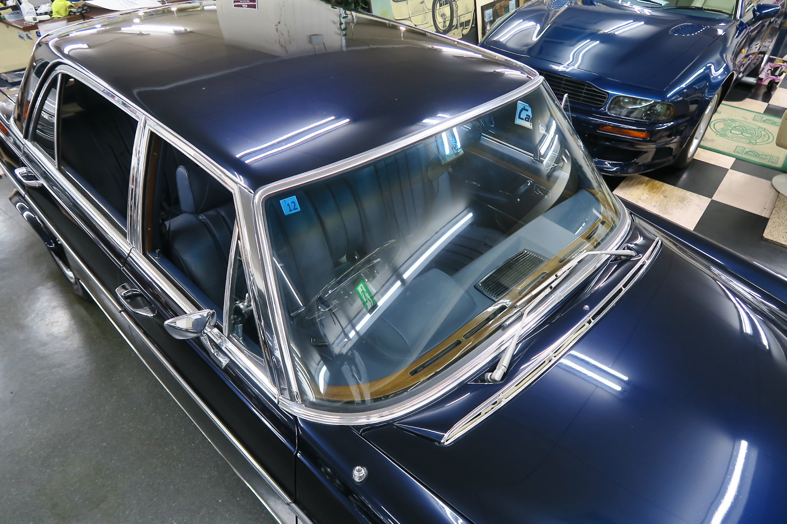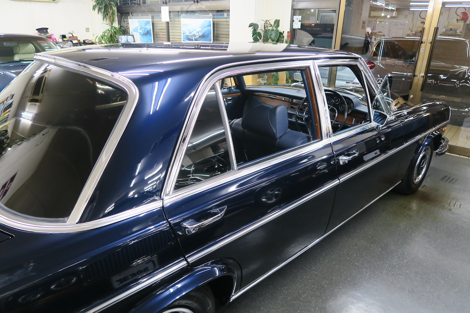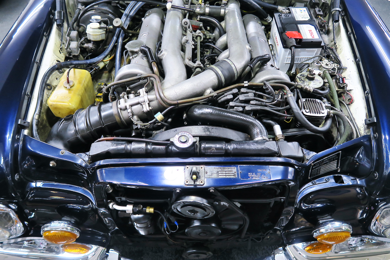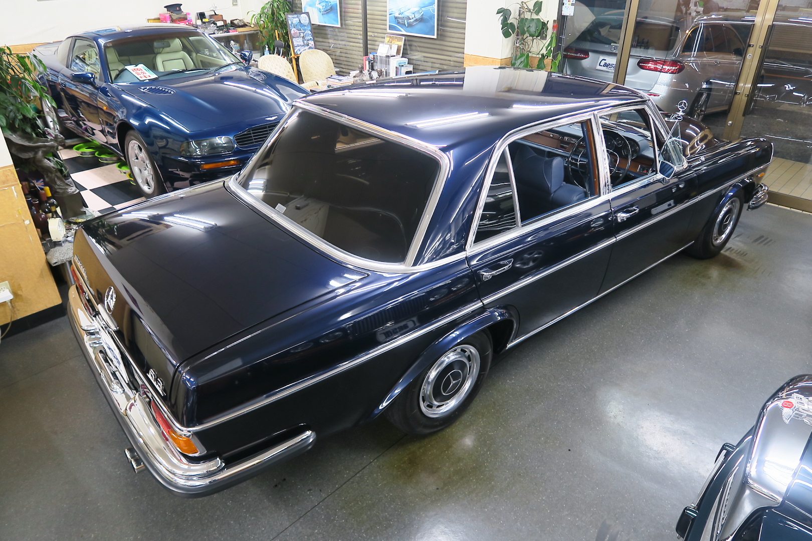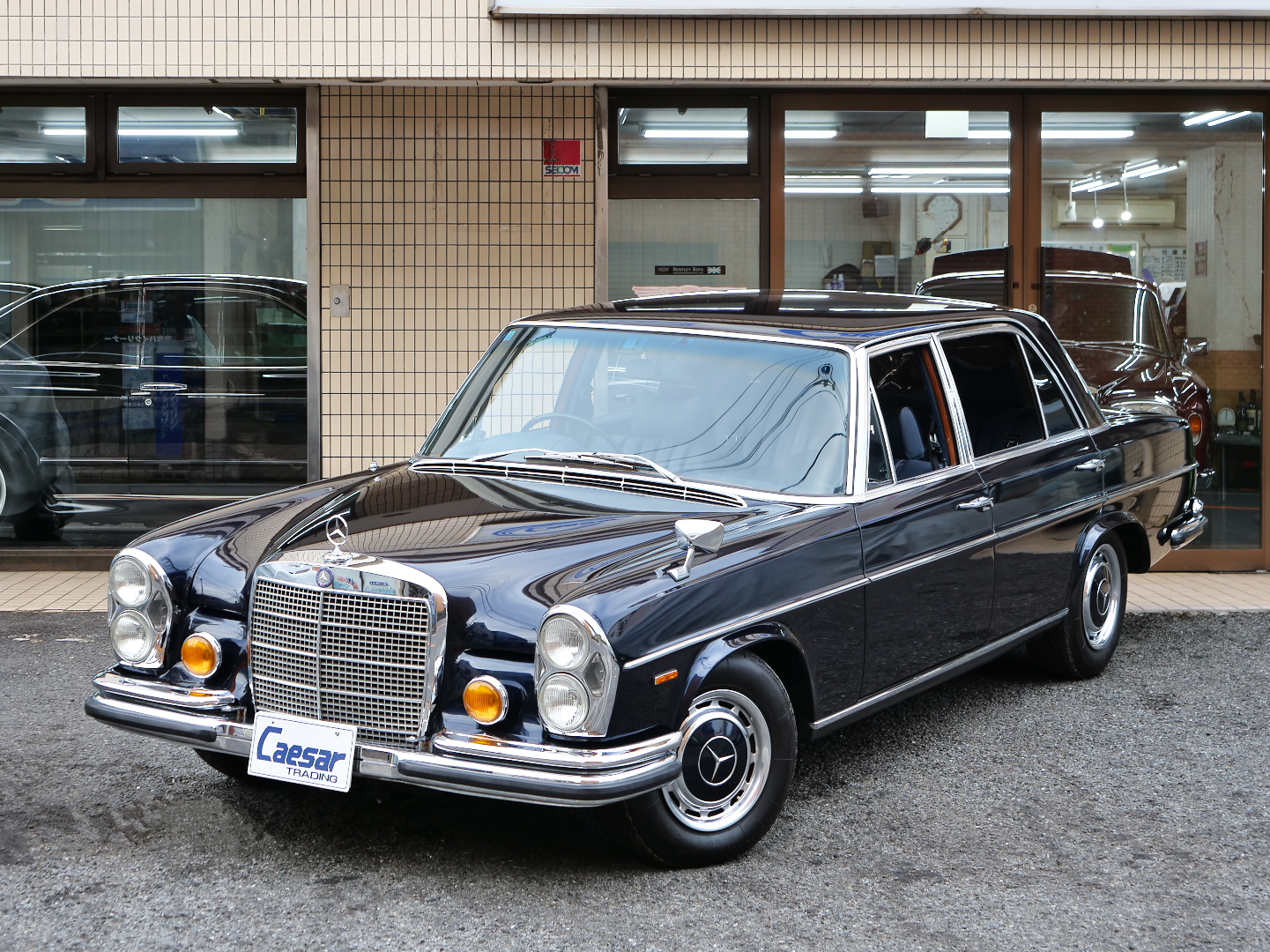 「300SEL 6.3」物語 1967年〜1972年の間に生産された「W109」タテ目の「300SEL」の 「6.3」である。 それも、ウエスタン自働車(ディーラー)物の「右ハンドル」 しかも、3オーナー、前オーナー様は、昭和59年から41年間も ご所有。 このモデルの生い立ちは、極めて興味深く、面白い。 こんな無茶なモデルがなぜに誕生したのか? ベースモデルは、1965年に発売されたばかりの最上級高級セダン「300SEL」 このモデルは、直列6気筒、3L、170馬力、 この頑丈なシャーシに目を付けたのが、エンジニアの「エーリッヒ・ヴァイクセンベル ロー」(文中:ベルローに短縮)。 1966年、「この300SELのシャーシなら、M600エンジンを積んだら面白そ〜 で、社内で こっそく時間を見つけて、載せ替え、完成させた車で、工場の敷地を 走り回った、、そして、その「音」でバレた、、 明らかに、聞くはずのない「音」、、工場責任者「ドルフ・ウーレンハウト」に見つか る。 彼はベルローに じっくり話を聞いたのち、試乗してみる。 結果、すぐに、開発へのGOサインを出す。 メーカー広報誌によれば、「書類にサインするとき、ウーレンハウトは、 ニヤリと笑ったはずだ、、」 なかなか 粋な会社である。 翌1967年、早くも市販モデル1台が完成。 正式モデル名: 「300SEL 6.3」 文字通り、「600リムジーネ」&「600プルマン」(1963年〜1981年)に積んだ 「M100」エンジン、V8、6.3L、250馬力、を移植。 これは、思った以上に販売不信だった「M100」の使い道を広げる意味もあった。 1968年から、正式に発売、1972年まで販売する。 生産台数: 「6526台」 この変態的怪物モデルは、想定外に 売れた。 ドイツ国内では、1839台しか売れていないが北米を中心とした海外で人気に火が付いた それは、現在でも同じ。 因みに、1967年は我が国でも、あの「トヨタ2000GT」が販売された年。 スペックを比較してみると: ・「300SEL 6.3」 最高速:「221km」 0−400m:「15.4秒」 ・「トヨタ2000GT」 : 「220km」 0−400m:「15.9秒」 ・「67’ ポルシェ911S」 :「225km」 0−400m:「15.8秒」 ・「70’ ハカスカGTR」 : 「200km」 0−400m:「16.0秒」 国内無敵の「2000GT」も、「6.3」に及ばず、ポルシェも「S」以外じゃ、太刀打ち できず、後年発売の「GTR」は、ぶっちぎられる、、まさに、スーパースポーツカー 、、「セダン」のくせに、、本物の「羊の皮をかぶった狼」! しかも、エアサスにレベルコントロール(車高自動調整)、AT、PW、パワステ、 クーラー付きで、乗心地も快適。「アウトバーンの覇者」。 では、当個体のお話: ウエスタン自働車(=ヤナセ=ディーラー)物、右ハンドル、3オーナー 前オーナー様は、昭和59年(1984年)より、2025年まで 41年間 ご所有。 聞けば分かる有名企業のオーナー様で、入手当初は、ヤナセ整備、できるメカニックが 引退したのちは、通常整備は、地元整備工場で、「6.3」ならではの整備は、例の神戸 の専門店様にて。この専門店さまで、2021年に大掛かりな整備、明細残る。 ・エアサス関係・レベリング関係・インジェクション関係・コンプレッサー・ウォータ ーポンプ関係・ブレーキ関係など、「6.3」における「キモ」整備が施されている。 しかも、長年のお付き合いの「正しすぎる一時預かり人」である、前オーナー様は、 弊社に持つ込むまえ、2025年8月、「シーザーさんに迷惑がかからないように」と、 前述の専門店様に入庫、点検依頼、「どこか不具合箇所があれば直しといて」 で、・ヒーターコア脱着・修理、プラグ交換、エンジンオイル交換、各グリスUP、 などなどが施された上で、当社入庫。 感謝・感激。 また、お次のオーナー様にとっても、相当な安心材料であろう。 お金持ち あるあるだが、記録簿とか なんですか それ である。 ただ、車検証上で分かるのは、 令和3年12月: 「77.200km」 令和5年12月: 「78.900km」 現在: 「79.200km」! さらに、当個体は、正しい整備だけでなく、内外装もレストアが施されている。 外装は: 「ダークブルー」メタリックに、全バラシ「オールペイント」済み。 *元色は、「パピルス・ホワイト」 (カラーVINで分かる) 塗装状態も素晴らしい◎。 「300SEL」の5mボディに良く似合うカラーで、重量感を感じる。 実際には、オリジナル「300SEL」の重量は、「1655kg」で、「6.3」は、 「1740kg」なので、85kgしか重くない(エンジンの重さの違い分)のが、、 なんだが、まったくオーラが異なるのは、、私の「6.3」への憧れ だからだけでは なさそうだ。 内装は: 「紺・本革」 「総張替え」 ・シート・ダッシュボード・天井内張り・カーペットに至るまで全て。 で、ほとんど乗らないものだから、今もバリビカ。 ただ、ウッド類は、オリジナルのまま なので、風情が残る。 ここが素のままなので、時代があう。 ・4速AT・パワーステアリング・パワーウインド・クーラー、快適な怪物マシン。 後付けで、・パナ「ゴリラ」ナビ(取り外し可)・「バックカメラ」連動・ETC・ 「前後ドラレコ」・「油圧メーター」 即戦力。 機関系: エンジンは、前述の通り、「M100」、当