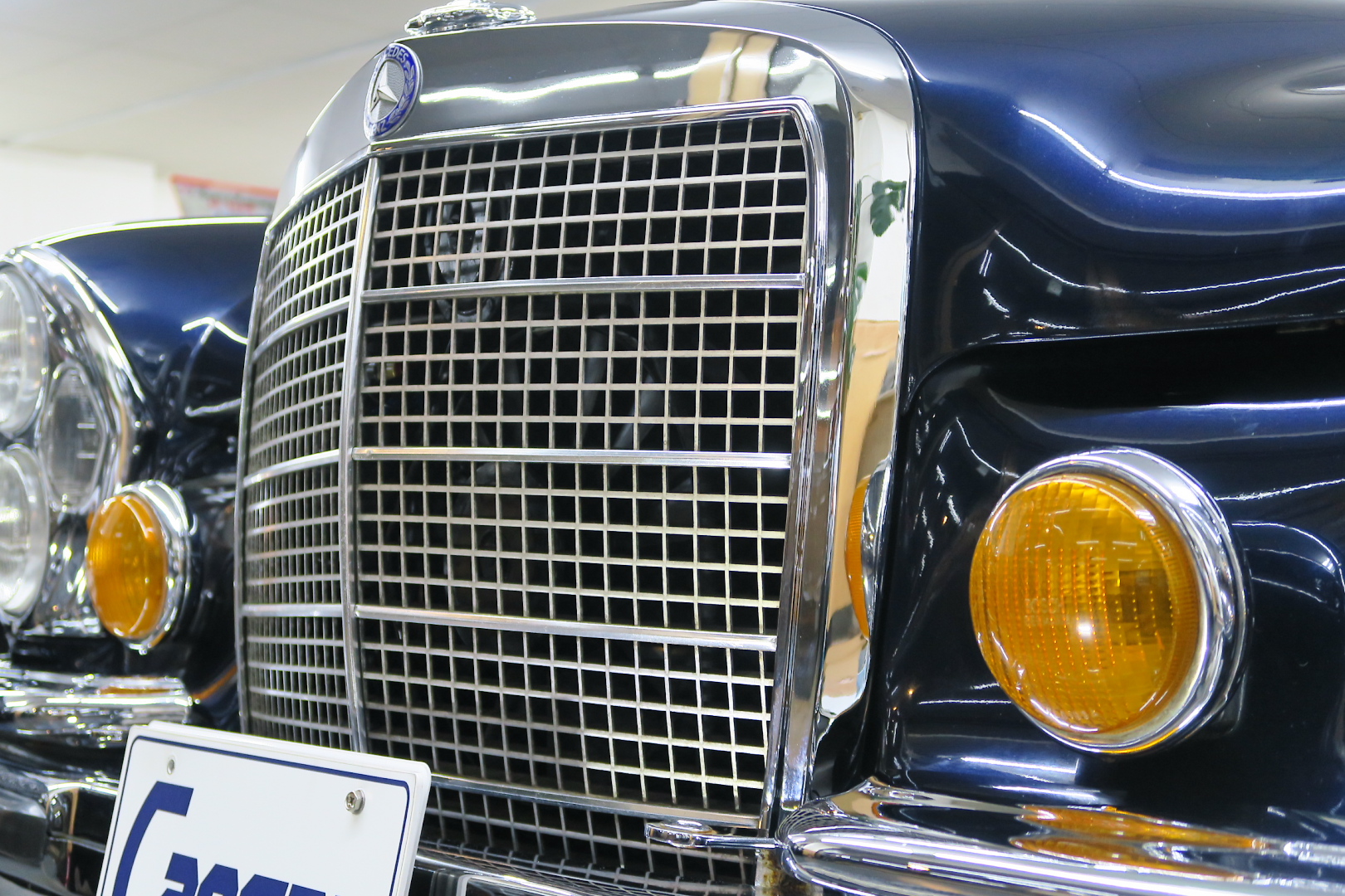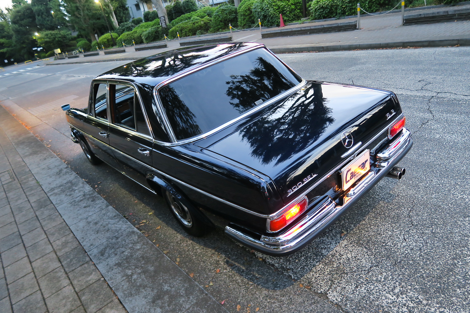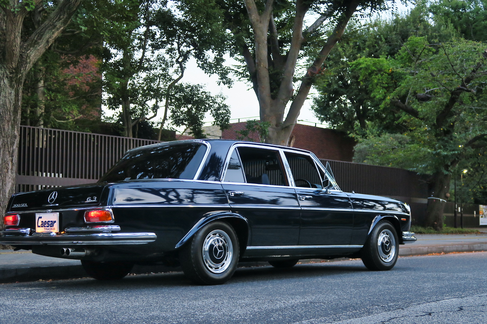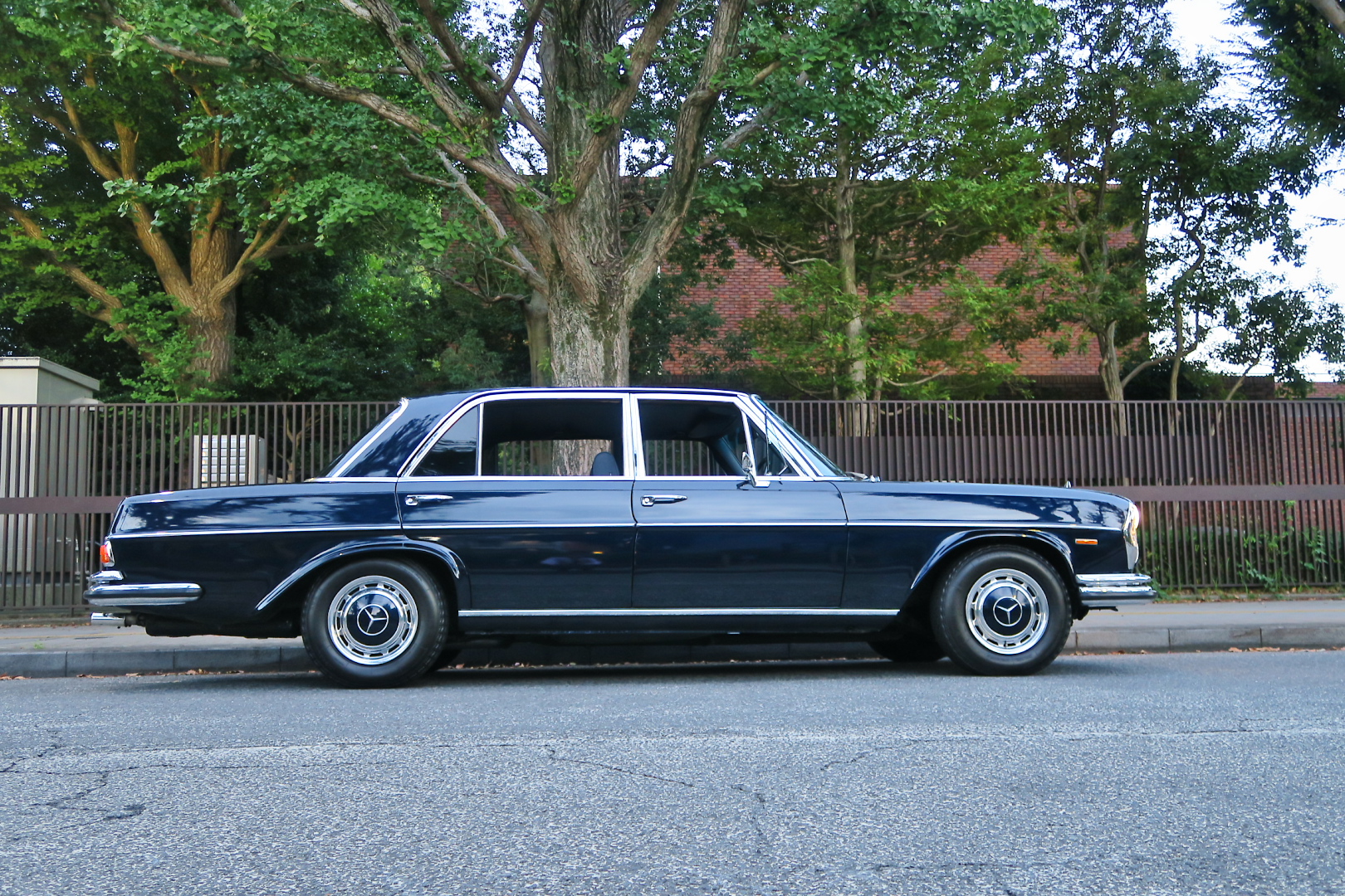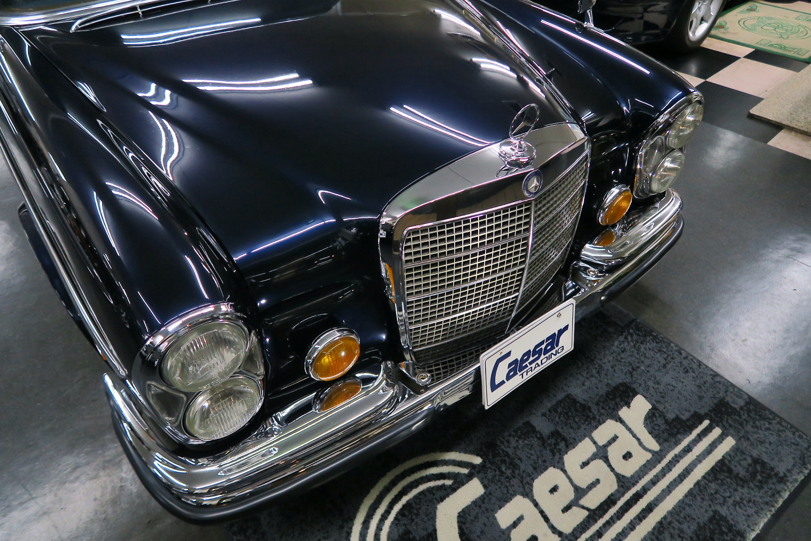 「300SEL 6.3」物語 1967年〜1972年の間に生産された「W109」タテ目の「300SEL」の 「6.3」である。 それも、ウエスタン自働車(ディーラー)物の「右ハンドル」 しかも、3オーナー、前オーナー様は、昭和59年から41年間も ご所有。 このモデルの生い立ちは、極めて興味深く、面白い。 こんな無茶なモデルがなぜに誕生したのか? ベースモデルは、1965年に発売されたばかりの最上級高級セダン「300SEL」 このモデルは、直列6気筒、3L、170馬力、 この頑丈なシャーシに目を付けたのが、エンジニアの「エーリッヒ・ヴァイクセンベル ロー」(文中:ベルローに短縮)。 1966年、「この300SELのシャーシなら、M600エンジンを積んだら面白そ〜 で、社内で こっそく時間を見つけて、載せ替え、完成させた車で、工場の敷地を 走り回った、、そして、その「音」でバレた、、 明らかに、聞くはずのない「音」、、工場責任者「ドルフ・ウーレンハウト」に見つか る。 彼はベルローに じっくり話を聞いたのち、試乗してみる。 結果、すぐに、開発へのGOサインを出す。 メーカー広報誌によれば、「書類にサインするとき、ウーレンハウトは、 ニヤリと笑ったはずだ、、」 なかなか 粋な会社である。 翌1967年、早くも市販モデル1台が完成。 正式モデル名: 「300SEL 6.3」 文字通り、「600リムジーネ」&「600プルマン」(1963年〜1981年)に積んだ 「M100」エンジン、V8、6.3L、250馬力、を移植。 これは、思った以上に販売不信だった「M100」の使い道を広げる意味もあった。 1968年から、正式に発売、1972年まで販売する。 生産台数: 「6526台」 この変態的怪物モデルは、想定外に 売れた。 ドイツ国内では、1839台しか売れていないが北米を中心とした海外で人気に火が付いた それは、現在でも同じ。 因みに、1967年は我が国でも、あの「トヨタ2000GT」が販売された年。 スペックを比較してみると: ・「300SEL 6.3」 最高速:「221km」 0−400m:「15.4秒」 ・「トヨタ2000GT」 : 「220km」 0−400m:「15.9秒」 ・「67’ ポルシェ911S」 :「225km」 0−400m:「15.8秒」 ・「70’ ハカスカGTR」 : 「200km」 0−400m:「16.0秒」 国内無敵の「2000GT」も、「6.3」に及ばず、ポルシェも「S」以外じゃ、太刀打ち できず、後年発売の「GTR」は、ぶっちぎられる、、まさに、スーパースポーツカー 、、「セダン」のくせに、、本物の「羊の皮をかぶった狼」! しかも、エアサスにレベルコントロール(車高自動調整)、AT、PW、パワステ、 クーラー付きで、乗心地も快適。「アウトバーンの覇者」。 では、当個体のお話: ウエスタン自働車(=ヤナセ=ディーラー)物、右ハンドル、3オーナー 前オーナー様は、昭和59年(1984年)より、2025年まで 41年間 ご所有。 聞けば分かる有名企業のオーナー様で、入手当初は、ヤナセ整備、できるメカニックが 引退したのちは、通常整備は、地元整備工場で、「6.3」ならではの整備は、例の神戸 の専門店様にて。この専門店さまで、2021年に大掛かりな整備、明細残る。 ・エアサス関係・レベリング関係・インジェクション関係・コンプレッサー・ウォータ ーポンプ関係・ブレーキ関係など、「6.3」における「キモ」整備が施されている。 しかも、長年のお付き合いの「正しすぎる一時預かり人」である、前オーナー様は、 弊社に持つ込むまえ、2025年8月、「シーザーさんに迷惑がかからないように」と、 前述の専門店様に入庫、点検依頼、「どこか不具合箇所があれば直しといて」 で、・ヒーターコア脱着・修理、プラグ交換、エンジンオイル交換、各グリスUP、 などなどが施された上で、当社入庫。 感謝・感激。 また、お次のオーナー様にとっても、相当な安心材料であろう。 お金持ち あるあるだが、記録簿とか なんですか それ である。 ただ、車検証上で分かるのは、 令和3年12月: 「77.200km」 令和5年12月: 「78.900km」 現在: 「79.200km」! さらに、当個体は、正しい整備だけでなく、内外装もレストアが施されている。 外装は: 「ダークブルー」メタリックに、全バラシ「オールペイント」済み。 *元色は、「パピルス・ホワイト」 (カラーVINで分かる) 塗装状態も素晴らしい◎。 「300SEL」の5mボディに良く似合うカラーで、重量感を感じる。 実際には、オリジナル「300SEL」の重量は、「1655kg」で、「6.3」は、 「1740kg」なので、85kgしか重くない(エンジンの重さの違い分)のが、、 なんだが、まったくオーラが異なるのは、、私の「6.3」への憧れ だからだけでは なさそうだ。 内装は: 「紺・本革」 「総張替え」 ・シート・ダッシュボード・天井内張り・カーペットに至るまで全て。 で、ほとんど乗らないものだから、今もバリビカ。 ただ、ウッド類は、オリジナルのまま なので、風情が残る。 ここが素のままなので、時代があう。 ・4速AT・パワーステアリング・パワーウインド・クーラー、快適な怪物マシン。 後付けで、・パナ「ゴリラ」ナビ(取り外し可)・「バックカメラ」連動・ETC・ 「前後ドラレコ」・「油圧メーター」 即戦力。 機関系: エンジンは、前述の通り、「M100」、当