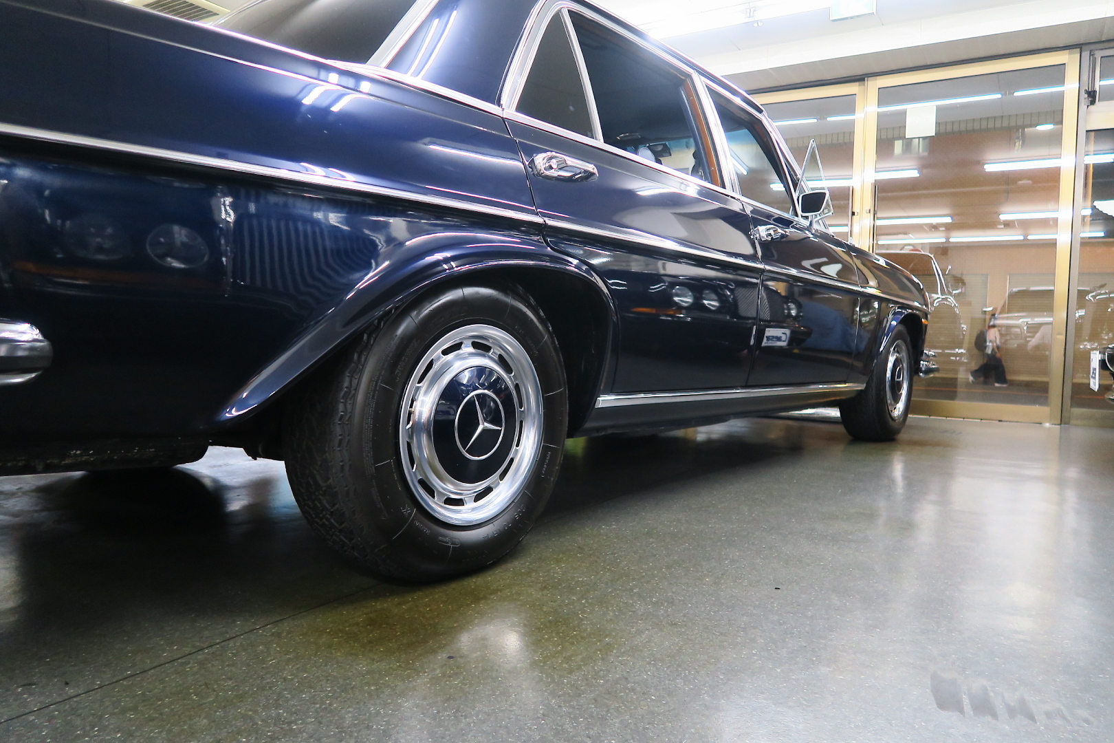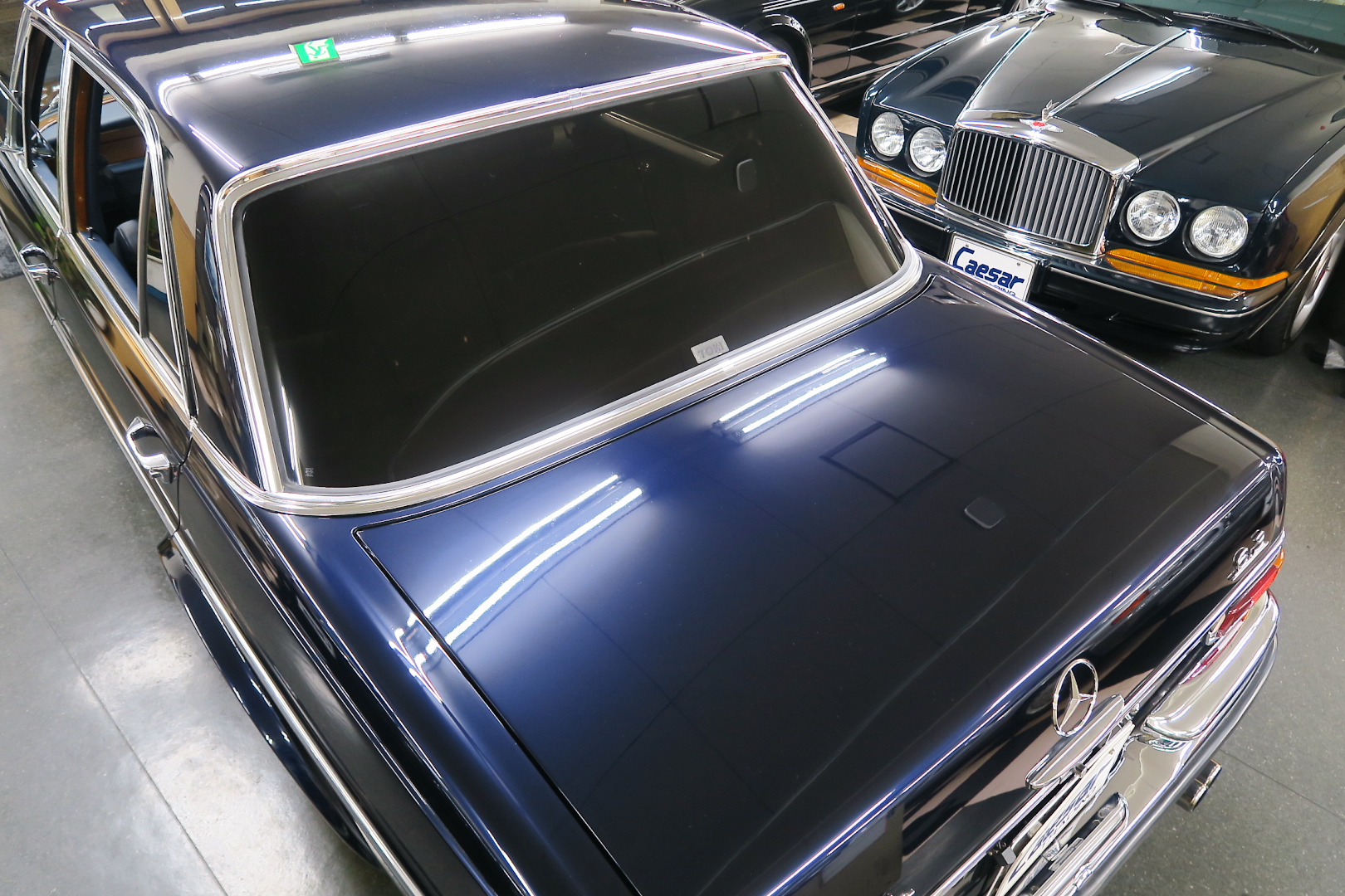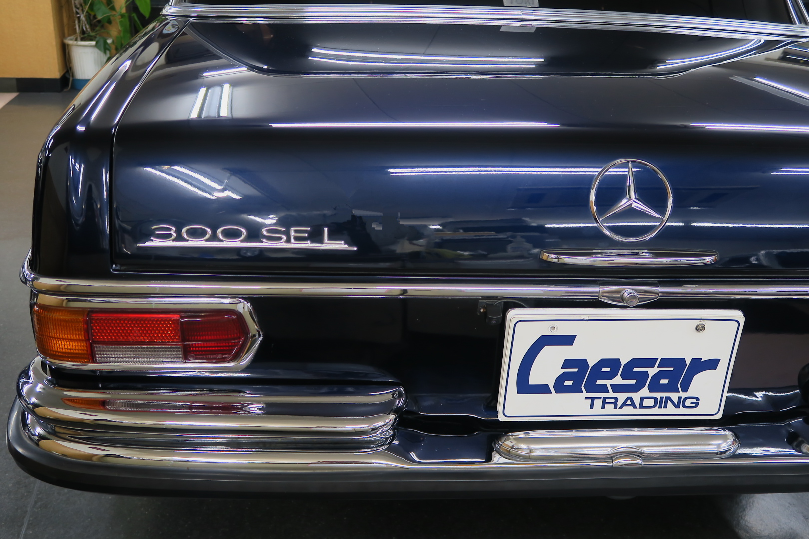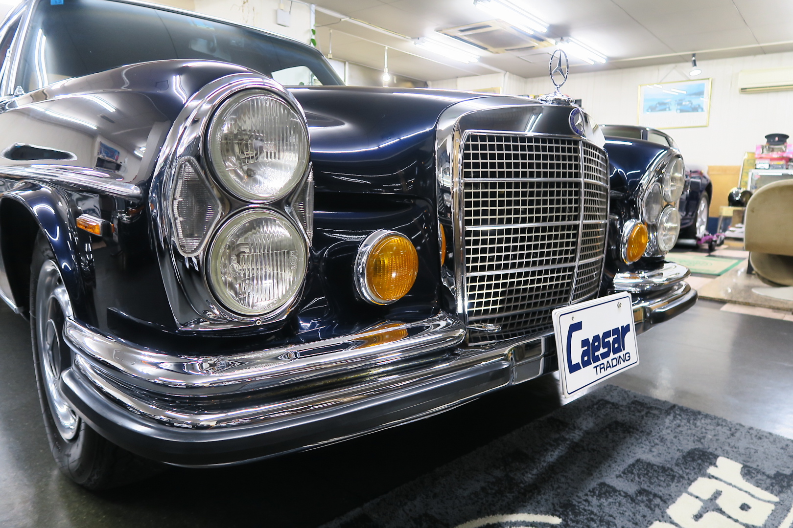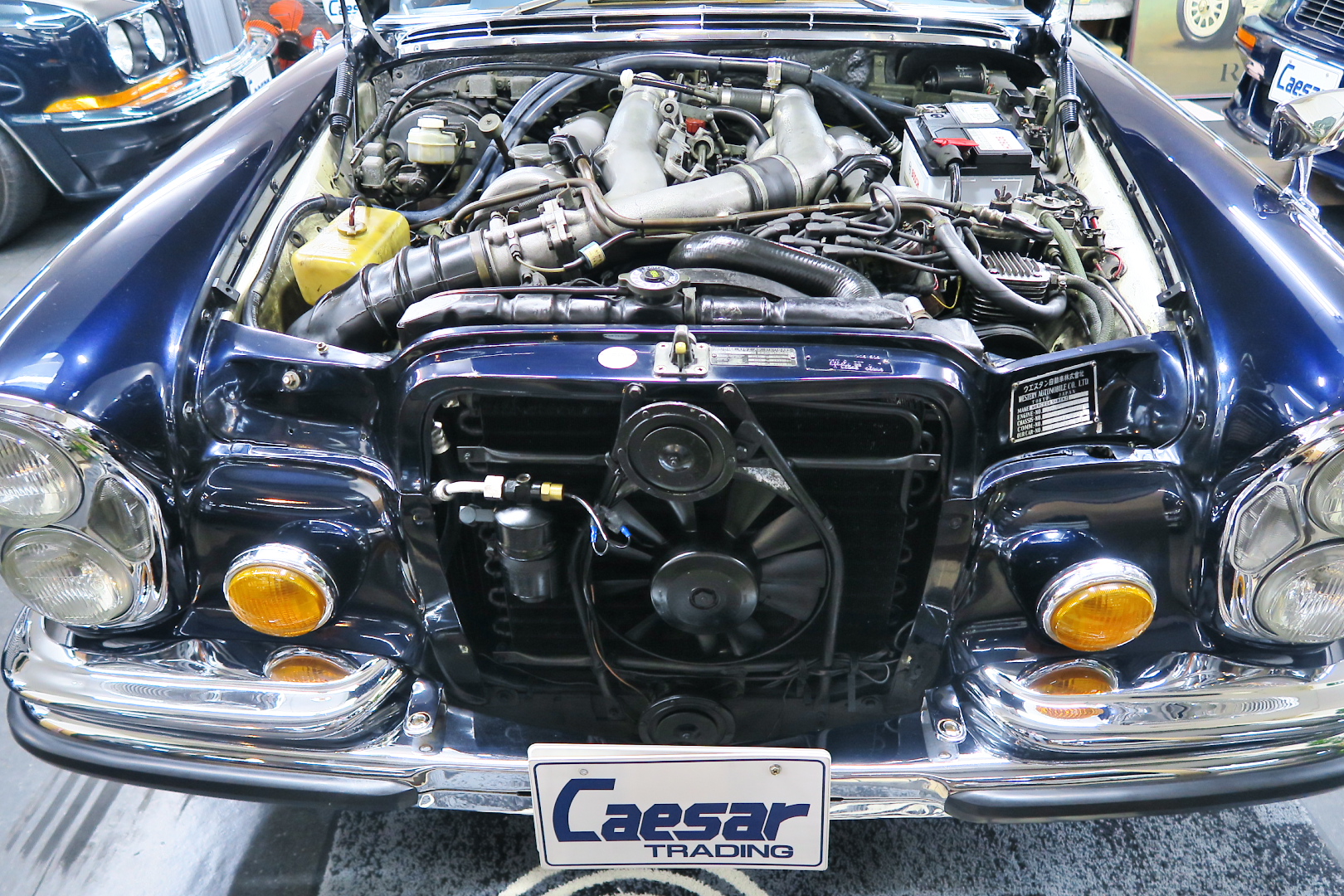 「300SEL 6.3」物語 1967年〜1972年の間に生産された「W109」タテ目の「300SEL」の 「6.3」である。 それも、ウエスタン自働車(ディーラー)物の「右ハンドル」 しかも、3オーナー、前オーナー様は、昭和59年から41年間も ご所有。 このモデルの生い立ちは、極めて興味深く、面白い。 こんな無茶なモデルがなぜに誕生したのか? ベースモデルは、1965年に発売されたばかりの最上級高級セダン「300SEL」 このモデルは、直列6気筒、3L、170馬力、 この頑丈なシャーシに目を付けたのが、エンジニアの「エーリッヒ・ヴァイクセンベル ロー」(文中:ベルローに短縮)。 1966年、「この300SELのシャーシなら、M600エンジンを積んだら面白そ〜 で、社内で こっそく時間を見つけて、載せ替え、完成させた車で、工場の敷地を 走り回った、、そして、その「音」でバレた、、 明らかに、聞くはずのない「音」、、工場責任者「ドルフ・ウーレンハウト」に見つか る。 彼はベルローに じっくり話を聞いたのち、試乗してみる。 結果、すぐに、開発へのGOサインを出す。 メーカー広報誌によれば、「書類にサインするとき、ウーレンハウトは、 ニヤリと笑ったはずだ、、」 なかなか 粋な会社である。 翌1967年、早くも市販モデル1台が完成。 正式モデル名: 「300SEL 6.3」 文字通り、「600リムジーネ」&「600プルマン」(1963年〜1981年)に積んだ 「M100」エンジン、V8、6.3L、250馬力、を移植。 これは、思った以上に販売不信だった「M100」の使い道を広げる意味もあった。 1968年から、正式に発売、1972年まで販売する。 生産台数: 「6526台」 この変態的怪物モデルは、想定外に 売れた。 ドイツ国内では、1839台しか売れていないが北米を中心とした海外で人気に火が付いた それは、現在でも同じ。 因みに、1967年は我が国でも、あの「トヨタ2000GT」が販売された年。 スペックを比較してみると: ・「300SEL 6.3」 最高速:「221km」 0−400m:「15.4秒」 ・「トヨタ2000GT」 : 「220km」 0−400m:「15.9秒」 ・「67’ ポルシェ911S」 :「225km」 0−400m:「15.8秒」 ・「70’ ハカスカGTR」 : 「200km」 0−400m:「16.0秒」 国内無敵の「2000GT」も、「6.3」に及ばず、ポルシェも「S」以外じゃ、太刀打ち できず、後年発売の「GTR」は、ぶっちぎられる、、まさに、スーパースポーツカー 、、「セダン」のくせに、、本物の「羊の皮をかぶった狼」! しかも、エアサスにレベルコントロール(車高自動調整)、AT、PW、パワステ、 クーラー付きで、乗心地も快適。「アウトバーンの覇者」。 では、当個体のお話: ウエスタン自働車(=ヤナセ=ディーラー)物、右ハンドル、3オーナー 前オーナー様は、昭和59年(1984年)より、2025年まで 41年間 ご所有。 聞けば分かる有名企業のオーナー様で、入手当初は、ヤナセ整備、できるメカニックが 引退したのちは、通常整備は、地元整備工場で、「6.3」ならではの整備は、例の神戸 の専門店様にて。この専門店さまで、2021年に大掛かりな整備、明細残る。 ・エアサス関係・レベリング関係・インジェクション関係・コンプレッサー・ウォータ ーポンプ関係・ブレーキ関係など、「6.3」における「キモ」整備が施されている。 しかも、長年のお付き合いの「正しすぎる一時預かり人」である、前オーナー様は、 弊社に持つ込むまえ、2025年8月、「シーザーさんに迷惑がかからないように」と、 前述の専門店様に入庫、点検依頼、「どこか不具合箇所があれば直しといて」 で、・ヒーターコア脱着・修理、プラグ交換、エンジンオイル交換、各グリスUP、 などなどが施された上で、当社入庫。 感謝・感激。 また、お次のオーナー様にとっても、相当な安心材料であろう。 お金持ち あるあるだが、記録簿とか なんですか それ である。 ただ、車検証上で分かるのは、 令和3年12月: 「77.200km」 令和5年12月: 「78.900km」 現在: 「79.200km」! さらに、当個体は、正しい整備だけでなく、内外装もレストアが施されている。 外装は: 「ダークブルー」メタリックに、全バラシ「オールペイント」済み。 *元色は、「パピルス・ホワイト」 (カラーVINで分かる) 塗装状態も素晴らしい◎。 「300SEL」の5mボディに良く似合うカラーで、重量感を感じる。 実際には、オリジナル「300SEL」の重量は、「1655kg」で、「6.3」は、 「1740kg」なので、85kgしか重くない(エンジンの重さの違い分)のが、、 なんだが、まったくオーラが異なるのは、、私の「6.3」への憧れ だからだけでは なさそうだ。 内装は: 「紺・本革」 「総張替え」 ・シート・ダッシュボード・天井内張り・カーペットに至るまで全て。 で、ほとんど乗らないものだから、今もバリビカ。 ただ、ウッド類は、オリジナルのまま なので、風情が残る。 ここが素のままなので、時代があう。 ・4速AT・パワーステアリング・パワーウインド・クーラー、快適な怪物マシン。 後付けで、・パナ「ゴリラ」ナビ(取り外し可)・「バックカメラ」連動・ETC・ 「前後ドラレコ」・「油圧メーター」 即戦力。 機関系: エンジンは、前述の通り、「M100」、当
