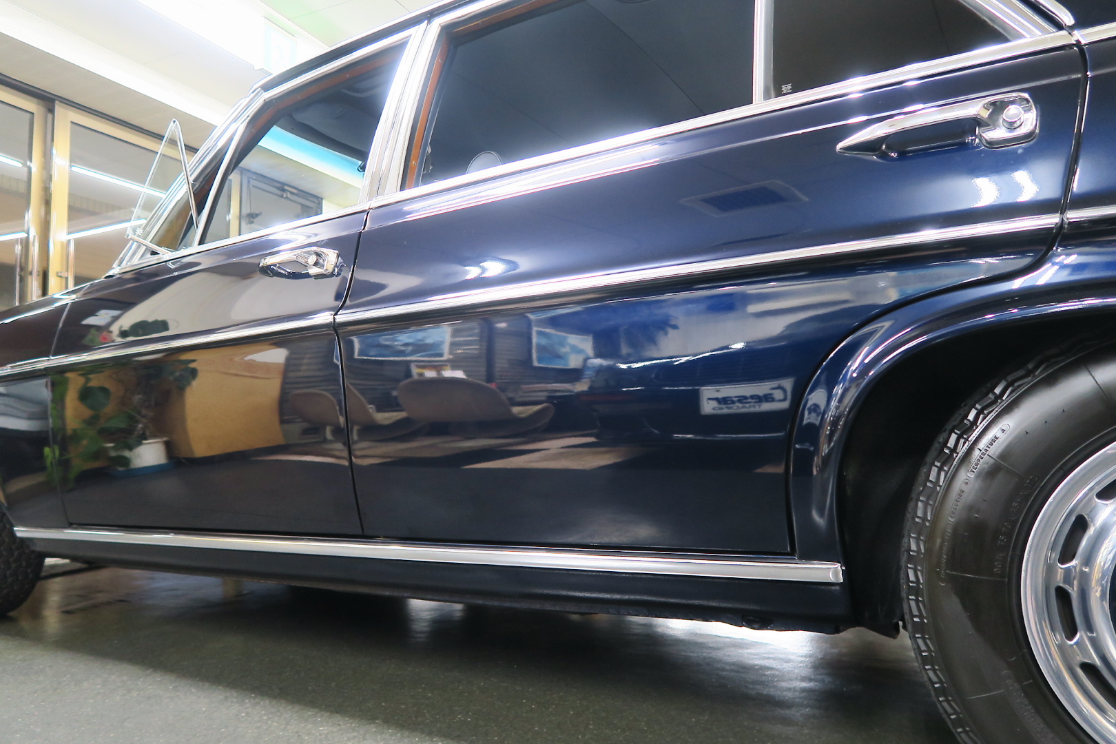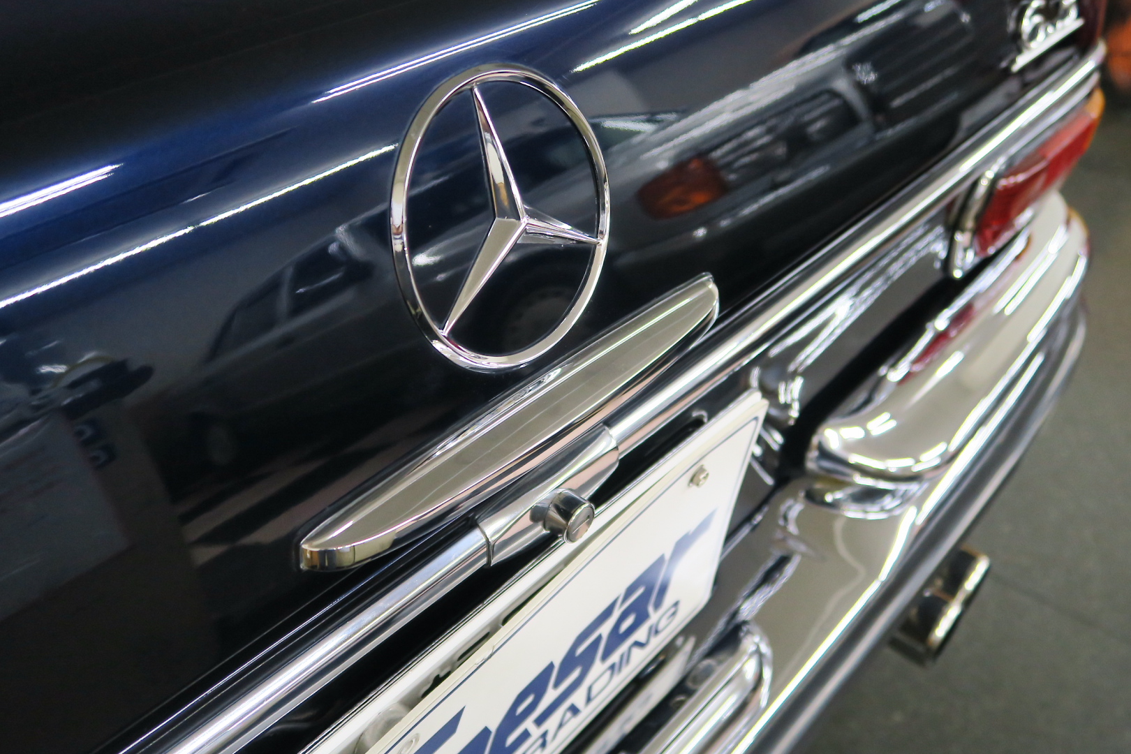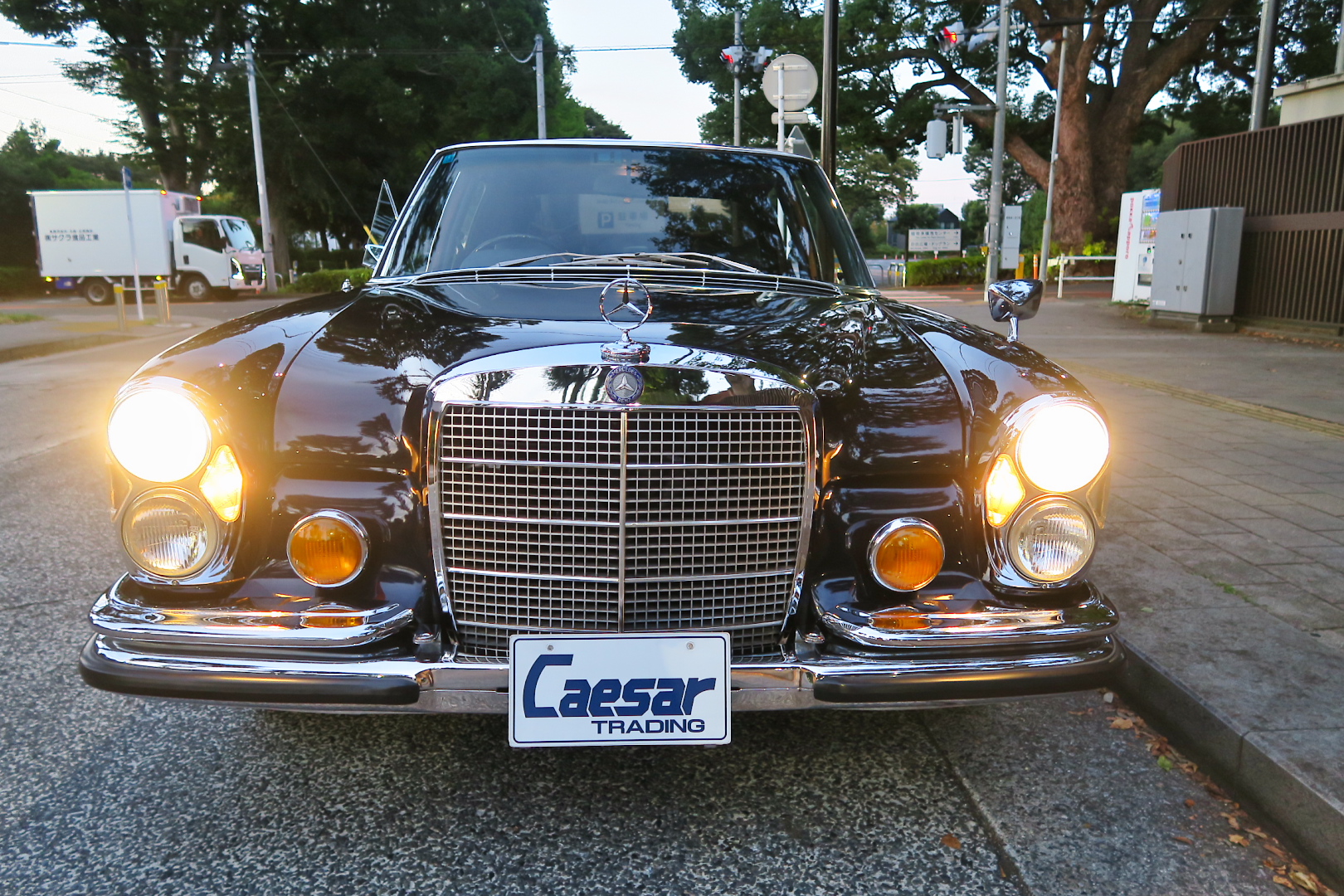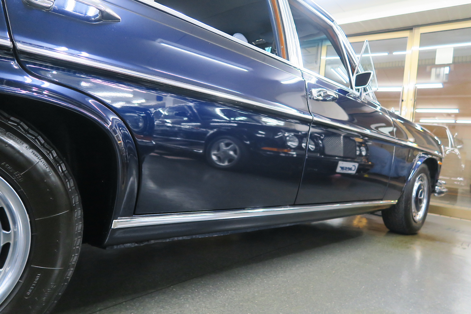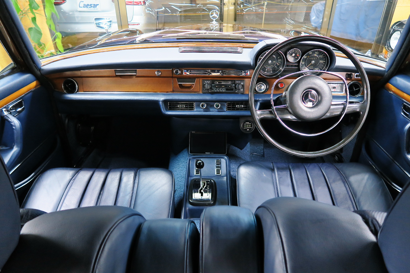「300SEL 6.3」物語 1967年〜1972年の間に生産された「W109」タテ目の「300SEL」の 「6.3」である。 それも、ウエスタン自働車(ディーラー)物の「右ハンドル」 しかも、3オーナー、前オーナー様は、昭和59年から41年間も ご所有。 このモデルの生い立ちは、極めて興味深く、面白い。 こんな無茶なモデルがなぜに誕生したのか? ベースモデルは、1965年に発売されたばかりの最上級高級セダン「300SEL」 このモデルは、直列6気筒、3L、170馬力、 この頑丈なシャーシに目を付けたのが、エンジニアの「エーリッヒ・ヴァイクセンベル ロー」(文中:ベルローに短縮)。 1966年、「この300SELのシャーシなら、M600エンジンを積んだら面白そ〜 で、社内で こっそく時間を見つけて、載せ替え、完成させた車で、工場の敷地を 走り回った、、そして、その「音」でバレた、、 明らかに、聞くはずのない「音」、、工場責任者「ドルフ・ウーレンハウト」に見つか る。 彼はベルローに じっくり話を聞いたのち、試乗してみる。 結果、すぐに、開発へのGOサインを出す。 メーカー広報誌によれば、「書類にサインするとき、ウーレンハウトは、 ニヤリと笑ったはずだ、、」 なかなか 粋な会社である。 翌1967年、早くも市販モデル1台が完成。 正式モデル名: 「300SEL 6.3」 文字通り、「600リムジーネ」&「600プルマン」(1963年〜1981年)に積んだ 「M100」エンジン、V8、6.3L、250馬力、を移植。 これは、思った以上に販売不信だった「M100」の使い道を広げる意味もあった。 1968年から、正式に発売、1972年まで販売する。 生産台数: 「6526台」 この変態的怪物モデルは、想定外に 売れた。 ドイツ国内では、1839台しか売れていないが北米を中心とした海外で人気に火が付いた それは、現在でも同じ。 因みに、1967年は我が国でも、あの「トヨタ2000GT」が販売された年。 スペックを比較してみると: ・「300SEL 6.3」 最高速:「221km」 0−400m:「15.4秒」 ・「トヨタ2000GT」 : 「220km」 0−400m:「15.9秒」 ・「67’ ポルシェ911S」 :「225km」 0−400m:「15.8秒」 ・「70’ ハカスカGTR」 : 「200km」 0−400m:「16.0秒」 国内無敵の「2000GT」も、「6.3」に及ばず、ポルシェも「S」以外じゃ、太刀打ち できず、後年発売の「GTR」は、ぶっちぎられる、、まさに、スーパースポーツカー 、、「セダン」のくせに、、本物の「羊の皮をかぶった狼」! しかも、エアサスにレベルコントロール(車高自動調整)、AT、PW、パワステ、 クーラー付きで、乗心地も快適。「アウトバーンの覇者」。 では、当個体のお話: ウエスタン自働車(=ヤナセ=ディーラー)物、右ハンドル、3オーナー 前オーナー様は、昭和59年(1984年)より、2025年まで 41年間 ご所有。 聞けば分かる有名企業のオーナー様で、入手当初は、ヤナセ整備、できるメカニックが 引退したのちは、通常整備は、地元整備工場で、「6.3」ならではの整備は、例の神戸 の専門店様にて。この専門店さまで、2021年に大掛かりな整備、明細残る。 ・エアサス関係・レベリング関係・インジェクション関係・コンプレッサー・ウォータ ーポンプ関係・ブレーキ関係など、「6.3」における「キモ」整備が施されている。 しかも、長年のお付き合いの「正しすぎる一時預かり人」である、前オーナー様は、 弊社に持つ込むまえ、2025年8月、「シーザーさんに迷惑がかからないように」と、 前述の専門店様に入庫、点検依頼、「どこか不具合箇所があれば直しといて」 で、・ヒーターコア脱着・修理、プラグ交換、エンジンオイル交換、各グリスUP、 などなどが施された上で、当社入庫。 感謝・感激。 また、お次のオーナー様にとっても、相当な安心材料であろう。 お金持ち あるあるだが、記録簿とか なんですか それ である。 ただ、車検証上で分かるのは、 令和3年12月: 「77.200km」 令和5年12月: 「78.900km」 現在: 「79.200km」! さらに、当個体は、正しい整備だけでなく、内外装もレストアが施されている。 外装は: 「ダークブルー」メタリックに、全バラシ「オールペイント」済み。 *元色は、「パピルス・ホワイト」 (カラーVINで分かる) 塗装状態も素晴らしい◎。 「300SEL」の5mボディに良く似合うカラーで、重量感を感じる。 実際には、オリジナル「300SEL」の重量は、「1655kg」で、「6.3」は、 「1740kg」なので、85kgしか重くない(エンジンの重さの違い分)のが、、 なんだが、まったくオーラが異なるのは、、私の「6.3」への憧れ だからだけでは なさそうだ。 内装は: 「紺・本革」 「総張替え」 ・シート・ダッシュボード・天井内張り・カーペットに至るまで全て。 で、ほとんど乗らないものだから、今もバリビカ。 ただ、ウッド類は、オリジナルのまま なので、風情が残る。 ここが素のままなので、時代があう。 ・4速AT・パワーステアリング・パワーウインド・クーラー、快適な怪物マシン。 後付けで、・パナ「ゴリラ」ナビ(取り外し可)・「バックカメラ」連動・ETC・ 「前後ドラレコ」・「油圧メーター」 即戦力。 機関系: エンジンは、前述の通り、「M100」、当