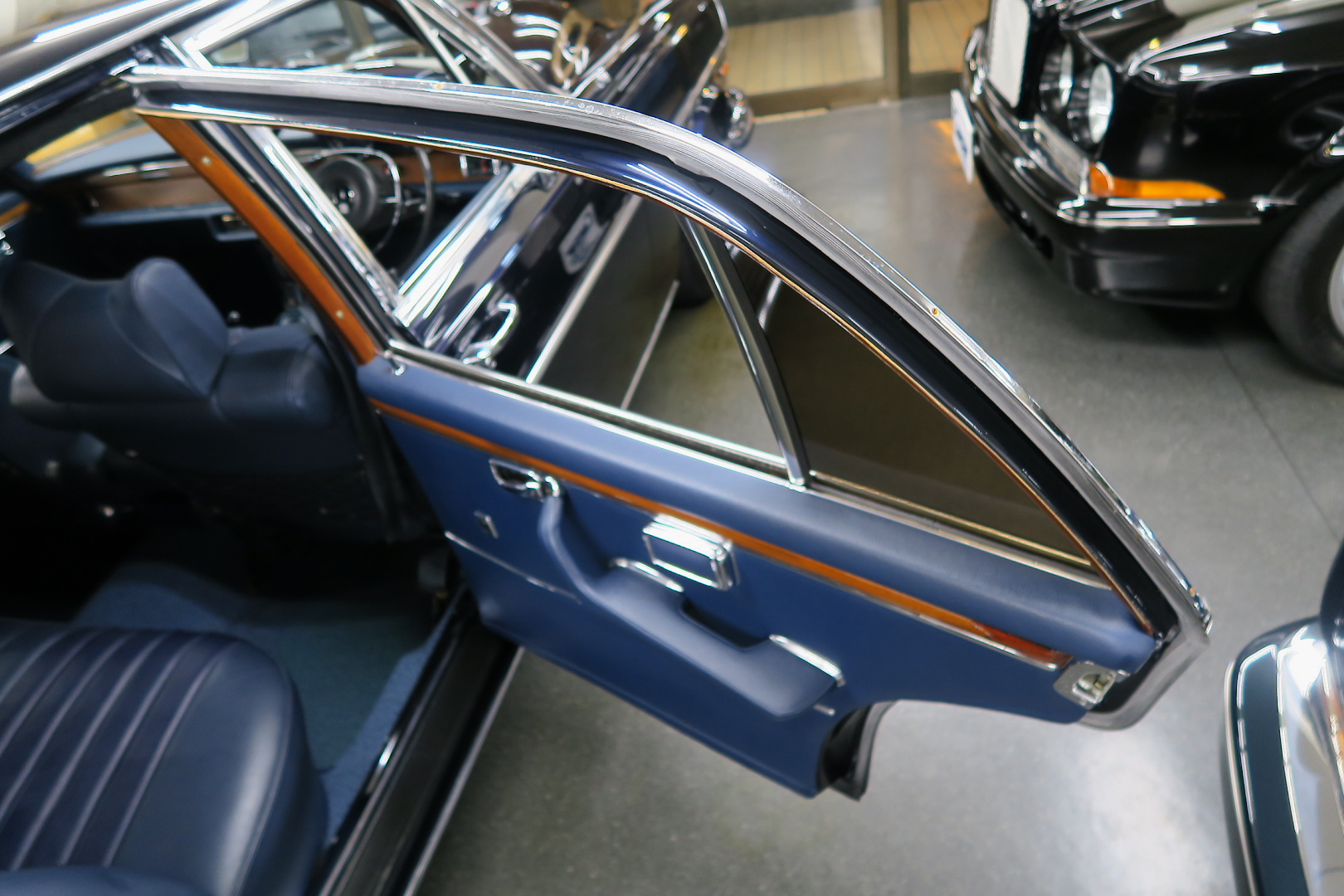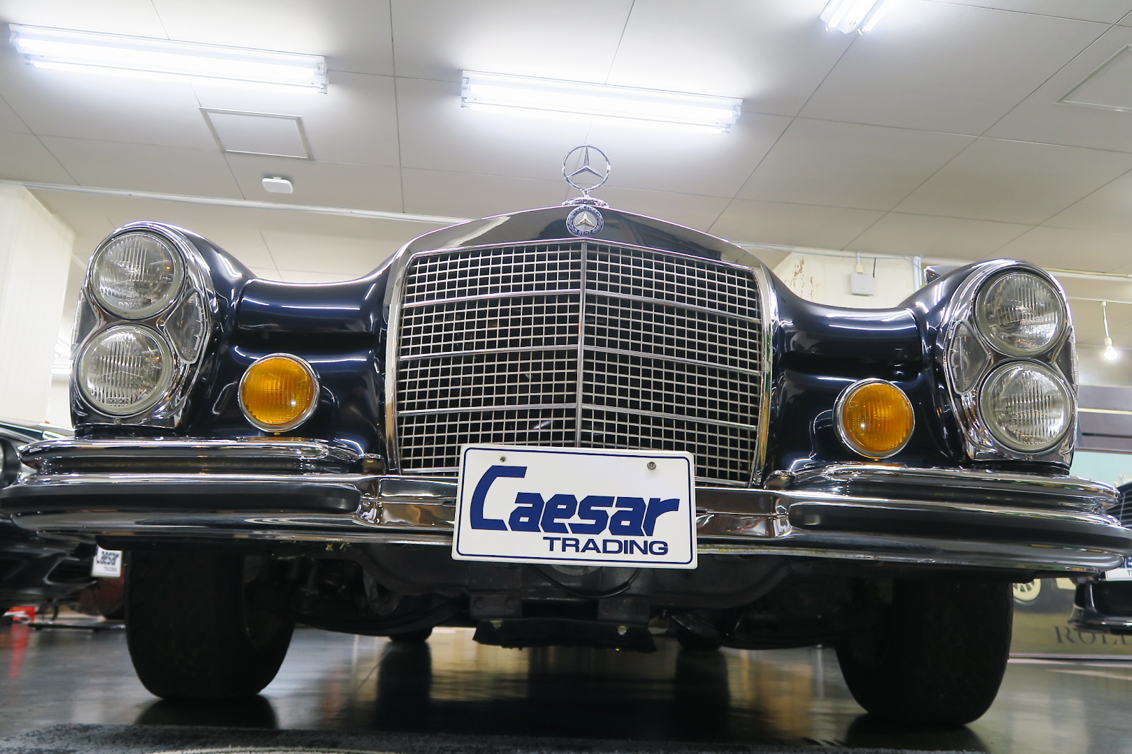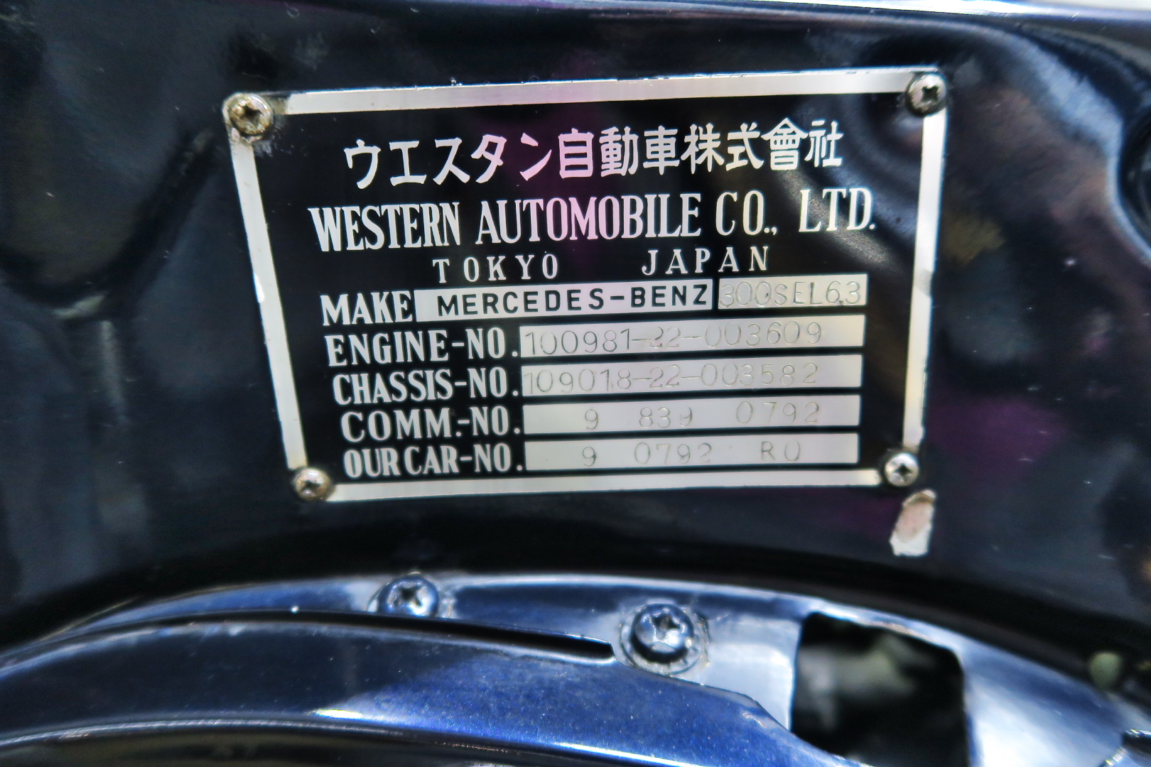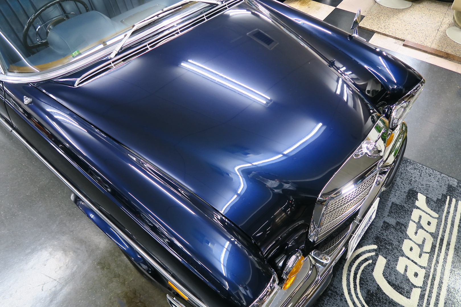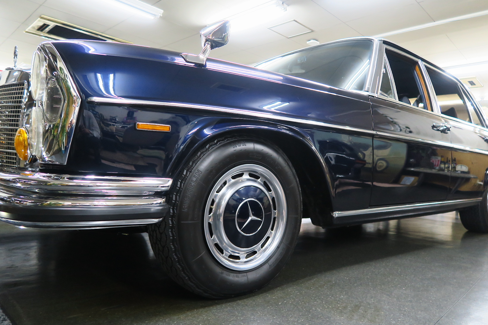 「300SEL 6.3」物語 1967年〜1972年の間に生産された「W109」タテ目の「300SEL」の 「6.3」である。 それも、ウエスタン自働車(ディーラー)物の「右ハンドル」 しかも、3オーナー、前オーナー様は、昭和59年から41年間も ご所有。 このモデルの生い立ちは、極めて興味深く、面白い。 こんな無茶なモデルがなぜに誕生したのか? ベースモデルは、1965年に発売されたばかりの最上級高級セダン「300SEL」 このモデルは、直列6気筒、3L、170馬力、 この頑丈なシャーシに目を付けたのが、エンジニアの「エーリッヒ・ヴァイクセンベル ロー」(文中:ベルローに短縮)。 1966年、「この300SELのシャーシなら、M600エンジンを積んだら面白そ〜 で、社内で こっそく時間を見つけて、載せ替え、完成させた車で、工場の敷地を 走り回った、、そして、その「音」でバレた、、 明らかに、聞くはずのない「音」、、工場責任者「ドルフ・ウーレンハウト」に見つか る。 彼はベルローに じっくり話を聞いたのち、試乗してみる。 結果、すぐに、開発へのGOサインを出す。 メーカー広報誌によれば、「書類にサインするとき、ウーレンハウトは、 ニヤリと笑ったはずだ、、」 なかなか 粋な会社である。 翌1967年、早くも市販モデル1台が完成。 正式モデル名: 「300SEL 6.3」 文字通り、「600リムジーネ」&「600プルマン」(1963年〜1981年)に積んだ 「M100」エンジン、V8、6.3L、250馬力、を移植。 これは、思った以上に販売不信だった「M100」の使い道を広げる意味もあった。 1968年から、正式に発売、1972年まで販売する。 生産台数: 「6526台」 この変態的怪物モデルは、想定外に 売れた。 ドイツ国内では、1839台しか売れていないが北米を中心とした海外で人気に火が付いた それは、現在でも同じ。 因みに、1967年は我が国でも、あの「トヨタ2000GT」が販売された年。 スペックを比較してみると: ・「300SEL 6.3」 最高速:「221km」 0−400m:「15.4秒」 ・「トヨタ2000GT」 : 「220km」 0−400m:「15.9秒」 ・「67’ ポルシェ911S」 :「225km」 0−400m:「15.8秒」 ・「70’ ハカスカGTR」 : 「200km」 0−400m:「16.0秒」 国内無敵の「2000GT」も、「6.3」に及ばず、ポルシェも「S」以外じゃ、太刀打ち できず、後年発売の「GTR」は、ぶっちぎられる、、まさに、スーパースポーツカー 、、「セダン」のくせに、、本物の「羊の皮をかぶった狼」! しかも、エアサスにレベルコントロール(車高自動調整)、AT、PW、パワステ、 クーラー付きで、乗心地も快適。「アウトバーンの覇者」。 では、当個体のお話: ウエスタン自働車(=ヤナセ=ディーラー)物、右ハンドル、3オーナー 前オーナー様は、昭和59年(1984年)より、2025年まで 41年間 ご所有。 聞けば分かる有名企業のオーナー様で、入手当初は、ヤナセ整備、できるメカニックが 引退したのちは、通常整備は、地元整備工場で、「6.3」ならではの整備は、例の神戸 の専門店様にて。この専門店さまで、2021年に大掛かりな整備、明細残る。 ・エアサス関係・レベリング関係・インジェクション関係・コンプレッサー・ウォータ ーポンプ関係・ブレーキ関係など、「6.3」における「キモ」整備が施されている。 しかも、長年のお付き合いの「正しすぎる一時預かり人」である、前オーナー様は、 弊社に持つ込むまえ、2025年8月、「シーザーさんに迷惑がかからないように」と、 前述の専門店様に入庫、点検依頼、「どこか不具合箇所があれば直しといて」 で、・ヒーターコア脱着・修理、プラグ交換、エンジンオイル交換、各グリスUP、 などなどが施された上で、当社入庫。 感謝・感激。 また、お次のオーナー様にとっても、相当な安心材料であろう。 お金持ち あるあるだが、記録簿とか なんですか それ である。 ただ、車検証上で分かるのは、 令和3年12月: 「77.200km」 令和5年12月: 「78.900km」 現在: 「79.200km」! さらに、当個体は、正しい整備だけでなく、内外装もレストアが施されている。 外装は: 「ダークブルー」メタリックに、全バラシ「オールペイント」済み。 *元色は、「パピルス・ホワイト」 (カラーVINで分かる) 塗装状態も素晴らしい◎。 「300SEL」の5mボディに良く似合うカラーで、重量感を感じる。 実際には、オリジナル「300SEL」の重量は、「1655kg」で、「6.3」は、 「1740kg」なので、85kgしか重くない(エンジンの重さの違い分)のが、、 なんだが、まったくオーラが異なるのは、、私の「6.3」への憧れ だからだけでは なさそうだ。 内装は: 「紺・本革」 「総張替え」 ・シート・ダッシュボード・天井内張り・カーペットに至るまで全て。 で、ほとんど乗らないものだから、今もバリビカ。 ただ、ウッド類は、オリジナルのまま なので、風情が残る。 ここが素のままなので、時代があう。 ・4速AT・パワーステアリング・パワーウインド・クーラー、快適な怪物マシン。 後付けで、・パナ「ゴリラ」ナビ(取り外し可)・「バックカメラ」連動・ETC・ 「前後ドラレコ」・「油圧メーター」 即戦力。 機関系: エンジンは、前述の通り、「M100」、当