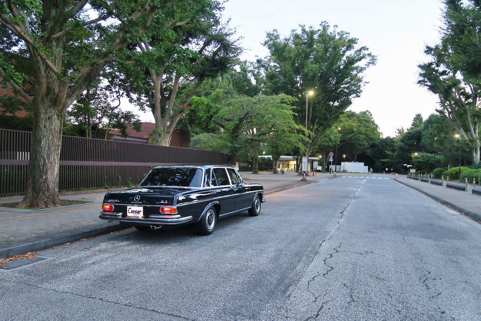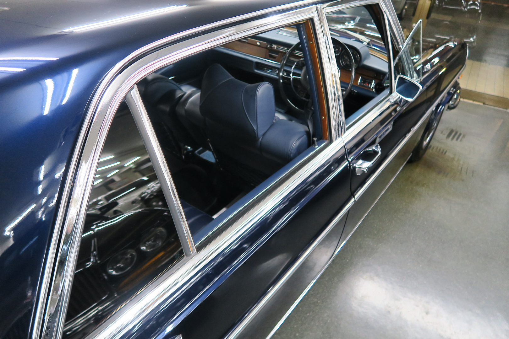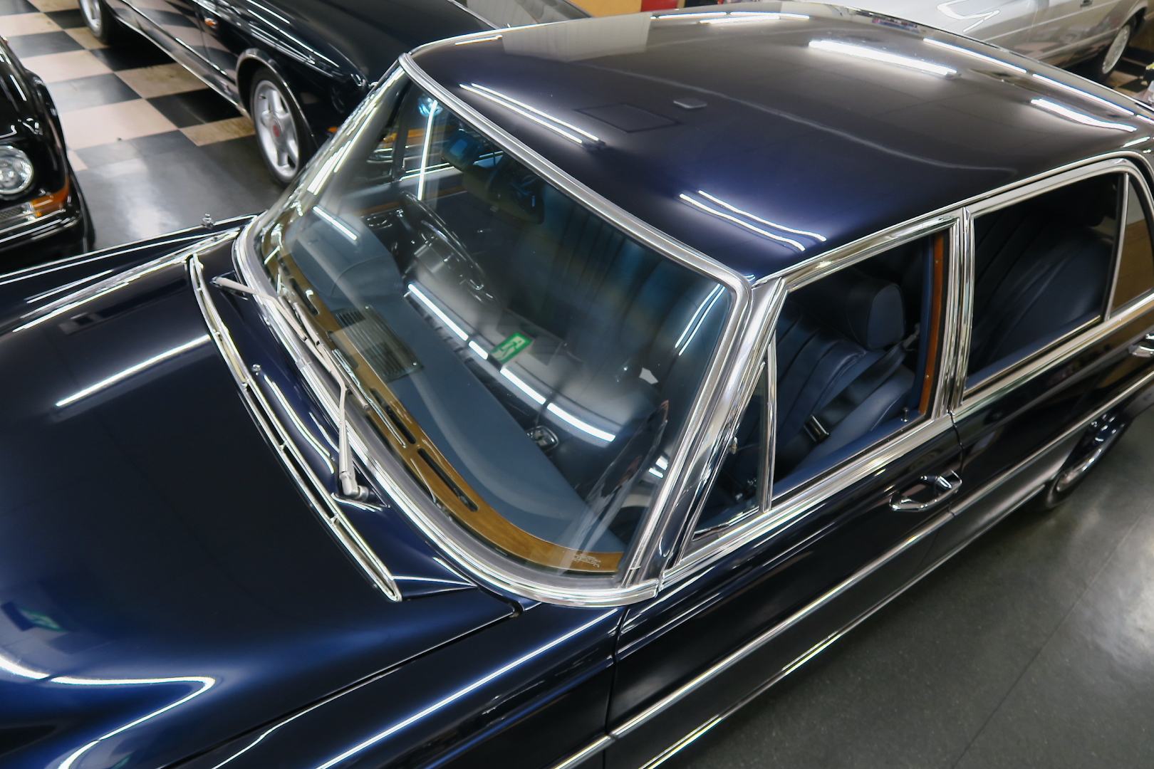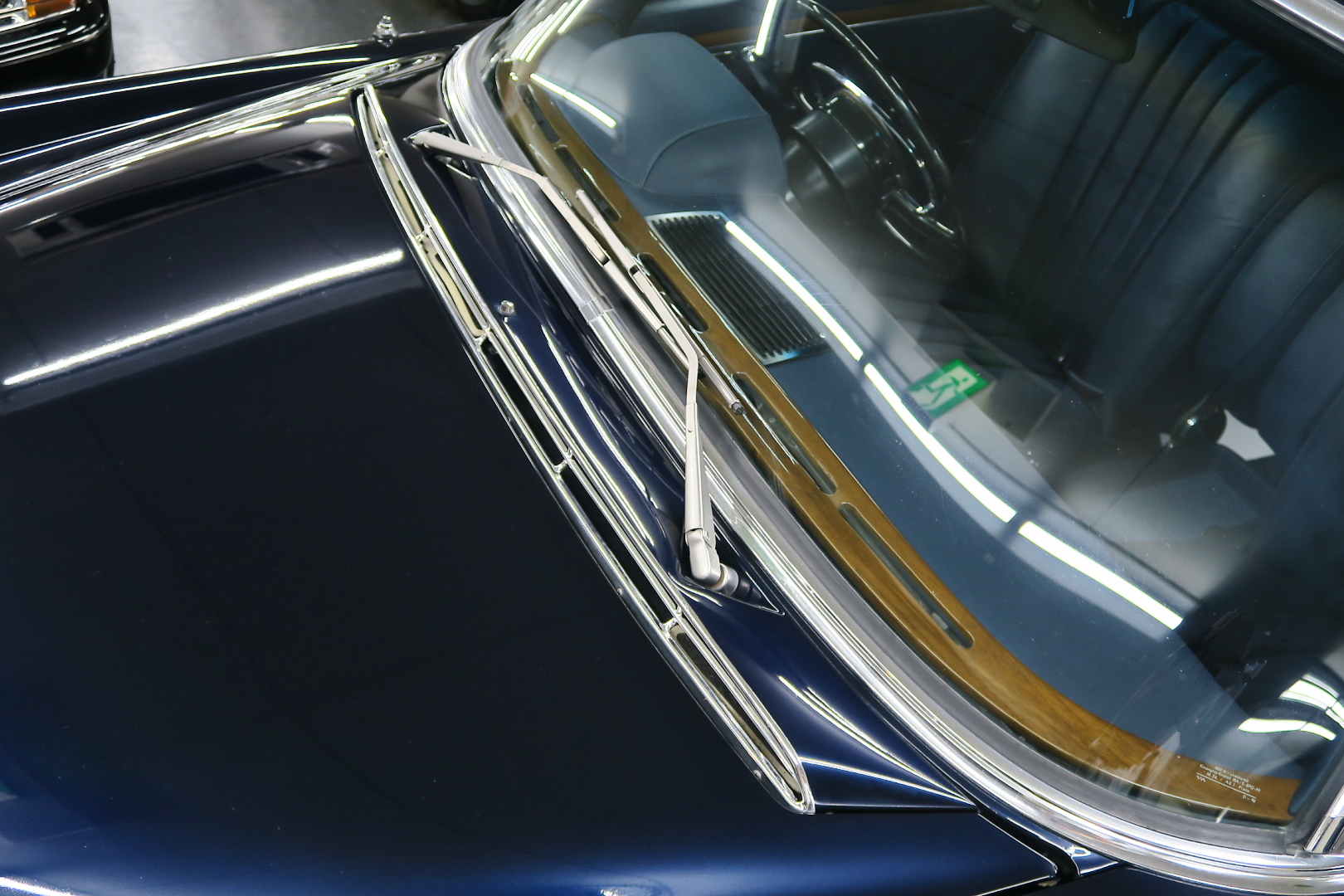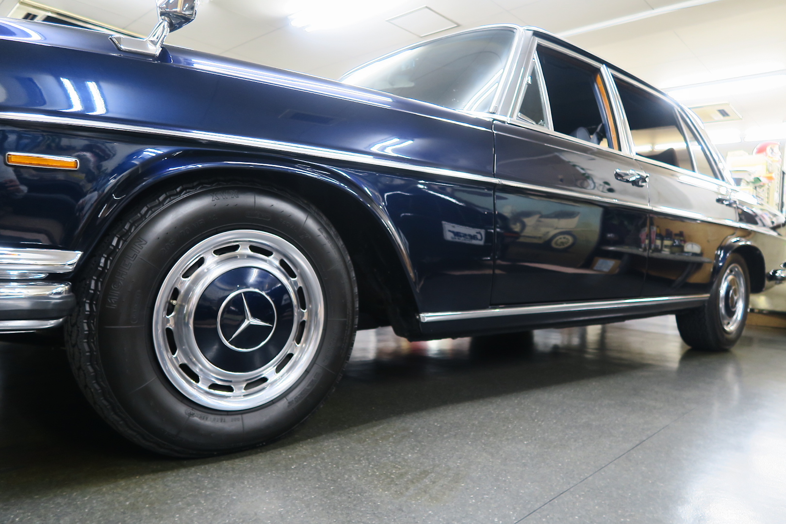 「300SEL 6.3」物語 1967年〜1972年の間に生産された「W109」タテ目の「300SEL」の 「6.3」である。 それも、ウエスタン自働車(ディーラー)物の「右ハンドル」 しかも、3オーナー、前オーナー様は、昭和59年から41年間も ご所有。 このモデルの生い立ちは、極めて興味深く、面白い。 こんな無茶なモデルがなぜに誕生したのか? ベースモデルは、1965年に発売されたばかりの最上級高級セダン「300SEL」 このモデルは、直列6気筒、3L、170馬力、 この頑丈なシャーシに目を付けたのが、エンジニアの「エーリッヒ・ヴァイクセンベル ロー」(文中:ベルローに短縮)。 1966年、「この300SELのシャーシなら、M600エンジンを積んだら面白そ〜 で、社内で こっそく時間を見つけて、載せ替え、完成させた車で、工場の敷地を 走り回った、、そして、その「音」でバレた、、 明らかに、聞くはずのない「音」、、工場責任者「ドルフ・ウーレンハウト」に見つか る。 彼はベルローに じっくり話を聞いたのち、試乗してみる。 結果、すぐに、開発へのGOサインを出す。 メーカー広報誌によれば、「書類にサインするとき、ウーレンハウトは、 ニヤリと笑ったはずだ、、」 なかなか 粋な会社である。 翌1967年、早くも市販モデル1台が完成。 正式モデル名: 「300SEL 6.3」 文字通り、「600リムジーネ」&「600プルマン」(1963年〜1981年)に積んだ 「M100」エンジン、V8、6.3L、250馬力、を移植。 これは、思った以上に販売不信だった「M100」の使い道を広げる意味もあった。 1968年から、正式に発売、1972年まで販売する。 生産台数: 「6526台」 この変態的怪物モデルは、想定外に 売れた。 ドイツ国内では、1839台しか売れていないが北米を中心とした海外で人気に火が付いた それは、現在でも同じ。 因みに、1967年は我が国でも、あの「トヨタ2000GT」が販売された年。 スペックを比較してみると: ・「300SEL 6.3」 最高速:「221km」 0−400m:「15.4秒」 ・「トヨタ2000GT」 : 「220km」 0−400m:「15.9秒」 ・「67’ ポルシェ911S」 :「225km」 0−400m:「15.8秒」 ・「70’ ハカスカGTR」 : 「200km」 0−400m:「16.0秒」 国内無敵の「2000GT」も、「6.3」に及ばず、ポルシェも「S」以外じゃ、太刀打ち できず、後年発売の「GTR」は、ぶっちぎられる、、まさに、スーパースポーツカー 、、「セダン」のくせに、、本物の「羊の皮をかぶった狼」! しかも、エアサスにレベルコントロール(車高自動調整)、AT、PW、パワステ、 クーラー付きで、乗心地も快適。「アウトバーンの覇者」。 では、当個体のお話: ウエスタン自働車(=ヤナセ=ディーラー)物、右ハンドル、3オーナー 前オーナー様は、昭和59年(1984年)より、2025年まで 41年間 ご所有。 聞けば分かる有名企業のオーナー様で、入手当初は、ヤナセ整備、できるメカニックが 引退したのちは、通常整備は、地元整備工場で、「6.3」ならではの整備は、例の神戸 の専門店様にて。この専門店さまで、2021年に大掛かりな整備、明細残る。 ・エアサス関係・レベリング関係・インジェクション関係・コンプレッサー・ウォータ ーポンプ関係・ブレーキ関係など、「6.3」における「キモ」整備が施されている。 しかも、長年のお付き合いの「正しすぎる一時預かり人」である、前オーナー様は、 弊社に持つ込むまえ、2025年8月、「シーザーさんに迷惑がかからないように」と、 前述の専門店様に入庫、点検依頼、「どこか不具合箇所があれば直しといて」 で、・ヒーターコア脱着・修理、プラグ交換、エンジンオイル交換、各グリスUP、 などなどが施された上で、当社入庫。 感謝・感激。 また、お次のオーナー様にとっても、相当な安心材料であろう。 お金持ち あるあるだが、記録簿とか なんですか それ である。 ただ、車検証上で分かるのは、 令和3年12月: 「77.200km」 令和5年12月: 「78.900km」 現在: 「79.200km」! さらに、当個体は、正しい整備だけでなく、内外装もレストアが施されている。 外装は: 「ダークブルー」メタリックに、全バラシ「オールペイント」済み。 *元色は、「パピルス・ホワイト」 (カラーVINで分かる) 塗装状態も素晴らしい◎。 「300SEL」の5mボディに良く似合うカラーで、重量感を感じる。 実際には、オリジナル「300SEL」の重量は、「1655kg」で、「6.3」は、 「1740kg」なので、85kgしか重くない(エンジンの重さの違い分)のが、、 なんだが、まったくオーラが異なるのは、、私の「6.3」への憧れ だからだけでは なさそうだ。 内装は: 「紺・本革」 「総張替え」 ・シート・ダッシュボード・天井内張り・カーペットに至るまで全て。 で、ほとんど乗らないものだから、今もバリビカ。 ただ、ウッド類は、オリジナルのまま なので、風情が残る。 ここが素のままなので、時代があう。 ・4速AT・パワーステアリング・パワーウインド・クーラー、快適な怪物マシン。 後付けで、・パナ「ゴリラ」ナビ(取り外し可)・「バックカメラ」連動・ETC・ 「前後ドラレコ」・「油圧メーター」 即戦力。 機関系: エンジンは、前述の通り、「M100」、当