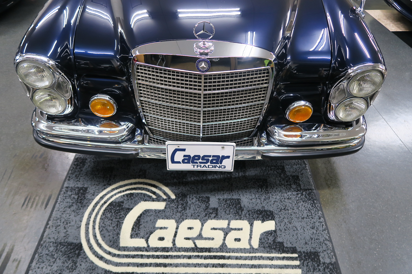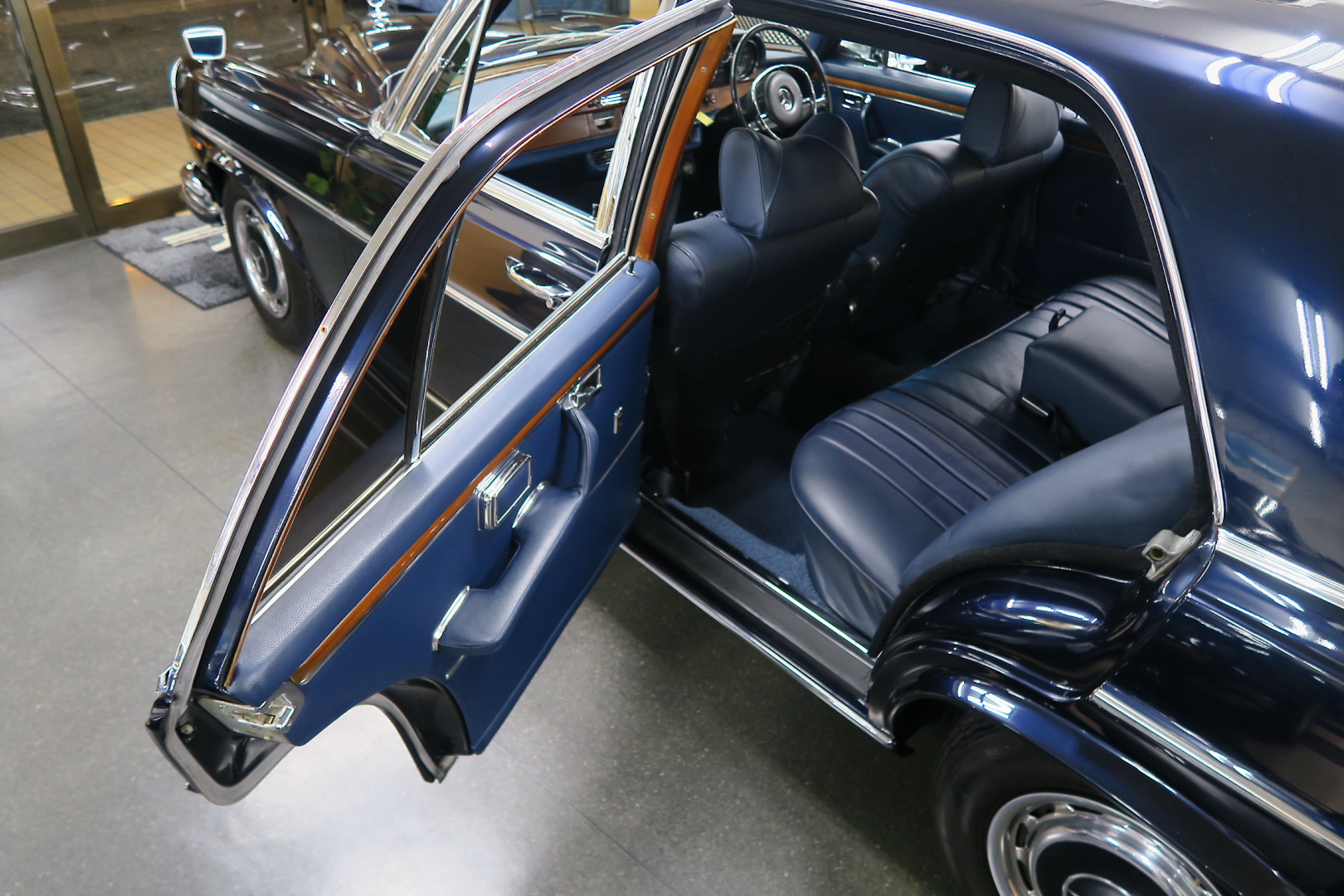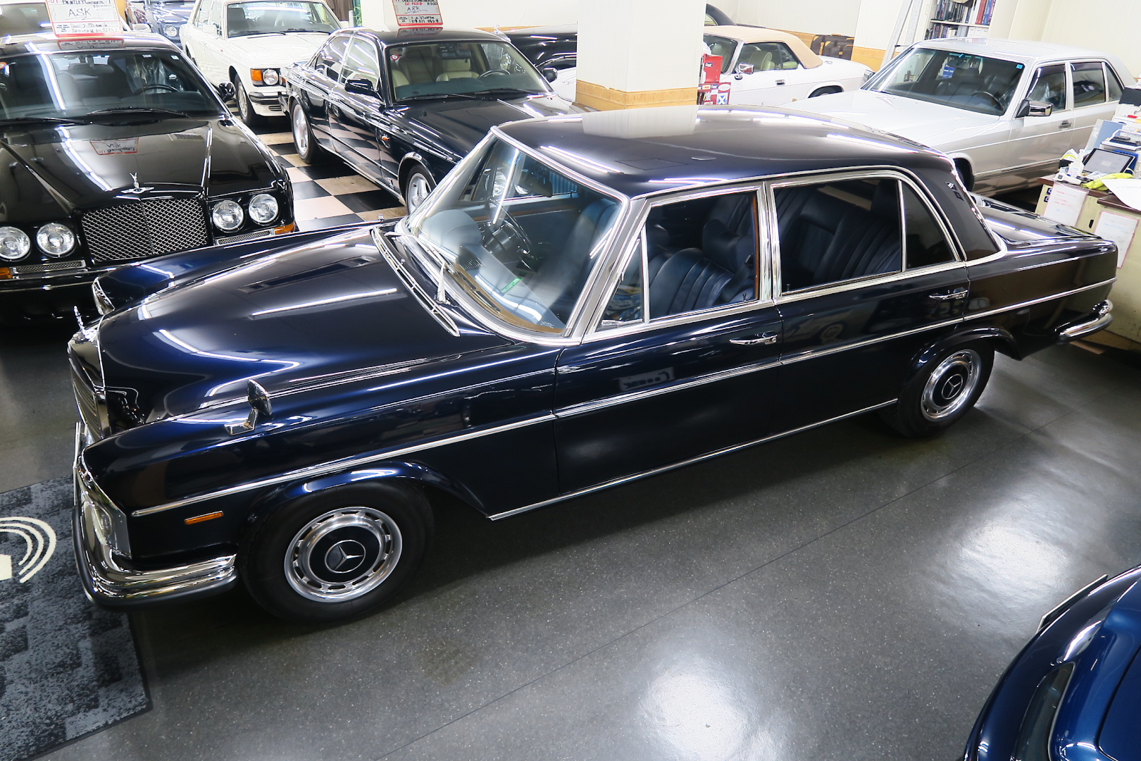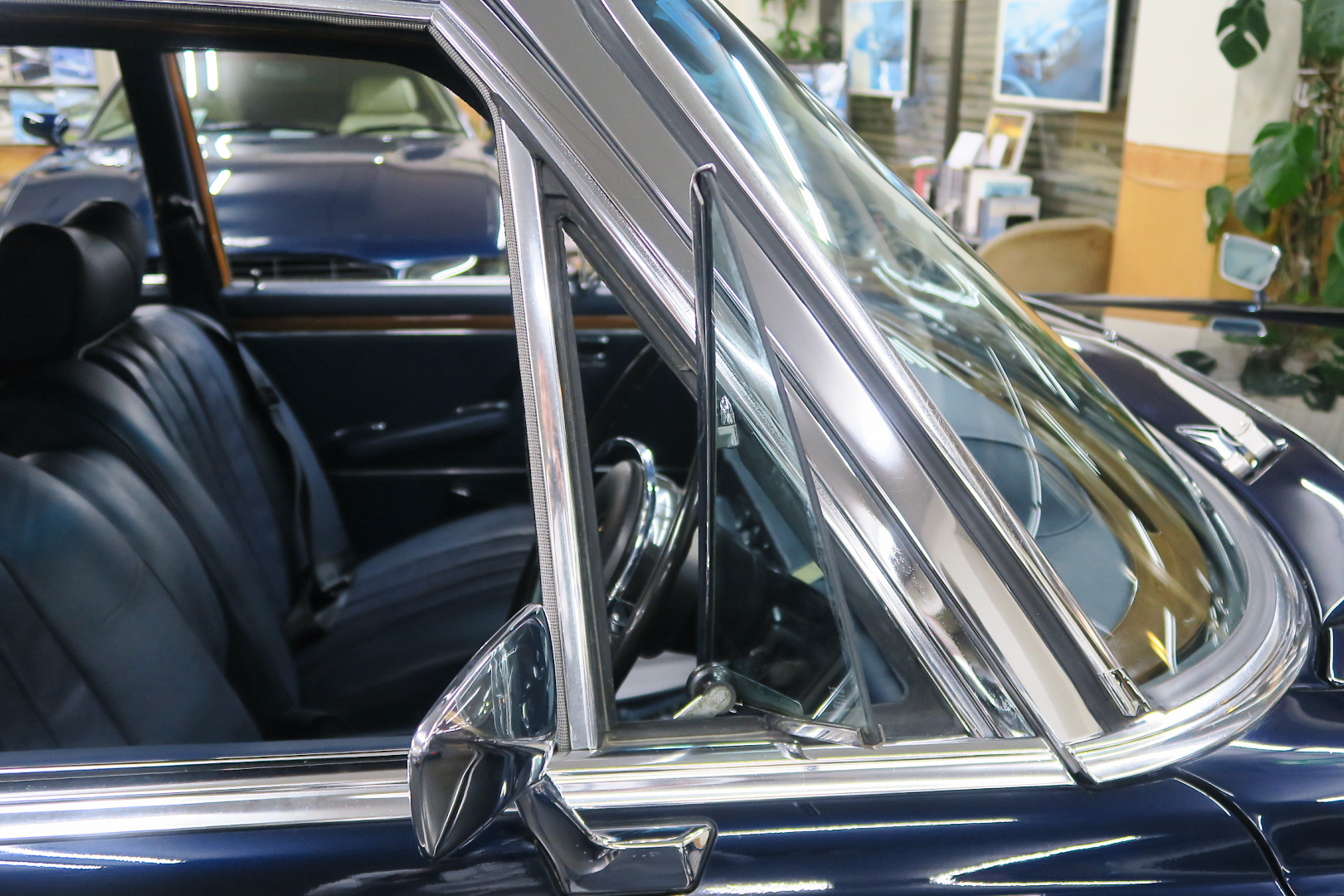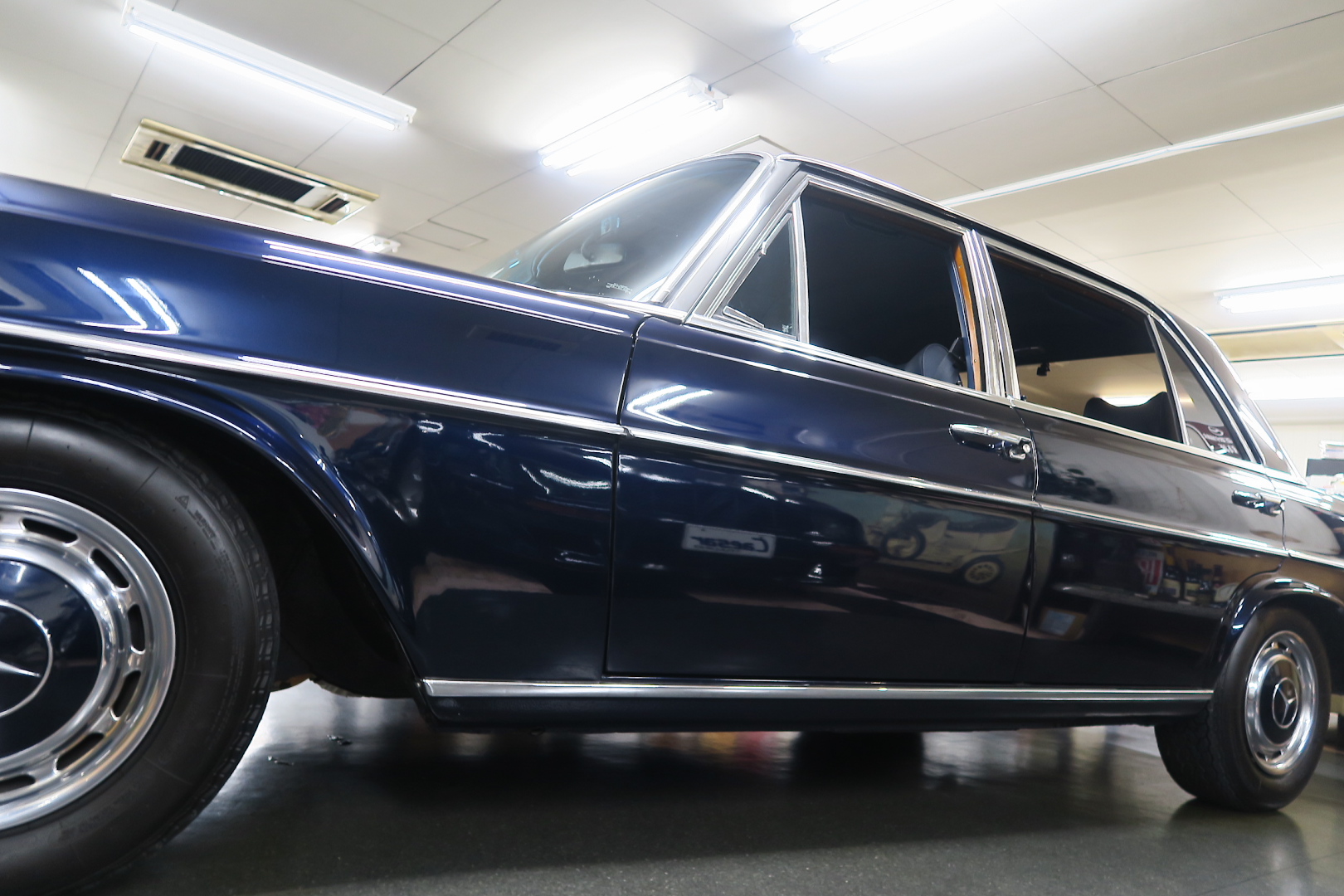 「300SEL 6.3」物語 1967年〜1972年の間に生産された「W109」タテ目の「300SEL」の 「6.3」である。 それも、ウエスタン自働車(ディーラー)物の「右ハンドル」 しかも、3オーナー、前オーナー様は、昭和59年から41年間も ご所有。 このモデルの生い立ちは、極めて興味深く、面白い。 こんな無茶なモデルがなぜに誕生したのか? ベースモデルは、1965年に発売されたばかりの最上級高級セダン「300SEL」 このモデルは、直列6気筒、3L、170馬力、 この頑丈なシャーシに目を付けたのが、エンジニアの「エーリッヒ・ヴァイクセンベル ロー」(文中:ベルローに短縮)。 1966年、「この300SELのシャーシなら、M600エンジンを積んだら面白そ〜 で、社内で こっそく時間を見つけて、載せ替え、完成させた車で、工場の敷地を 走り回った、、そして、その「音」でバレた、、 明らかに、聞くはずのない「音」、、工場責任者「ドルフ・ウーレンハウト」に見つか る。 彼はベルローに じっくり話を聞いたのち、試乗してみる。 結果、すぐに、開発へのGOサインを出す。 メーカー広報誌によれば、「書類にサインするとき、ウーレンハウトは、 ニヤリと笑ったはずだ、、」 なかなか 粋な会社である。 翌1967年、早くも市販モデル1台が完成。 正式モデル名: 「300SEL 6.3」 文字通り、「600リムジーネ」&「600プルマン」(1963年〜1981年)に積んだ 「M100」エンジン、V8、6.3L、250馬力、を移植。 これは、思った以上に販売不信だった「M100」の使い道を広げる意味もあった。 1968年から、正式に発売、1972年まで販売する。 生産台数: 「6526台」 この変態的怪物モデルは、想定外に 売れた。 ドイツ国内では、1839台しか売れていないが北米を中心とした海外で人気に火が付いた それは、現在でも同じ。 因みに、1967年は我が国でも、あの「トヨタ2000GT」が販売された年。 スペックを比較してみると: ・「300SEL 6.3」 最高速:「221km」 0−400m:「15.4秒」 ・「トヨタ2000GT」 : 「220km」 0−400m:「15.9秒」 ・「67’ ポルシェ911S」 :「225km」 0−400m:「15.8秒」 ・「70’ ハカスカGTR」 : 「200km」 0−400m:「16.0秒」 国内無敵の「2000GT」も、「6.3」に及ばず、ポルシェも「S」以外じゃ、太刀打ち できず、後年発売の「GTR」は、ぶっちぎられる、、まさに、スーパースポーツカー 、、「セダン」のくせに、、本物の「羊の皮をかぶった狼」! しかも、エアサスにレベルコントロール(車高自動調整)、AT、PW、パワステ、 クーラー付きで、乗心地も快適。「アウトバーンの覇者」。 では、当個体のお話: ウエスタン自働車(=ヤナセ=ディーラー)物、右ハンドル、3オーナー 前オーナー様は、昭和59年(1984年)より、2025年まで 41年間 ご所有。 聞けば分かる有名企業のオーナー様で、入手当初は、ヤナセ整備、できるメカニックが 引退したのちは、通常整備は、地元整備工場で、「6.3」ならではの整備は、例の神戸 の専門店様にて。この専門店さまで、2021年に大掛かりな整備、明細残る。 ・エアサス関係・レベリング関係・インジェクション関係・コンプレッサー・ウォータ ーポンプ関係・ブレーキ関係など、「6.3」における「キモ」整備が施されている。 しかも、長年のお付き合いの「正しすぎる一時預かり人」である、前オーナー様は、 弊社に持つ込むまえ、2025年8月、「シーザーさんに迷惑がかからないように」と、 前述の専門店様に入庫、点検依頼、「どこか不具合箇所があれば直しといて」 で、・ヒーターコア脱着・修理、プラグ交換、エンジンオイル交換、各グリスUP、 などなどが施された上で、当社入庫。 感謝・感激。 また、お次のオーナー様にとっても、相当な安心材料であろう。 お金持ち あるあるだが、記録簿とか なんですか それ である。 ただ、車検証上で分かるのは、 令和3年12月: 「77.200km」 令和5年12月: 「78.900km」 現在: 「79.200km」! さらに、当個体は、正しい整備だけでなく、内外装もレストアが施されている。 外装は: 「ダークブルー」メタリックに、全バラシ「オールペイント」済み。 *元色は、「パピルス・ホワイト」 (カラーVINで分かる) 塗装状態も素晴らしい◎。 「300SEL」の5mボディに良く似合うカラーで、重量感を感じる。 実際には、オリジナル「300SEL」の重量は、「1655kg」で、「6.3」は、 「1740kg」なので、85kgしか重くない(エンジンの重さの違い分)のが、、 なんだが、まったくオーラが異なるのは、、私の「6.3」への憧れ だからだけでは なさそうだ。 内装は: 「紺・本革」 「総張替え」 ・シート・ダッシュボード・天井内張り・カーペットに至るまで全て。 で、ほとんど乗らないものだから、今もバリビカ。 ただ、ウッド類は、オリジナルのまま なので、風情が残る。 ここが素のままなので、時代があう。 ・4速AT・パワーステアリング・パワーウインド・クーラー、快適な怪物マシン。 後付けで、・パナ「ゴリラ」ナビ(取り外し可)・「バックカメラ」連動・ETC・ 「前後ドラレコ」・「油圧メーター」 即戦力。 機関系: エンジンは、前述の通り、「M100」、当