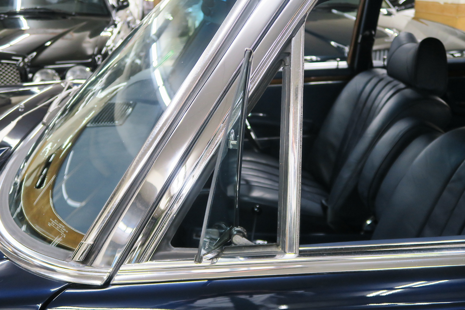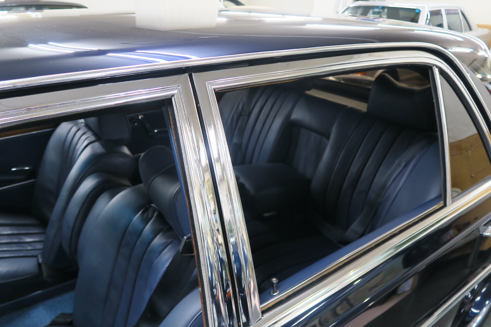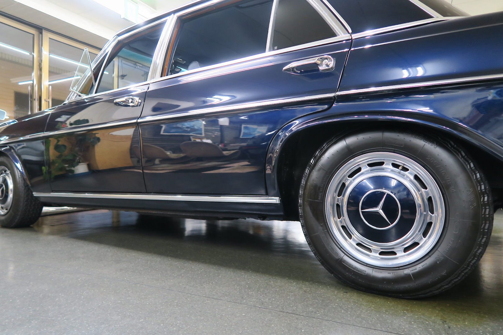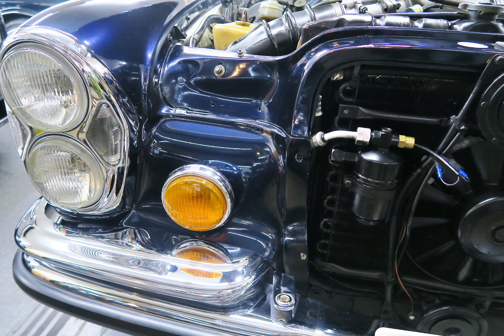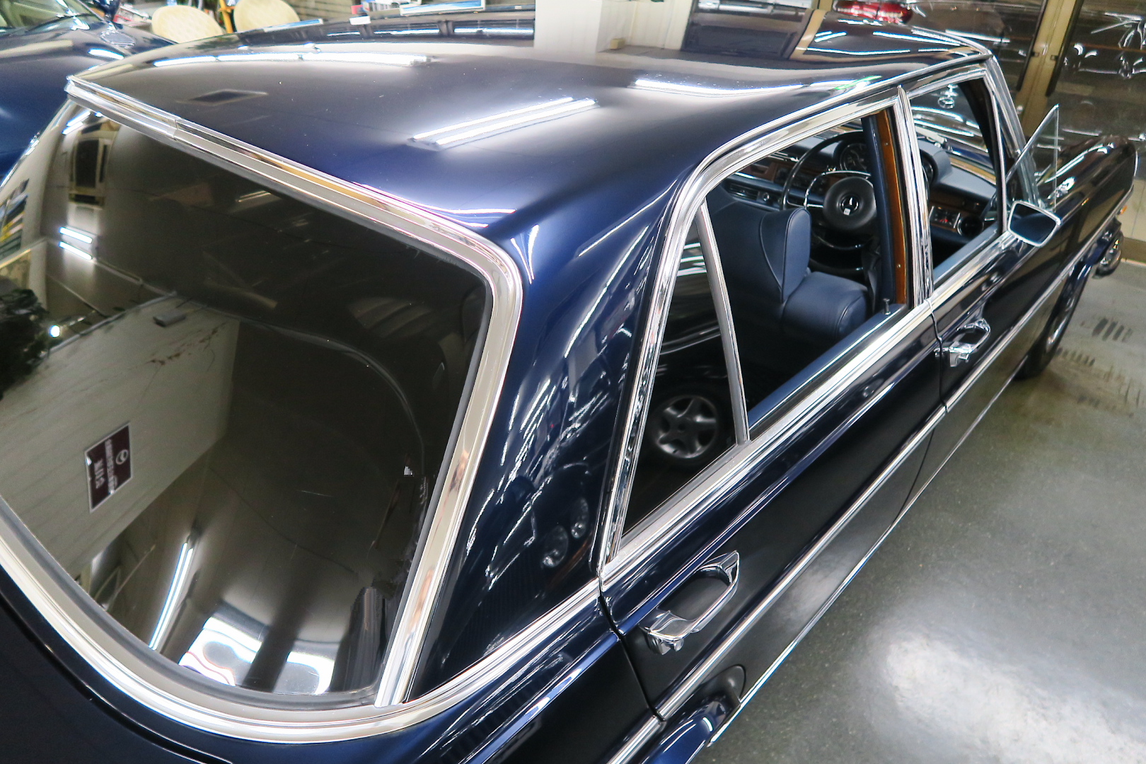 「300SEL 6.3」物語 1967年〜1972年の間に生産された「W109」タテ目の「300SEL」の 「6.3」である。 それも、ウエスタン自働車(ディーラー)物の「右ハンドル」 しかも、3オーナー、前オーナー様は、昭和59年から41年間も ご所有。 このモデルの生い立ちは、極めて興味深く、面白い。 こんな無茶なモデルがなぜに誕生したのか? ベースモデルは、1965年に発売されたばかりの最上級高級セダン「300SEL」 このモデルは、直列6気筒、3L、170馬力、 この頑丈なシャーシに目を付けたのが、エンジニアの「エーリッヒ・ヴァイクセンベル ロー」(文中:ベルローに短縮)。 1966年、「この300SELのシャーシなら、M600エンジンを積んだら面白そ〜 で、社内で こっそく時間を見つけて、載せ替え、完成させた車で、工場の敷地を 走り回った、、そして、その「音」でバレた、、 明らかに、聞くはずのない「音」、、工場責任者「ドルフ・ウーレンハウト」に見つか る。 彼はベルローに じっくり話を聞いたのち、試乗してみる。 結果、すぐに、開発へのGOサインを出す。 メーカー広報誌によれば、「書類にサインするとき、ウーレンハウトは、 ニヤリと笑ったはずだ、、」 なかなか 粋な会社である。 翌1967年、早くも市販モデル1台が完成。 正式モデル名: 「300SEL 6.3」 文字通り、「600リムジーネ」&「600プルマン」(1963年〜1981年)に積んだ 「M100」エンジン、V8、6.3L、250馬力、を移植。 これは、思った以上に販売不信だった「M100」の使い道を広げる意味もあった。 1968年から、正式に発売、1972年まで販売する。 生産台数: 「6526台」 この変態的怪物モデルは、想定外に 売れた。 ドイツ国内では、1839台しか売れていないが北米を中心とした海外で人気に火が付いた それは、現在でも同じ。 因みに、1967年は我が国でも、あの「トヨタ2000GT」が販売された年。 スペックを比較してみると: ・「300SEL 6.3」 最高速:「221km」 0−400m:「15.4秒」 ・「トヨタ2000GT」 : 「220km」 0−400m:「15.9秒」 ・「67’ ポルシェ911S」 :「225km」 0−400m:「15.8秒」 ・「70’ ハカスカGTR」 : 「200km」 0−400m:「16.0秒」 国内無敵の「2000GT」も、「6.3」に及ばず、ポルシェも「S」以外じゃ、太刀打ち できず、後年発売の「GTR」は、ぶっちぎられる、、まさに、スーパースポーツカー 、、「セダン」のくせに、、本物の「羊の皮をかぶった狼」! しかも、エアサスにレベルコントロール(車高自動調整)、AT、PW、パワステ、 クーラー付きで、乗心地も快適。「アウトバーンの覇者」。 では、当個体のお話: ウエスタン自働車(=ヤナセ=ディーラー)物、右ハンドル、3オーナー 前オーナー様は、昭和59年(1984年)より、2025年まで 41年間 ご所有。 聞けば分かる有名企業のオーナー様で、入手当初は、ヤナセ整備、できるメカニックが 引退したのちは、通常整備は、地元整備工場で、「6.3」ならではの整備は、例の神戸 の専門店様にて。この専門店さまで、2021年に大掛かりな整備、明細残る。 ・エアサス関係・レベリング関係・インジェクション関係・コンプレッサー・ウォータ ーポンプ関係・ブレーキ関係など、「6.3」における「キモ」整備が施されている。 しかも、長年のお付き合いの「正しすぎる一時預かり人」である、前オーナー様は、 弊社に持つ込むまえ、2025年8月、「シーザーさんに迷惑がかからないように」と、 前述の専門店様に入庫、点検依頼、「どこか不具合箇所があれば直しといて」 で、・ヒーターコア脱着・修理、プラグ交換、エンジンオイル交換、各グリスUP、 などなどが施された上で、当社入庫。 感謝・感激。 また、お次のオーナー様にとっても、相当な安心材料であろう。 お金持ち あるあるだが、記録簿とか なんですか それ である。 ただ、車検証上で分かるのは、 令和3年12月: 「77.200km」 令和5年12月: 「78.900km」 現在: 「79.200km」! さらに、当個体は、正しい整備だけでなく、内外装もレストアが施されている。 外装は: 「ダークブルー」メタリックに、全バラシ「オールペイント」済み。 *元色は、「パピルス・ホワイト」 (カラーVINで分かる) 塗装状態も素晴らしい◎。 「300SEL」の5mボディに良く似合うカラーで、重量感を感じる。 実際には、オリジナル「300SEL」の重量は、「1655kg」で、「6.3」は、 「1740kg」なので、85kgしか重くない(エンジンの重さの違い分)のが、、 なんだが、まったくオーラが異なるのは、、私の「6.3」への憧れ だからだけでは なさそうだ。 内装は: 「紺・本革」 「総張替え」 ・シート・ダッシュボード・天井内張り・カーペットに至るまで全て。 で、ほとんど乗らないものだから、今もバリビカ。 ただ、ウッド類は、オリジナルのまま なので、風情が残る。 ここが素のままなので、時代があう。 ・4速AT・パワーステアリング・パワーウインド・クーラー、快適な怪物マシン。 後付けで、・パナ「ゴリラ」ナビ(取り外し可)・「バックカメラ」連動・ETC・ 「前後ドラレコ」・「油圧メーター」 即戦力。 機関系: エンジンは、前述の通り、「M100」、当