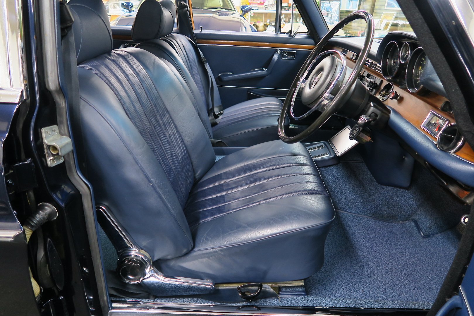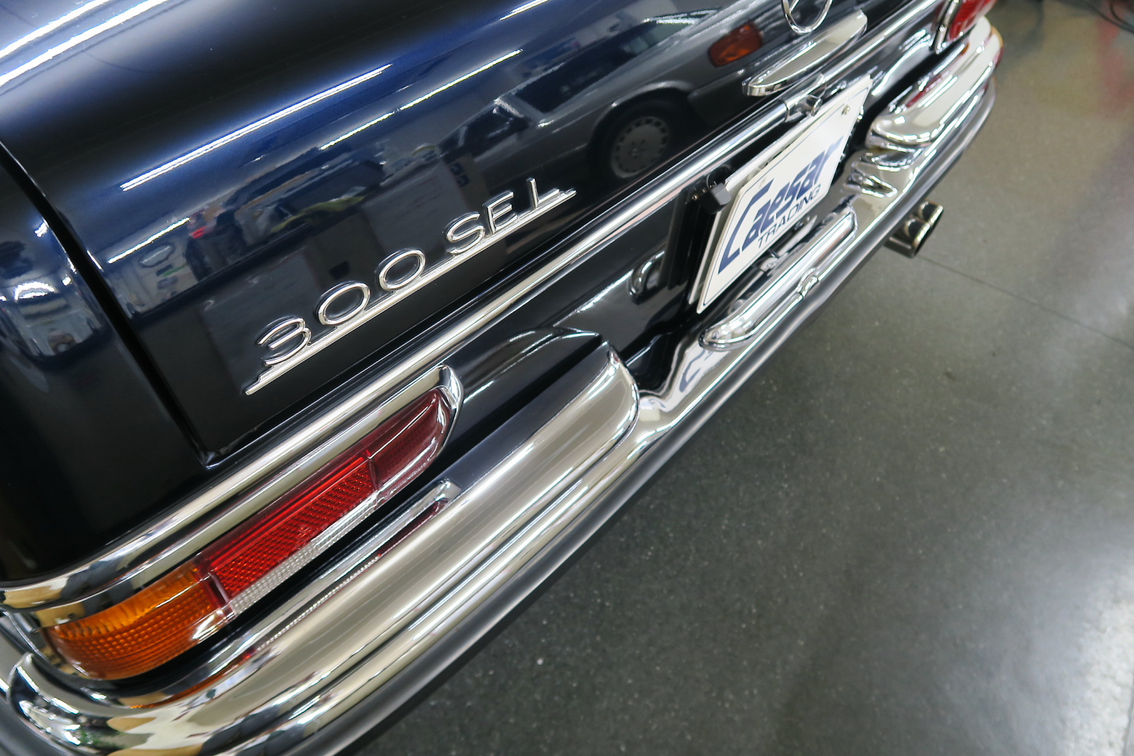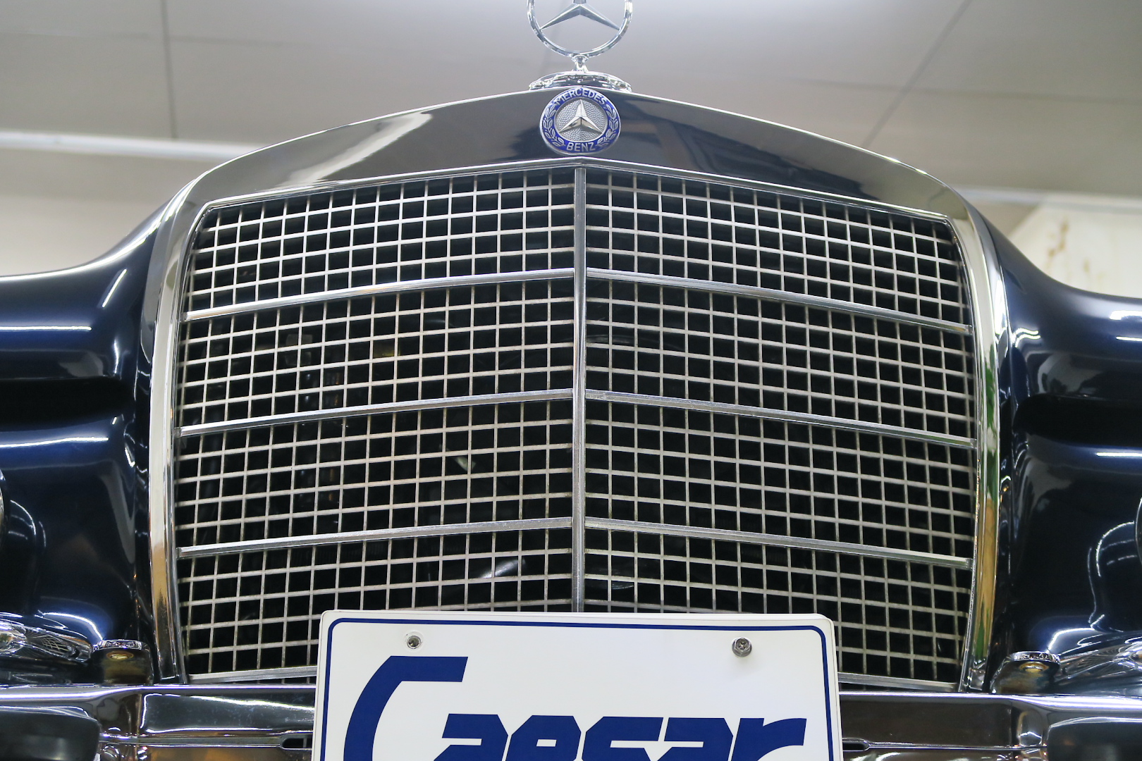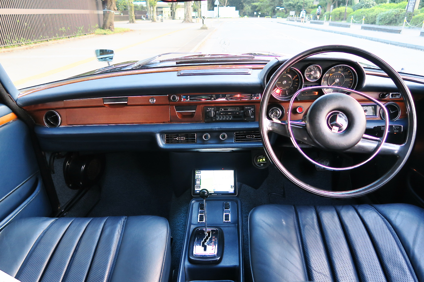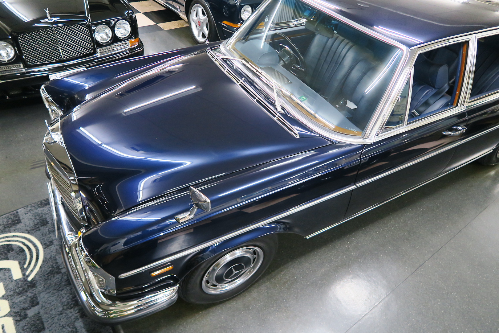 「300SEL 6.3」物語 1967年〜1972年の間に生産された「W109」タテ目の「300SEL」の 「6.3」である。 それも、ウエスタン自働車(ディーラー)物の「右ハンドル」 しかも、3オーナー、前オーナー様は、昭和59年から41年間も ご所有。 このモデルの生い立ちは、極めて興味深く、面白い。 こんな無茶なモデルがなぜに誕生したのか? ベースモデルは、1965年に発売されたばかりの最上級高級セダン「300SEL」 このモデルは、直列6気筒、3L、170馬力、 この頑丈なシャーシに目を付けたのが、エンジニアの「エーリッヒ・ヴァイクセンベル ロー」(文中:ベルローに短縮)。 1966年、「この300SELのシャーシなら、M600エンジンを積んだら面白そ〜 で、社内で こっそく時間を見つけて、載せ替え、完成させた車で、工場の敷地を 走り回った、、そして、その「音」でバレた、、 明らかに、聞くはずのない「音」、、工場責任者「ドルフ・ウーレンハウト」に見つか る。 彼はベルローに じっくり話を聞いたのち、試乗してみる。 結果、すぐに、開発へのGOサインを出す。 メーカー広報誌によれば、「書類にサインするとき、ウーレンハウトは、 ニヤリと笑ったはずだ、、」 なかなか 粋な会社である。 翌1967年、早くも市販モデル1台が完成。 正式モデル名: 「300SEL 6.3」 文字通り、「600リムジーネ」&「600プルマン」(1963年〜1981年)に積んだ 「M100」エンジン、V8、6.3L、250馬力、を移植。 これは、思った以上に販売不信だった「M100」の使い道を広げる意味もあった。 1968年から、正式に発売、1972年まで販売する。 生産台数: 「6526台」 この変態的怪物モデルは、想定外に 売れた。 ドイツ国内では、1839台しか売れていないが北米を中心とした海外で人気に火が付いた それは、現在でも同じ。 因みに、1967年は我が国でも、あの「トヨタ2000GT」が販売された年。 スペックを比較してみると: ・「300SEL 6.3」 最高速:「221km」 0−400m:「15.4秒」 ・「トヨタ2000GT」 : 「220km」 0−400m:「15.9秒」 ・「67’ ポルシェ911S」 :「225km」 0−400m:「15.8秒」 ・「70’ ハカスカGTR」 : 「200km」 0−400m:「16.0秒」 国内無敵の「2000GT」も、「6.3」に及ばず、ポルシェも「S」以外じゃ、太刀打ち できず、後年発売の「GTR」は、ぶっちぎられる、、まさに、スーパースポーツカー 、、「セダン」のくせに、、本物の「羊の皮をかぶった狼」! しかも、エアサスにレベルコントロール(車高自動調整)、AT、PW、パワステ、 クーラー付きで、乗心地も快適。「アウトバーンの覇者」。 では、当個体のお話: ウエスタン自働車(=ヤナセ=ディーラー)物、右ハンドル、3オーナー 前オーナー様は、昭和59年(1984年)より、2025年まで 41年間 ご所有。 聞けば分かる有名企業のオーナー様で、入手当初は、ヤナセ整備、できるメカニックが 引退したのちは、通常整備は、地元整備工場で、「6.3」ならではの整備は、例の神戸 の専門店様にて。この専門店さまで、2021年に大掛かりな整備、明細残る。 ・エアサス関係・レベリング関係・インジェクション関係・コンプレッサー・ウォータ ーポンプ関係・ブレーキ関係など、「6.3」における「キモ」整備が施されている。 しかも、長年のお付き合いの「正しすぎる一時預かり人」である、前オーナー様は、 弊社に持つ込むまえ、2025年8月、「シーザーさんに迷惑がかからないように」と、 前述の専門店様に入庫、点検依頼、「どこか不具合箇所があれば直しといて」 で、・ヒーターコア脱着・修理、プラグ交換、エンジンオイル交換、各グリスUP、 などなどが施された上で、当社入庫。 感謝・感激。 また、お次のオーナー様にとっても、相当な安心材料であろう。 お金持ち あるあるだが、記録簿とか なんですか それ である。 ただ、車検証上で分かるのは、 令和3年12月: 「77.200km」 令和5年12月: 「78.900km」 現在: 「79.200km」! さらに、当個体は、正しい整備だけでなく、内外装もレストアが施されている。 外装は: 「ダークブルー」メタリックに、全バラシ「オールペイント」済み。 *元色は、「パピルス・ホワイト」 (カラーVINで分かる) 塗装状態も素晴らしい◎。 「300SEL」の5mボディに良く似合うカラーで、重量感を感じる。 実際には、オリジナル「300SEL」の重量は、「1655kg」で、「6.3」は、 「1740kg」なので、85kgしか重くない(エンジンの重さの違い分)のが、、 なんだが、まったくオーラが異なるのは、、私の「6.3」への憧れ だからだけでは なさそうだ。 内装は: 「紺・本革」 「総張替え」 ・シート・ダッシュボード・天井内張り・カーペットに至るまで全て。 で、ほとんど乗らないものだから、今もバリビカ。 ただ、ウッド類は、オリジナルのまま なので、風情が残る。 ここが素のままなので、時代があう。 ・4速AT・パワーステアリング・パワーウインド・クーラー、快適な怪物マシン。 後付けで、・パナ「ゴリラ」ナビ(取り外し可)・「バックカメラ」連動・ETC・ 「前後ドラレコ」・「油圧メーター」 即戦力。 機関系: エンジンは、前述の通り、「M100」、当
