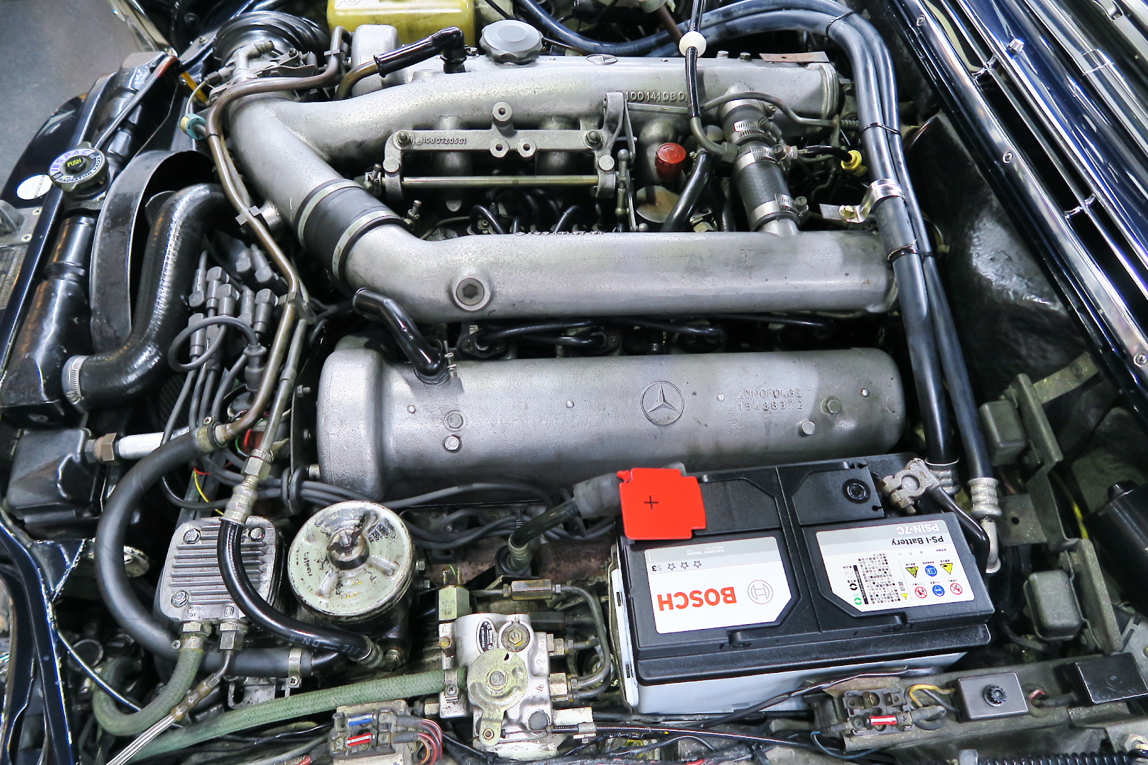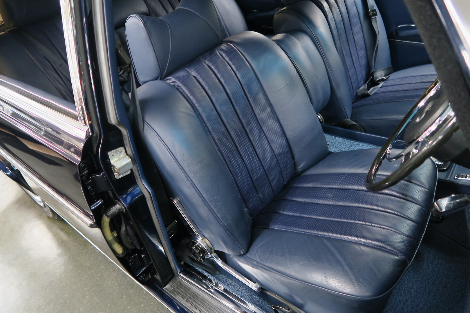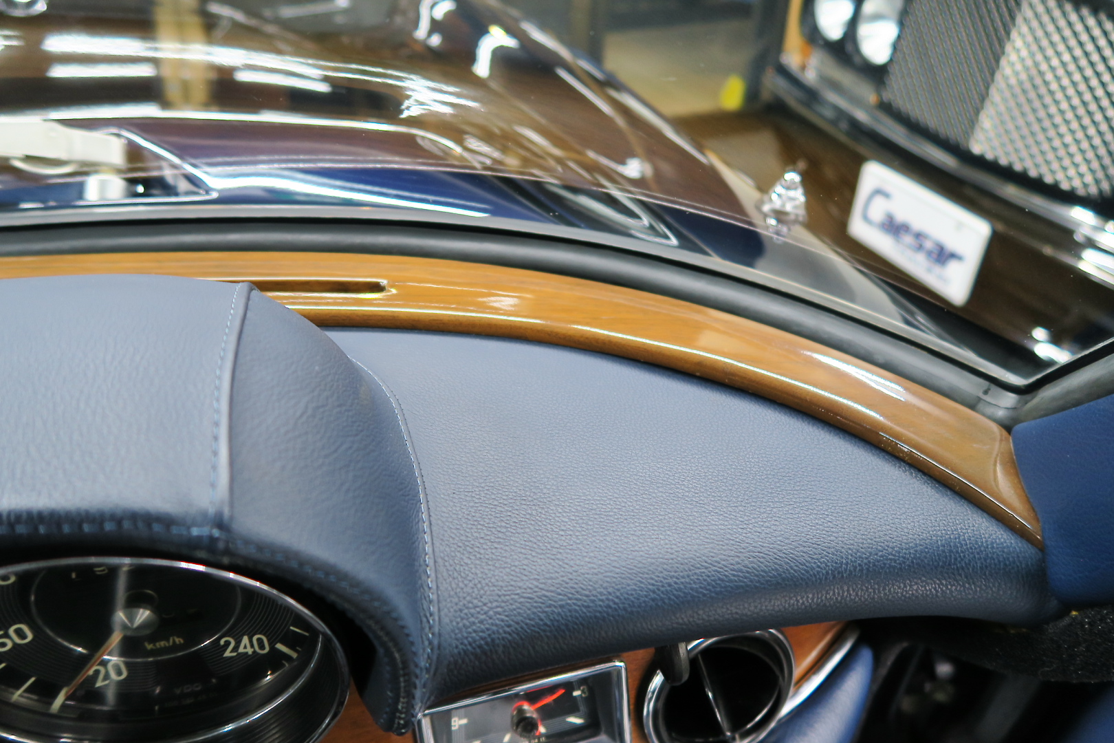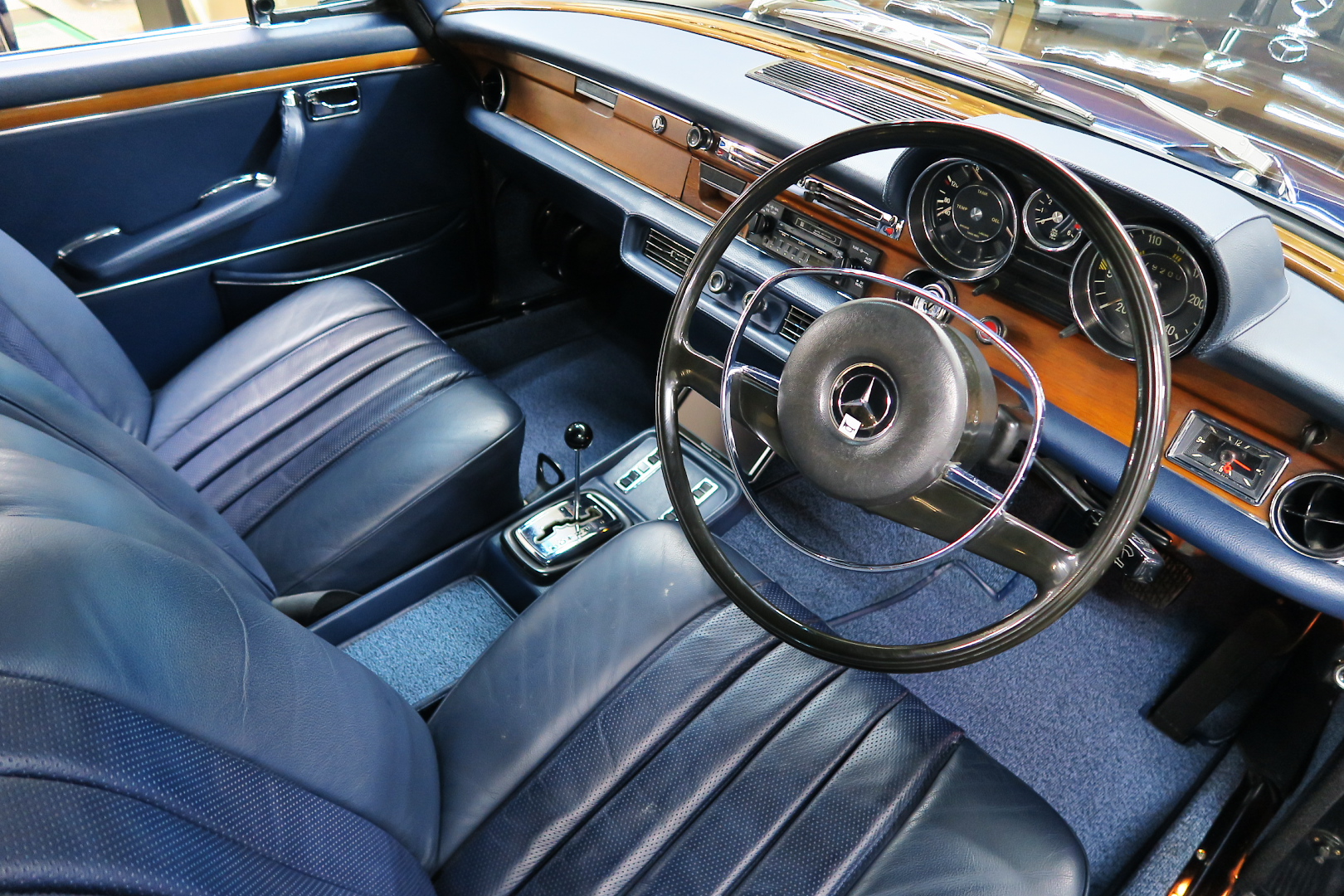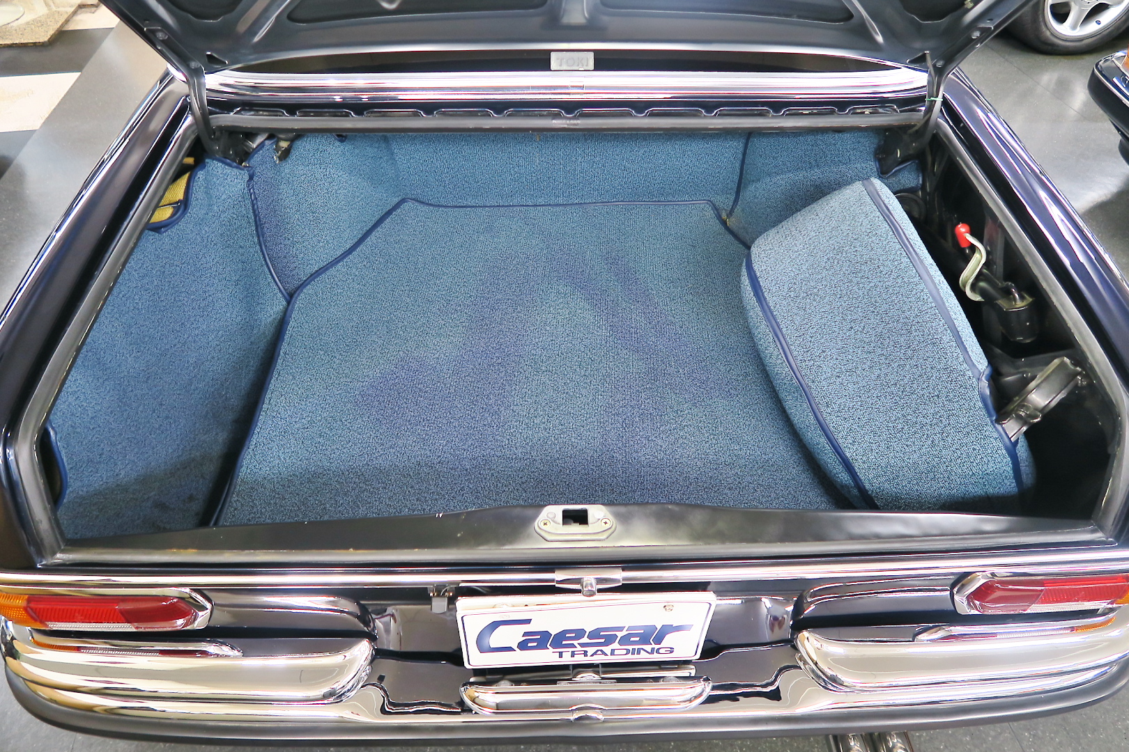 「300SEL 6.3」物語 1967年〜1972年の間に生産された「W109」タテ目の「300SEL」の 「6.3」である。 それも、ウエスタン自働車(ディーラー)物の「右ハンドル」 しかも、3オーナー、前オーナー様は、昭和59年から41年間も ご所有。 このモデルの生い立ちは、極めて興味深く、面白い。 こんな無茶なモデルがなぜに誕生したのか? ベースモデルは、1965年に発売されたばかりの最上級高級セダン「300SEL」 このモデルは、直列6気筒、3L、170馬力、 この頑丈なシャーシに目を付けたのが、エンジニアの「エーリッヒ・ヴァイクセンベル ロー」(文中:ベルローに短縮)。 1966年、「この300SELのシャーシなら、M600エンジンを積んだら面白そ〜 で、社内で こっそく時間を見つけて、載せ替え、完成させた車で、工場の敷地を 走り回った、、そして、その「音」でバレた、、 明らかに、聞くはずのない「音」、、工場責任者「ドルフ・ウーレンハウト」に見つか る。 彼はベルローに じっくり話を聞いたのち、試乗してみる。 結果、すぐに、開発へのGOサインを出す。 メーカー広報誌によれば、「書類にサインするとき、ウーレンハウトは、 ニヤリと笑ったはずだ、、」 なかなか 粋な会社である。 翌1967年、早くも市販モデル1台が完成。 正式モデル名: 「300SEL 6.3」 文字通り、「600リムジーネ」&「600プルマン」(1963年〜1981年)に積んだ 「M100」エンジン、V8、6.3L、250馬力、を移植。 これは、思った以上に販売不信だった「M100」の使い道を広げる意味もあった。 1968年から、正式に発売、1972年まで販売する。 生産台数: 「6526台」 この変態的怪物モデルは、想定外に 売れた。 ドイツ国内では、1839台しか売れていないが北米を中心とした海外で人気に火が付いた それは、現在でも同じ。 因みに、1967年は我が国でも、あの「トヨタ2000GT」が販売された年。 スペックを比較してみると: ・「300SEL 6.3」 最高速:「221km」 0−400m:「15.4秒」 ・「トヨタ2000GT」 : 「220km」 0−400m:「15.9秒」 ・「67’ ポルシェ911S」 :「225km」 0−400m:「15.8秒」 ・「70’ ハカスカGTR」 : 「200km」 0−400m:「16.0秒」 国内無敵の「2000GT」も、「6.3」に及ばず、ポルシェも「S」以外じゃ、太刀打ち できず、後年発売の「GTR」は、ぶっちぎられる、、まさに、スーパースポーツカー 、、「セダン」のくせに、、本物の「羊の皮をかぶった狼」! しかも、エアサスにレベルコントロール(車高自動調整)、AT、PW、パワステ、 クーラー付きで、乗心地も快適。「アウトバーンの覇者」。 では、当個体のお話: ウエスタン自働車(=ヤナセ=ディーラー)物、右ハンドル、3オーナー 前オーナー様は、昭和59年(1984年)より、2025年まで 41年間 ご所有。 聞けば分かる有名企業のオーナー様で、入手当初は、ヤナセ整備、できるメカニックが 引退したのちは、通常整備は、地元整備工場で、「6.3」ならではの整備は、例の神戸 の専門店様にて。この専門店さまで、2021年に大掛かりな整備、明細残る。 ・エアサス関係・レベリング関係・インジェクション関係・コンプレッサー・ウォータ ーポンプ関係・ブレーキ関係など、「6.3」における「キモ」整備が施されている。 しかも、長年のお付き合いの「正しすぎる一時預かり人」である、前オーナー様は、 弊社に持つ込むまえ、2025年8月、「シーザーさんに迷惑がかからないように」と、 前述の専門店様に入庫、点検依頼、「どこか不具合箇所があれば直しといて」 で、・ヒーターコア脱着・修理、プラグ交換、エンジンオイル交換、各グリスUP、 などなどが施された上で、当社入庫。 感謝・感激。 また、お次のオーナー様にとっても、相当な安心材料であろう。 お金持ち あるあるだが、記録簿とか なんですか それ である。 ただ、車検証上で分かるのは、 令和3年12月: 「77.200km」 令和5年12月: 「78.900km」 現在: 「79.200km」! さらに、当個体は、正しい整備だけでなく、内外装もレストアが施されている。 外装は: 「ダークブルー」メタリックに、全バラシ「オールペイント」済み。 *元色は、「パピルス・ホワイト」 (カラーVINで分かる) 塗装状態も素晴らしい◎。 「300SEL」の5mボディに良く似合うカラーで、重量感を感じる。 実際には、オリジナル「300SEL」の重量は、「1655kg」で、「6.3」は、 「1740kg」なので、85kgしか重くない(エンジンの重さの違い分)のが、、 なんだが、まったくオーラが異なるのは、、私の「6.3」への憧れ だからだけでは なさそうだ。 内装は: 「紺・本革」 「総張替え」 ・シート・ダッシュボード・天井内張り・カーペットに至るまで全て。 で、ほとんど乗らないものだから、今もバリビカ。 ただ、ウッド類は、オリジナルのまま なので、風情が残る。 ここが素のままなので、時代があう。 ・4速AT・パワーステアリング・パワーウインド・クーラー、快適な怪物マシン。 後付けで、・パナ「ゴリラ」ナビ(取り外し可)・「バックカメラ」連動・ETC・ 「前後ドラレコ」・「油圧メーター」 即戦力。 機関系: エンジンは、前述の通り、「M100」、当