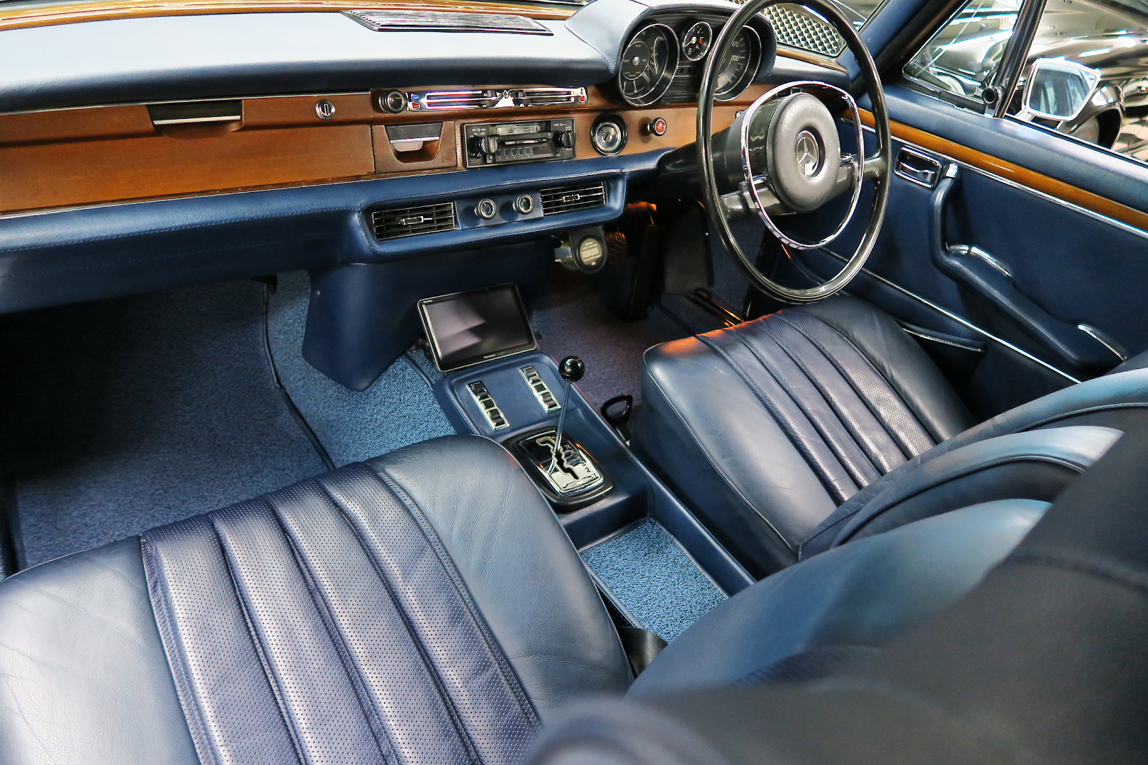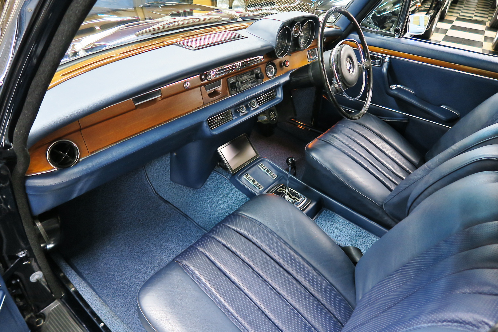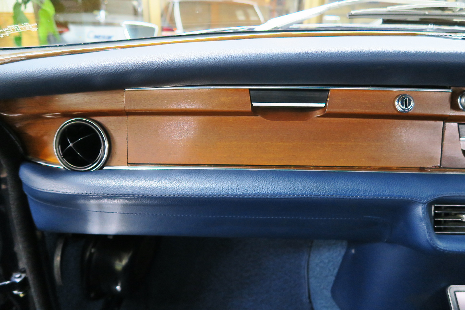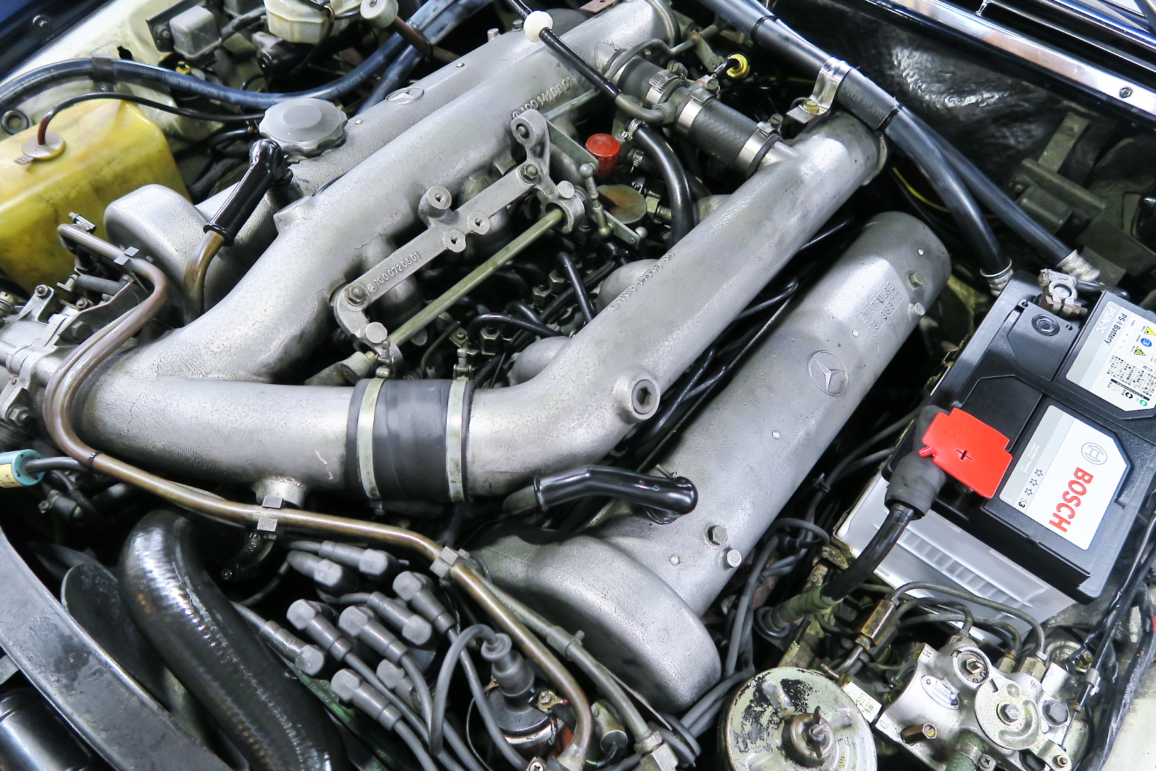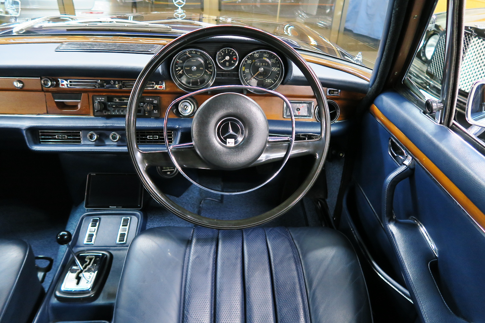 「300SEL 6.3」物語 1967年〜1972年の間に生産された「W109」タテ目の「300SEL」の 「6.3」である。 それも、ウエスタン自働車(ディーラー)物の「右ハンドル」 しかも、3オーナー、前オーナー様は、昭和59年から41年間も ご所有。 このモデルの生い立ちは、極めて興味深く、面白い。 こんな無茶なモデルがなぜに誕生したのか? ベースモデルは、1965年に発売されたばかりの最上級高級セダン「300SEL」 このモデルは、直列6気筒、3L、170馬力、 この頑丈なシャーシに目を付けたのが、エンジニアの「エーリッヒ・ヴァイクセンベル ロー」(文中:ベルローに短縮)。 1966年、「この300SELのシャーシなら、M600エンジンを積んだら面白そ〜 で、社内で こっそく時間を見つけて、載せ替え、完成させた車で、工場の敷地を 走り回った、、そして、その「音」でバレた、、 明らかに、聞くはずのない「音」、、工場責任者「ドルフ・ウーレンハウト」に見つか る。 彼はベルローに じっくり話を聞いたのち、試乗してみる。 結果、すぐに、開発へのGOサインを出す。 メーカー広報誌によれば、「書類にサインするとき、ウーレンハウトは、 ニヤリと笑ったはずだ、、」 なかなか 粋な会社である。 翌1967年、早くも市販モデル1台が完成。 正式モデル名: 「300SEL 6.3」 文字通り、「600リムジーネ」&「600プルマン」(1963年〜1981年)に積んだ 「M100」エンジン、V8、6.3L、250馬力、を移植。 これは、思った以上に販売不信だった「M100」の使い道を広げる意味もあった。 1968年から、正式に発売、1972年まで販売する。 生産台数: 「6526台」 この変態的怪物モデルは、想定外に 売れた。 ドイツ国内では、1839台しか売れていないが北米を中心とした海外で人気に火が付いた それは、現在でも同じ。 因みに、1967年は我が国でも、あの「トヨタ2000GT」が販売された年。 スペックを比較してみると: ・「300SEL 6.3」 最高速:「221km」 0−400m:「15.4秒」 ・「トヨタ2000GT」 : 「220km」 0−400m:「15.9秒」 ・「67’ ポルシェ911S」 :「225km」 0−400m:「15.8秒」 ・「70’ ハカスカGTR」 : 「200km」 0−400m:「16.0秒」 国内無敵の「2000GT」も、「6.3」に及ばず、ポルシェも「S」以外じゃ、太刀打ち できず、後年発売の「GTR」は、ぶっちぎられる、、まさに、スーパースポーツカー 、、「セダン」のくせに、、本物の「羊の皮をかぶった狼」! しかも、エアサスにレベルコントロール(車高自動調整)、AT、PW、パワステ、 クーラー付きで、乗心地も快適。「アウトバーンの覇者」。 では、当個体のお話: ウエスタン自働車(=ヤナセ=ディーラー)物、右ハンドル、3オーナー 前オーナー様は、昭和59年(1984年)より、2025年まで 41年間 ご所有。 聞けば分かる有名企業のオーナー様で、入手当初は、ヤナセ整備、できるメカニックが 引退したのちは、通常整備は、地元整備工場で、「6.3」ならではの整備は、例の神戸 の専門店様にて。この専門店さまで、2021年に大掛かりな整備、明細残る。 ・エアサス関係・レベリング関係・インジェクション関係・コンプレッサー・ウォータ ーポンプ関係・ブレーキ関係など、「6.3」における「キモ」整備が施されている。 しかも、長年のお付き合いの「正しすぎる一時預かり人」である、前オーナー様は、 弊社に持つ込むまえ、2025年8月、「シーザーさんに迷惑がかからないように」と、 前述の専門店様に入庫、点検依頼、「どこか不具合箇所があれば直しといて」 で、・ヒーターコア脱着・修理、プラグ交換、エンジンオイル交換、各グリスUP、 などなどが施された上で、当社入庫。 感謝・感激。 また、お次のオーナー様にとっても、相当な安心材料であろう。 お金持ち あるあるだが、記録簿とか なんですか それ である。 ただ、車検証上で分かるのは、 令和3年12月: 「77.200km」 令和5年12月: 「78.900km」 現在: 「79.200km」! さらに、当個体は、正しい整備だけでなく、内外装もレストアが施されている。 外装は: 「ダークブルー」メタリックに、全バラシ「オールペイント」済み。 *元色は、「パピルス・ホワイト」 (カラーVINで分かる) 塗装状態も素晴らしい◎。 「300SEL」の5mボディに良く似合うカラーで、重量感を感じる。 実際には、オリジナル「300SEL」の重量は、「1655kg」で、「6.3」は、 「1740kg」なので、85kgしか重くない(エンジンの重さの違い分)のが、、 なんだが、まったくオーラが異なるのは、、私の「6.3」への憧れ だからだけでは なさそうだ。 内装は: 「紺・本革」 「総張替え」 ・シート・ダッシュボード・天井内張り・カーペットに至るまで全て。 で、ほとんど乗らないものだから、今もバリビカ。 ただ、ウッド類は、オリジナルのまま なので、風情が残る。 ここが素のままなので、時代があう。 ・4速AT・パワーステアリング・パワーウインド・クーラー、快適な怪物マシン。 後付けで、・パナ「ゴリラ」ナビ(取り外し可)・「バックカメラ」連動・ETC・ 「前後ドラレコ」・「油圧メーター」 即戦力。 機関系: エンジンは、前述の通り、「M100」、当