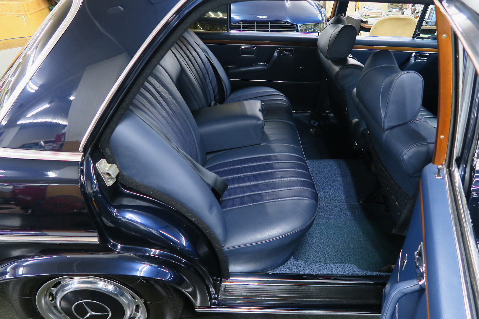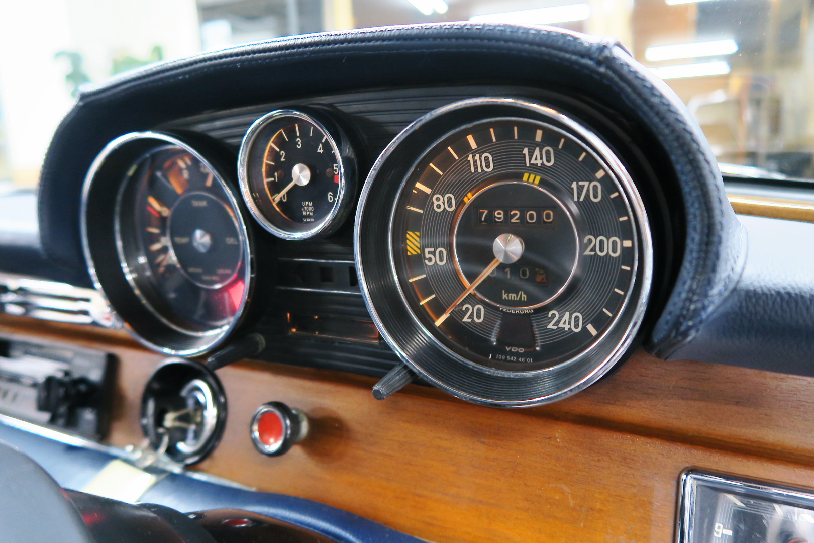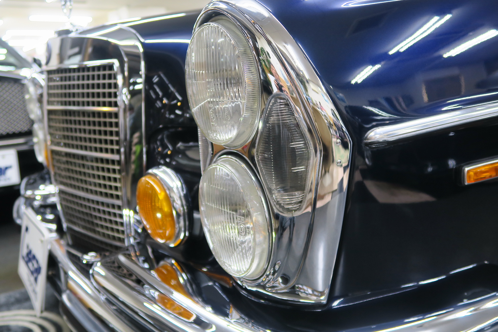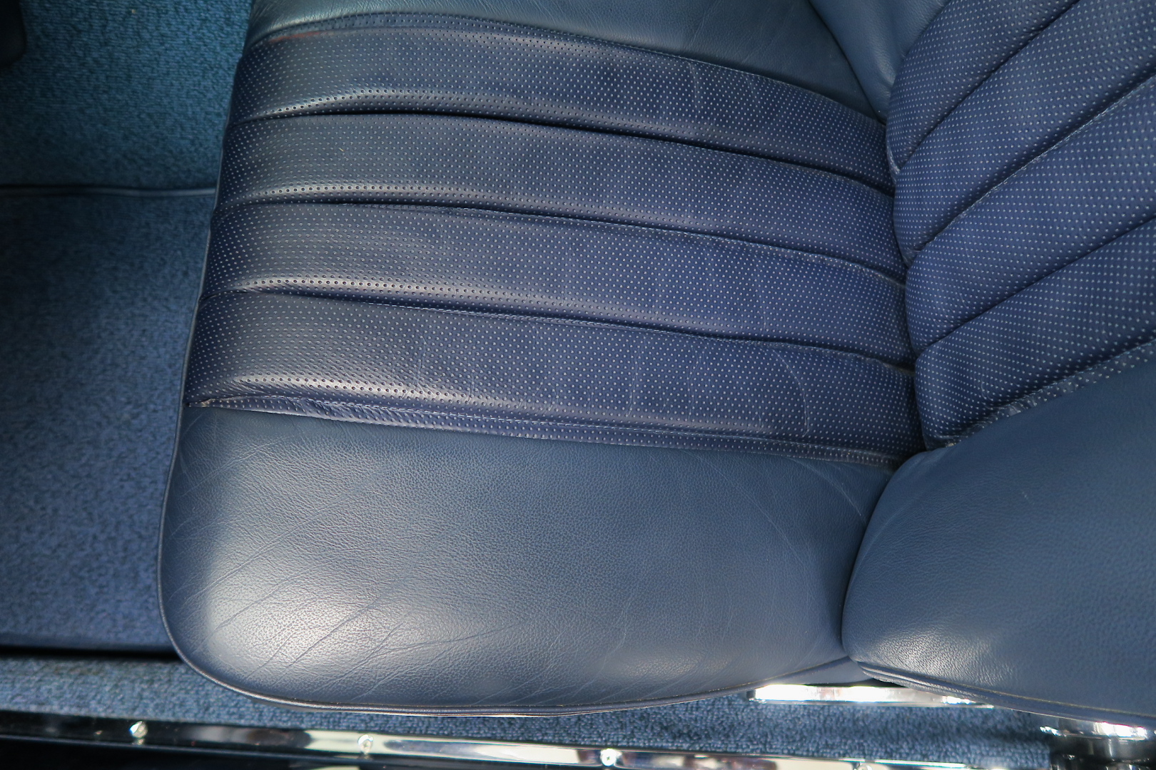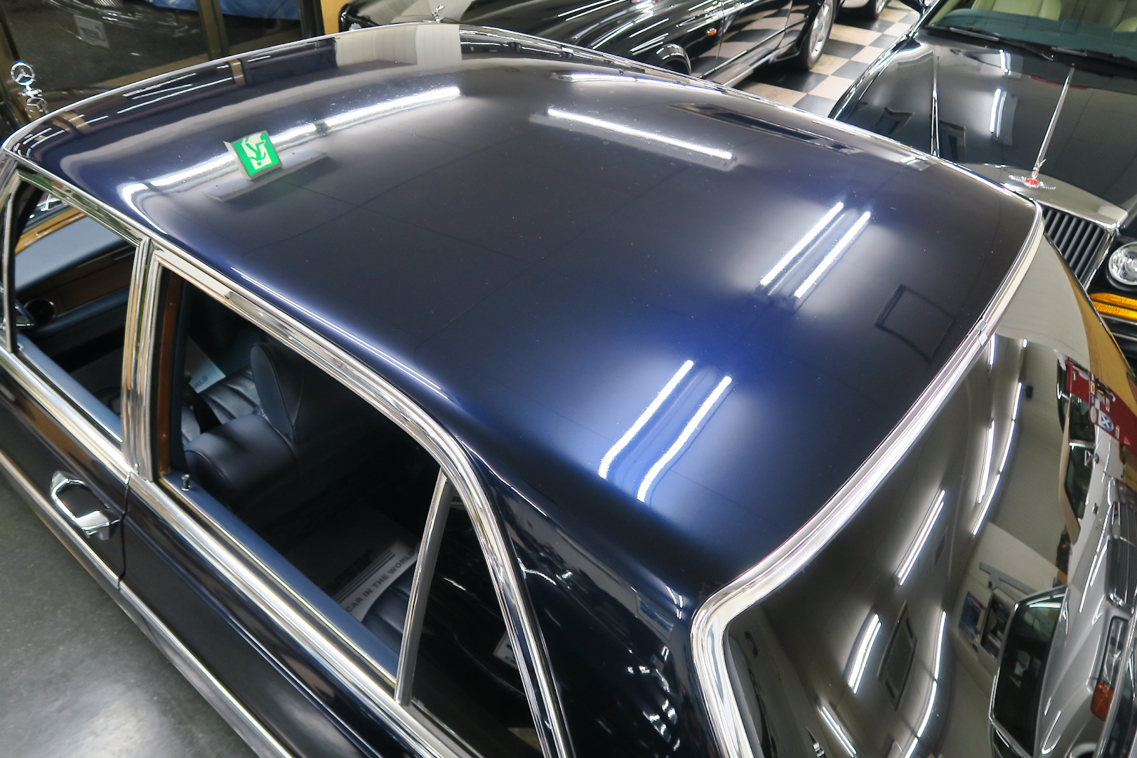 「300SEL 6.3」物語 1967年〜1972年の間に生産された「W109」タテ目の「300SEL」の 「6.3」である。 それも、ウエスタン自働車(ディーラー)物の「右ハンドル」 しかも、3オーナー、前オーナー様は、昭和59年から41年間も ご所有。 このモデルの生い立ちは、極めて興味深く、面白い。 こんな無茶なモデルがなぜに誕生したのか? ベースモデルは、1965年に発売されたばかりの最上級高級セダン「300SEL」 このモデルは、直列6気筒、3L、170馬力、 この頑丈なシャーシに目を付けたのが、エンジニアの「エーリッヒ・ヴァイクセンベル ロー」(文中:ベルローに短縮)。 1966年、「この300SELのシャーシなら、M600エンジンを積んだら面白そ〜 で、社内で こっそく時間を見つけて、載せ替え、完成させた車で、工場の敷地を 走り回った、、そして、その「音」でバレた、、 明らかに、聞くはずのない「音」、、工場責任者「ドルフ・ウーレンハウト」に見つか る。 彼はベルローに じっくり話を聞いたのち、試乗してみる。 結果、すぐに、開発へのGOサインを出す。 メーカー広報誌によれば、「書類にサインするとき、ウーレンハウトは、 ニヤリと笑ったはずだ、、」 なかなか 粋な会社である。 翌1967年、早くも市販モデル1台が完成。 正式モデル名: 「300SEL 6.3」 文字通り、「600リムジーネ」&「600プルマン」(1963年〜1981年)に積んだ 「M100」エンジン、V8、6.3L、250馬力、を移植。 これは、思った以上に販売不信だった「M100」の使い道を広げる意味もあった。 1968年から、正式に発売、1972年まで販売する。 生産台数: 「6526台」 この変態的怪物モデルは、想定外に 売れた。 ドイツ国内では、1839台しか売れていないが北米を中心とした海外で人気に火が付いた それは、現在でも同じ。 因みに、1967年は我が国でも、あの「トヨタ2000GT」が販売された年。 スペックを比較してみると: ・「300SEL 6.3」 最高速:「221km」 0−400m:「15.4秒」 ・「トヨタ2000GT」 : 「220km」 0−400m:「15.9秒」 ・「67’ ポルシェ911S」 :「225km」 0−400m:「15.8秒」 ・「70’ ハカスカGTR」 : 「200km」 0−400m:「16.0秒」 国内無敵の「2000GT」も、「6.3」に及ばず、ポルシェも「S」以外じゃ、太刀打ち できず、後年発売の「GTR」は、ぶっちぎられる、、まさに、スーパースポーツカー 、、「セダン」のくせに、、本物の「羊の皮をかぶった狼」! しかも、エアサスにレベルコントロール(車高自動調整)、AT、PW、パワステ、 クーラー付きで、乗心地も快適。「アウトバーンの覇者」。 では、当個体のお話: ウエスタン自働車(=ヤナセ=ディーラー)物、右ハンドル、3オーナー 前オーナー様は、昭和59年(1984年)より、2025年まで 41年間 ご所有。 聞けば分かる有名企業のオーナー様で、入手当初は、ヤナセ整備、できるメカニックが 引退したのちは、通常整備は、地元整備工場で、「6.3」ならではの整備は、例の神戸 の専門店様にて。この専門店さまで、2021年に大掛かりな整備、明細残る。 ・エアサス関係・レベリング関係・インジェクション関係・コンプレッサー・ウォータ ーポンプ関係・ブレーキ関係など、「6.3」における「キモ」整備が施されている。 しかも、長年のお付き合いの「正しすぎる一時預かり人」である、前オーナー様は、 弊社に持つ込むまえ、2025年8月、「シーザーさんに迷惑がかからないように」と、 前述の専門店様に入庫、点検依頼、「どこか不具合箇所があれば直しといて」 で、・ヒーターコア脱着・修理、プラグ交換、エンジンオイル交換、各グリスUP、 などなどが施された上で、当社入庫。 感謝・感激。 また、お次のオーナー様にとっても、相当な安心材料であろう。 お金持ち あるあるだが、記録簿とか なんですか それ である。 ただ、車検証上で分かるのは、 令和3年12月: 「77.200km」 令和5年12月: 「78.900km」 現在: 「79.200km」! さらに、当個体は、正しい整備だけでなく、内外装もレストアが施されている。 外装は: 「ダークブルー」メタリックに、全バラシ「オールペイント」済み。 *元色は、「パピルス・ホワイト」 (カラーVINで分かる) 塗装状態も素晴らしい◎。 「300SEL」の5mボディに良く似合うカラーで、重量感を感じる。 実際には、オリジナル「300SEL」の重量は、「1655kg」で、「6.3」は、 「1740kg」なので、85kgしか重くない(エンジンの重さの違い分)のが、、 なんだが、まったくオーラが異なるのは、、私の「6.3」への憧れ だからだけでは なさそうだ。 内装は: 「紺・本革」 「総張替え」 ・シート・ダッシュボード・天井内張り・カーペットに至るまで全て。 で、ほとんど乗らないものだから、今もバリビカ。 ただ、ウッド類は、オリジナルのまま なので、風情が残る。 ここが素のままなので、時代があう。 ・4速AT・パワーステアリング・パワーウインド・クーラー、快適な怪物マシン。 後付けで、・パナ「ゴリラ」ナビ(取り外し可)・「バックカメラ」連動・ETC・ 「前後ドラレコ」・「油圧メーター」 即戦力。 機関系: エンジンは、前述の通り、「M100」、当
