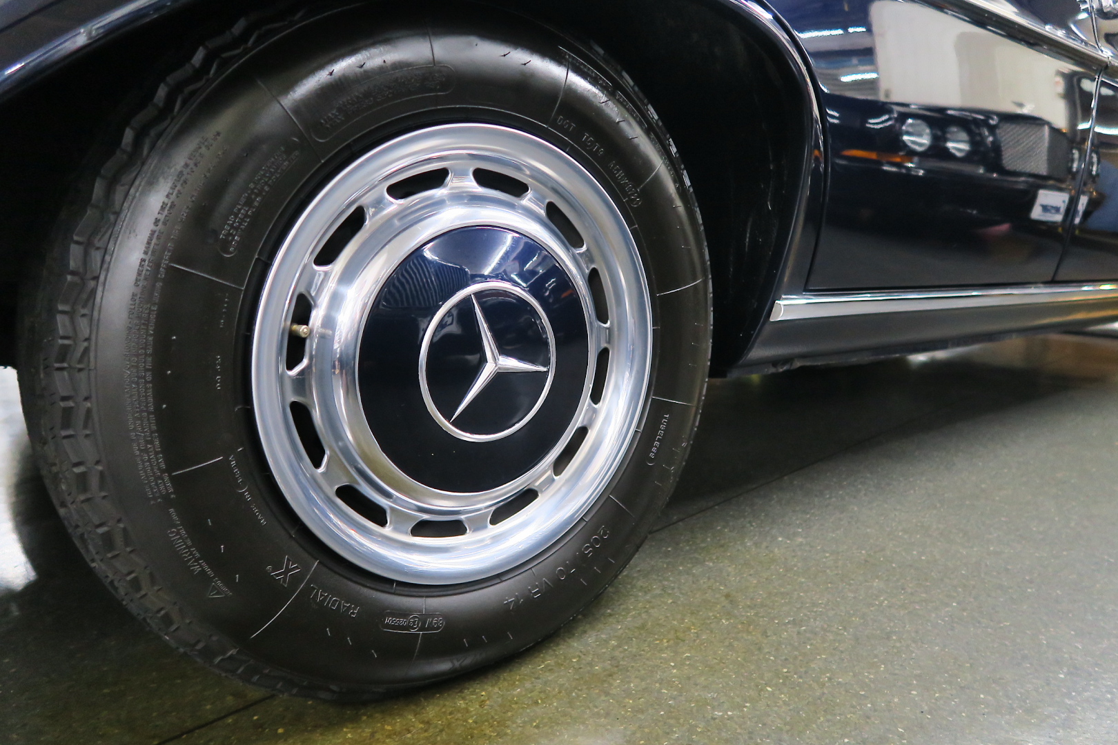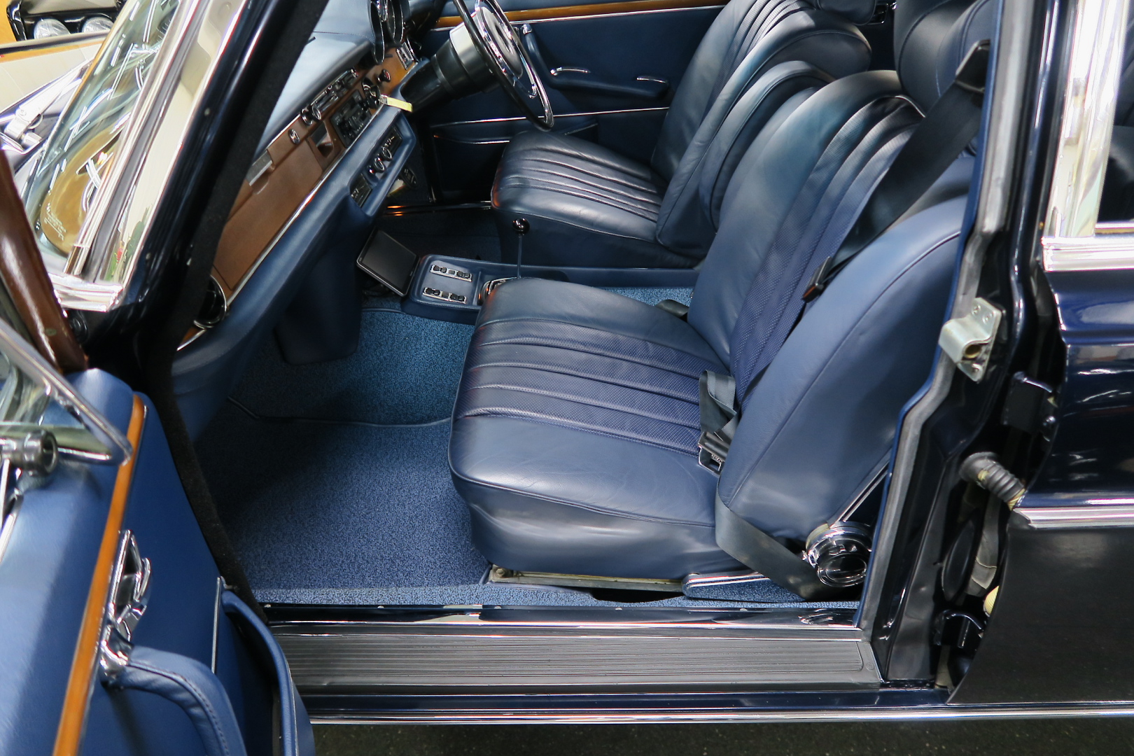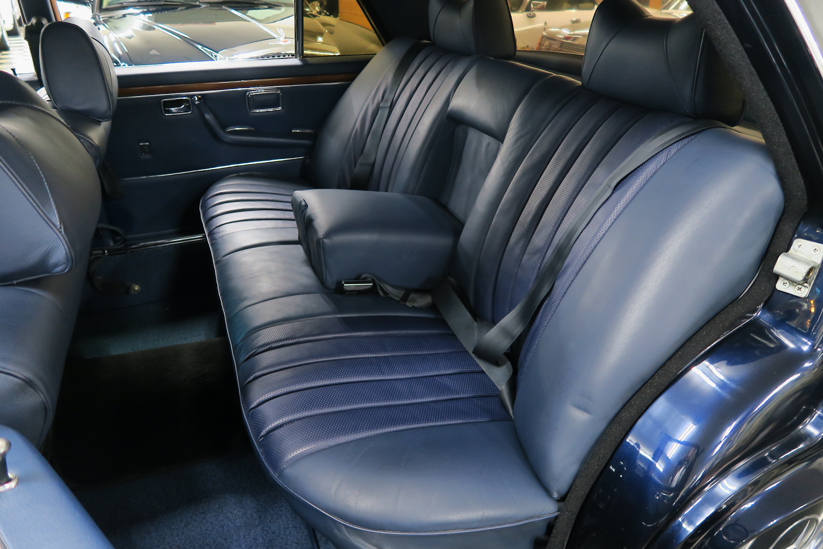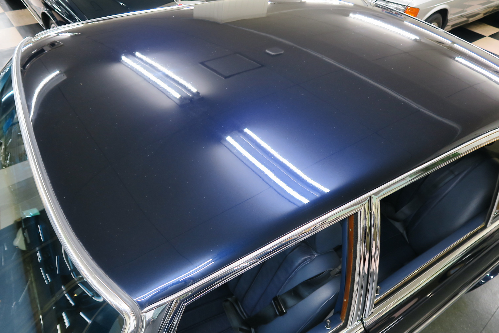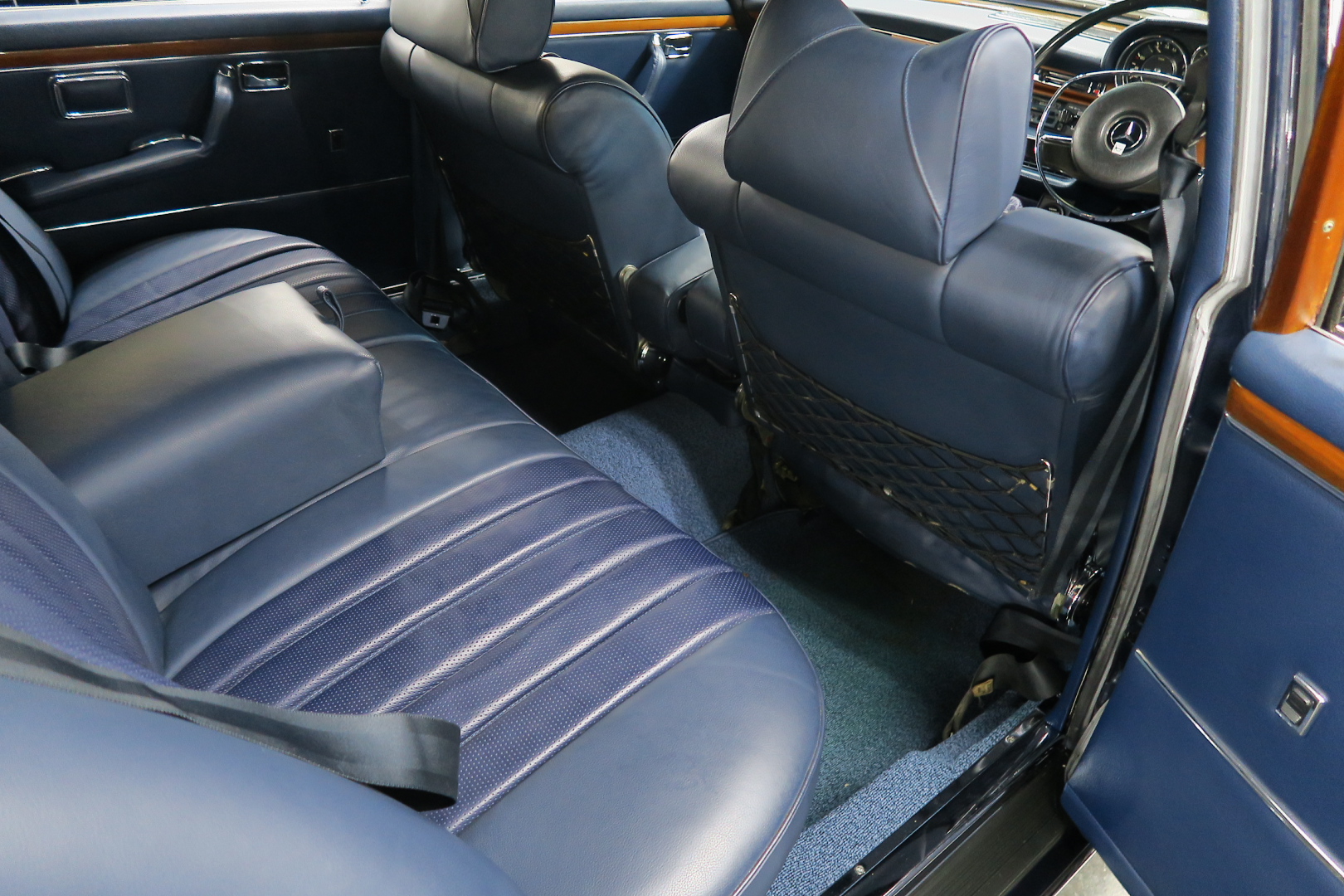 「300SEL 6.3」物語 1967年〜1972年の間に生産された「W109」タテ目の「300SEL」の 「6.3」である。 それも、ウエスタン自働車(ディーラー)物の「右ハンドル」 しかも、3オーナー、前オーナー様は、昭和59年から41年間も ご所有。 このモデルの生い立ちは、極めて興味深く、面白い。 こんな無茶なモデルがなぜに誕生したのか? ベースモデルは、1965年に発売されたばかりの最上級高級セダン「300SEL」 このモデルは、直列6気筒、3L、170馬力、 この頑丈なシャーシに目を付けたのが、エンジニアの「エーリッヒ・ヴァイクセンベル ロー」(文中:ベルローに短縮)。 1966年、「この300SELのシャーシなら、M600エンジンを積んだら面白そ〜 で、社内で こっそく時間を見つけて、載せ替え、完成させた車で、工場の敷地を 走り回った、、そして、その「音」でバレた、、 明らかに、聞くはずのない「音」、、工場責任者「ドルフ・ウーレンハウト」に見つか る。 彼はベルローに じっくり話を聞いたのち、試乗してみる。 結果、すぐに、開発へのGOサインを出す。 メーカー広報誌によれば、「書類にサインするとき、ウーレンハウトは、 ニヤリと笑ったはずだ、、」 なかなか 粋な会社である。 翌1967年、早くも市販モデル1台が完成。 正式モデル名: 「300SEL 6.3」 文字通り、「600リムジーネ」&「600プルマン」(1963年〜1981年)に積んだ 「M100」エンジン、V8、6.3L、250馬力、を移植。 これは、思った以上に販売不信だった「M100」の使い道を広げる意味もあった。 1968年から、正式に発売、1972年まで販売する。 生産台数: 「6526台」 この変態的怪物モデルは、想定外に 売れた。 ドイツ国内では、1839台しか売れていないが北米を中心とした海外で人気に火が付いた それは、現在でも同じ。 因みに、1967年は我が国でも、あの「トヨタ2000GT」が販売された年。 スペックを比較してみると: ・「300SEL 6.3」 最高速:「221km」 0−400m:「15.4秒」 ・「トヨタ2000GT」 : 「220km」 0−400m:「15.9秒」 ・「67’ ポルシェ911S」 :「225km」 0−400m:「15.8秒」 ・「70’ ハカスカGTR」 : 「200km」 0−400m:「16.0秒」 国内無敵の「2000GT」も、「6.3」に及ばず、ポルシェも「S」以外じゃ、太刀打ち できず、後年発売の「GTR」は、ぶっちぎられる、、まさに、スーパースポーツカー 、、「セダン」のくせに、、本物の「羊の皮をかぶった狼」! しかも、エアサスにレベルコントロール(車高自動調整)、AT、PW、パワステ、 クーラー付きで、乗心地も快適。「アウトバーンの覇者」。 では、当個体のお話: ウエスタン自働車(=ヤナセ=ディーラー)物、右ハンドル、3オーナー 前オーナー様は、昭和59年(1984年)より、2025年まで 41年間 ご所有。 聞けば分かる有名企業のオーナー様で、入手当初は、ヤナセ整備、できるメカニックが 引退したのちは、通常整備は、地元整備工場で、「6.3」ならではの整備は、例の神戸 の専門店様にて。この専門店さまで、2021年に大掛かりな整備、明細残る。 ・エアサス関係・レベリング関係・インジェクション関係・コンプレッサー・ウォータ ーポンプ関係・ブレーキ関係など、「6.3」における「キモ」整備が施されている。 しかも、長年のお付き合いの「正しすぎる一時預かり人」である、前オーナー様は、 弊社に持つ込むまえ、2025年8月、「シーザーさんに迷惑がかからないように」と、 前述の専門店様に入庫、点検依頼、「どこか不具合箇所があれば直しといて」 で、・ヒーターコア脱着・修理、プラグ交換、エンジンオイル交換、各グリスUP、 などなどが施された上で、当社入庫。 感謝・感激。 また、お次のオーナー様にとっても、相当な安心材料であろう。 お金持ち あるあるだが、記録簿とか なんですか それ である。 ただ、車検証上で分かるのは、 令和3年12月: 「77.200km」 令和5年12月: 「78.900km」 現在: 「79.200km」! さらに、当個体は、正しい整備だけでなく、内外装もレストアが施されている。 外装は: 「ダークブルー」メタリックに、全バラシ「オールペイント」済み。 *元色は、「パピルス・ホワイト」 (カラーVINで分かる) 塗装状態も素晴らしい◎。 「300SEL」の5mボディに良く似合うカラーで、重量感を感じる。 実際には、オリジナル「300SEL」の重量は、「1655kg」で、「6.3」は、 「1740kg」なので、85kgしか重くない(エンジンの重さの違い分)のが、、 なんだが、まったくオーラが異なるのは、、私の「6.3」への憧れ だからだけでは なさそうだ。 内装は: 「紺・本革」 「総張替え」 ・シート・ダッシュボード・天井内張り・カーペットに至るまで全て。 で、ほとんど乗らないものだから、今もバリビカ。 ただ、ウッド類は、オリジナルのまま なので、風情が残る。 ここが素のままなので、時代があう。 ・4速AT・パワーステアリング・パワーウインド・クーラー、快適な怪物マシン。 後付けで、・パナ「ゴリラ」ナビ(取り外し可)・「バックカメラ」連動・ETC・ 「前後ドラレコ」・「油圧メーター」 即戦力。 機関系: エンジンは、前述の通り、「M100」、当