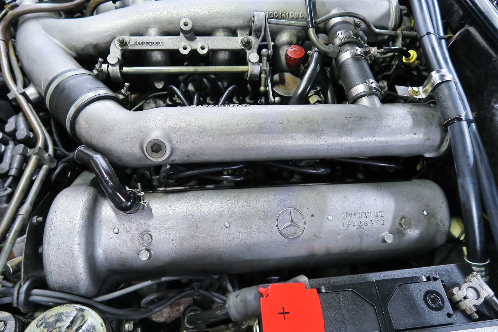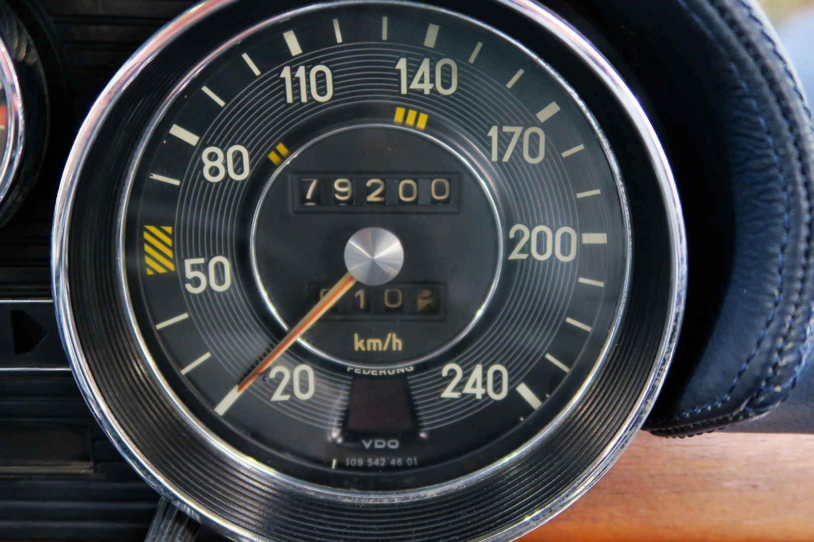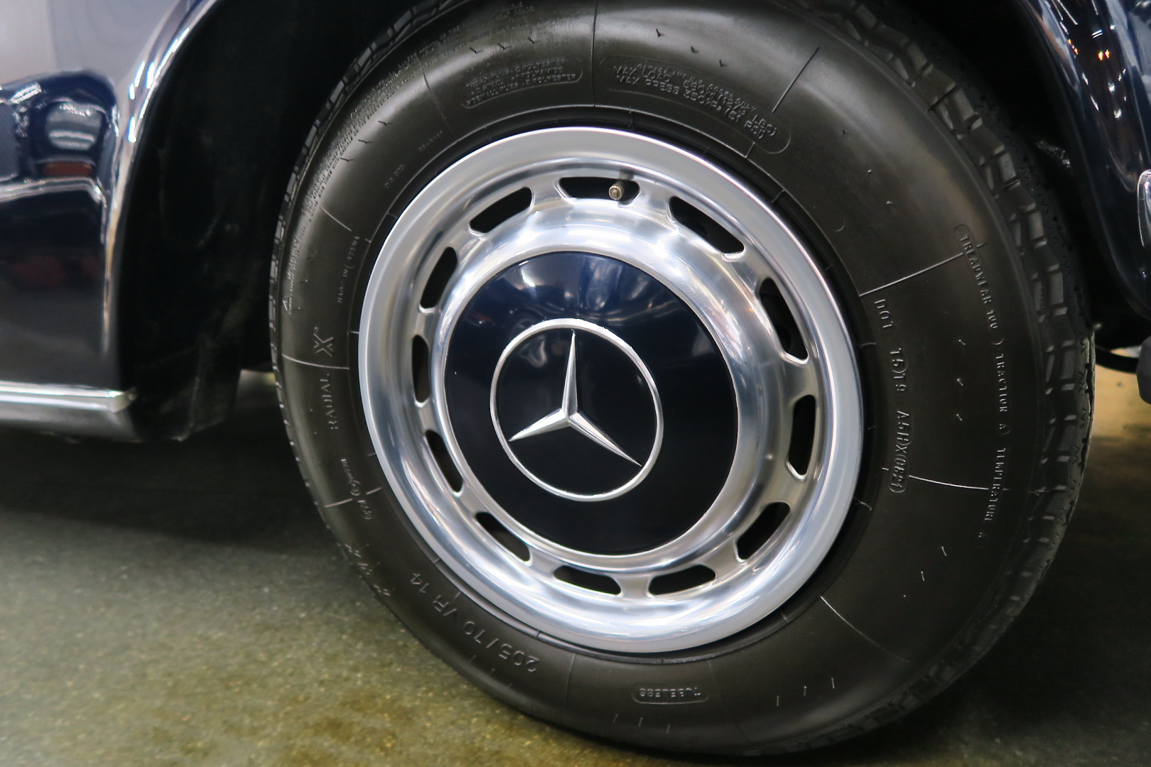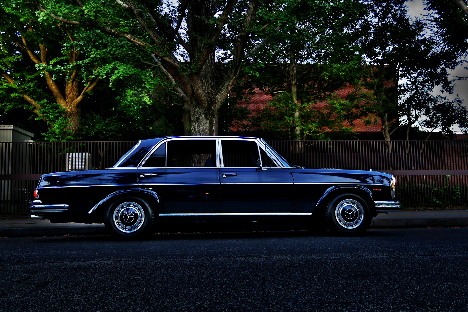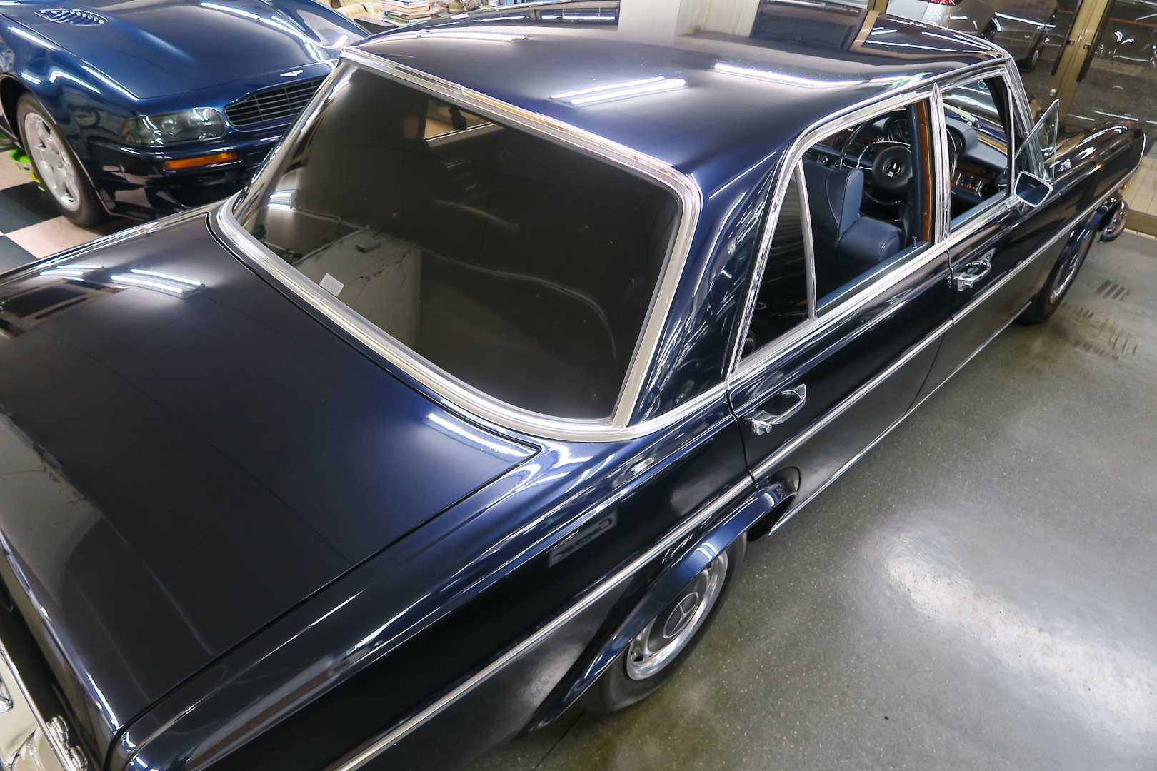 「300SEL 6.3」物語 1967年〜1972年の間に生産された「W109」タテ目の「300SEL」の 「6.3」である。 それも、ウエスタン自働車(ディーラー)物の「右ハンドル」 しかも、3オーナー、前オーナー様は、昭和59年から41年間も ご所有。 このモデルの生い立ちは、極めて興味深く、面白い。 こんな無茶なモデルがなぜに誕生したのか? ベースモデルは、1965年に発売されたばかりの最上級高級セダン「300SEL」 このモデルは、直列6気筒、3L、170馬力、 この頑丈なシャーシに目を付けたのが、エンジニアの「エーリッヒ・ヴァイクセンベル ロー」(文中:ベルローに短縮)。 1966年、「この300SELのシャーシなら、M600エンジンを積んだら面白そ〜 で、社内で こっそく時間を見つけて、載せ替え、完成させた車で、工場の敷地を 走り回った、、そして、その「音」でバレた、、 明らかに、聞くはずのない「音」、、工場責任者「ドルフ・ウーレンハウト」に見つか る。 彼はベルローに じっくり話を聞いたのち、試乗してみる。 結果、すぐに、開発へのGOサインを出す。 メーカー広報誌によれば、「書類にサインするとき、ウーレンハウトは、 ニヤリと笑ったはずだ、、」 なかなか 粋な会社である。 翌1967年、早くも市販モデル1台が完成。 正式モデル名: 「300SEL 6.3」 文字通り、「600リムジーネ」&「600プルマン」(1963年〜1981年)に積んだ 「M100」エンジン、V8、6.3L、250馬力、を移植。 これは、思った以上に販売不信だった「M100」の使い道を広げる意味もあった。 1968年から、正式に発売、1972年まで販売する。 生産台数: 「6526台」 この変態的怪物モデルは、想定外に 売れた。 ドイツ国内では、1839台しか売れていないが北米を中心とした海外で人気に火が付いた それは、現在でも同じ。 因みに、1967年は我が国でも、あの「トヨタ2000GT」が販売された年。 スペックを比較してみると: ・「300SEL 6.3」 最高速:「221km」 0−400m:「15.4秒」 ・「トヨタ2000GT」 : 「220km」 0−400m:「15.9秒」 ・「67’ ポルシェ911S」 :「225km」 0−400m:「15.8秒」 ・「70’ ハカスカGTR」 : 「200km」 0−400m:「16.0秒」 国内無敵の「2000GT」も、「6.3」に及ばず、ポルシェも「S」以外じゃ、太刀打ち できず、後年発売の「GTR」は、ぶっちぎられる、、まさに、スーパースポーツカー 、、「セダン」のくせに、、本物の「羊の皮をかぶった狼」! しかも、エアサスにレベルコントロール(車高自動調整)、AT、PW、パワステ、 クーラー付きで、乗心地も快適。「アウトバーンの覇者」。 では、当個体のお話: ウエスタン自働車(=ヤナセ=ディーラー)物、右ハンドル、3オーナー 前オーナー様は、昭和59年(1984年)より、2025年まで 41年間 ご所有。 聞けば分かる有名企業のオーナー様で、入手当初は、ヤナセ整備、できるメカニックが 引退したのちは、通常整備は、地元整備工場で、「6.3」ならではの整備は、例の神戸 の専門店様にて。この専門店さまで、2021年に大掛かりな整備、明細残る。 ・エアサス関係・レベリング関係・インジェクション関係・コンプレッサー・ウォータ ーポンプ関係・ブレーキ関係など、「6.3」における「キモ」整備が施されている。 しかも、長年のお付き合いの「正しすぎる一時預かり人」である、前オーナー様は、 弊社に持つ込むまえ、2025年8月、「シーザーさんに迷惑がかからないように」と、 前述の専門店様に入庫、点検依頼、「どこか不具合箇所があれば直しといて」 で、・ヒーターコア脱着・修理、プラグ交換、エンジンオイル交換、各グリスUP、 などなどが施された上で、当社入庫。 感謝・感激。 また、お次のオーナー様にとっても、相当な安心材料であろう。 お金持ち あるあるだが、記録簿とか なんですか それ である。 ただ、車検証上で分かるのは、 令和3年12月: 「77.200km」 令和5年12月: 「78.900km」 現在: 「79.200km」! さらに、当個体は、正しい整備だけでなく、内外装もレストアが施されている。 外装は: 「ダークブルー」メタリックに、全バラシ「オールペイント」済み。 *元色は、「パピルス・ホワイト」 (カラーVINで分かる) 塗装状態も素晴らしい◎。 「300SEL」の5mボディに良く似合うカラーで、重量感を感じる。 実際には、オリジナル「300SEL」の重量は、「1655kg」で、「6.3」は、 「1740kg」なので、85kgしか重くない(エンジンの重さの違い分)のが、、 なんだが、まったくオーラが異なるのは、、私の「6.3」への憧れ だからだけでは なさそうだ。 内装は: 「紺・本革」 「総張替え」 ・シート・ダッシュボード・天井内張り・カーペットに至るまで全て。 で、ほとんど乗らないものだから、今もバリビカ。 ただ、ウッド類は、オリジナルのまま なので、風情が残る。 ここが素のままなので、時代があう。 ・4速AT・パワーステアリング・パワーウインド・クーラー、快適な怪物マシン。 後付けで、・パナ「ゴリラ」ナビ(取り外し可)・「バックカメラ」連動・ETC・ 「前後ドラレコ」・「油圧メーター」 即戦力。 機関系: エンジンは、前述の通り、「M100」、当